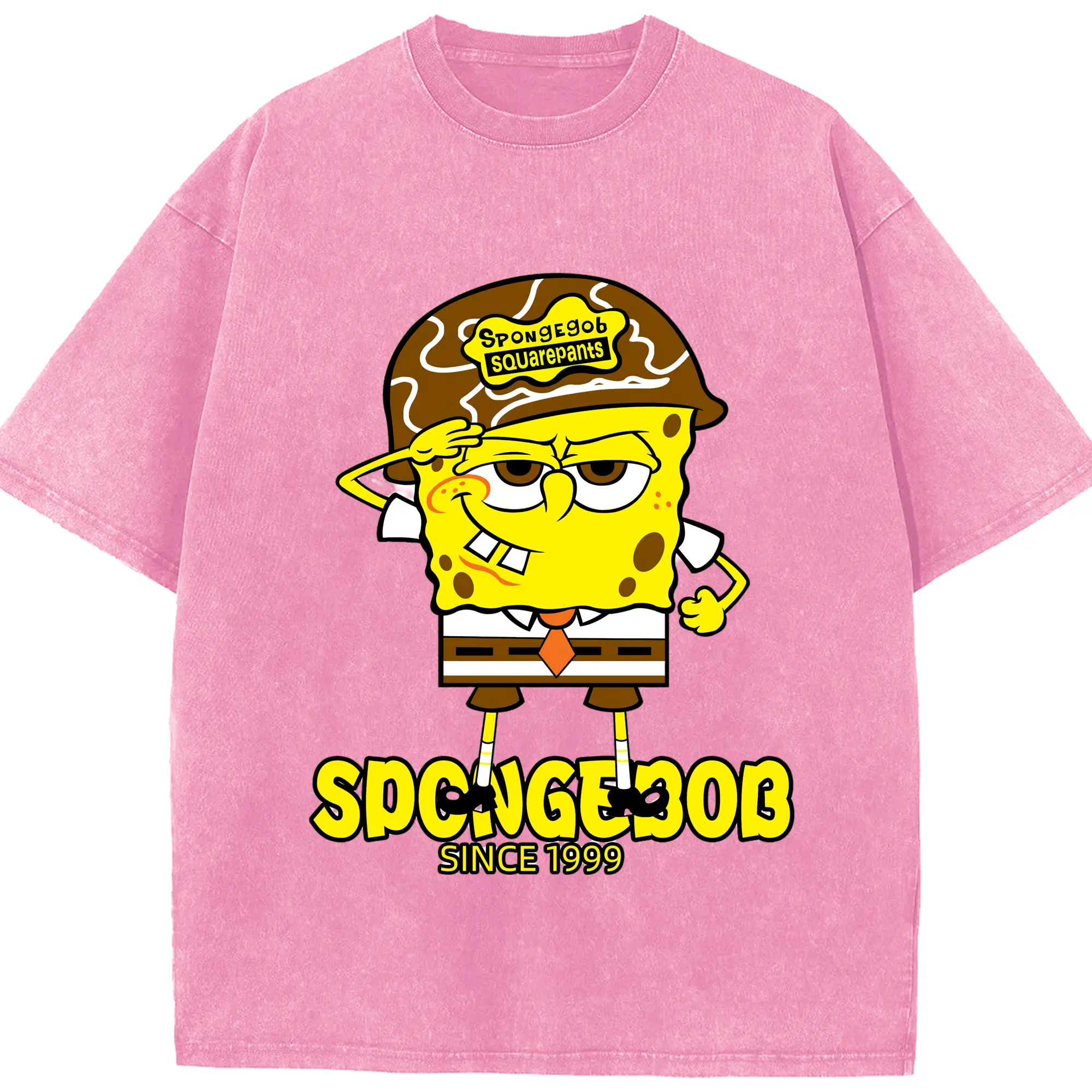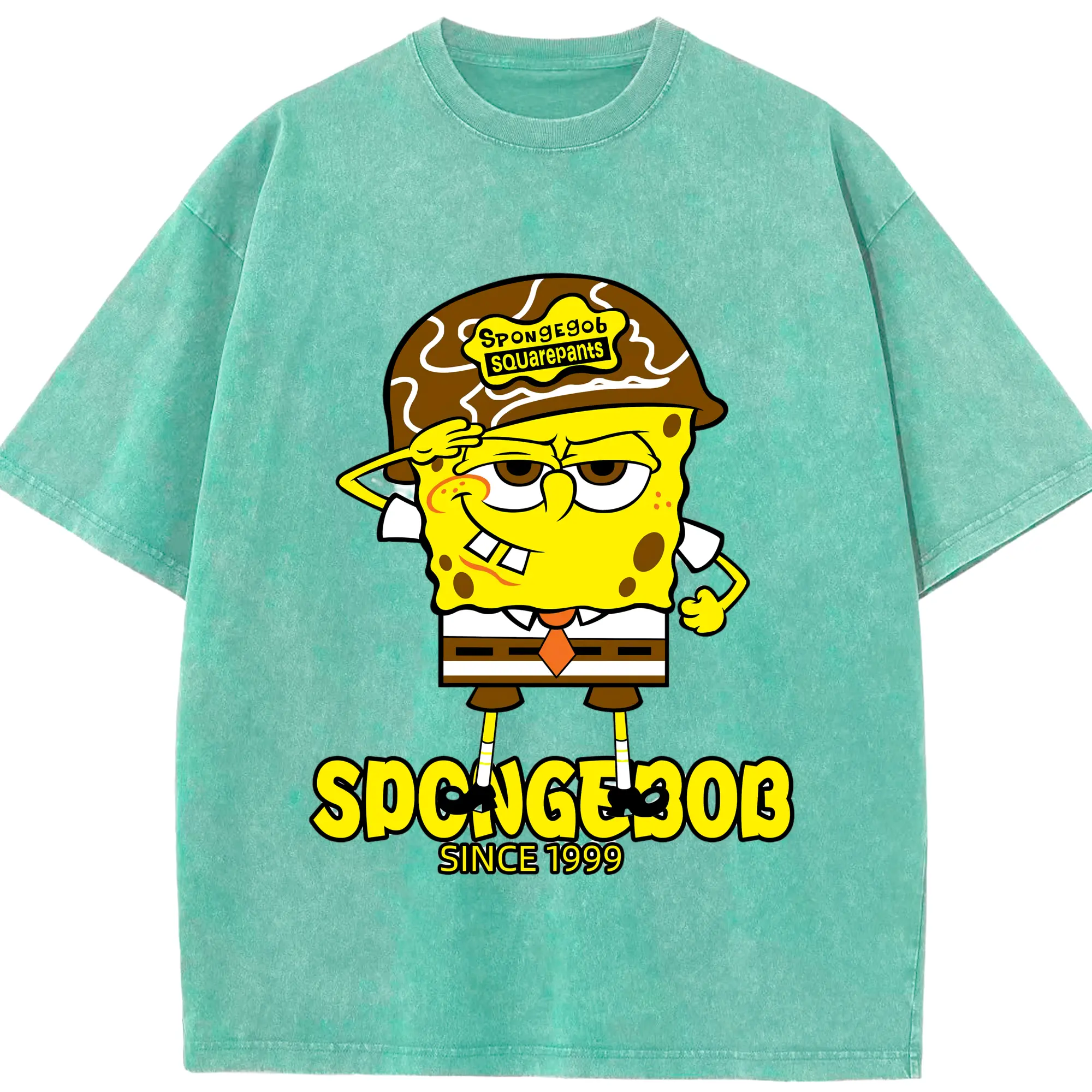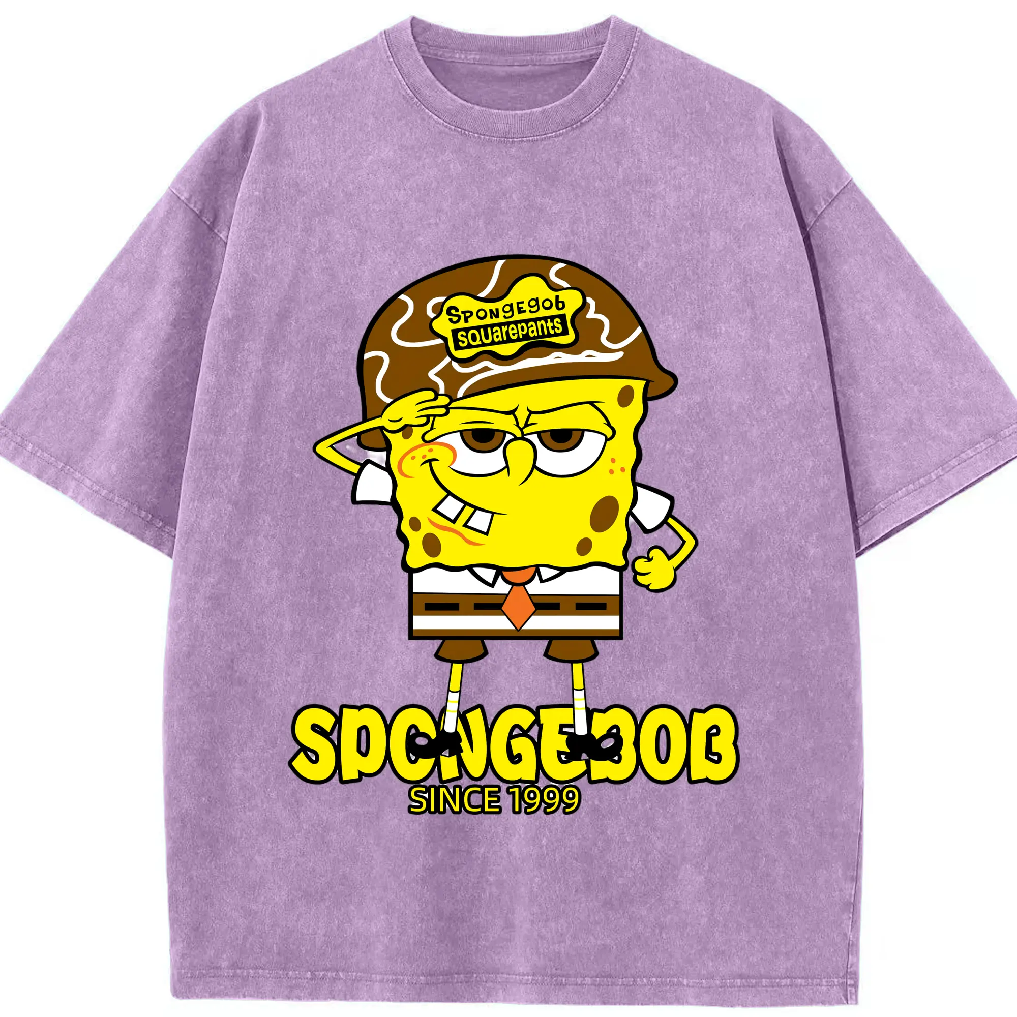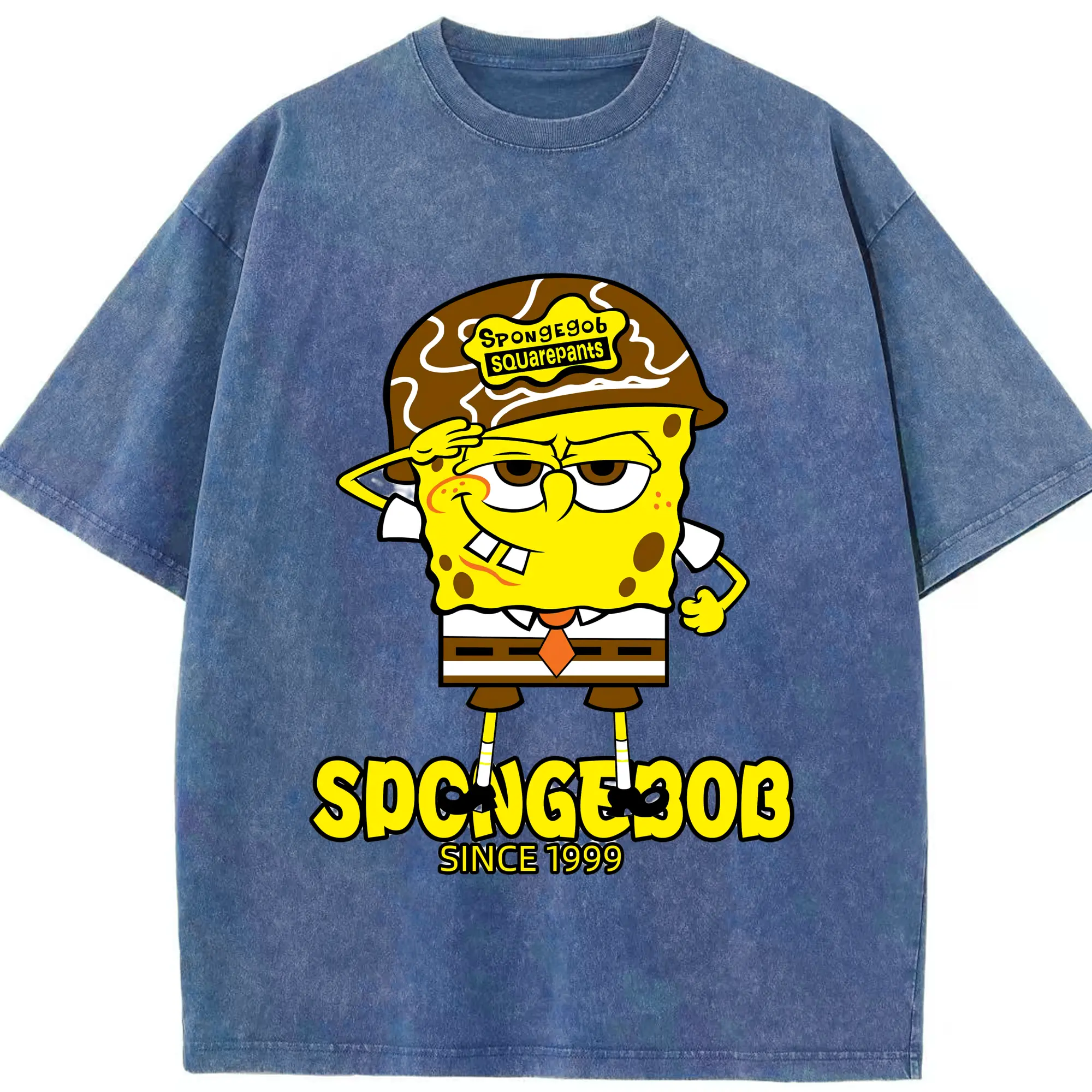 Adults spongebob squarepants soldier graphic t shirts - Washed Vintage Look 230g Cotton Oversized T-Shirt With Front Heat Transfer Print – Soft, Lightweight, Stylish Fit – Comfortable Casual Wear For Sports & Everyday Use