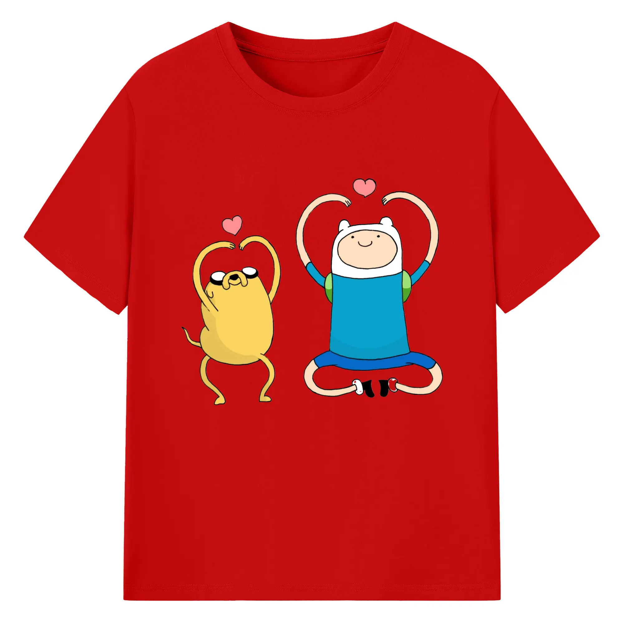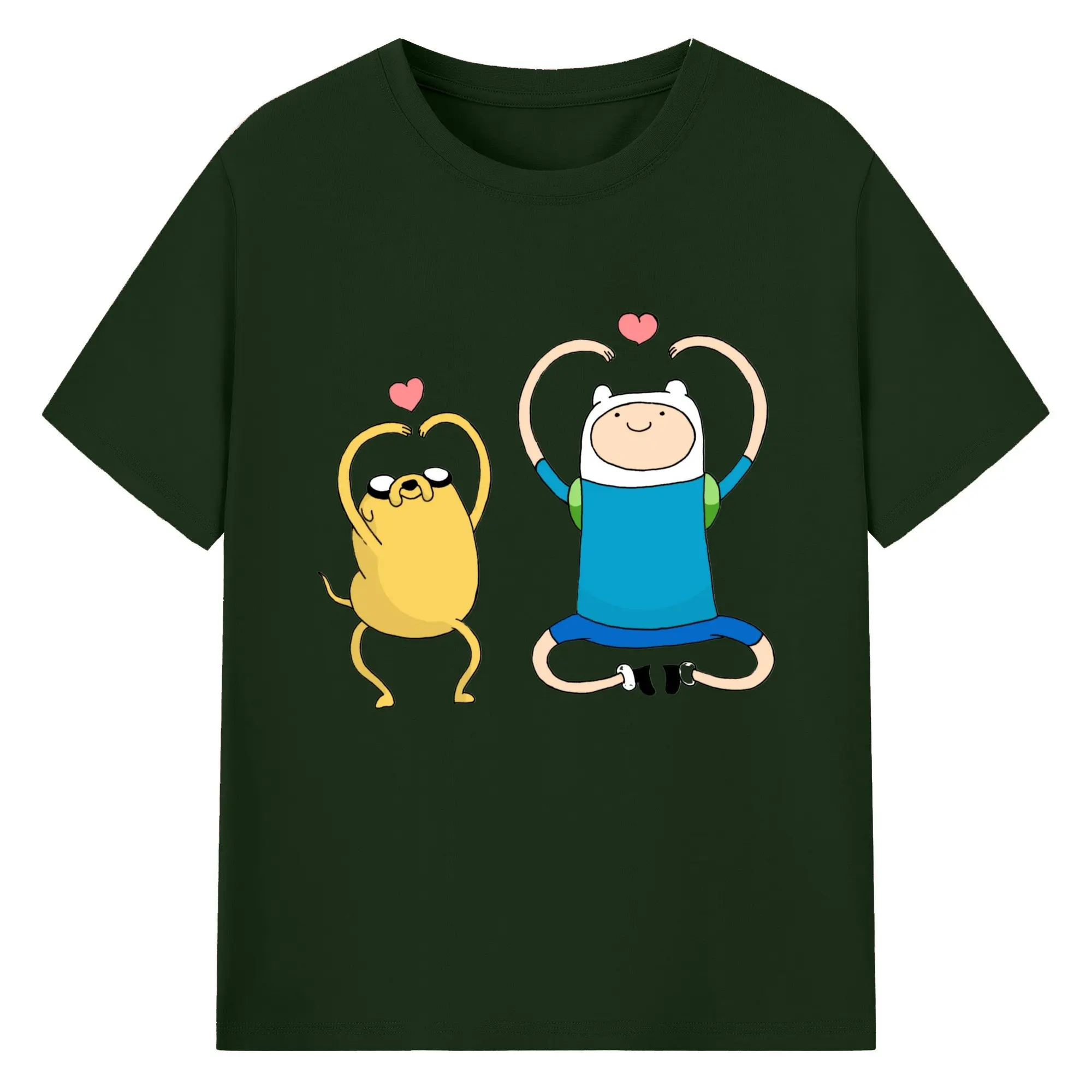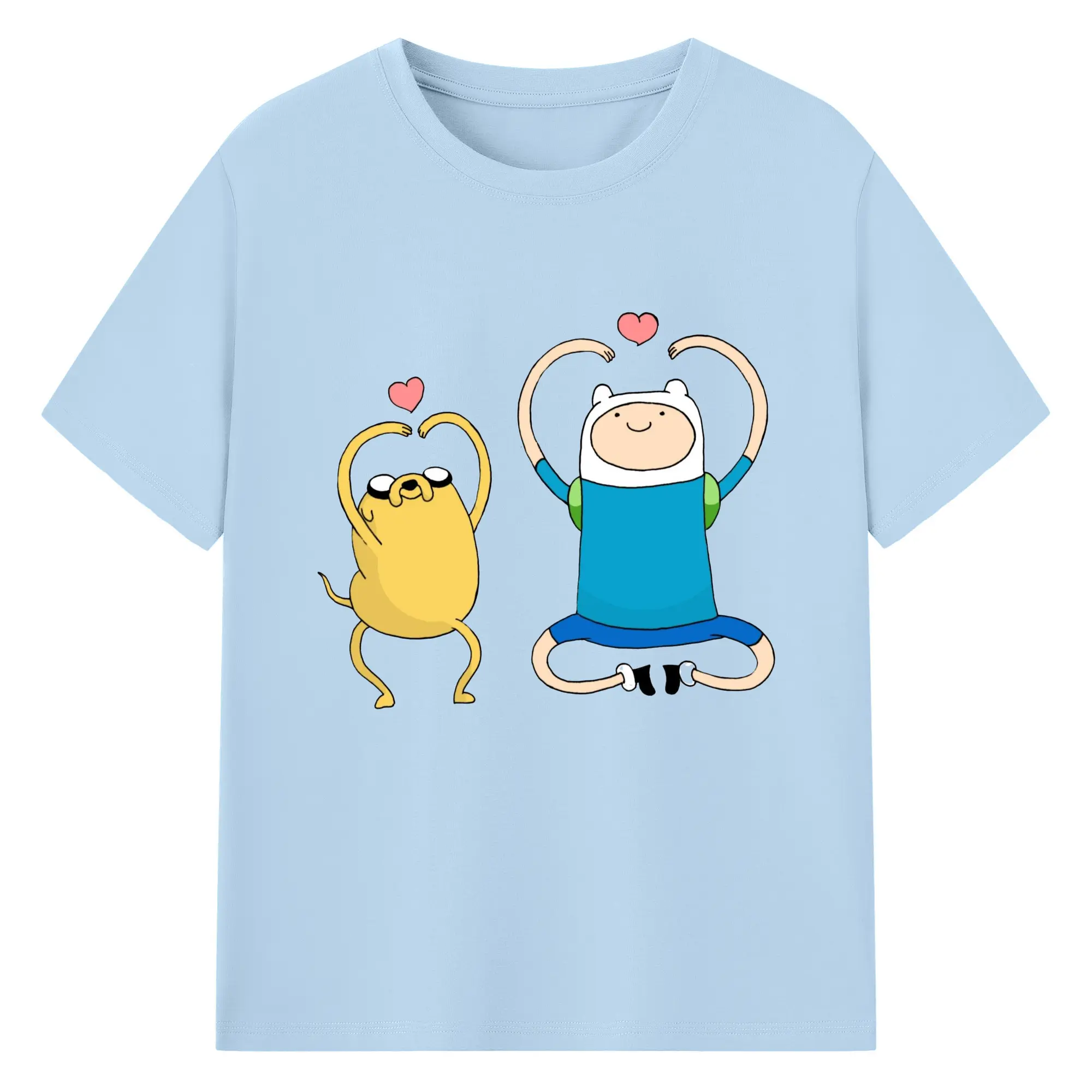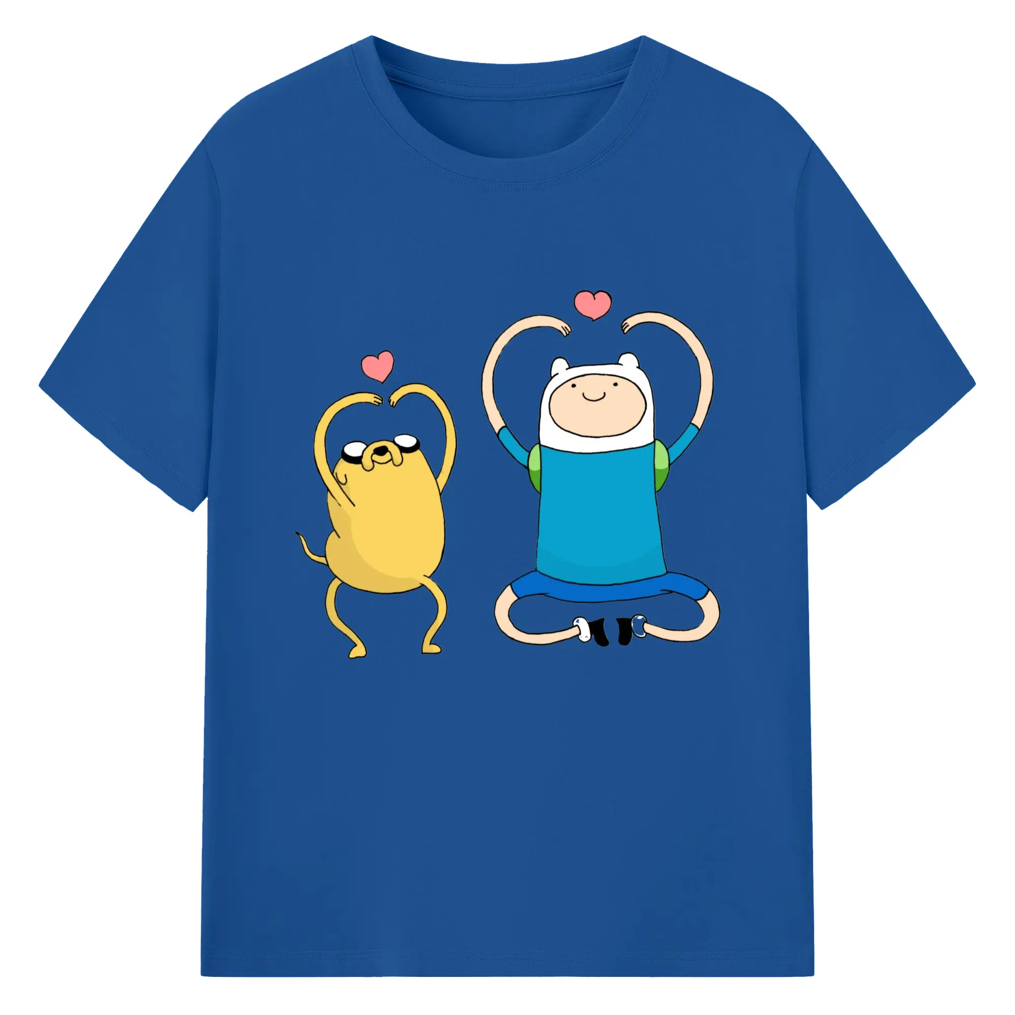 Adventure Time Finn and Jake t-shirt - 180g Cotton T-Shirt With Front Heat Transfer Print – Soft, Lightweight, Fitted Design – Comfortable Casual Wear For Sports & Everyday Use