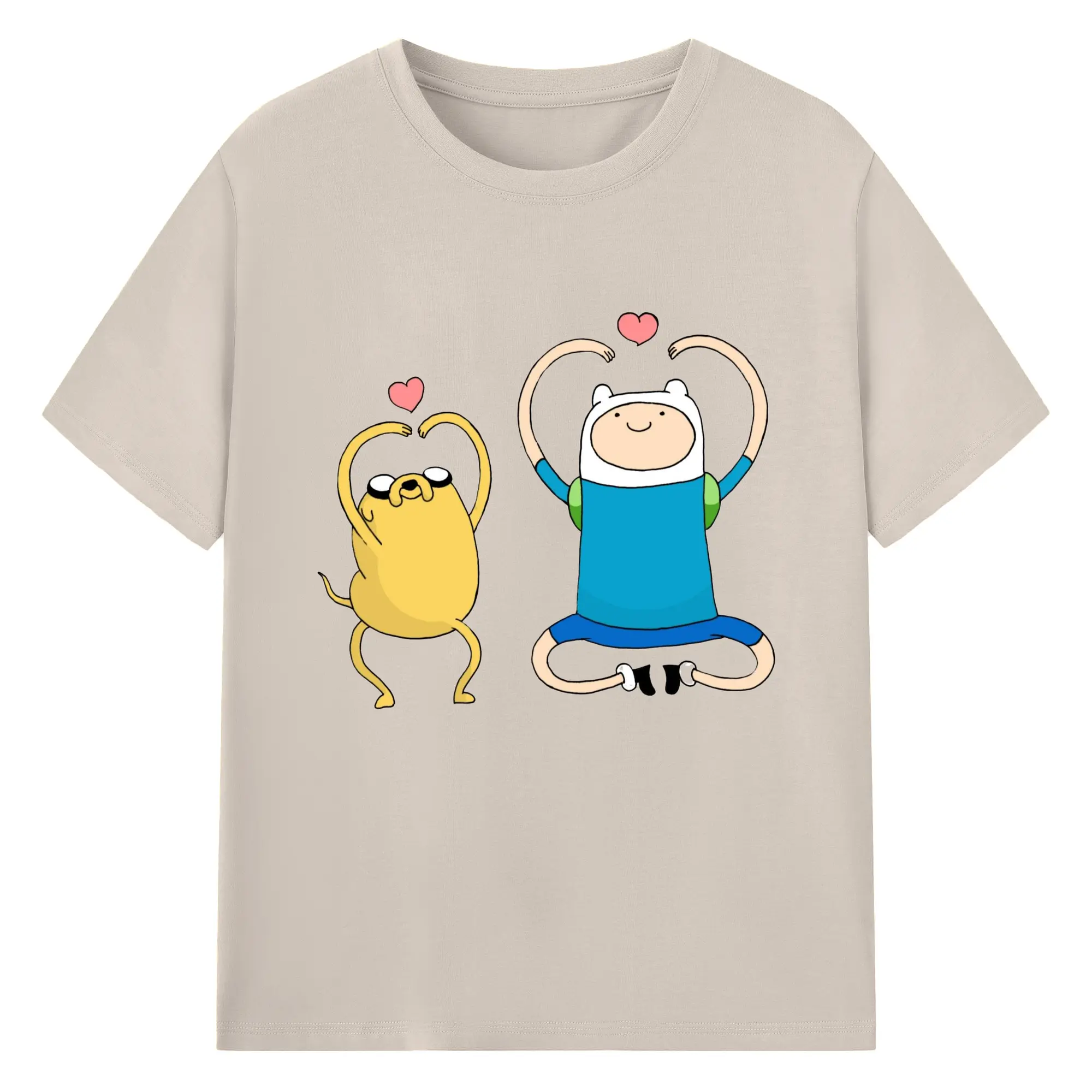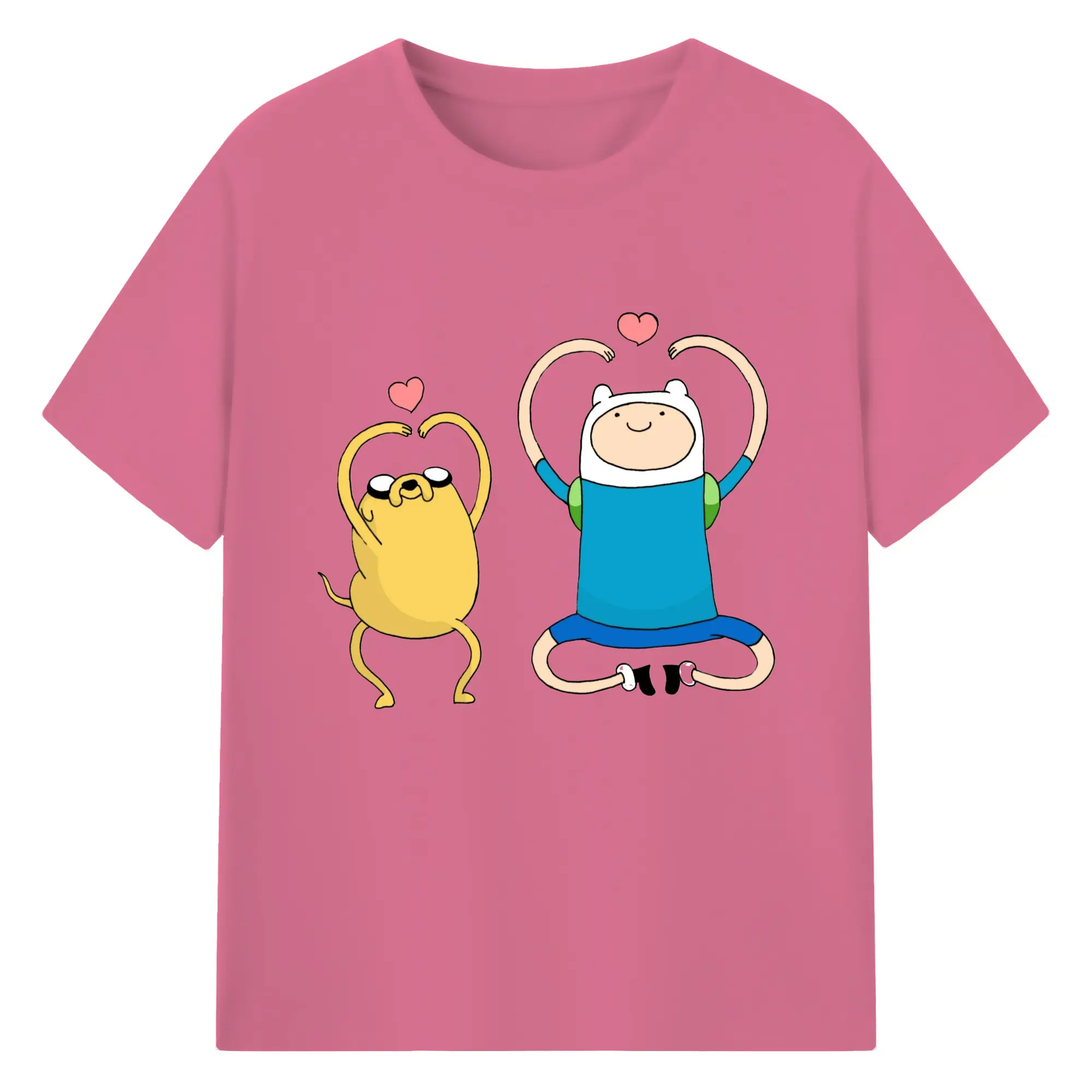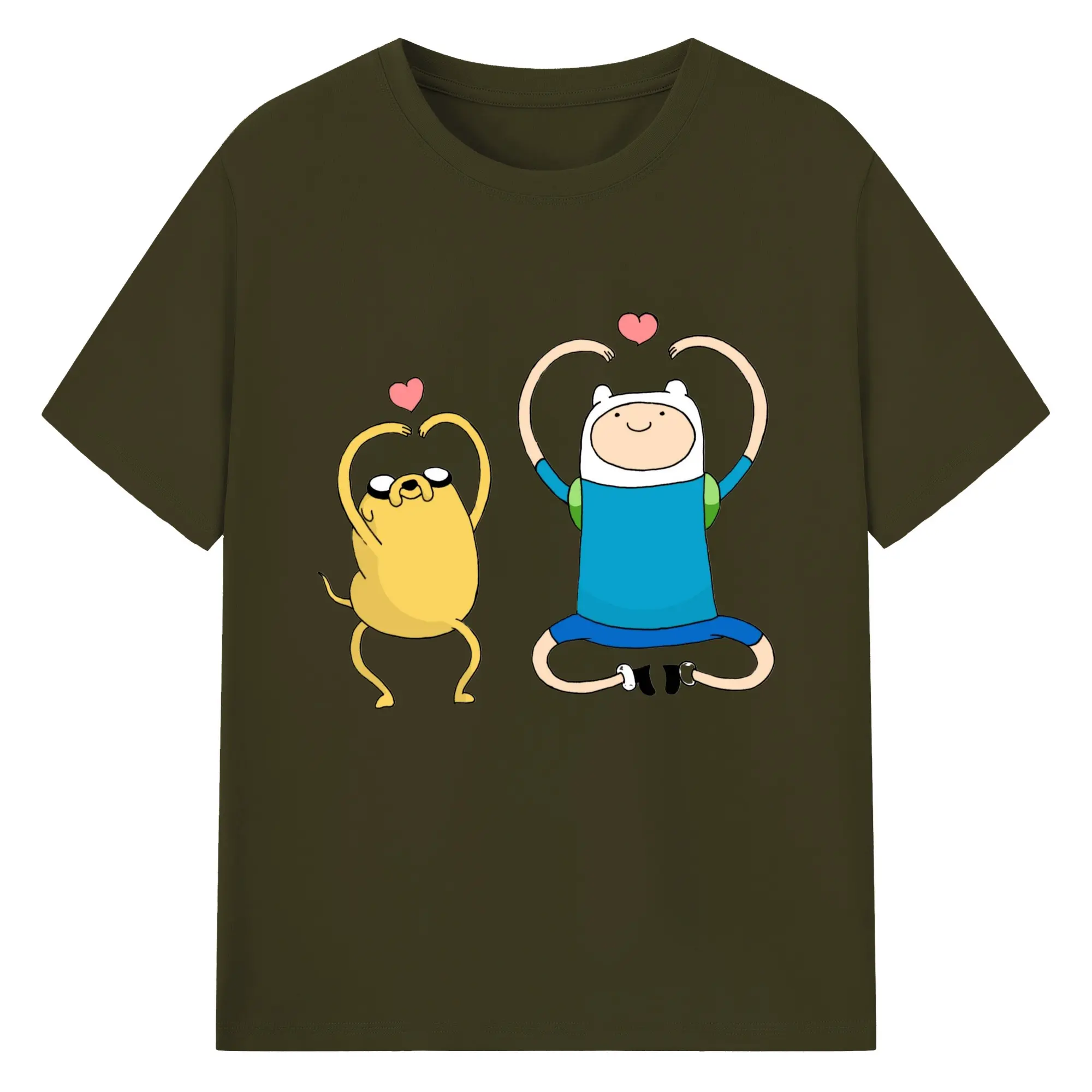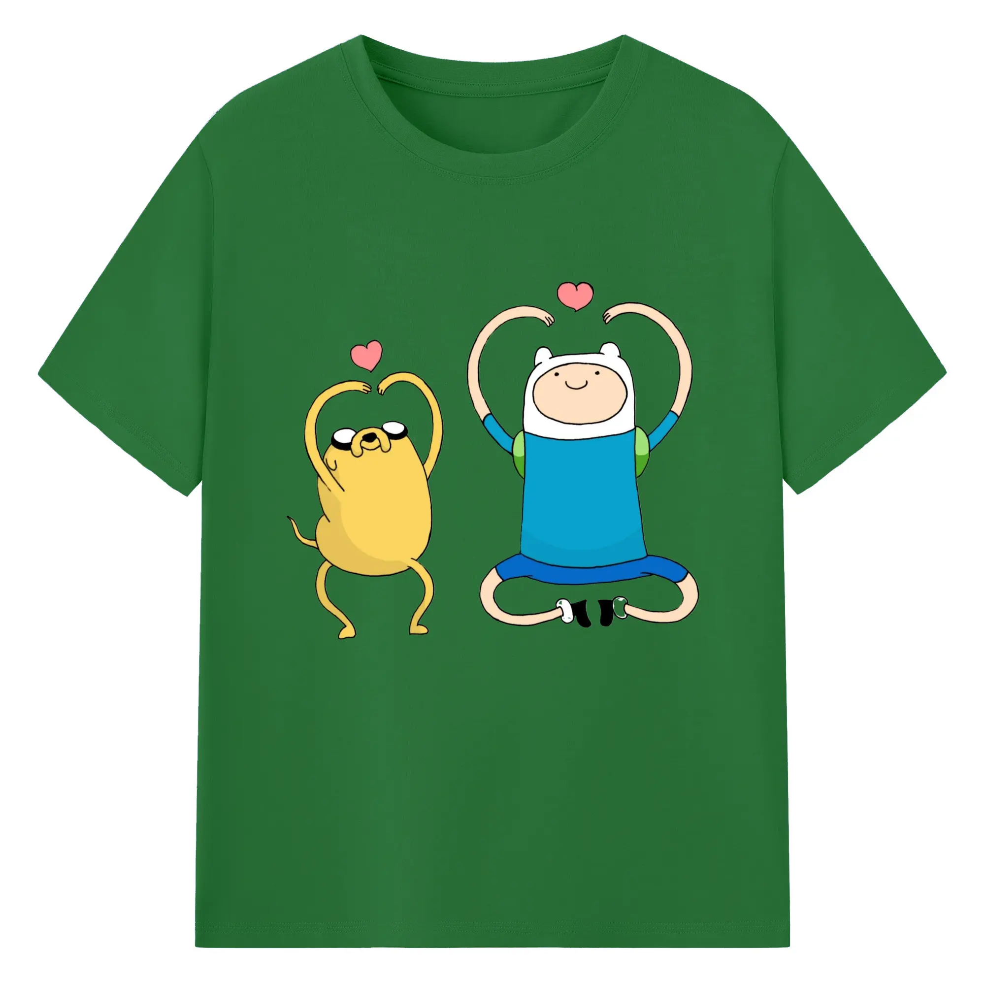 Adventure Time Finn and Jake t-shirt - 180g Cotton T-Shirt With Front Heat Transfer Print – Soft, Lightweight, Fitted Design – Comfortable Casual Wear For Sports & Everyday Use