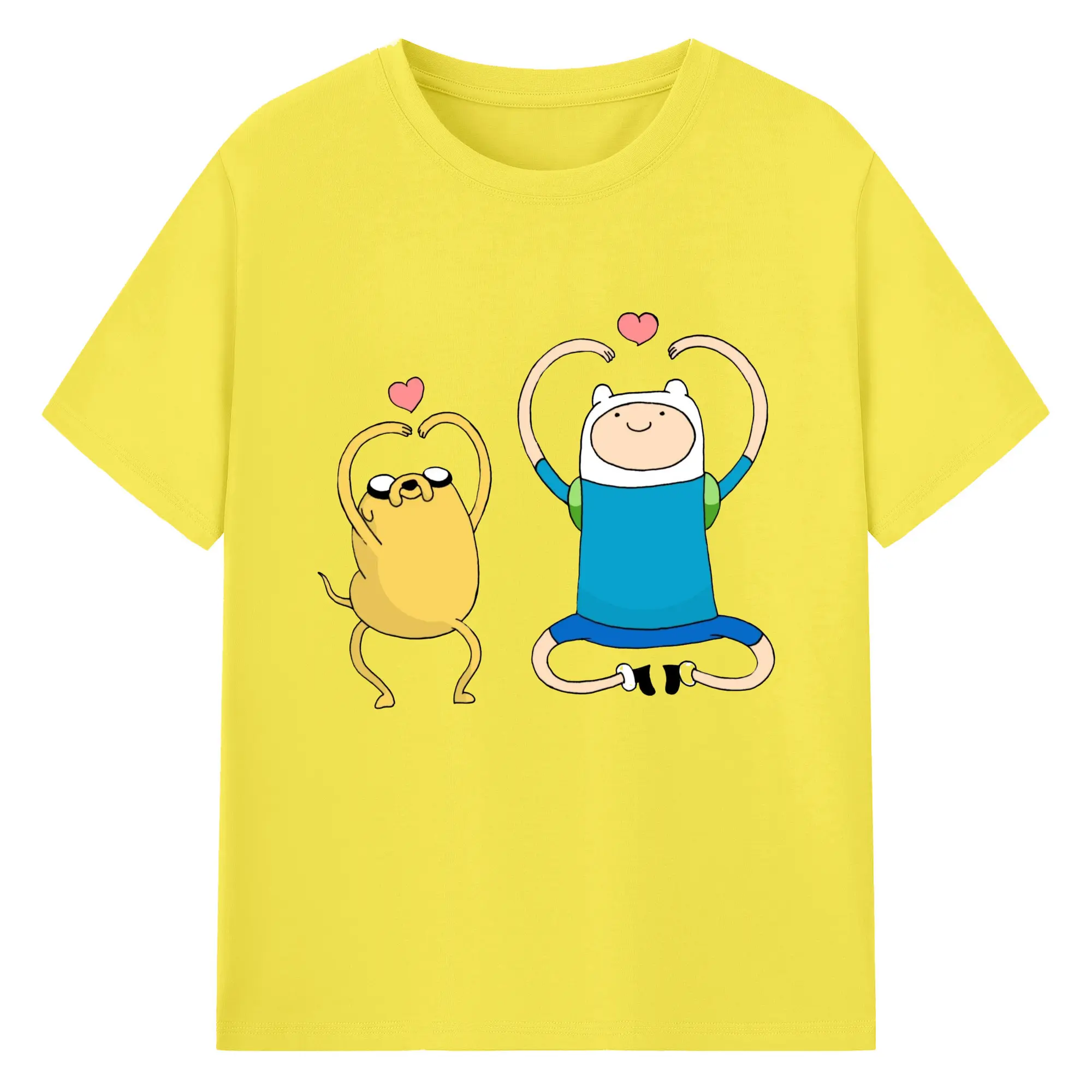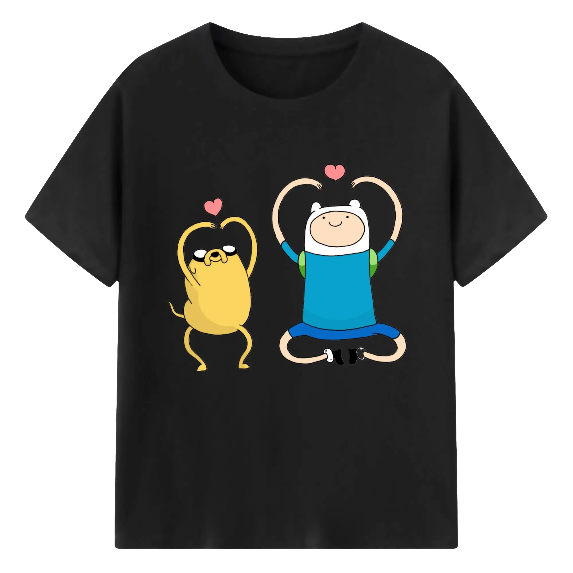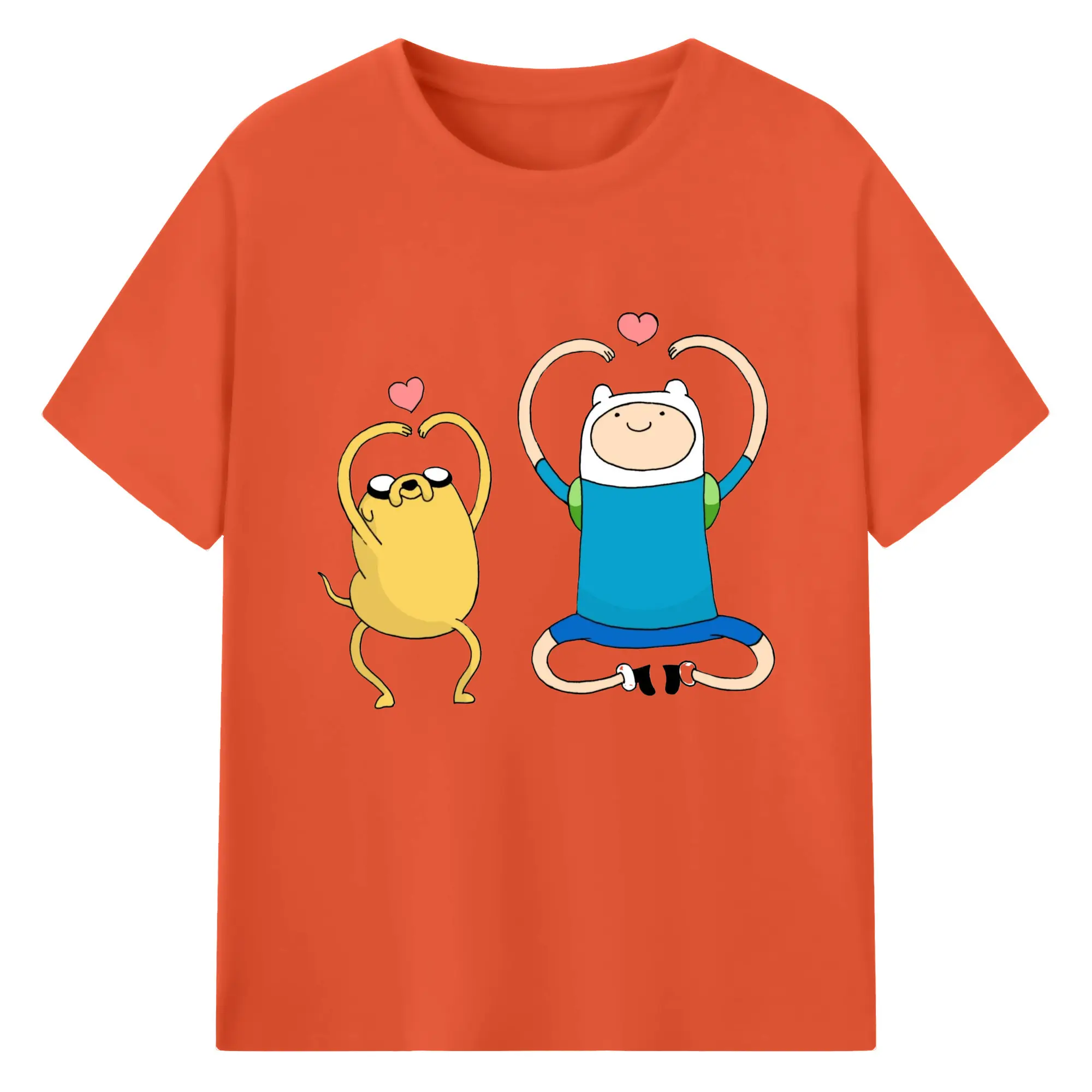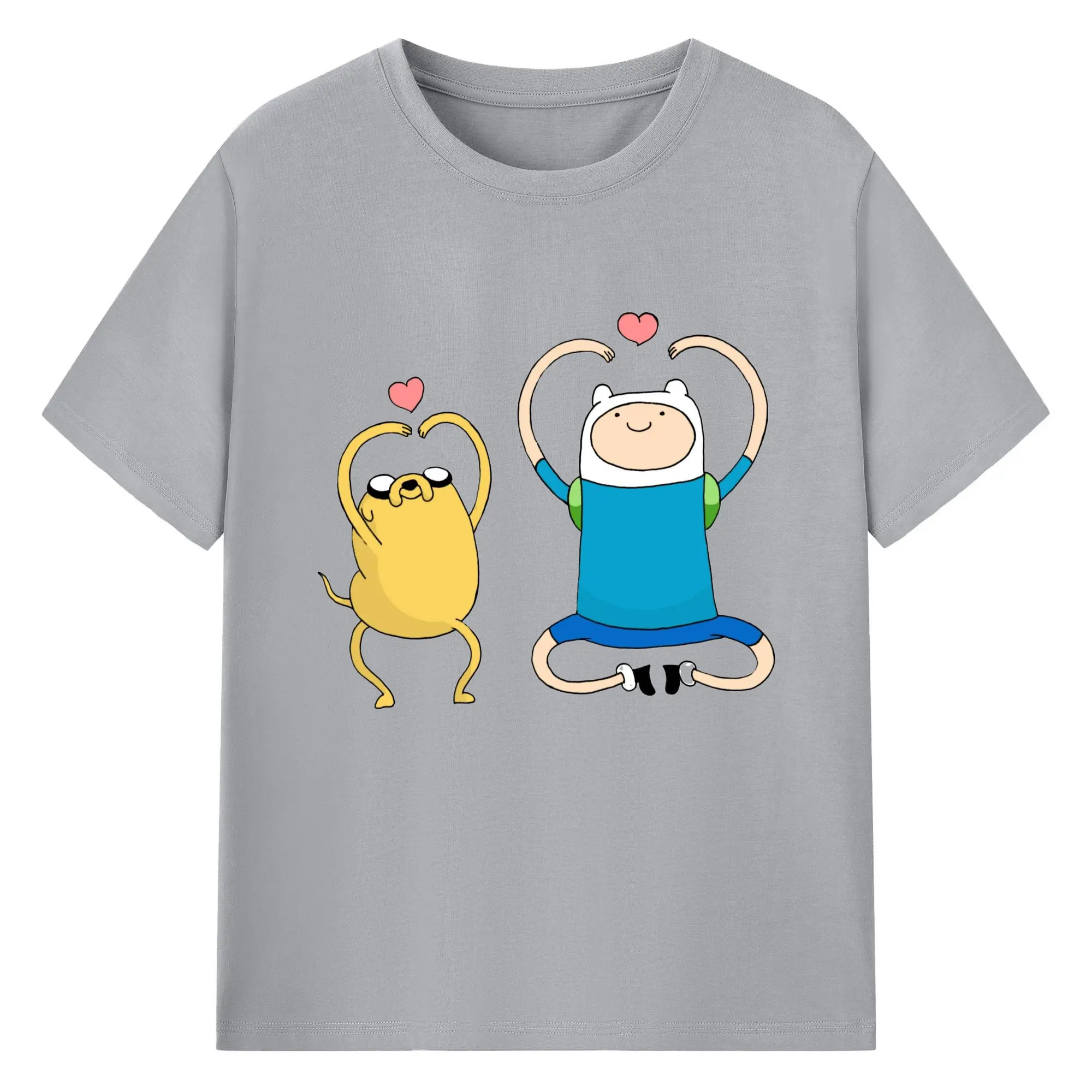 Adventure Time Finn and Jake t-shirt - 180g Cotton T-Shirt With Front Heat Transfer Print – Soft, Lightweight, Fitted Design – Comfortable Casual Wear For Sports & Everyday Use