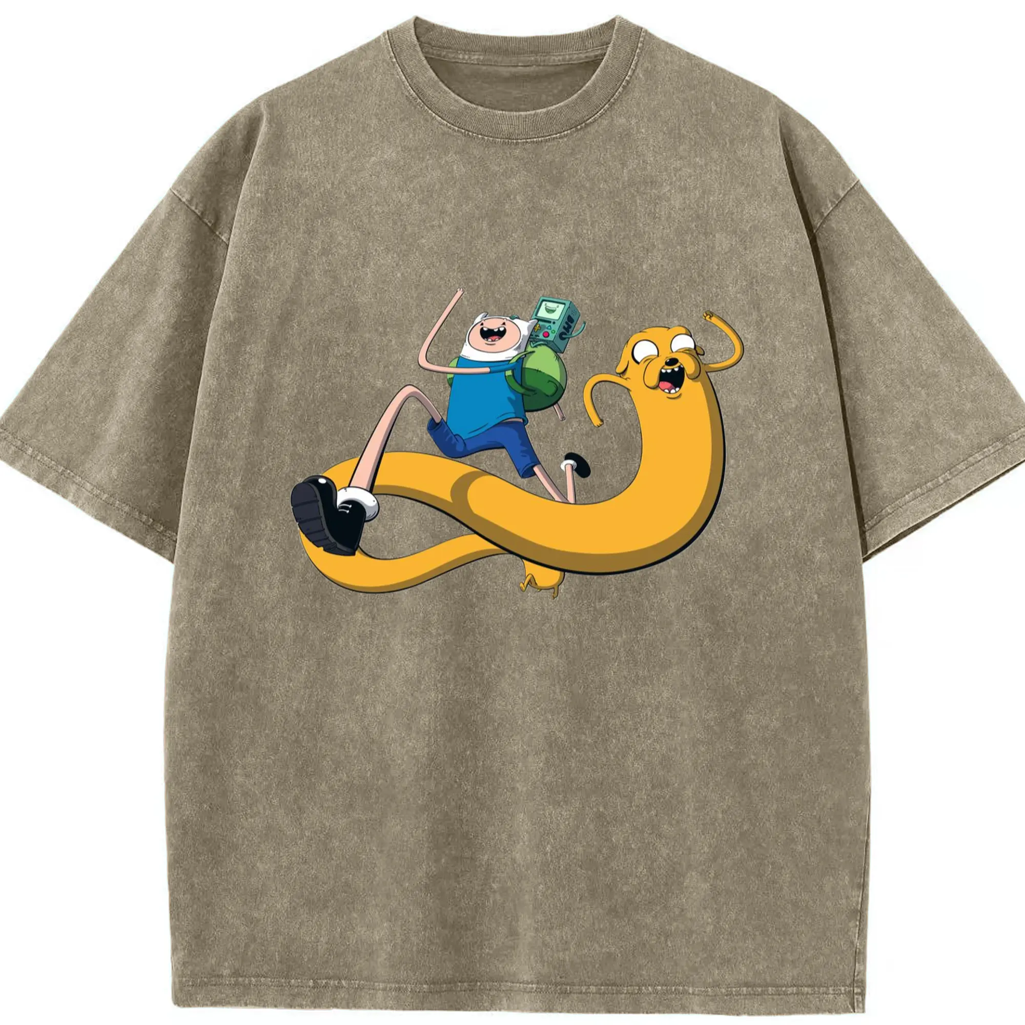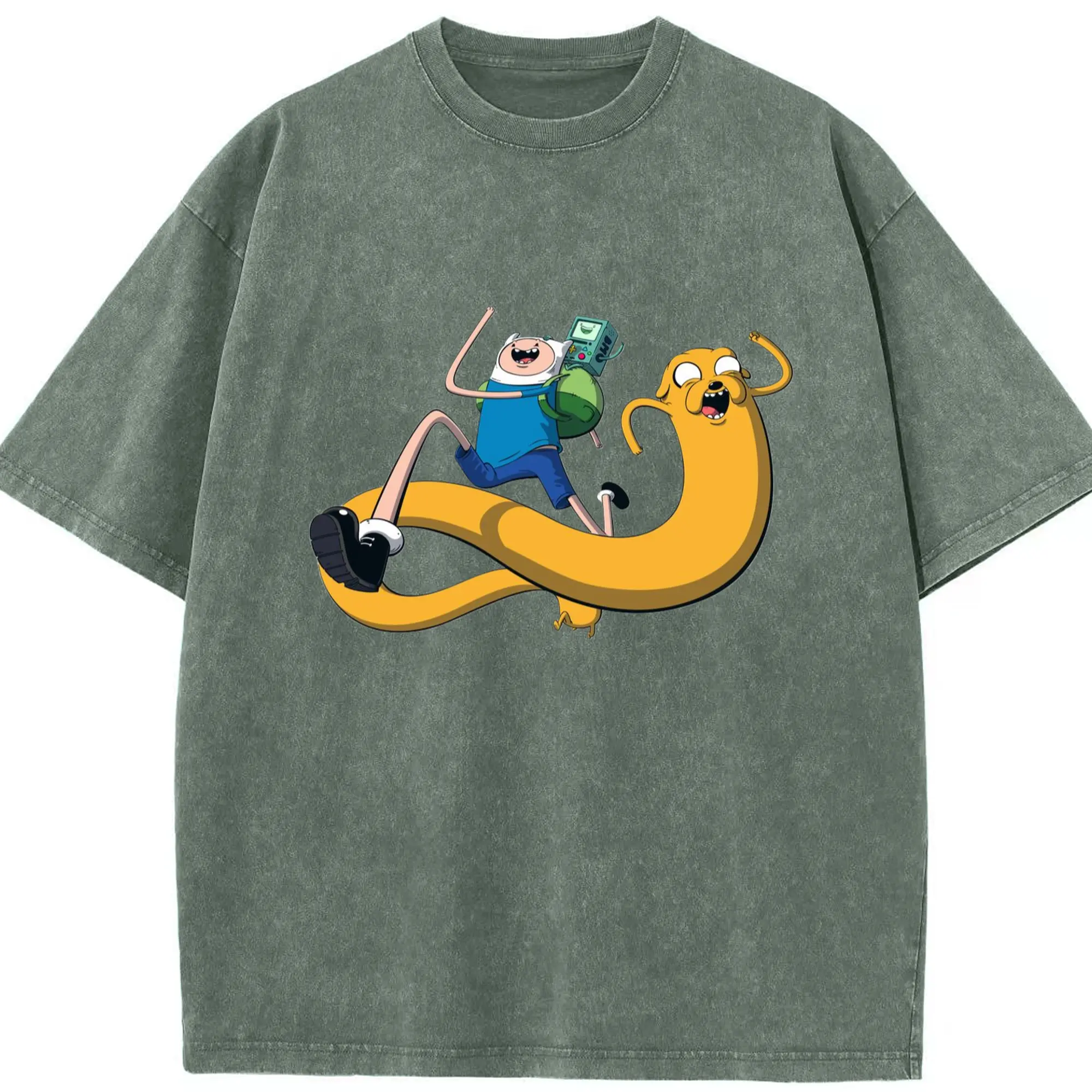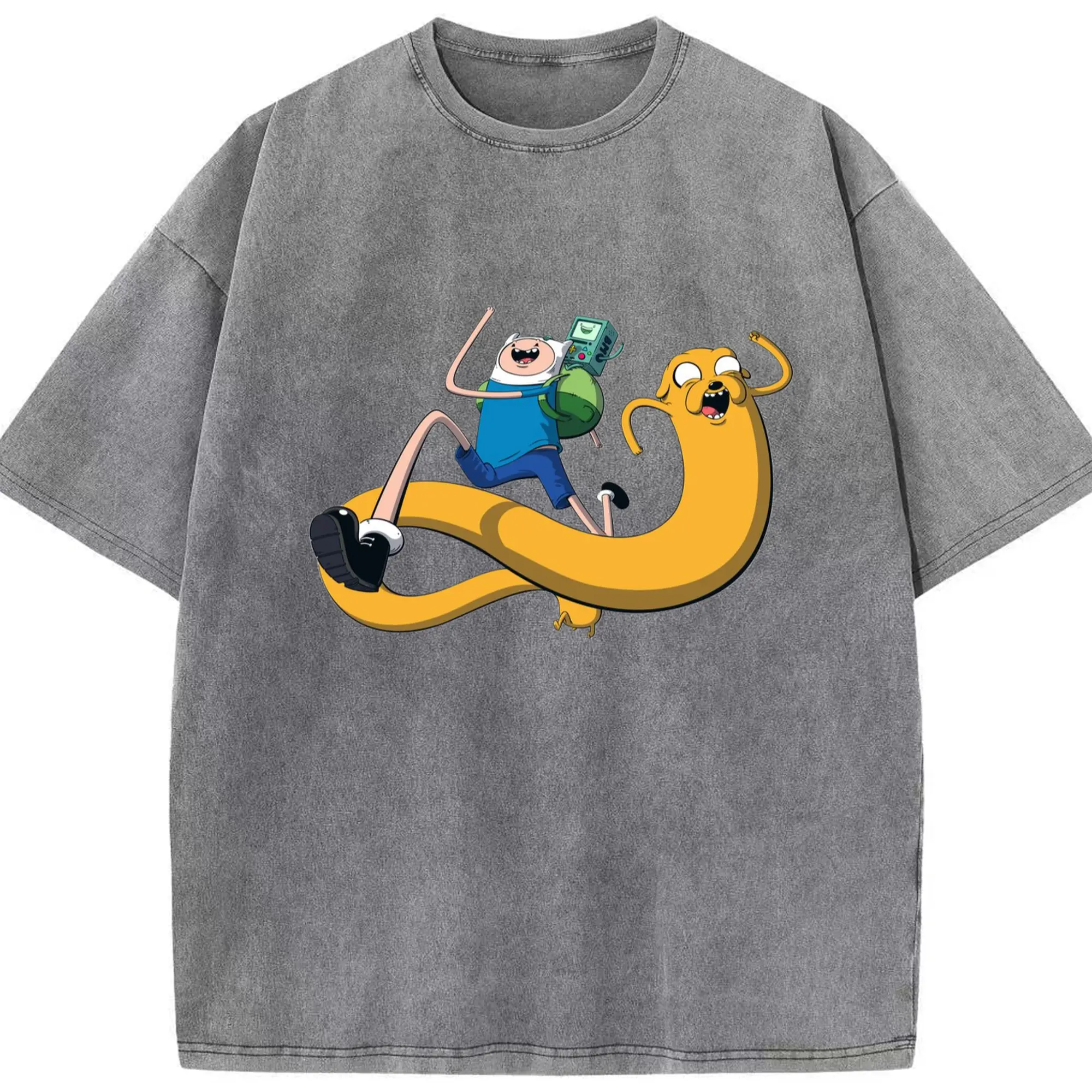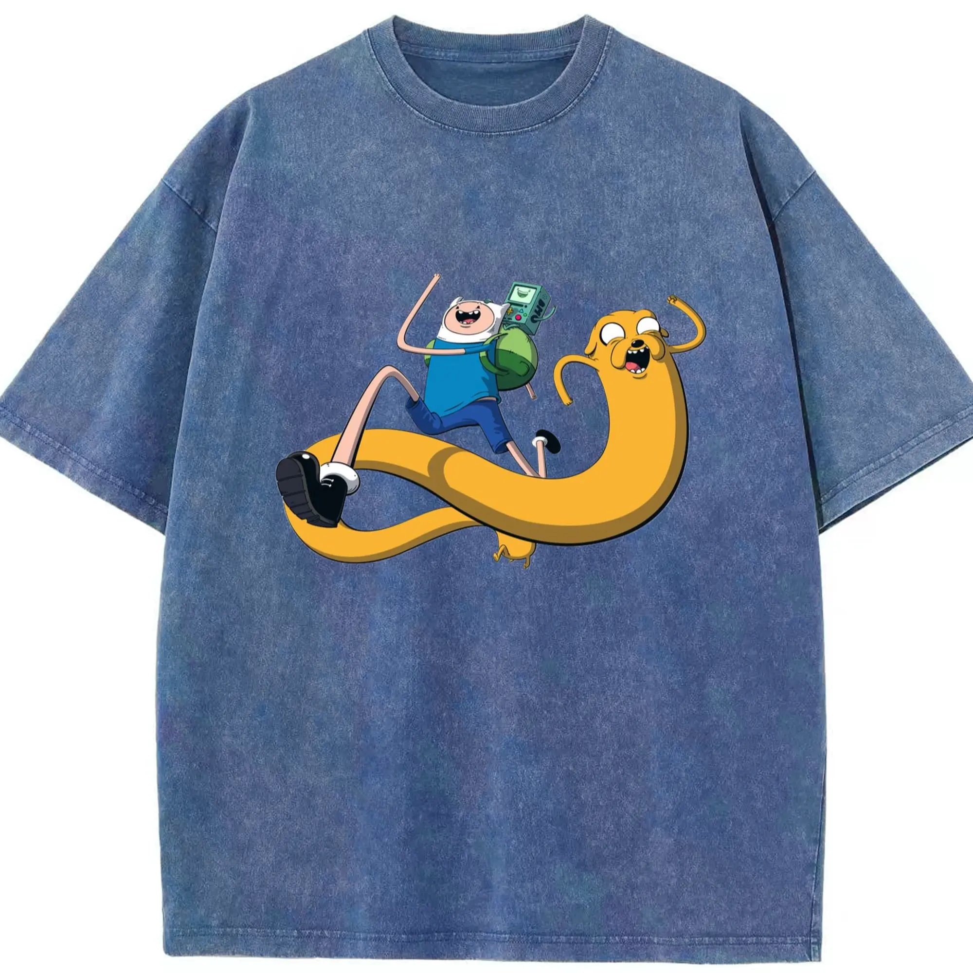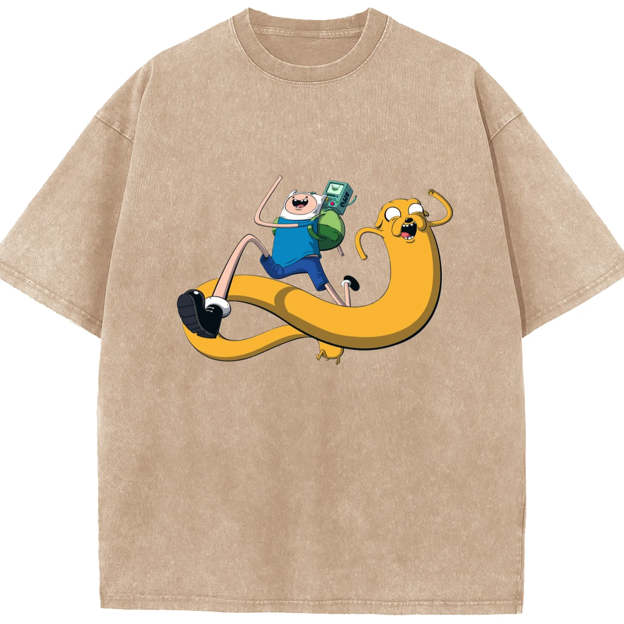 Adventure time finn funny shirt - Washed Vintage Look 230g Cotton Oversized T-Shirt With Front Heat Transfer Print – Soft, Lightweight, Stylish Fit – Comfortable Casual Wear For Sports & Everyday Use