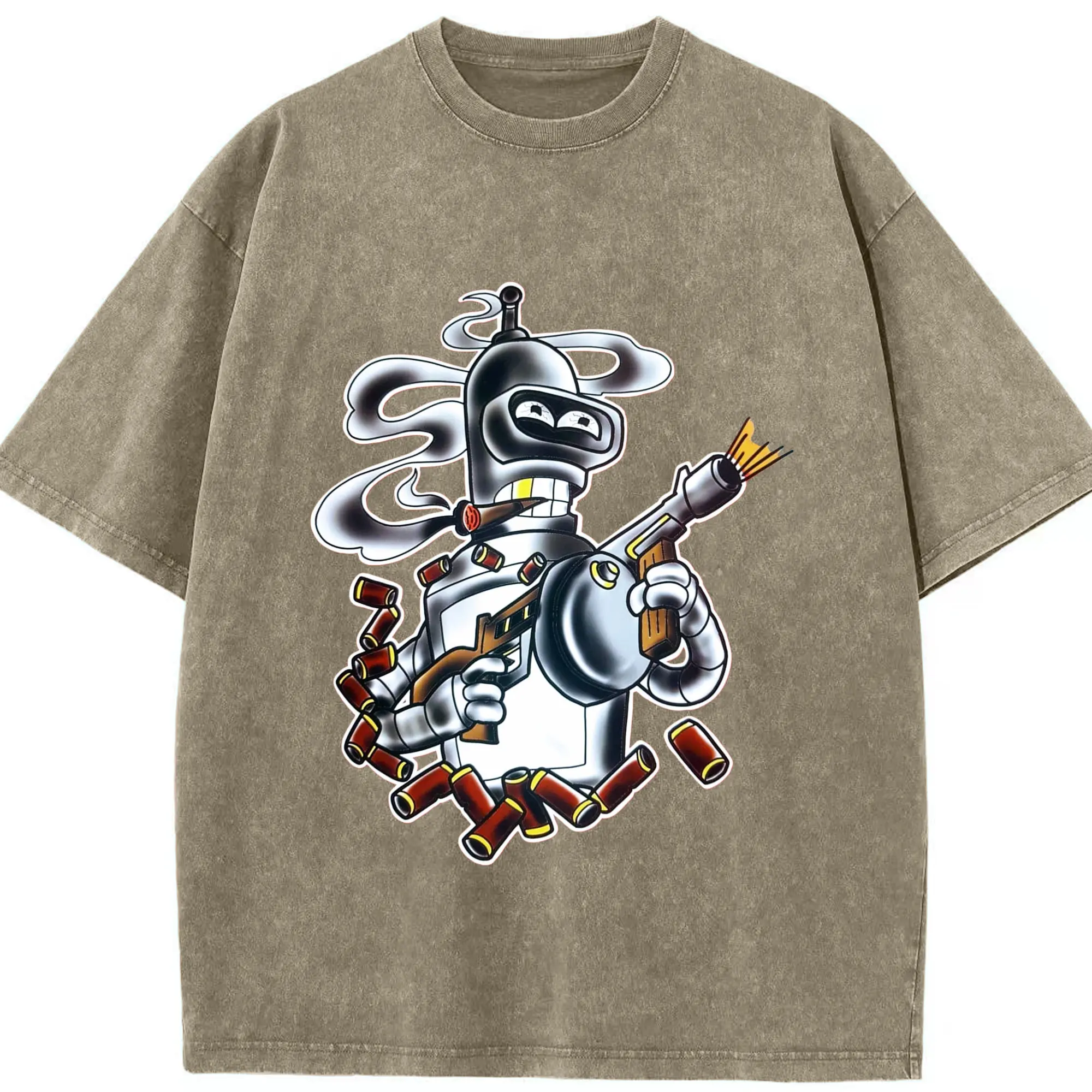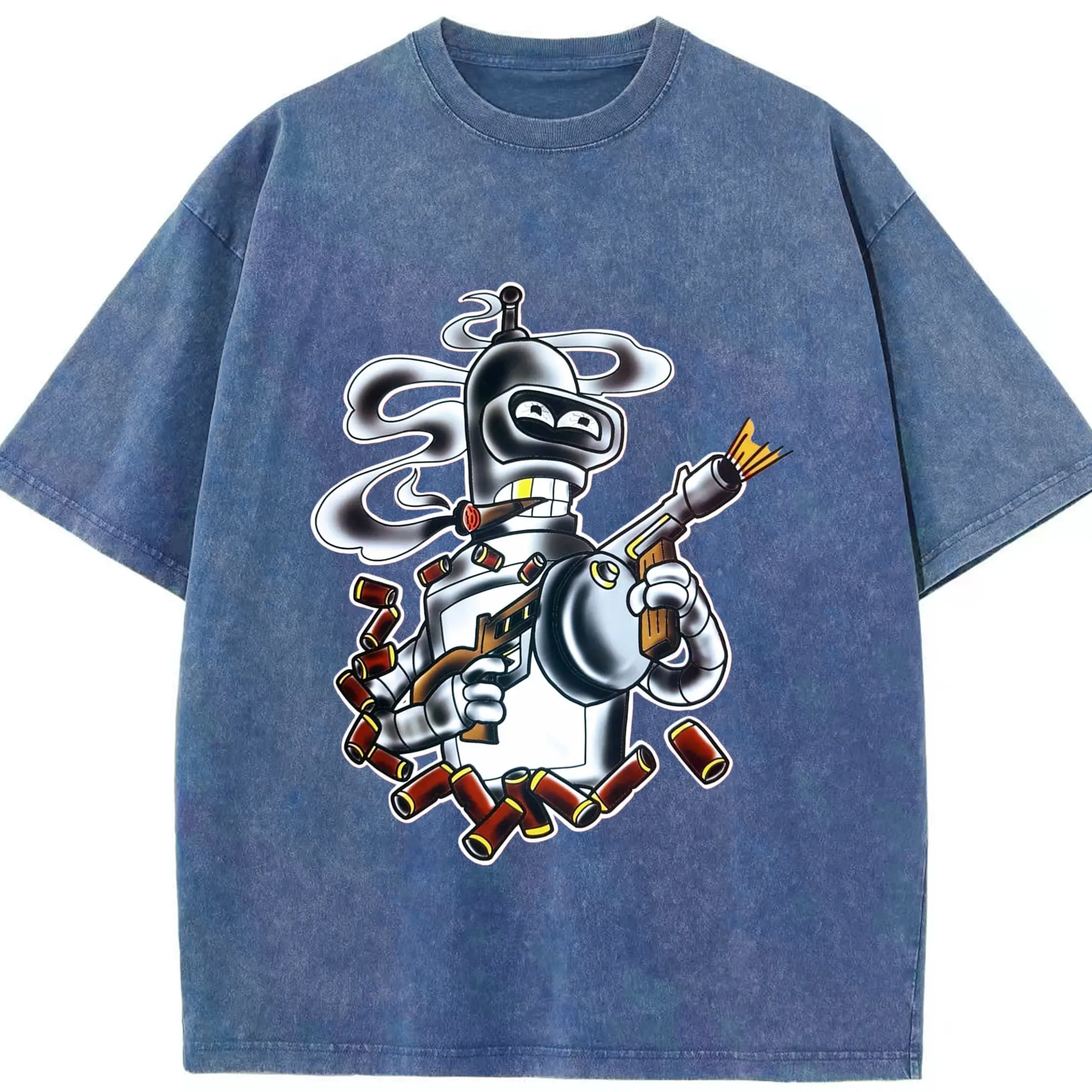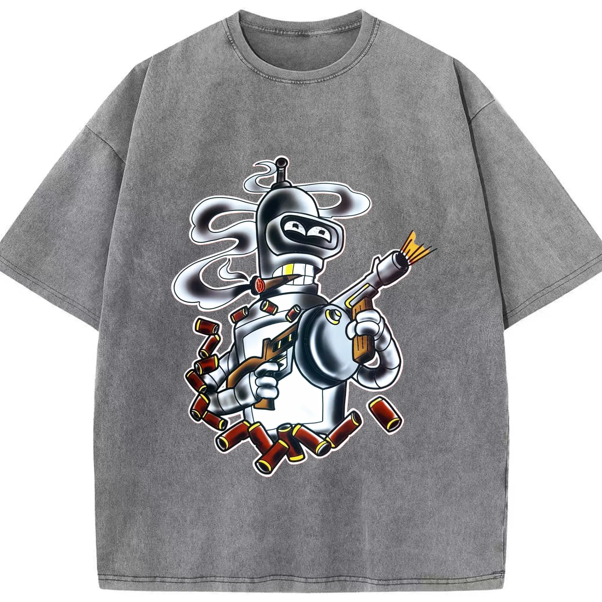 Bender Bending Rodríguez shirt - Washed Vintage Look 230g Cotton Oversized T-Shirt With Front Heat Transfer Print – Soft, Lightweight, Stylish Fit – Comfortable Casual Wear For Sports & Everyday Use
