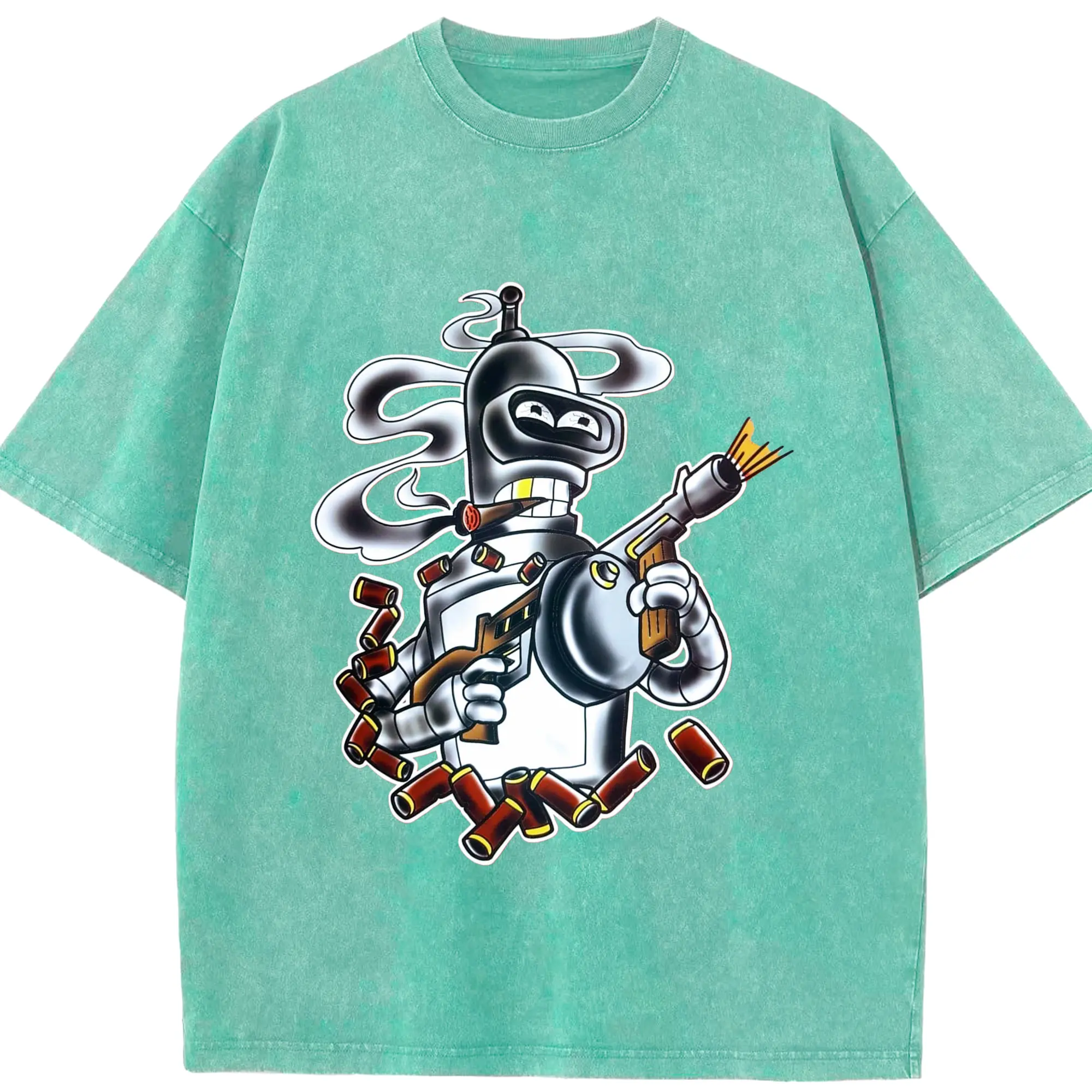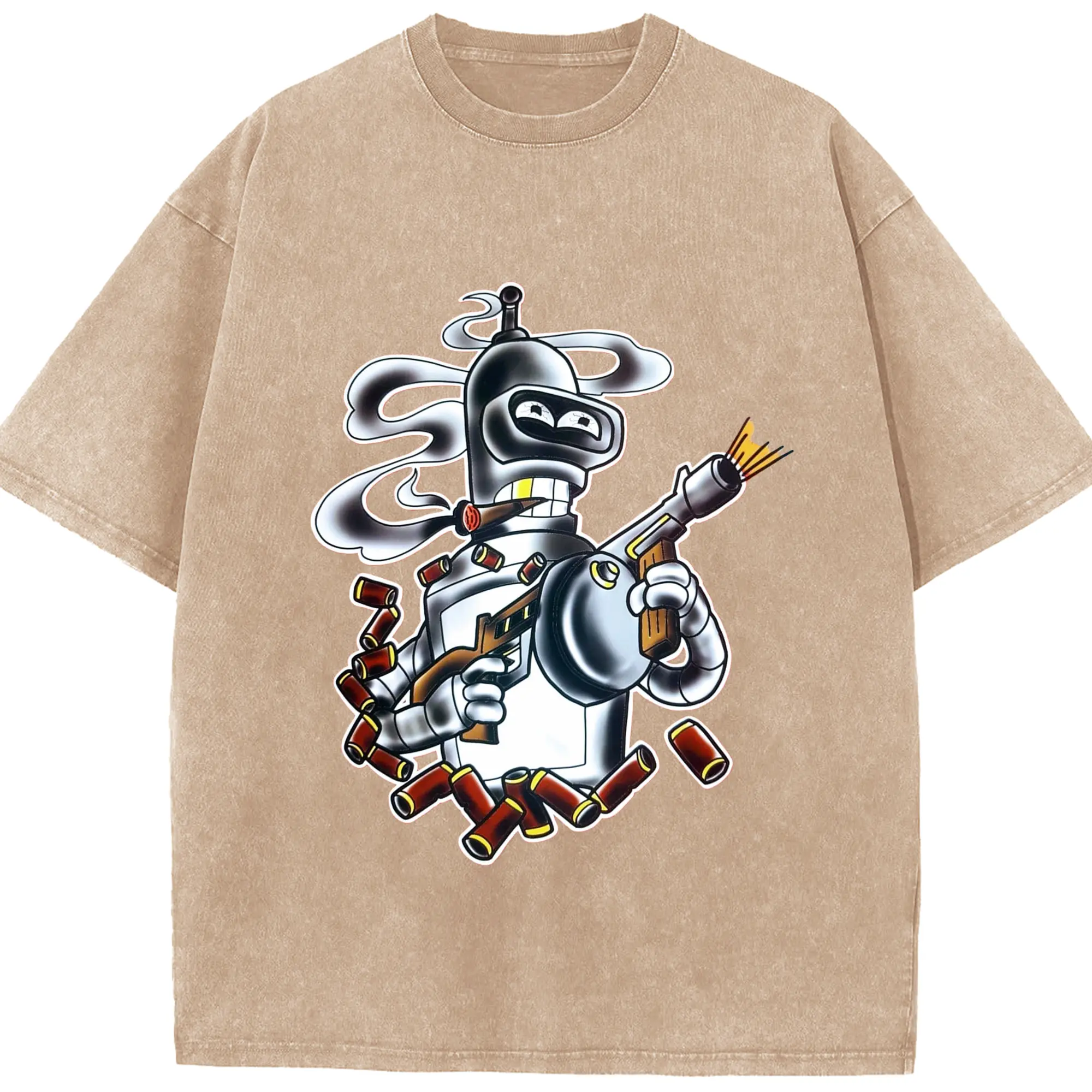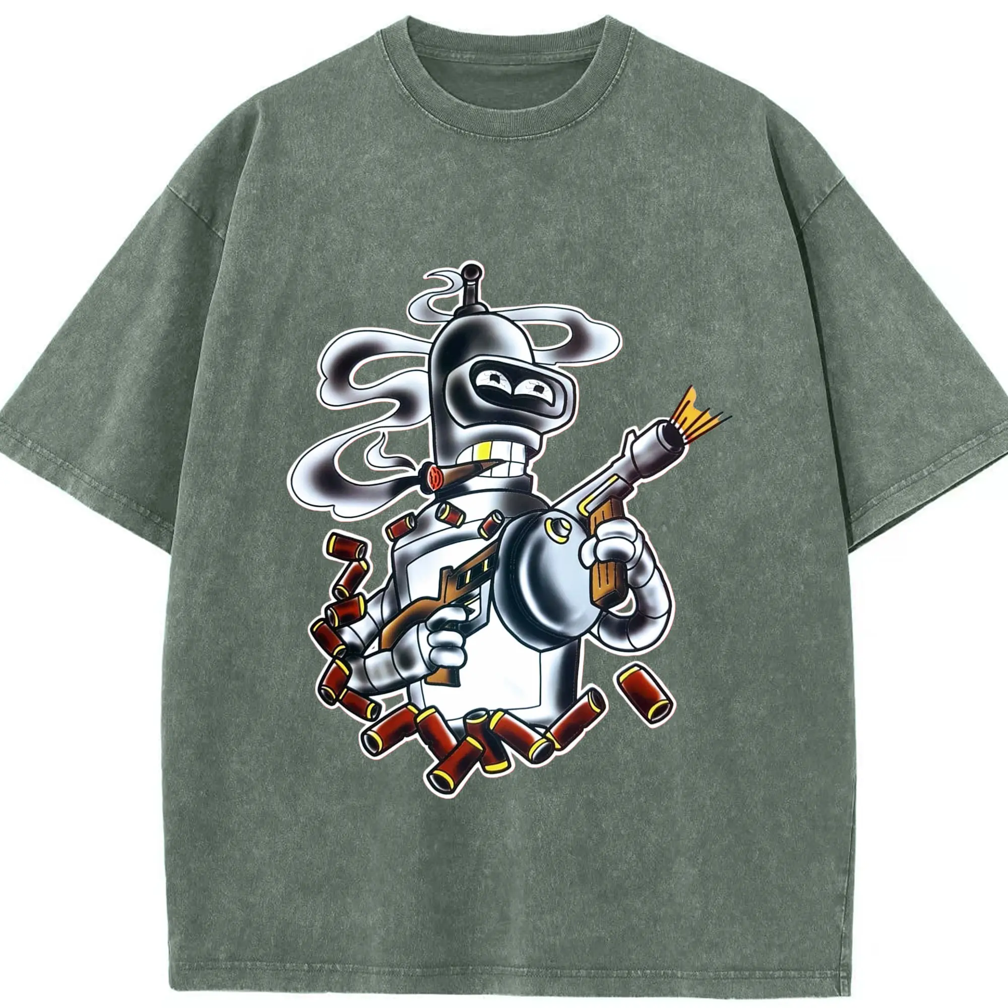 Bender Bending Rodríguez shirt - Washed Vintage Look 230g Cotton Oversized T-Shirt With Front Heat Transfer Print – Soft, Lightweight, Stylish Fit – Comfortable Casual Wear For Sports & Everyday Use
