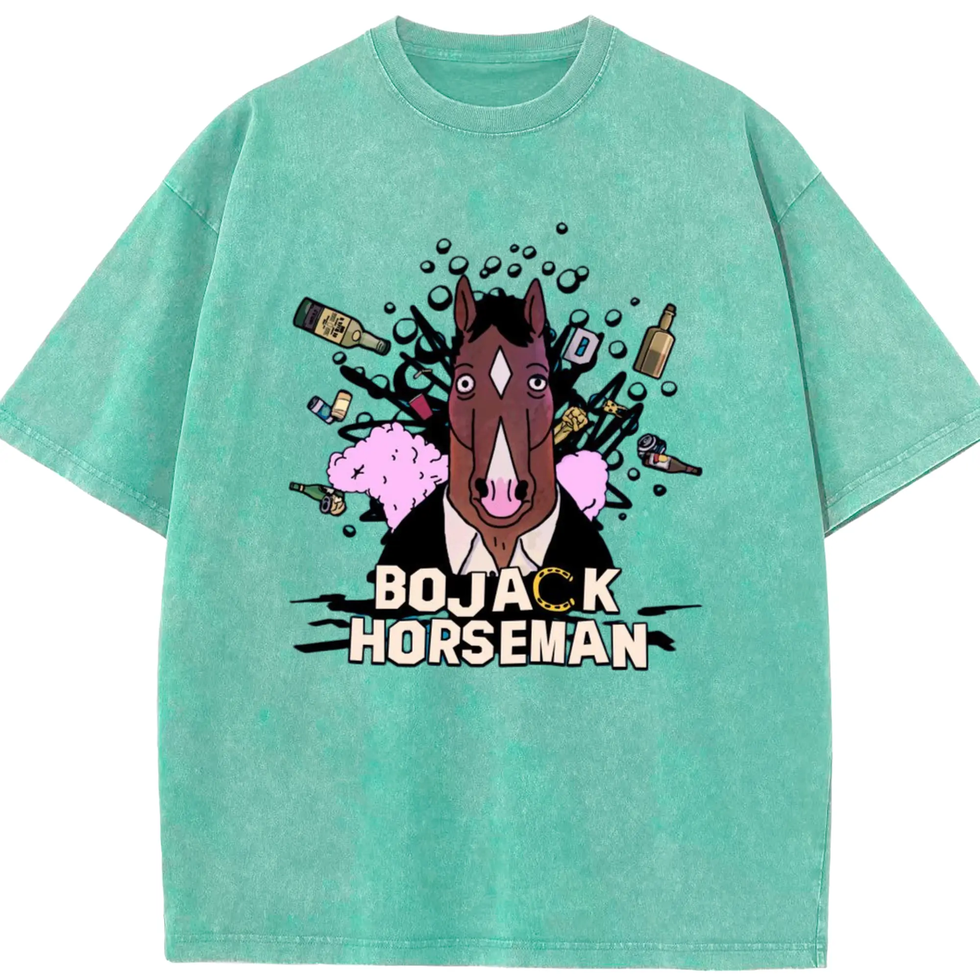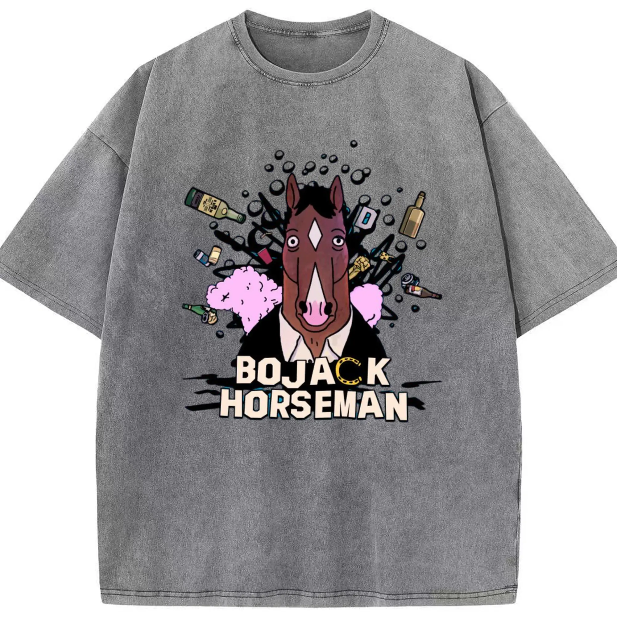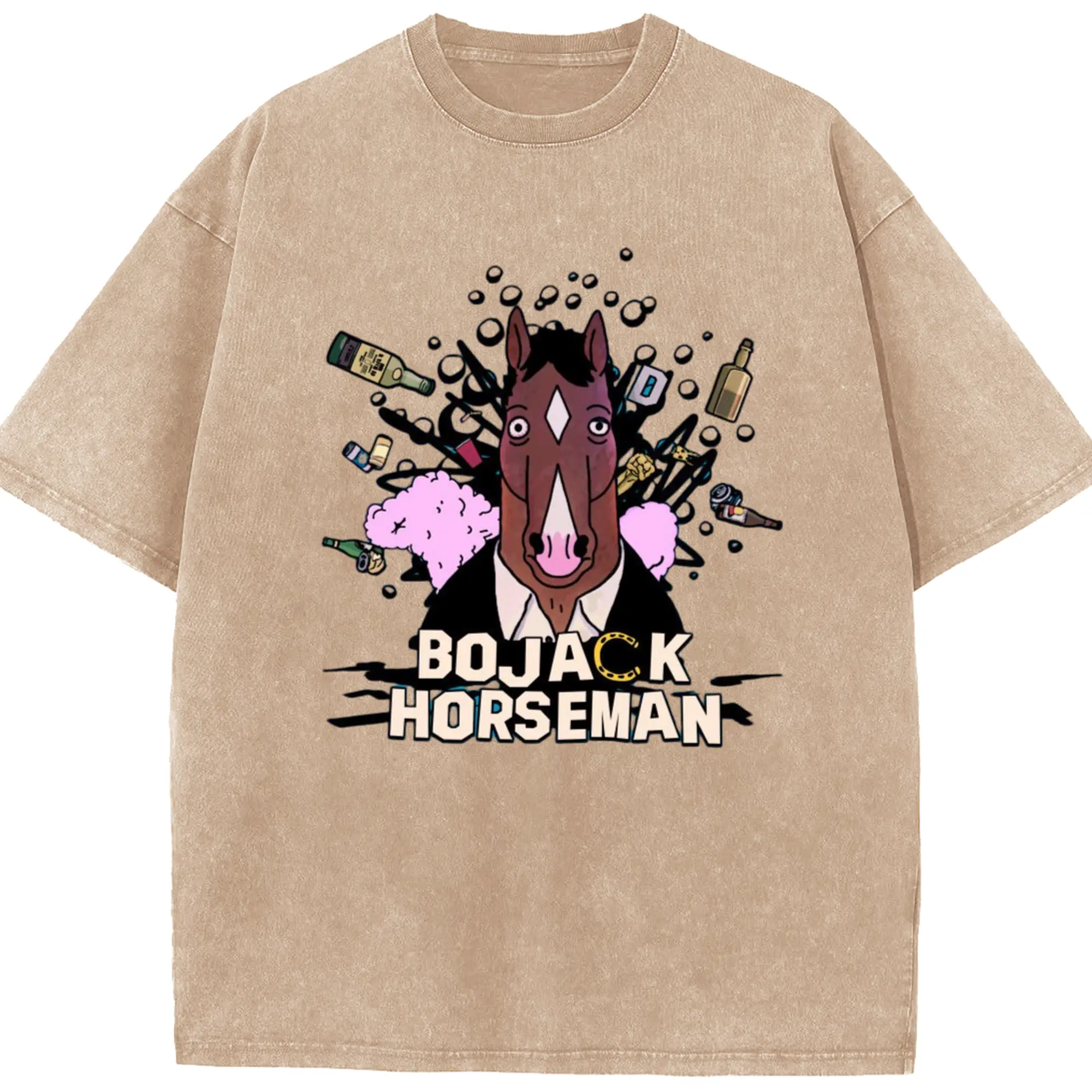 Bojack horseman graphic tee - Washed Vintage Look 230g Cotton Oversized T-Shirt With Front Heat Transfer Print – Soft, Lightweight, Stylish Fit – Comfortable Casual Wear For Sports & Everyday Use