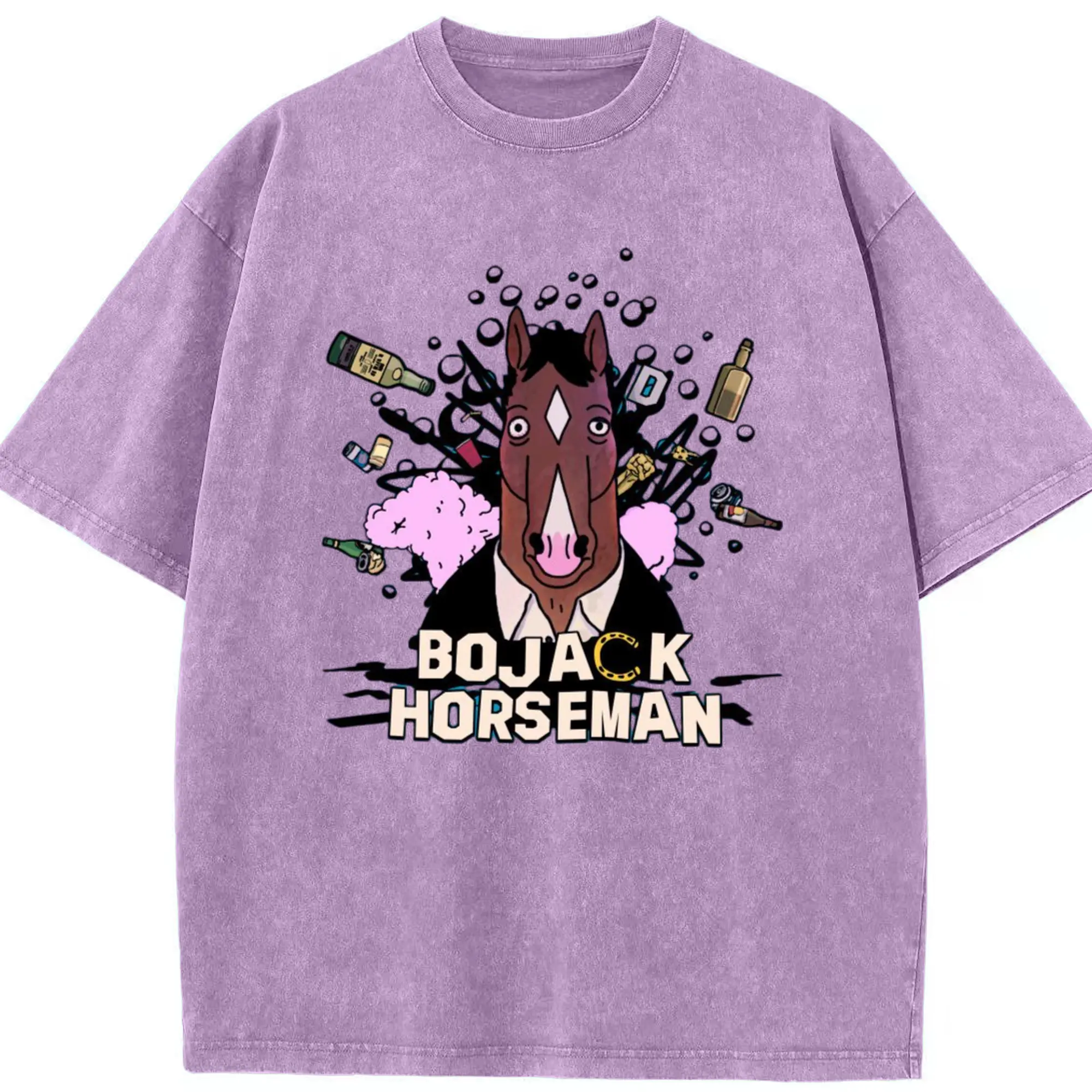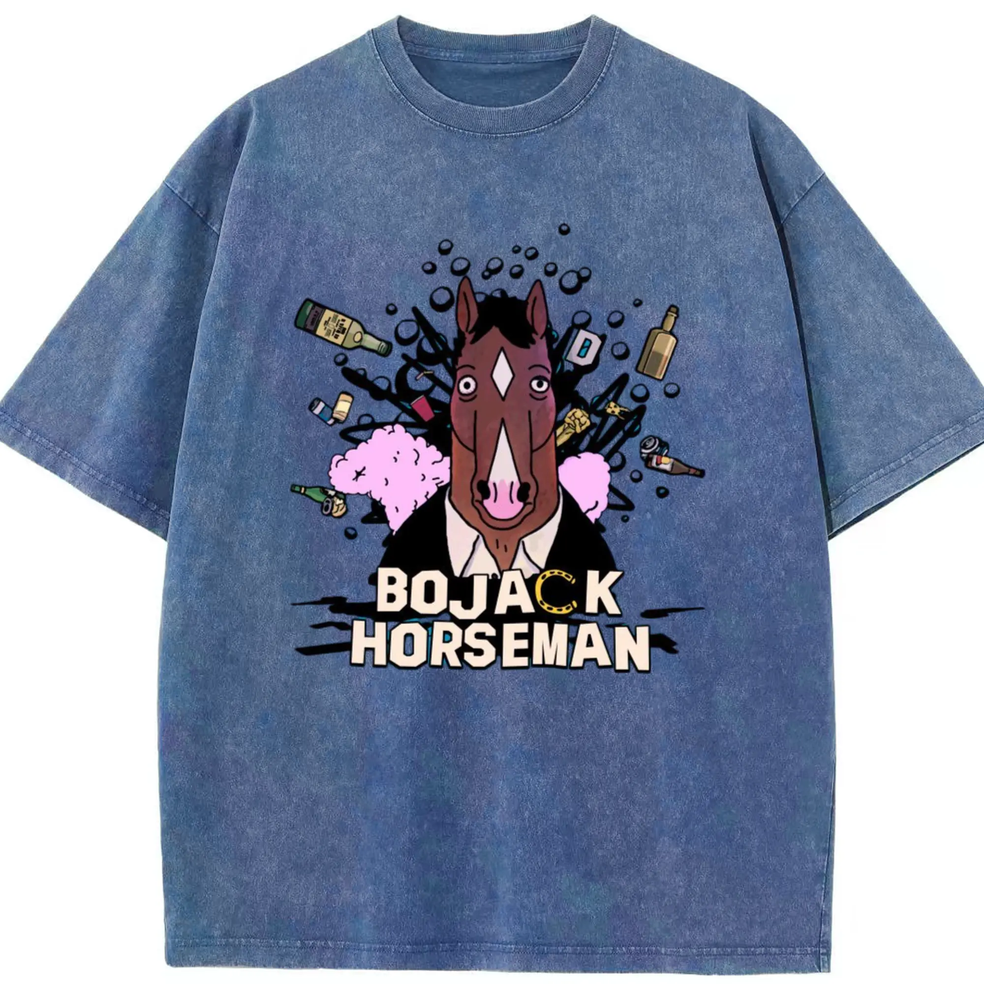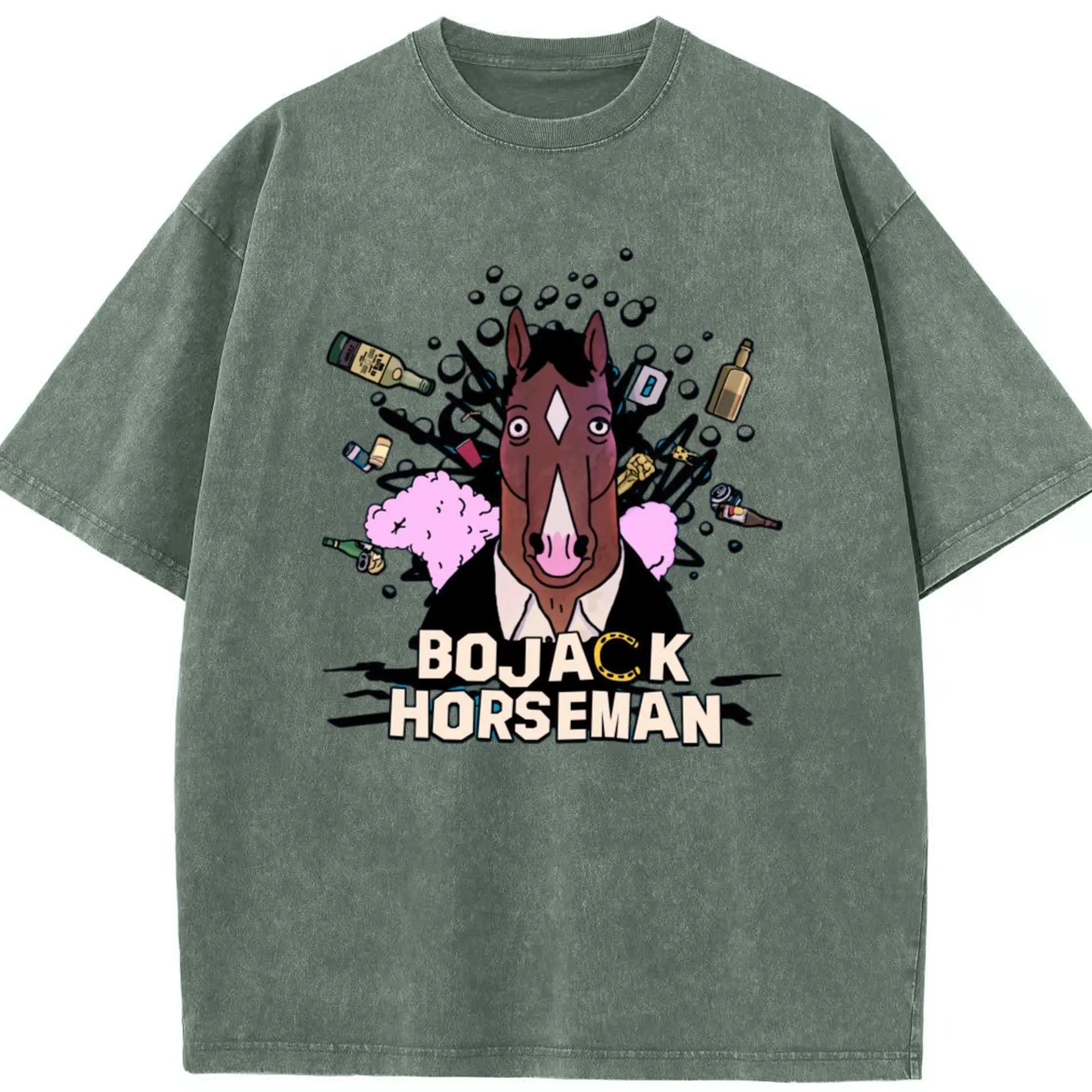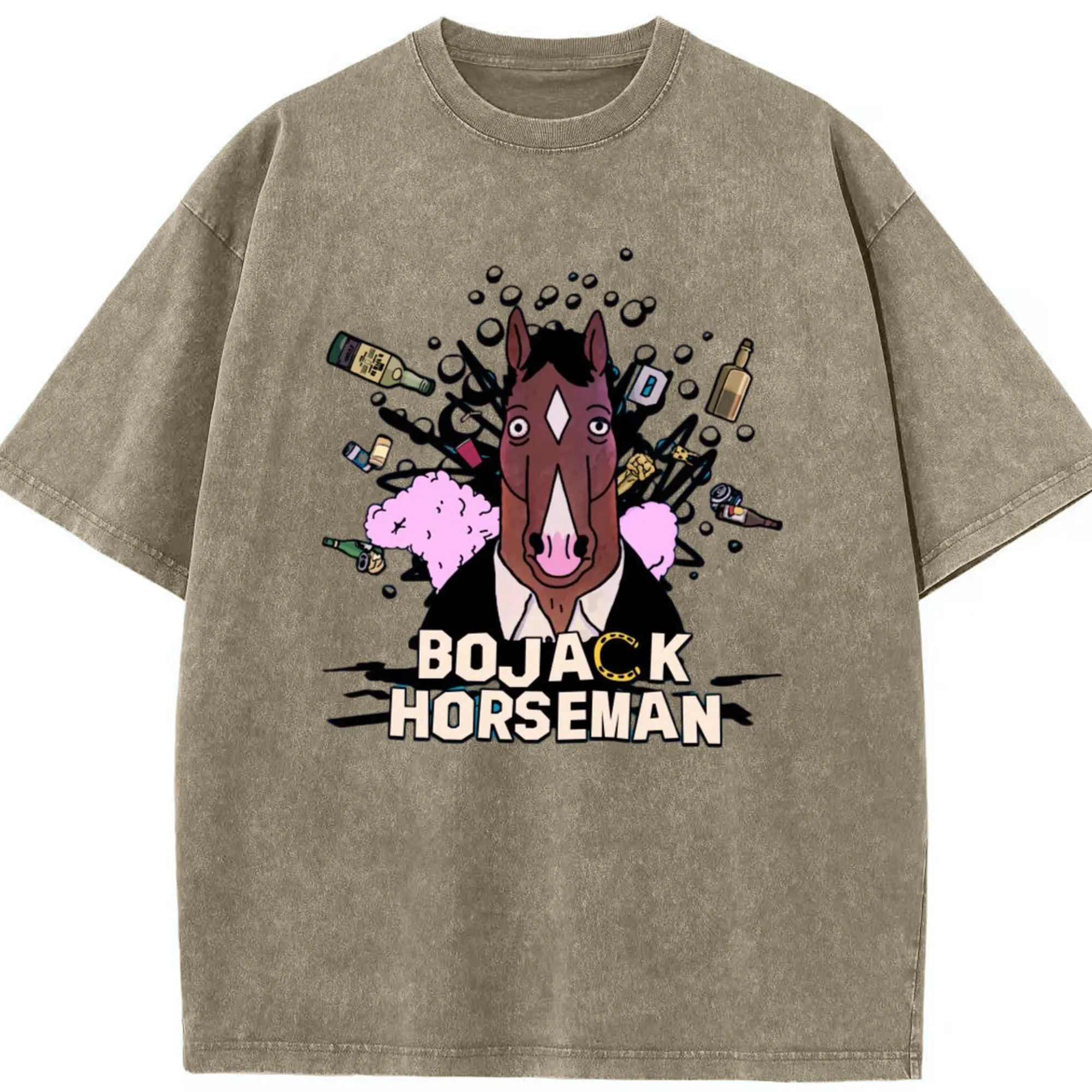 Bojack horseman graphic tee - Washed Vintage Look 230g Cotton Oversized T-Shirt With Front Heat Transfer Print – Soft, Lightweight, Stylish Fit – Comfortable Casual Wear For Sports & Everyday Use