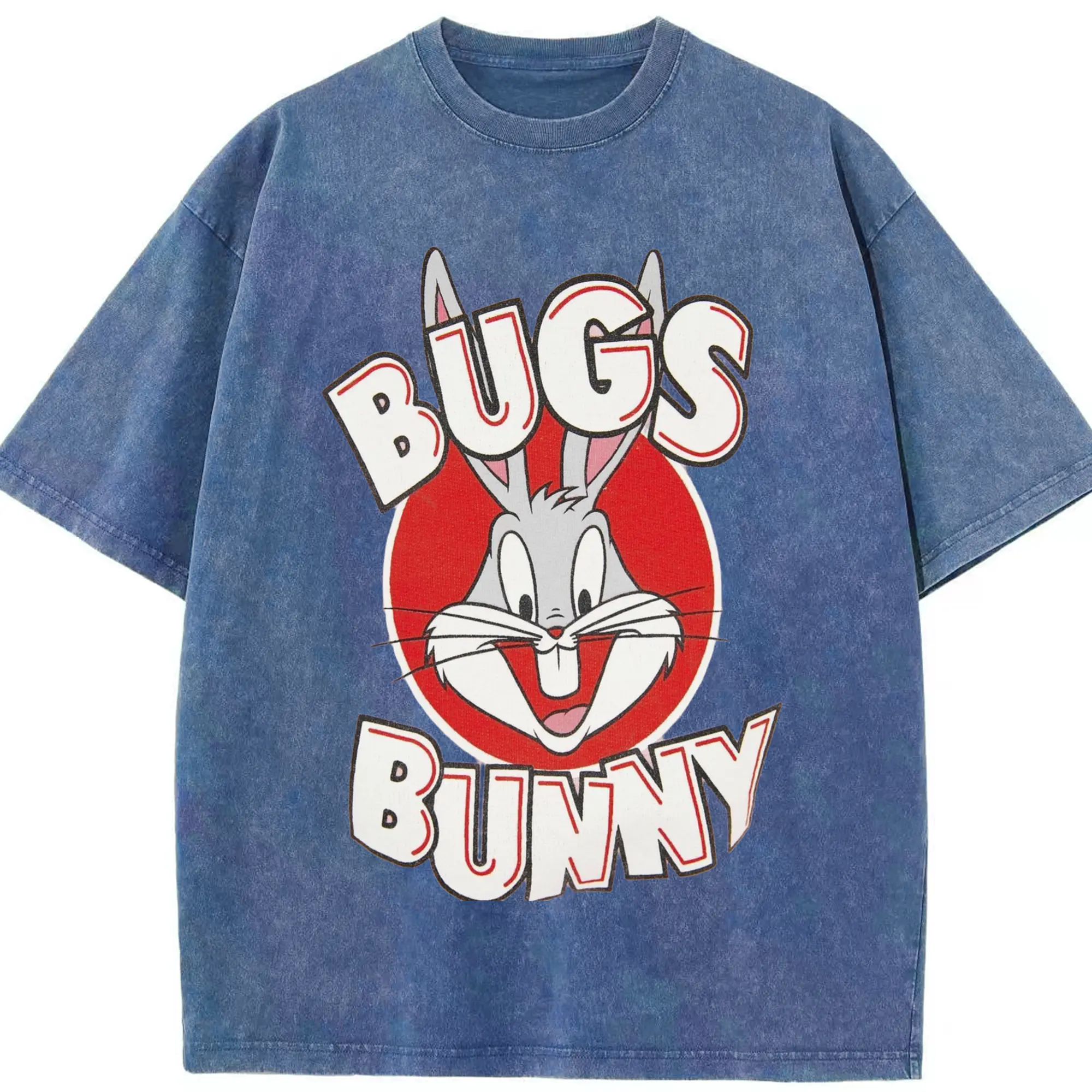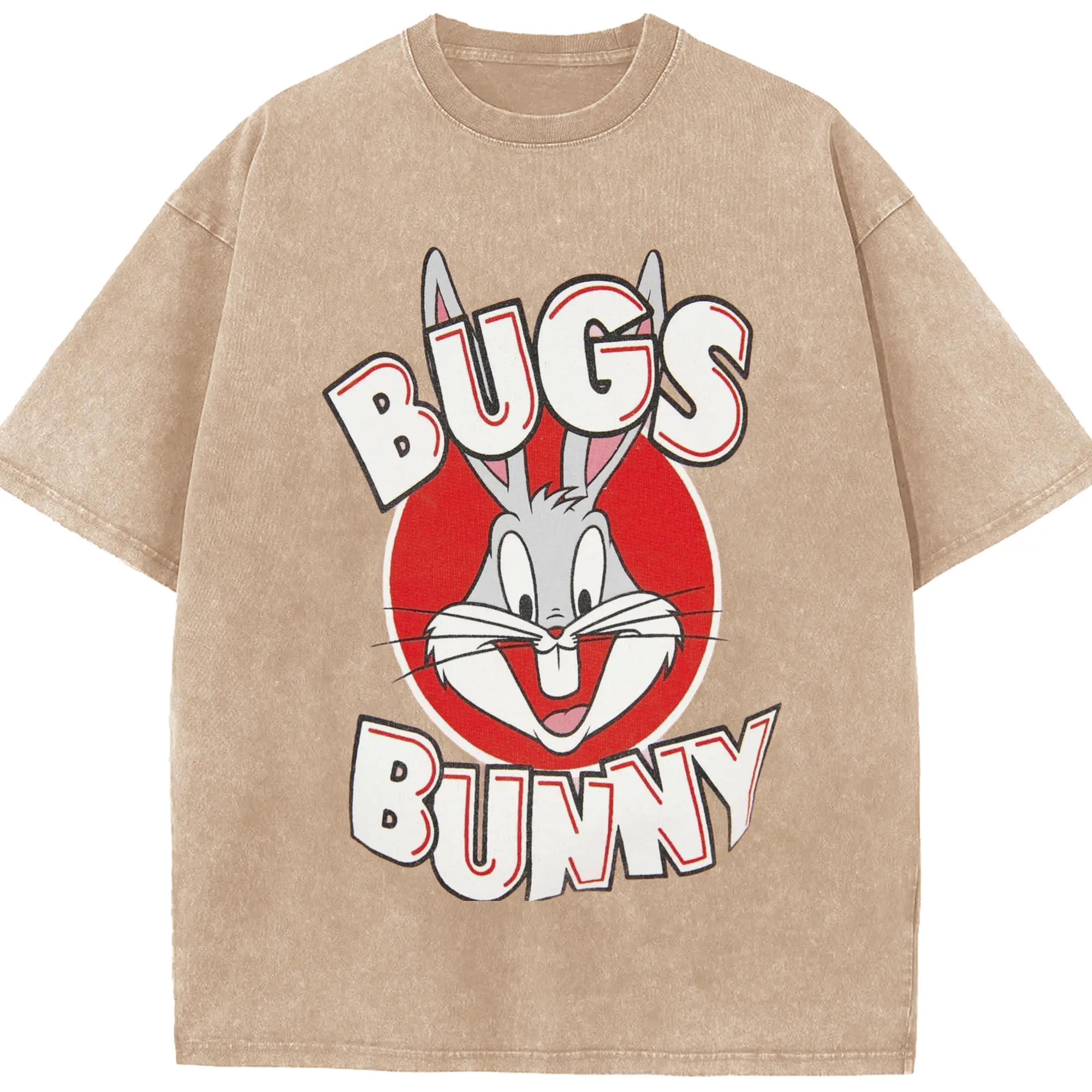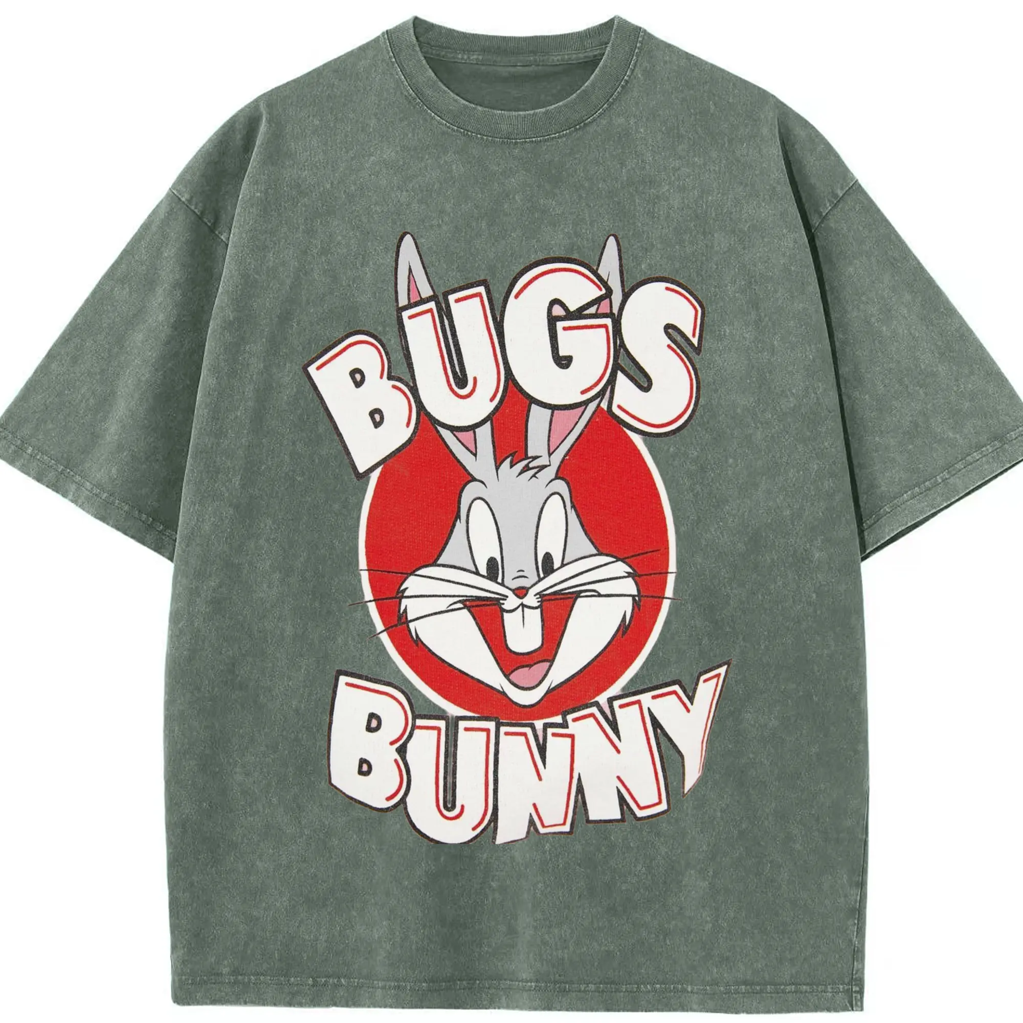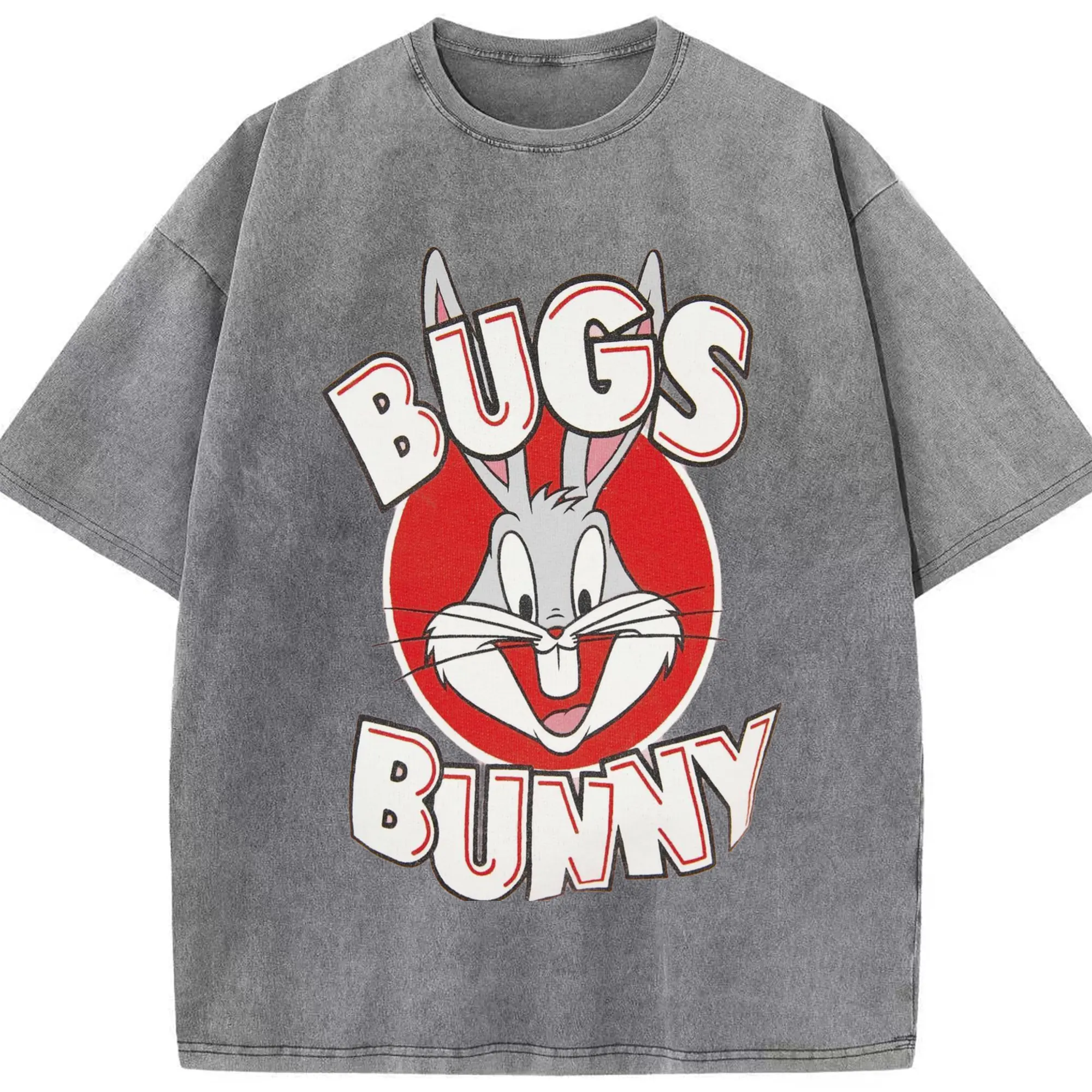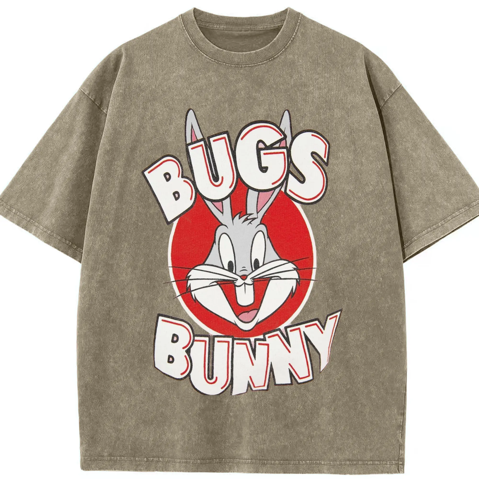Bugs bunny face graphic shirt - Washed Vintage Look 230g Cotton Oversized T-Shirt With Front Heat Transfer Print – Soft, Lightweight, Stylish Fit – Comfortable Casual Wear For Sports & Everyday Use
