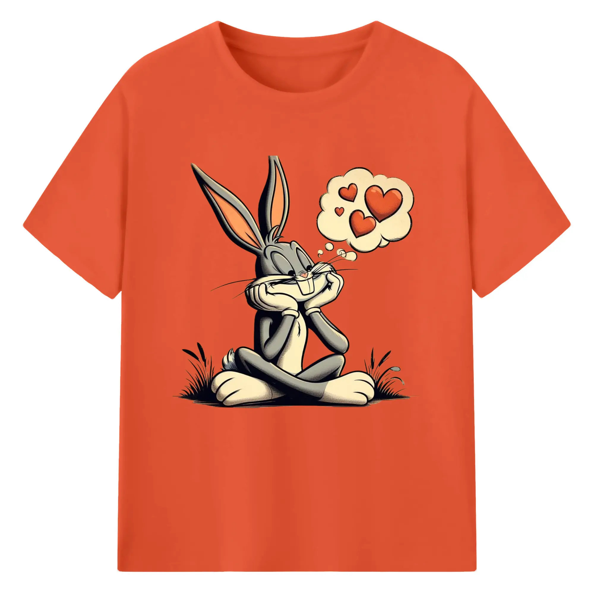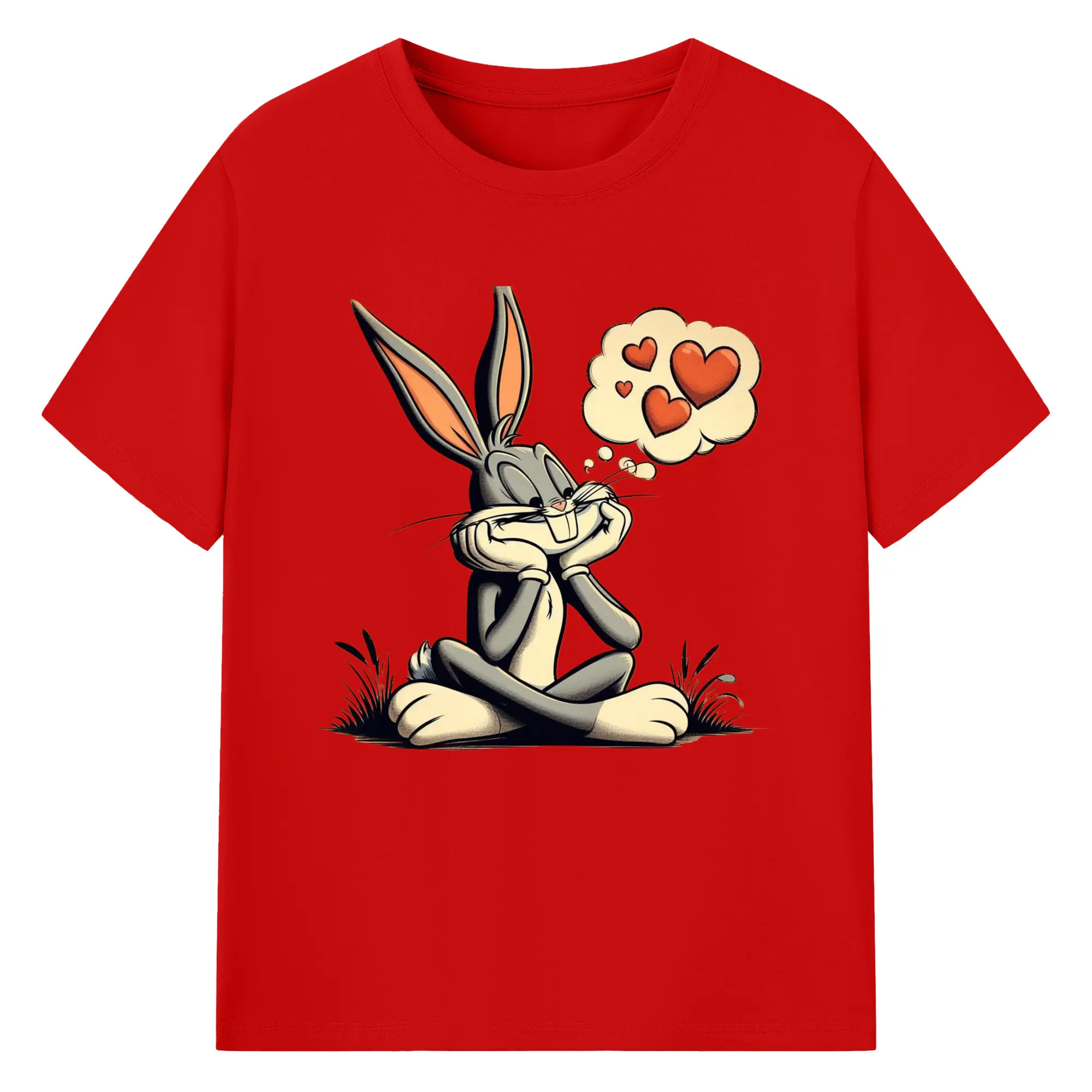 Bugs bunny loving t shirt​ - 180g Cotton T-Shirt With Front Heat Transfer Print – Soft, Lightweight, Fitted Design – Comfortable Casual Wear For Sports & Everyday Use