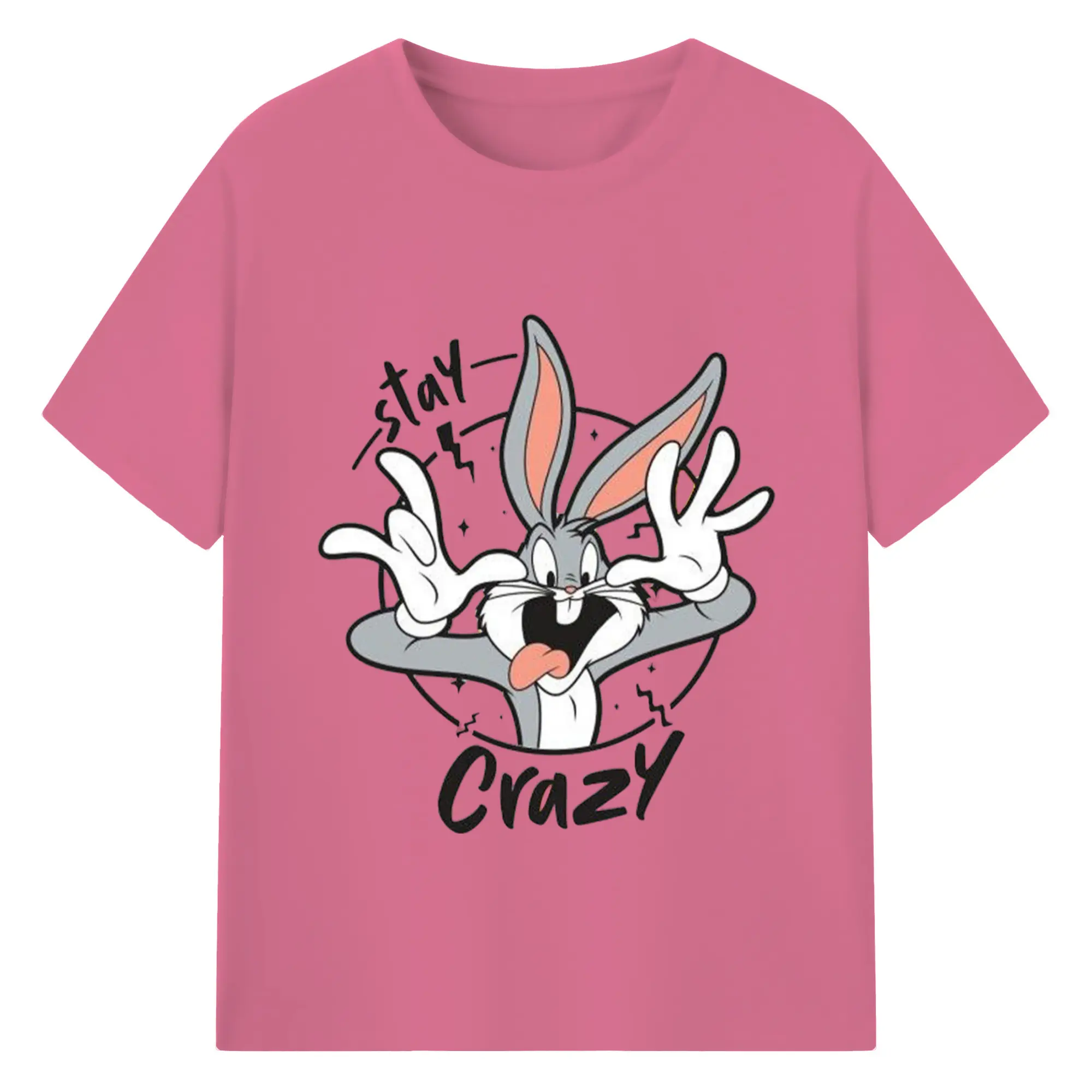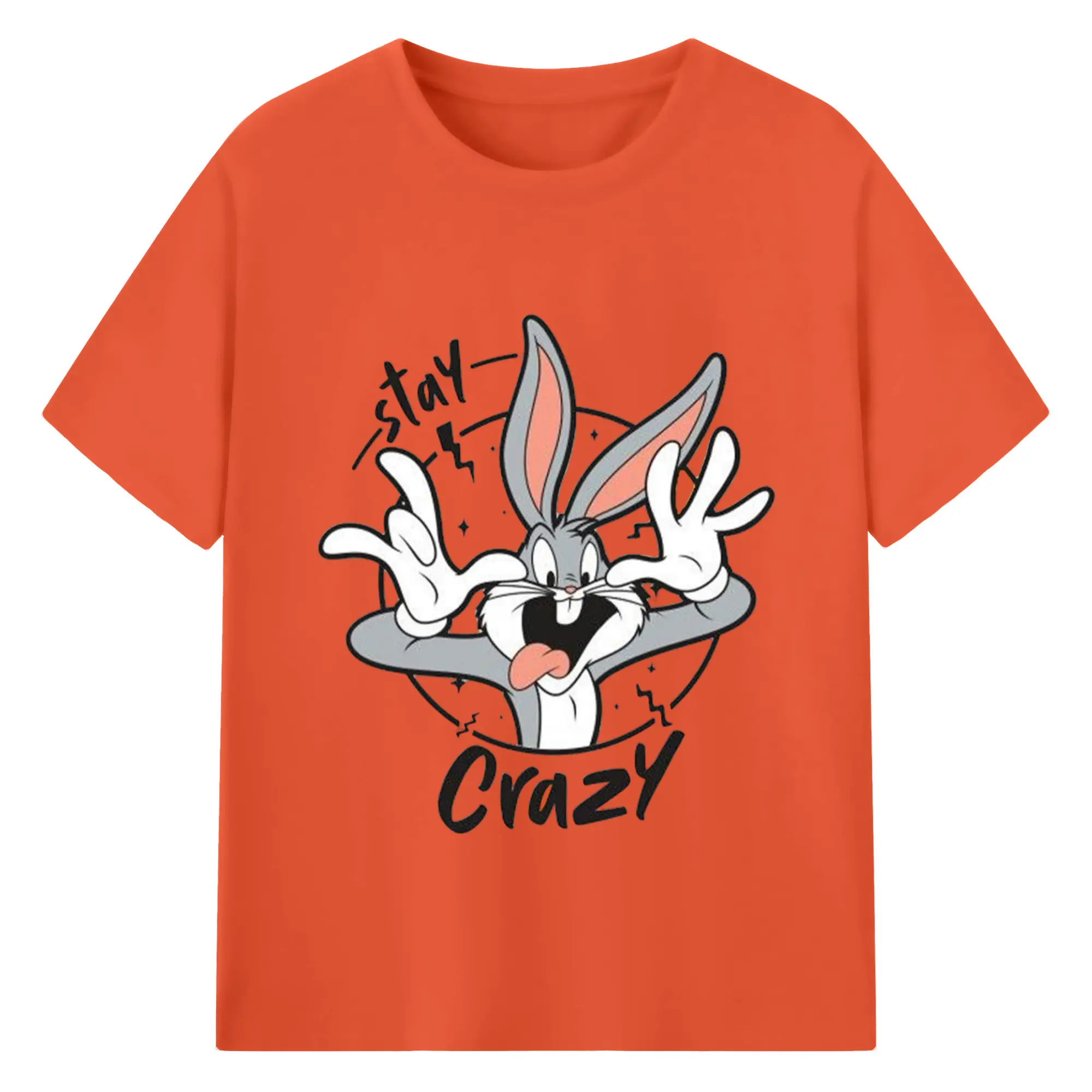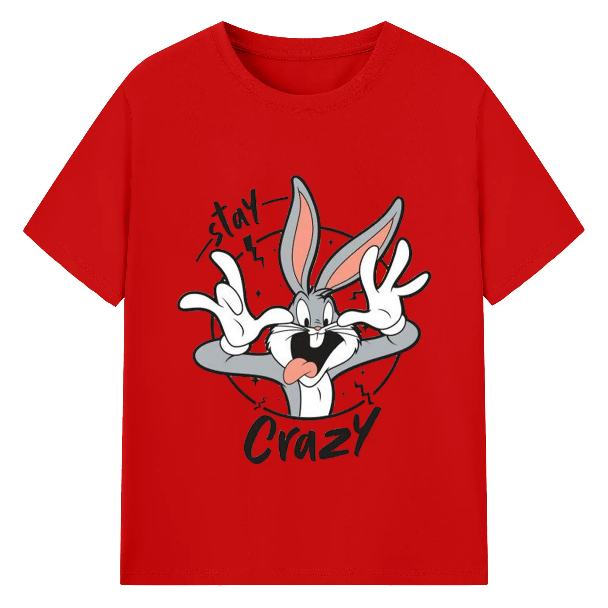 Bugs bunny stay crazy face shirt - 180g Cotton T-Shirt With Front Heat Transfer Print – Soft, Lightweight, Fitted Design – Comfortable Casual Wear For Sports & Everyday Use