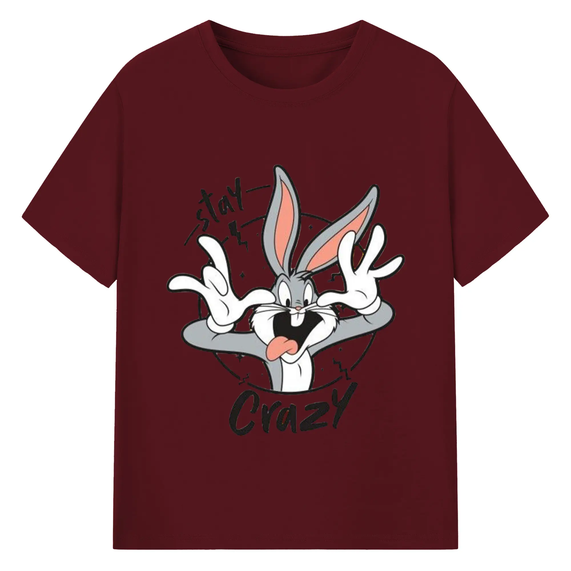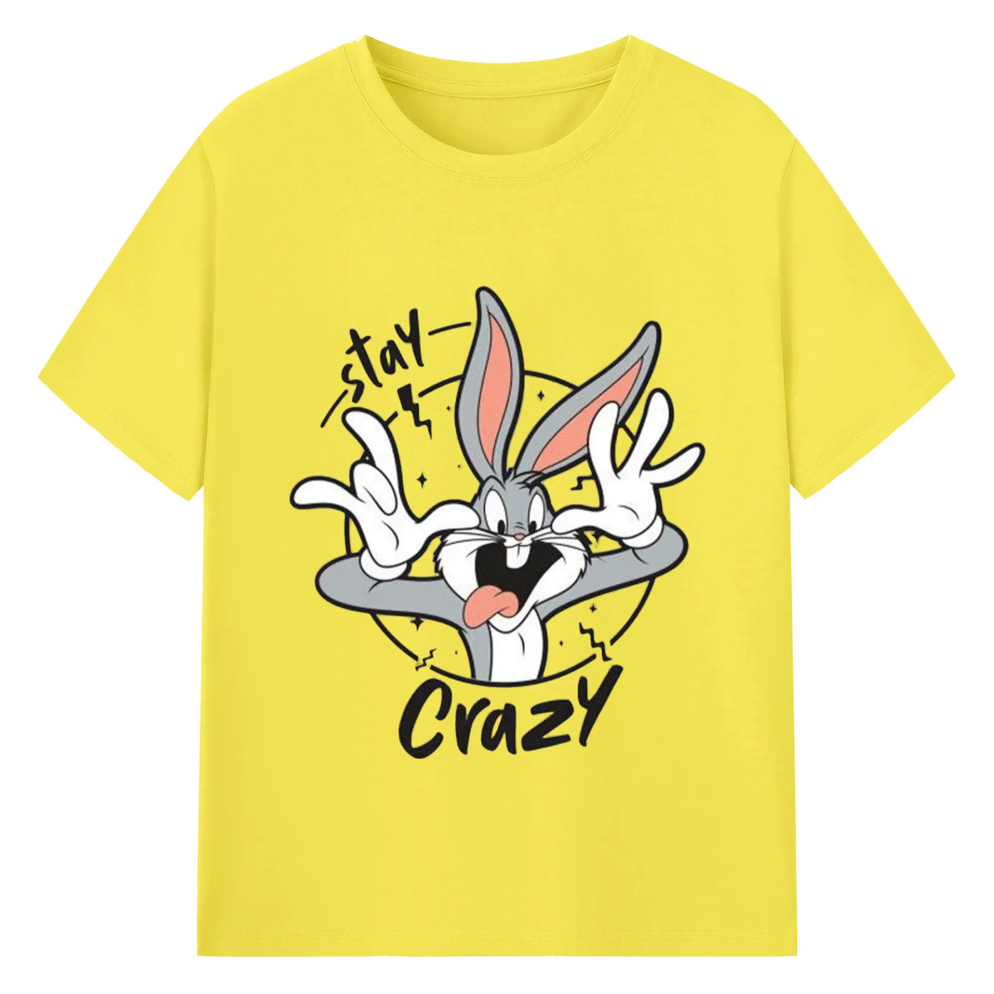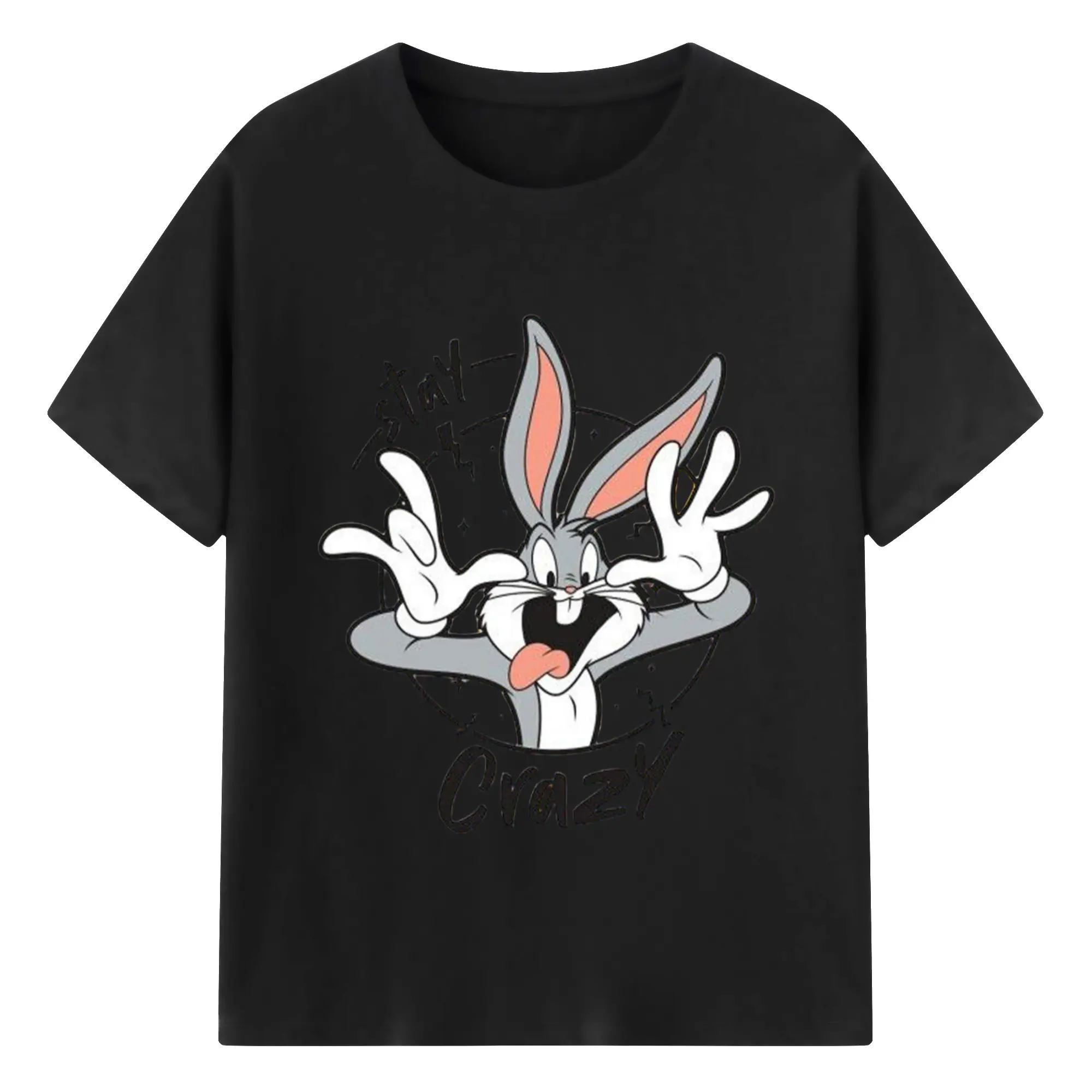 Bugs bunny stay crazy face shirt - 180g Cotton T-Shirt With Front Heat Transfer Print – Soft, Lightweight, Fitted Design – Comfortable Casual Wear For Sports & Everyday Use