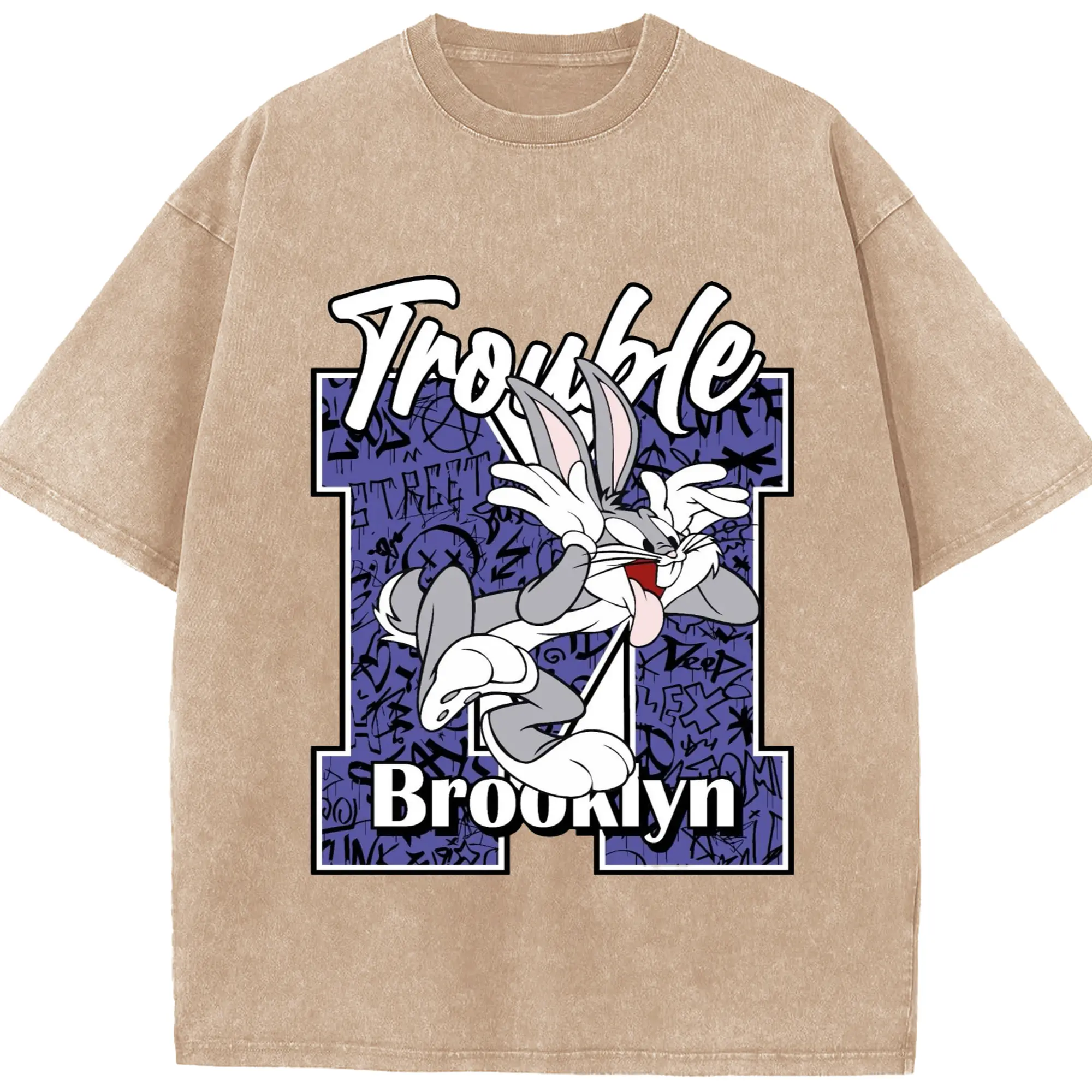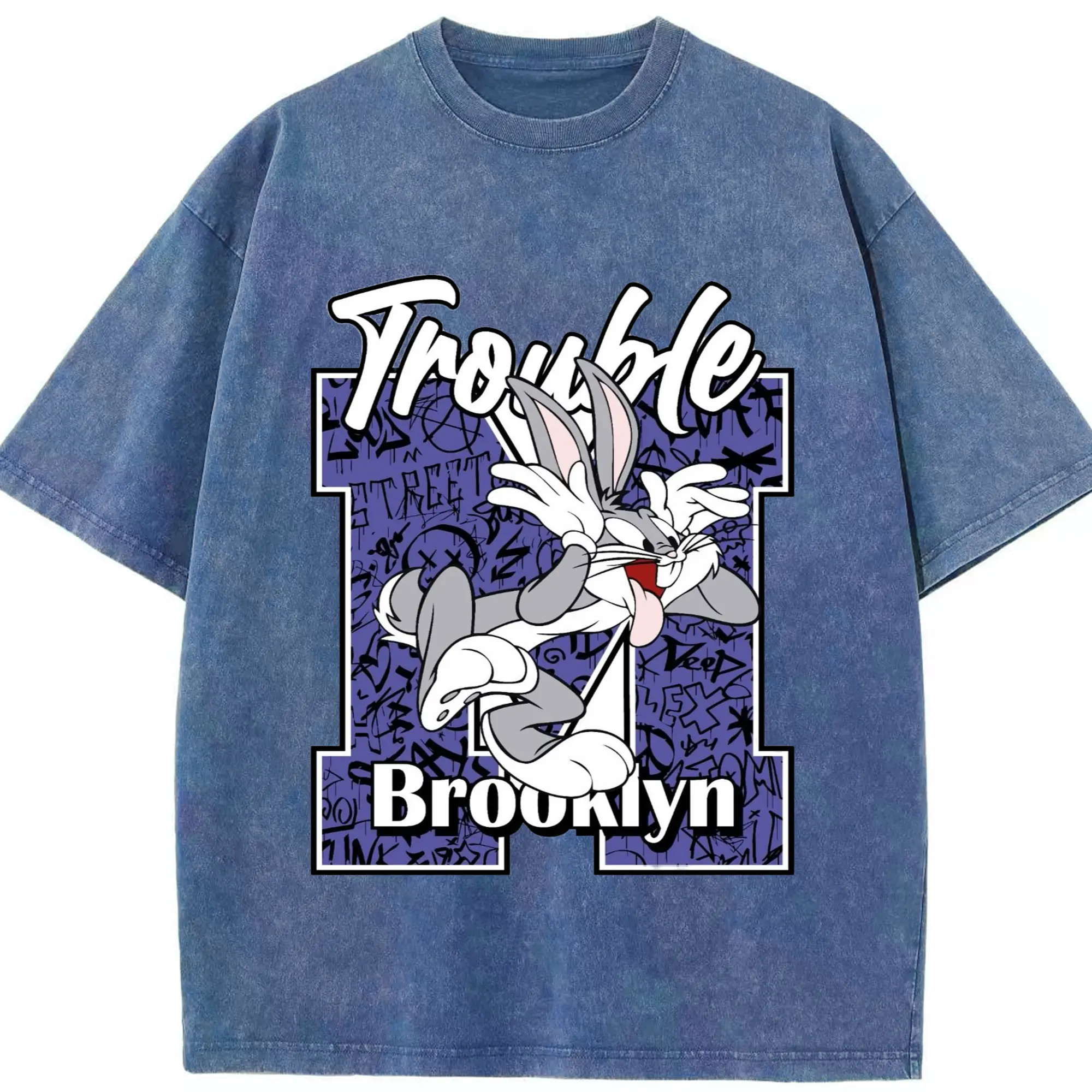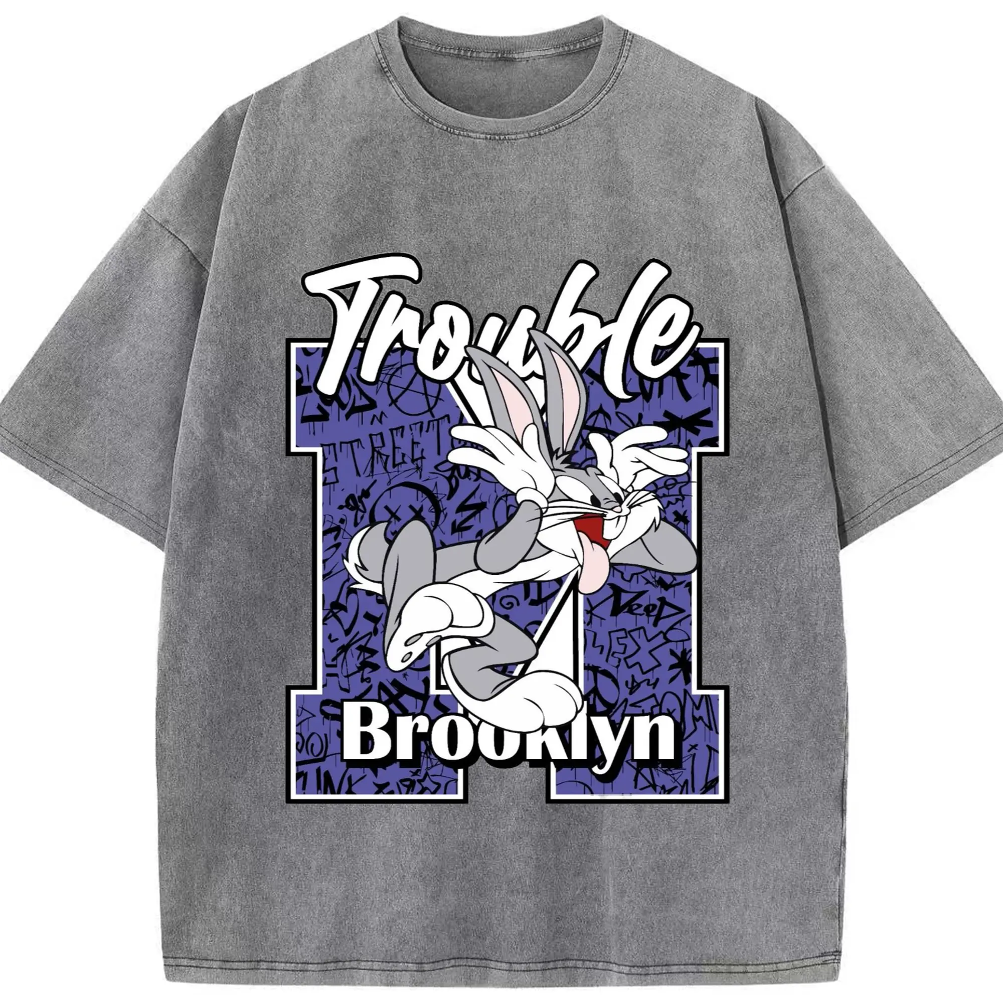 Bugs bunny vintage t-shirt - Washed Vintage Look 230g Cotton Oversized T-Shirt With Front Heat Transfer Print – Soft, Lightweight, Stylish Fit – Comfortable Casual Wear For Sports & Everyday Use