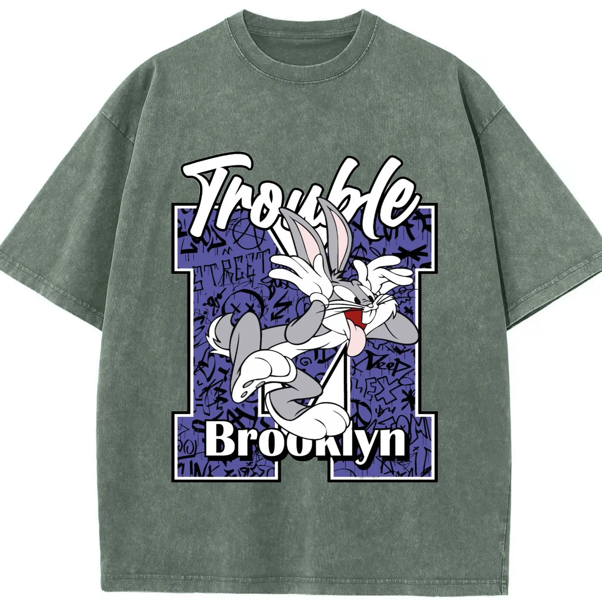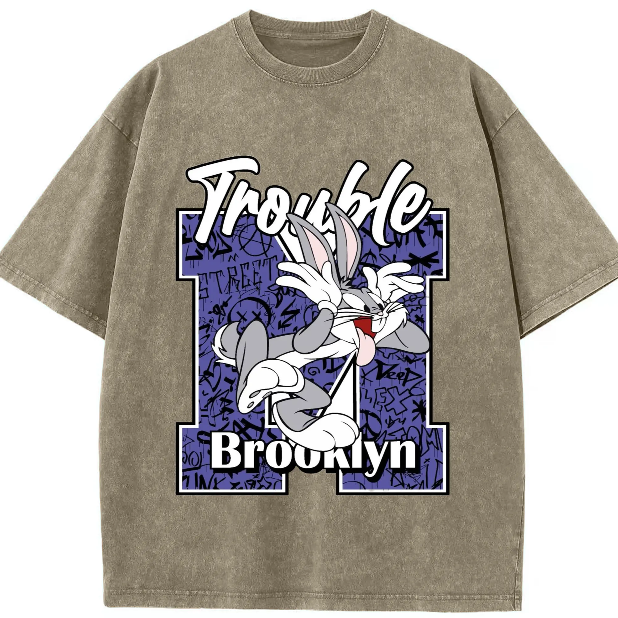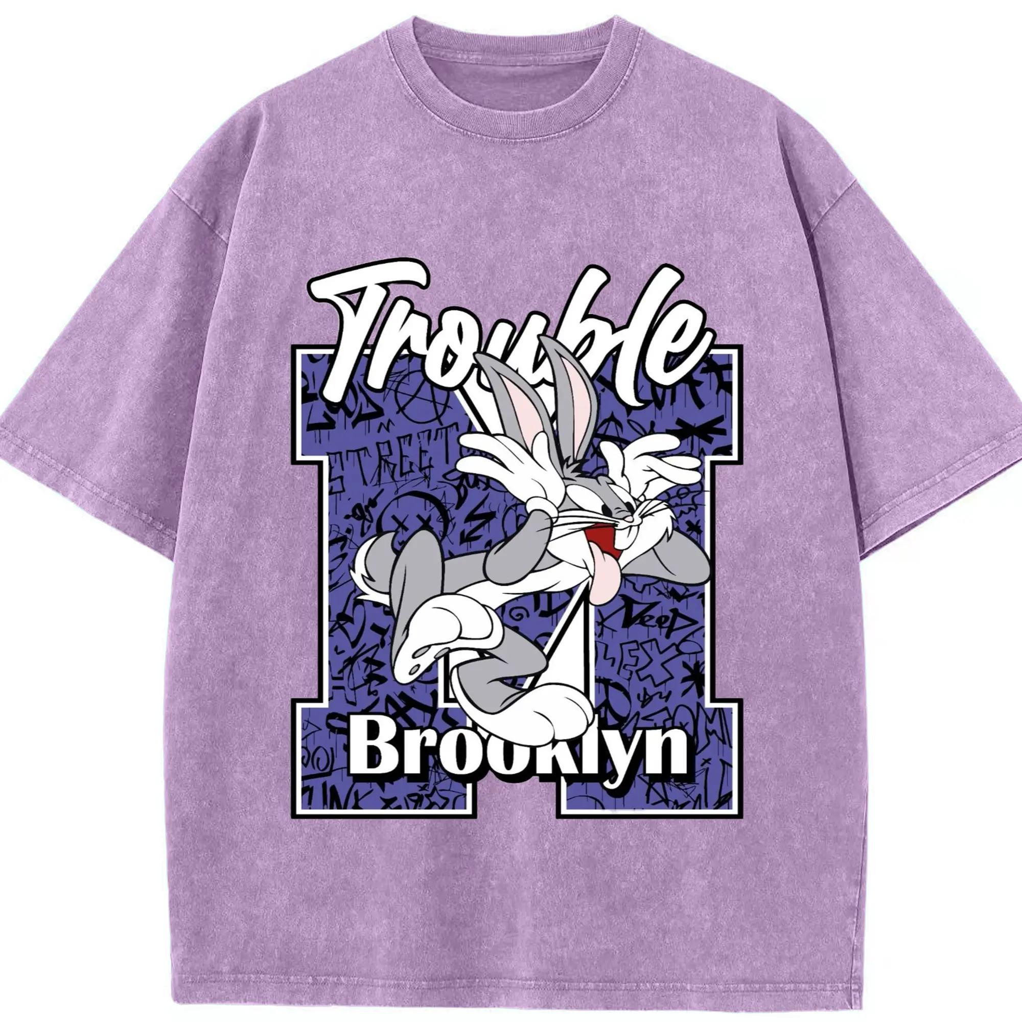 Bugs bunny vintage t-shirt - Washed Vintage Look 230g Cotton Oversized T-Shirt With Front Heat Transfer Print – Soft, Lightweight, Stylish Fit – Comfortable Casual Wear For Sports & Everyday Use