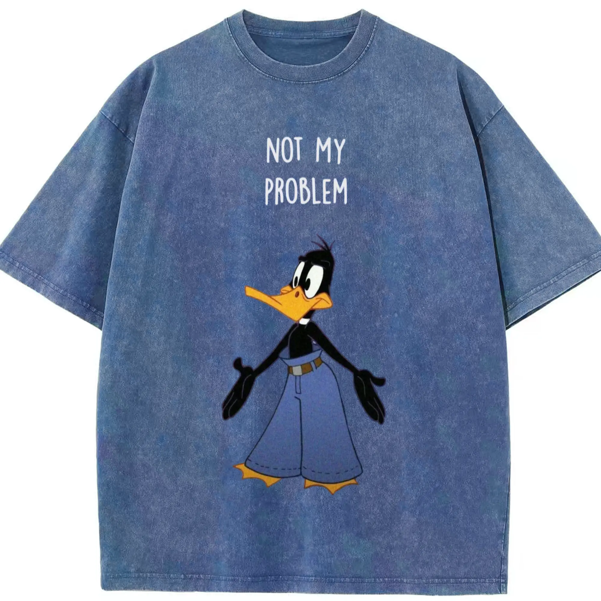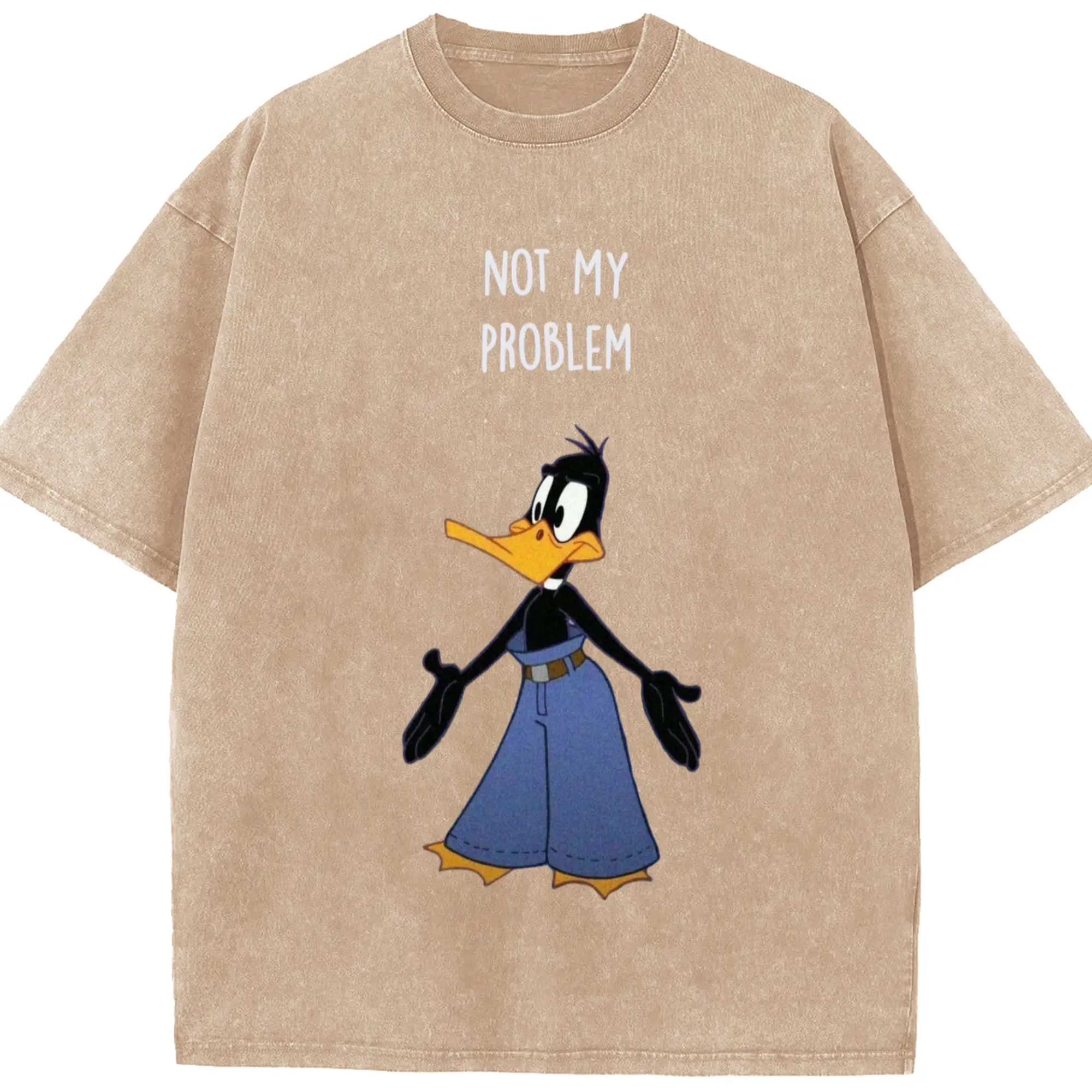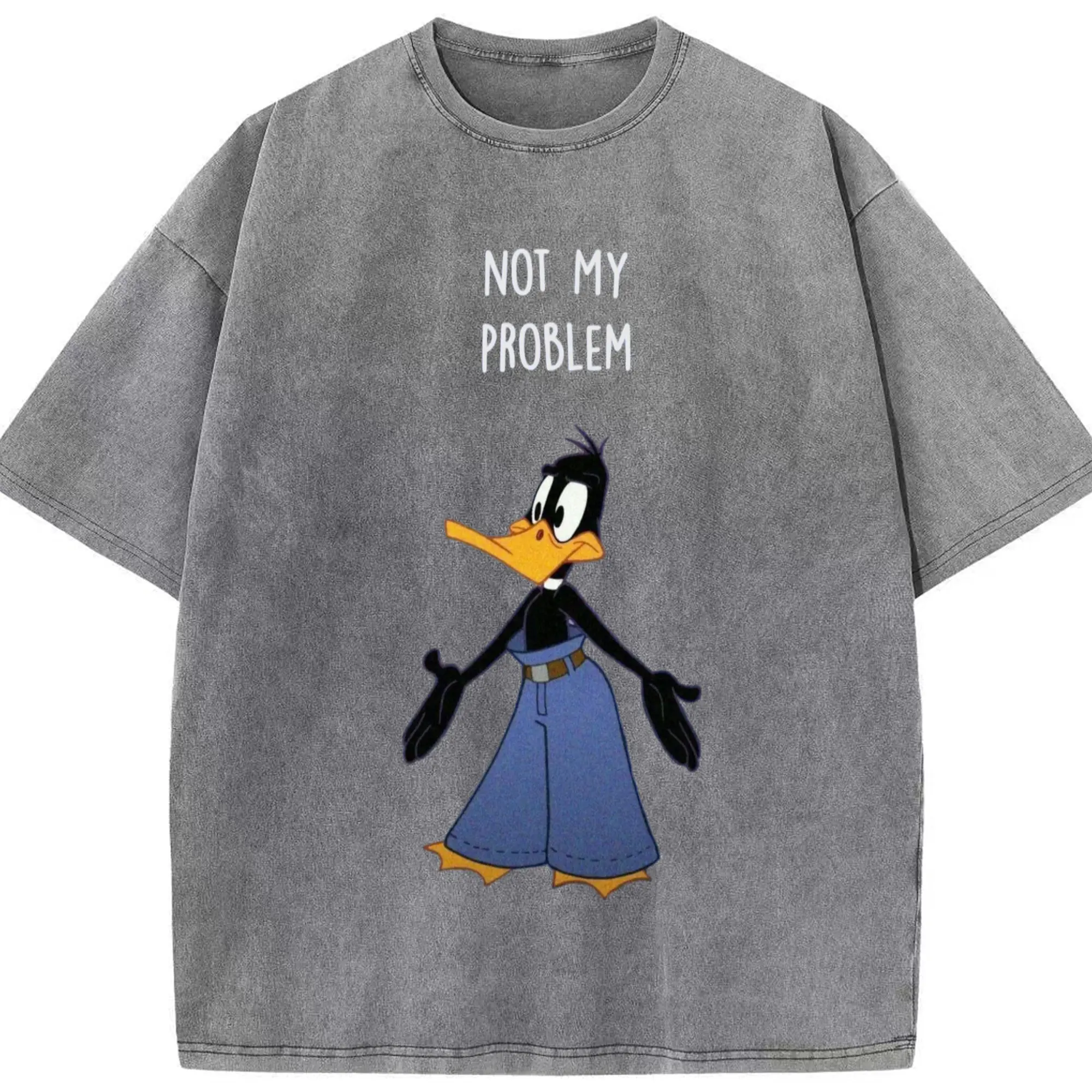 Daffy Duck tee - Washed Vintage Look 230g Cotton Oversized T-Shirt With Front Heat Transfer Print – Soft, Lightweight, Stylish Fit – Comfortable Casual Wear For Sports & Everyday Use