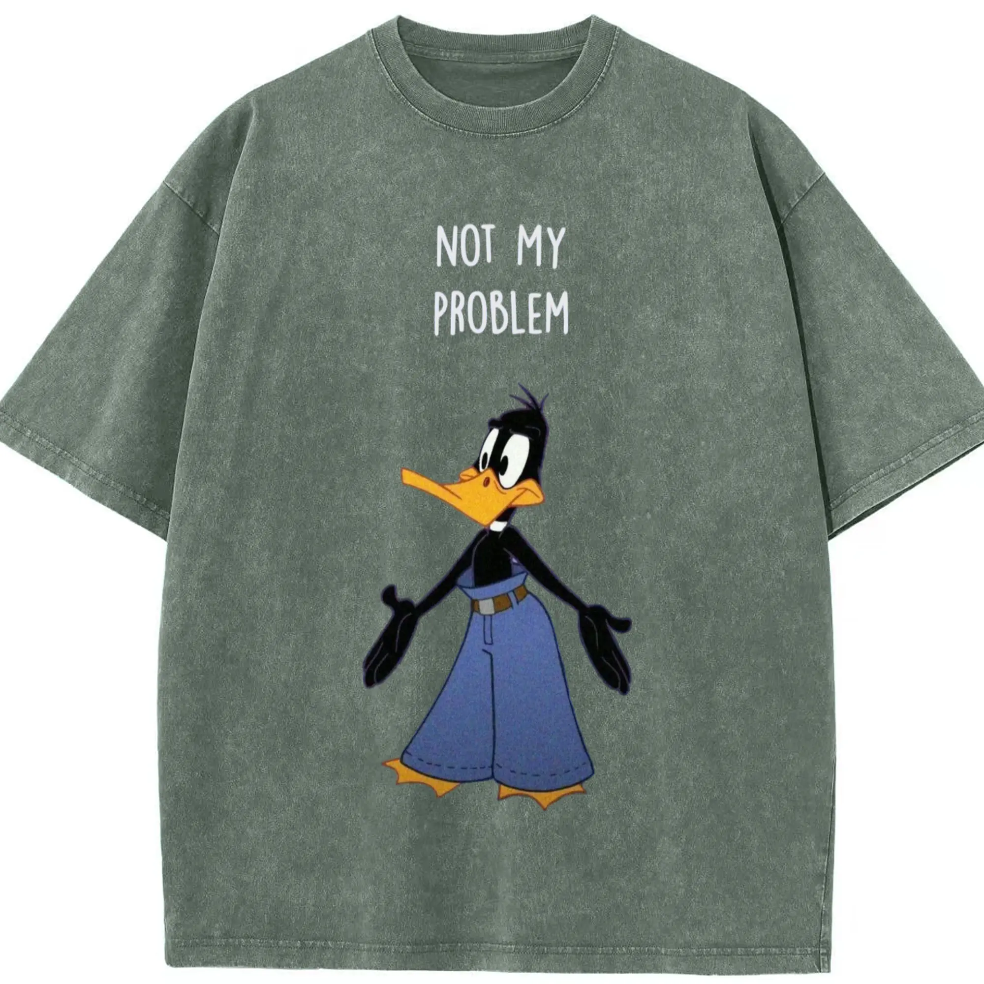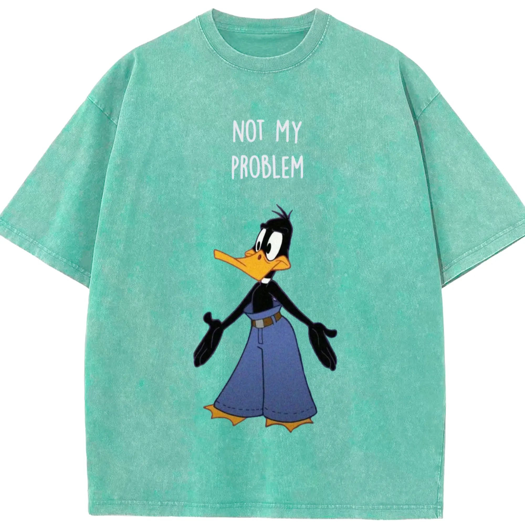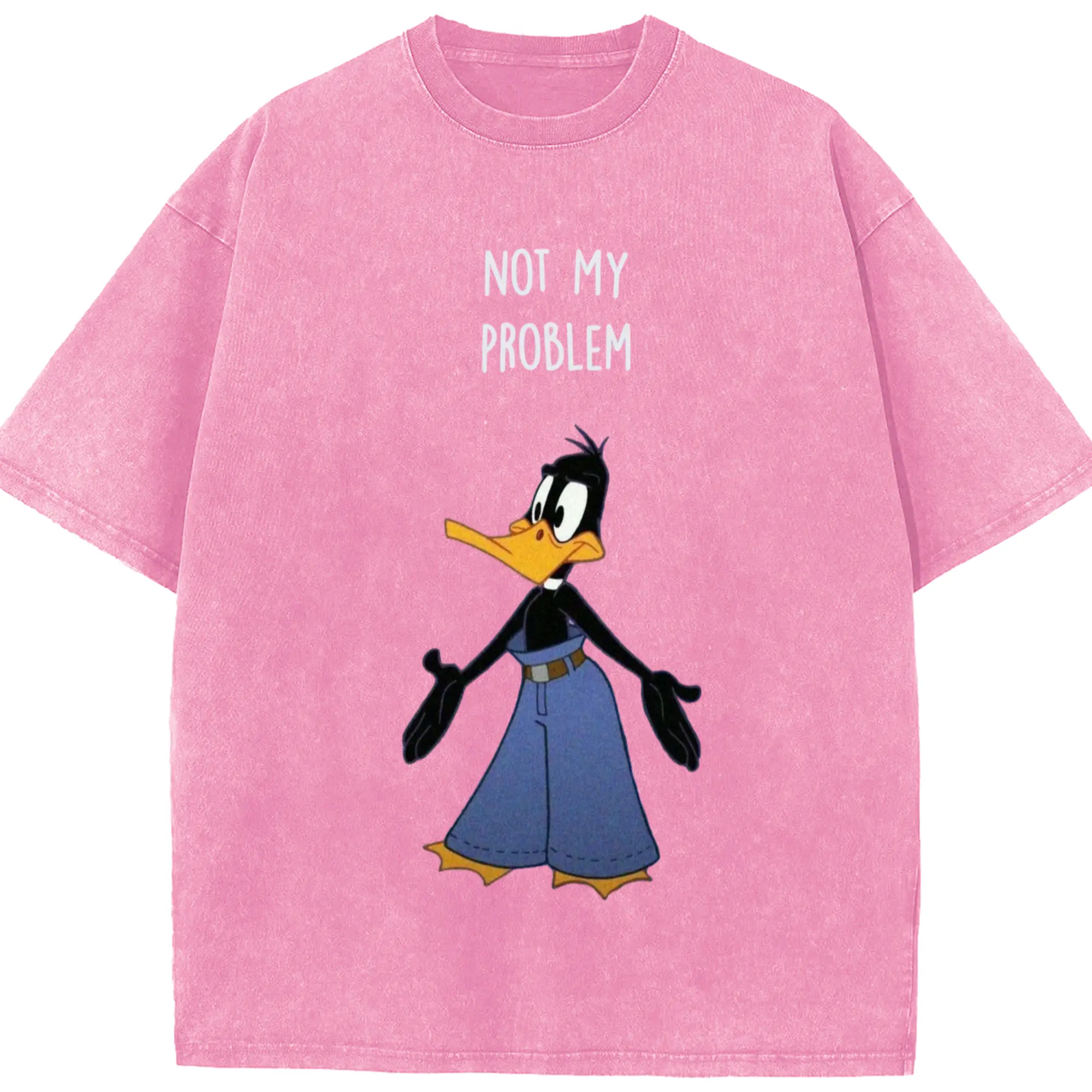 Daffy Duck tee - Washed Vintage Look 230g Cotton Oversized T-Shirt With Front Heat Transfer Print – Soft, Lightweight, Stylish Fit – Comfortable Casual Wear For Sports & Everyday Use
