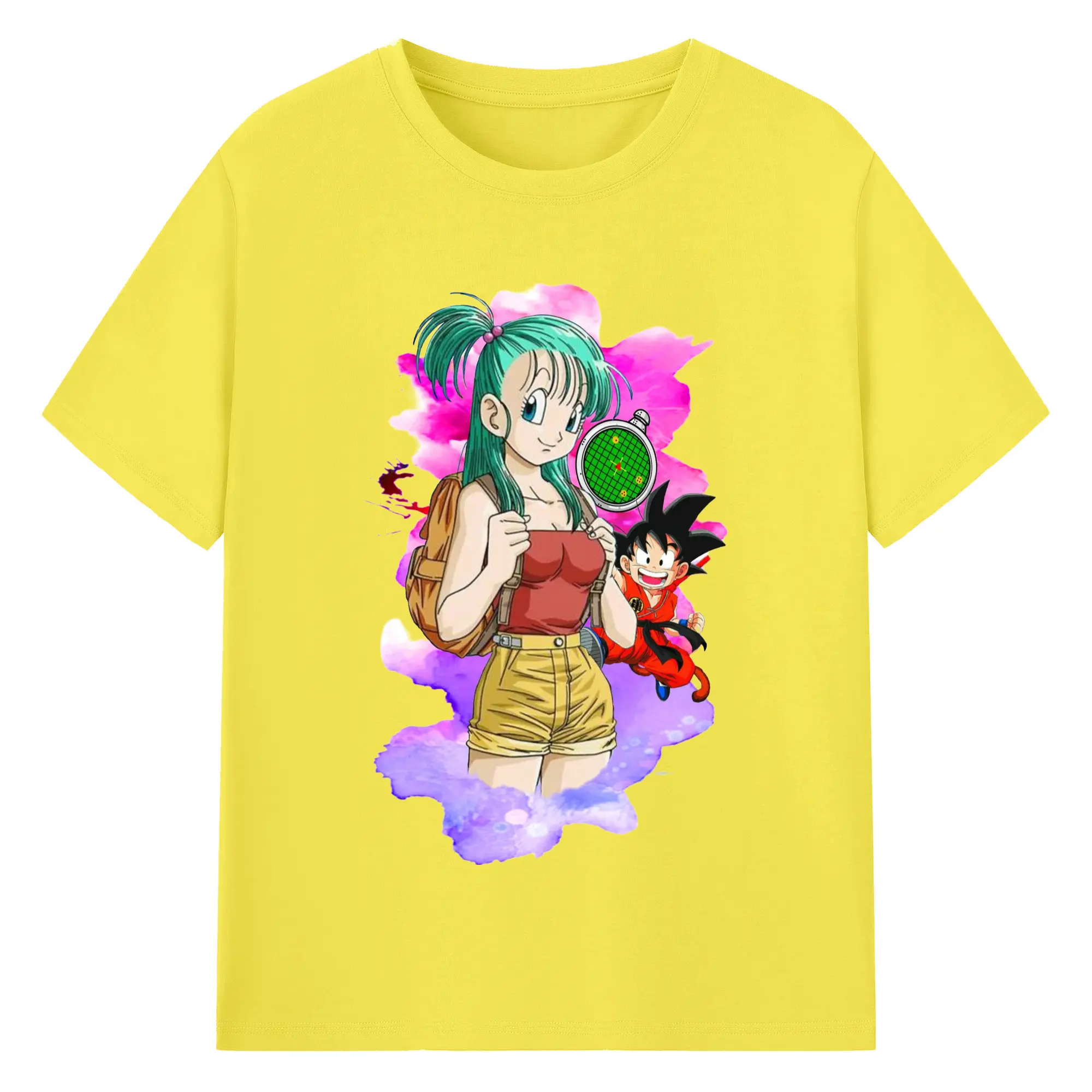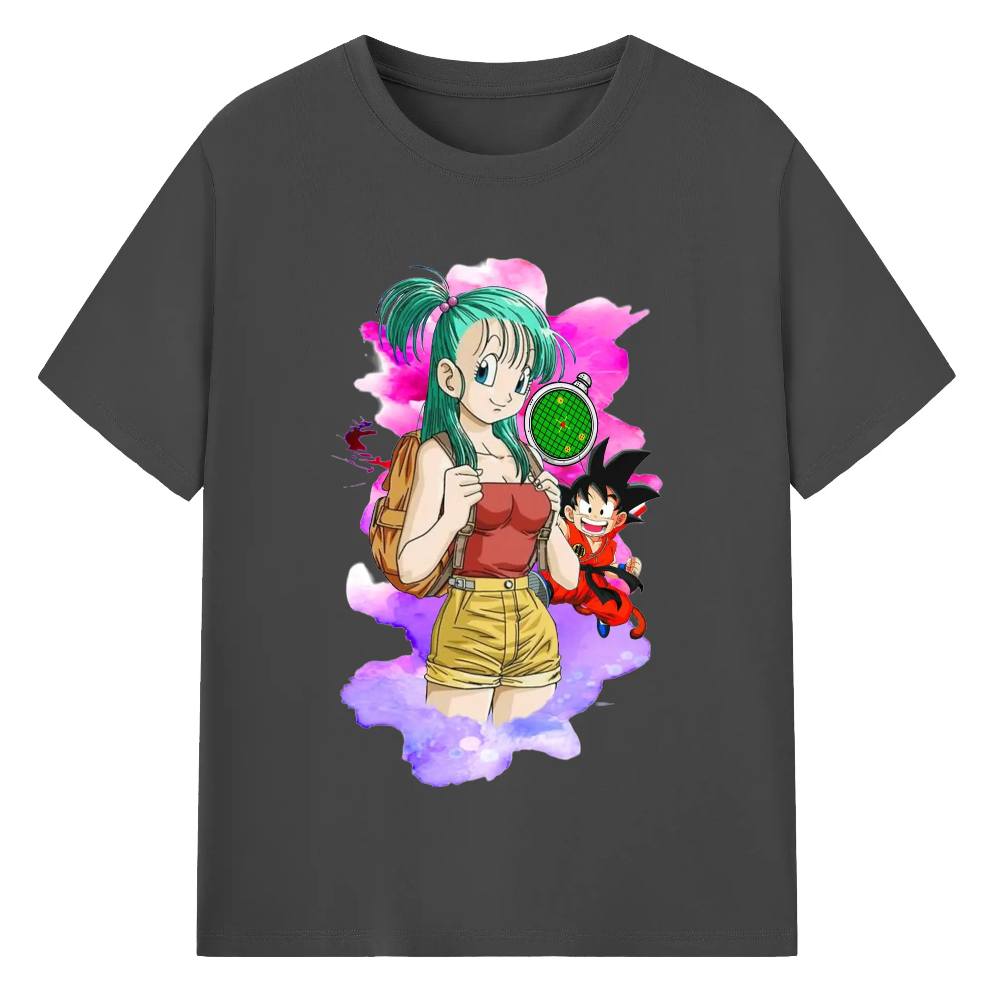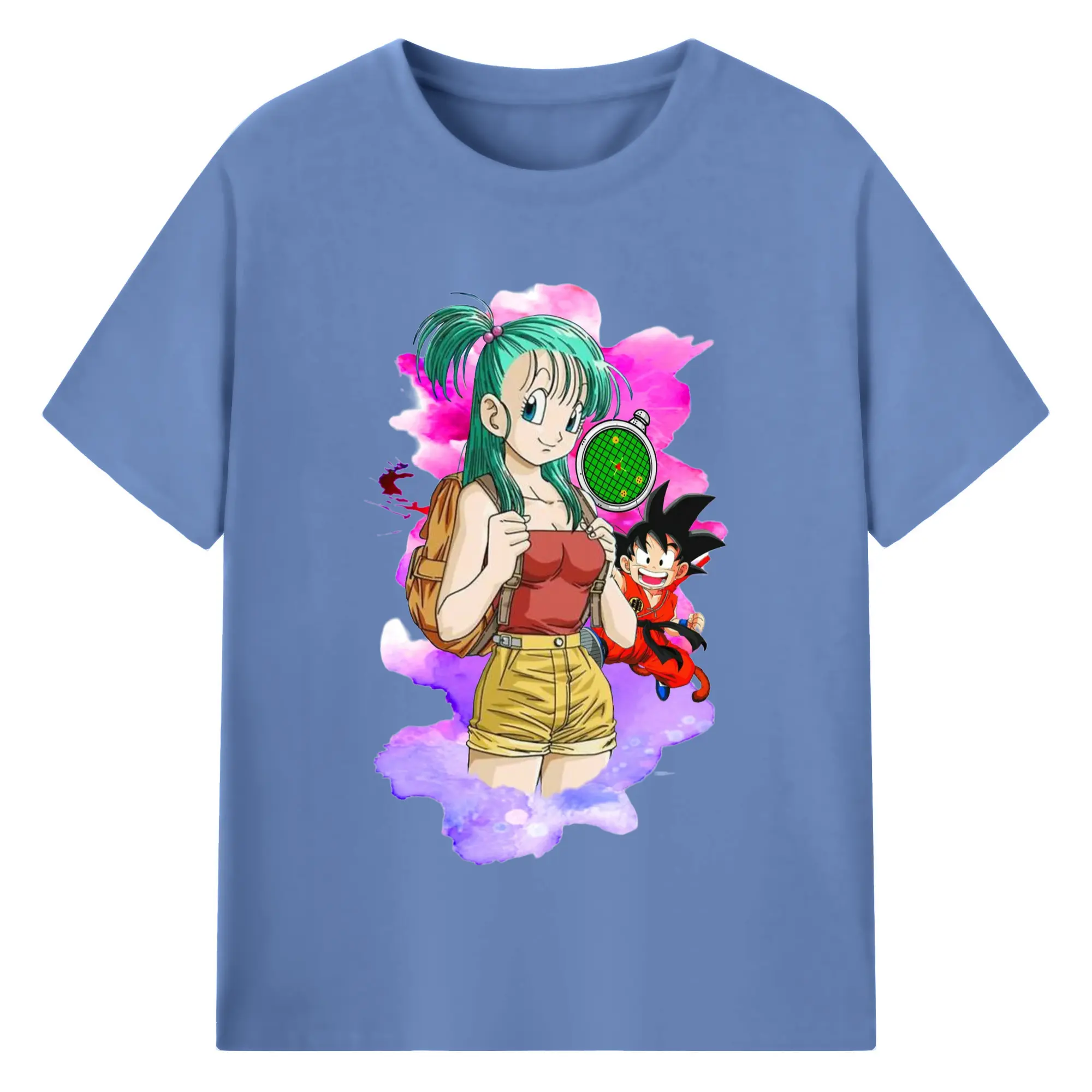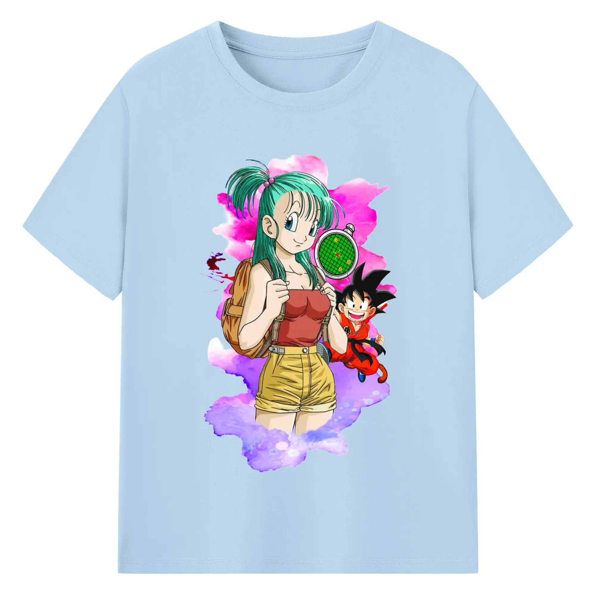 Dragon ball bulma cartoon graphic t-shirt - 180g Cotton T-Shirt With Front Heat Transfer Print – Soft, Lightweight, Fitted Design – Comfortable Casual Wear For Sports & Everyday Use