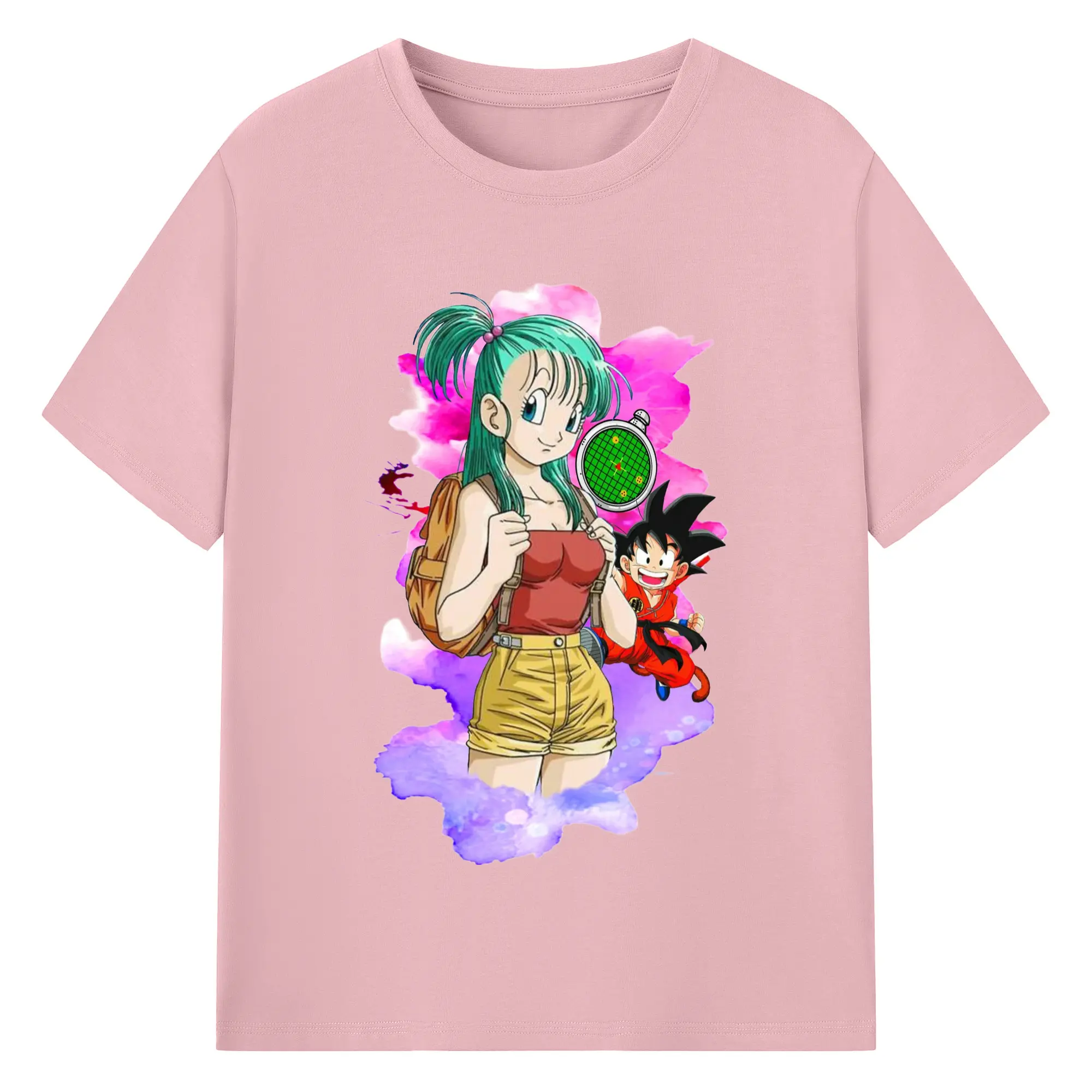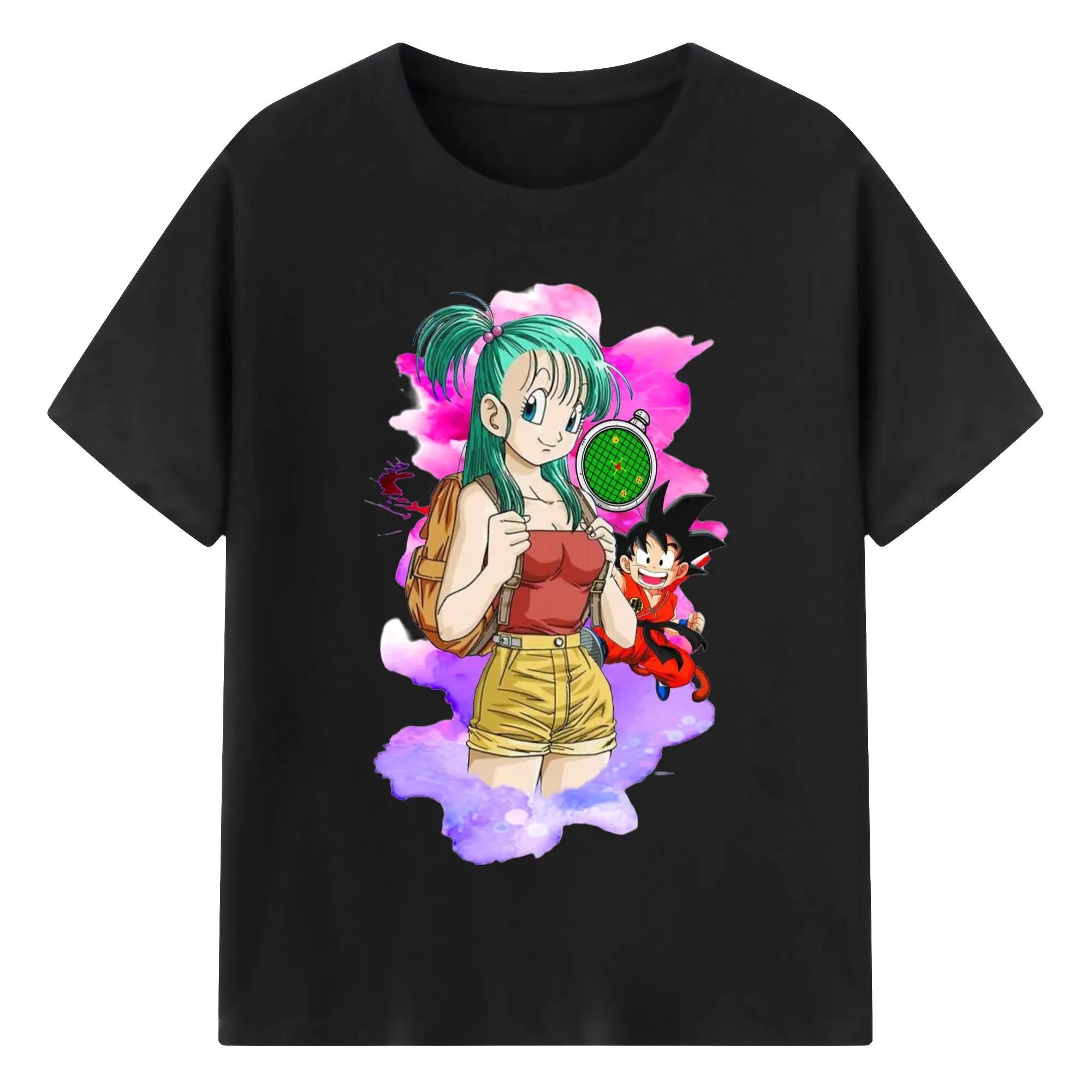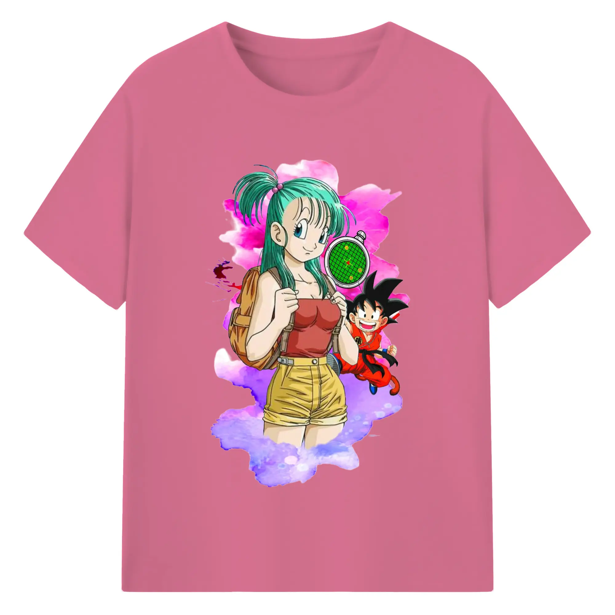 Dragon ball bulma cartoon graphic t-shirt - 180g Cotton T-Shirt With Front Heat Transfer Print – Soft, Lightweight, Fitted Design – Comfortable Casual Wear For Sports & Everyday Use