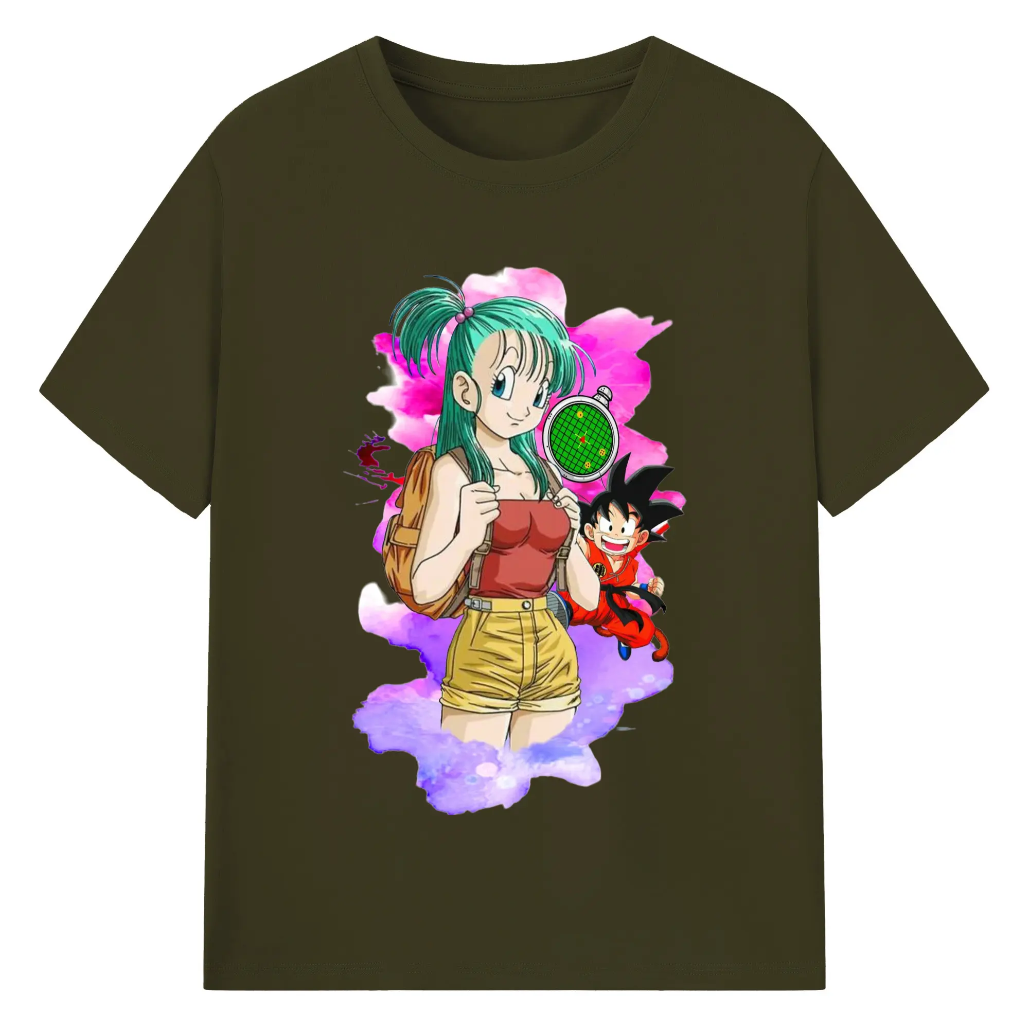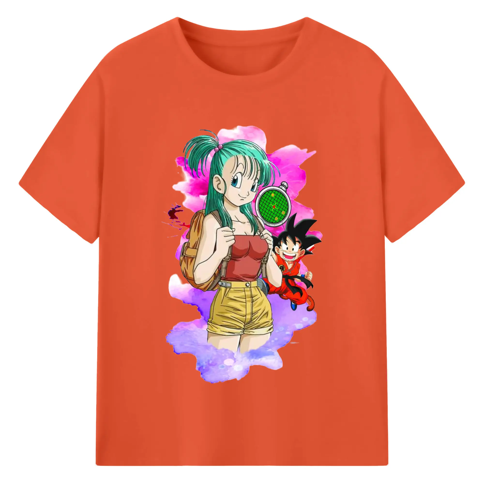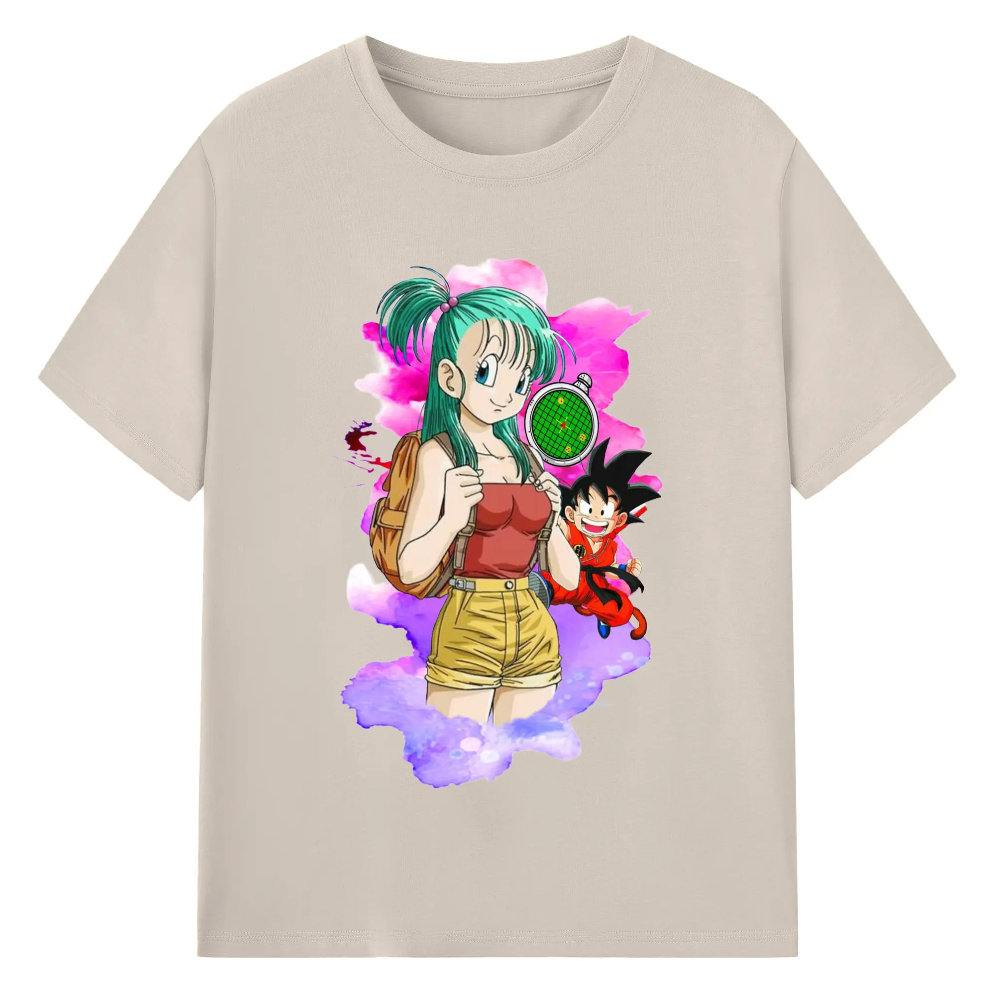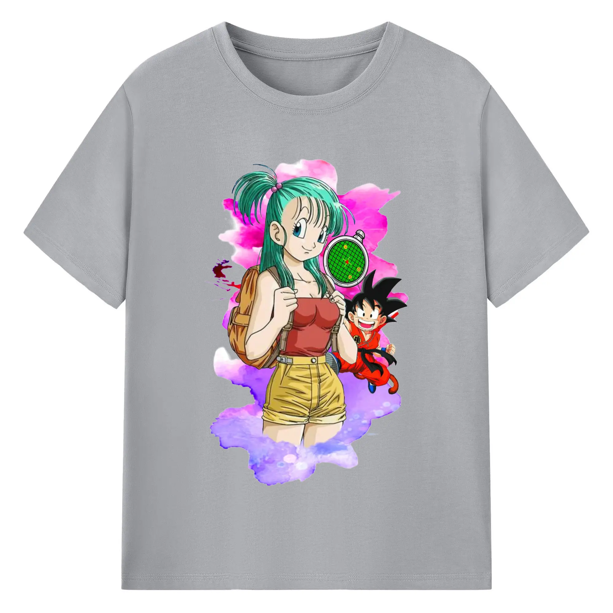 Dragon ball bulma cartoon graphic t-shirt - 180g Cotton T-Shirt With Front Heat Transfer Print – Soft, Lightweight, Fitted Design – Comfortable Casual Wear For Sports & Everyday Use