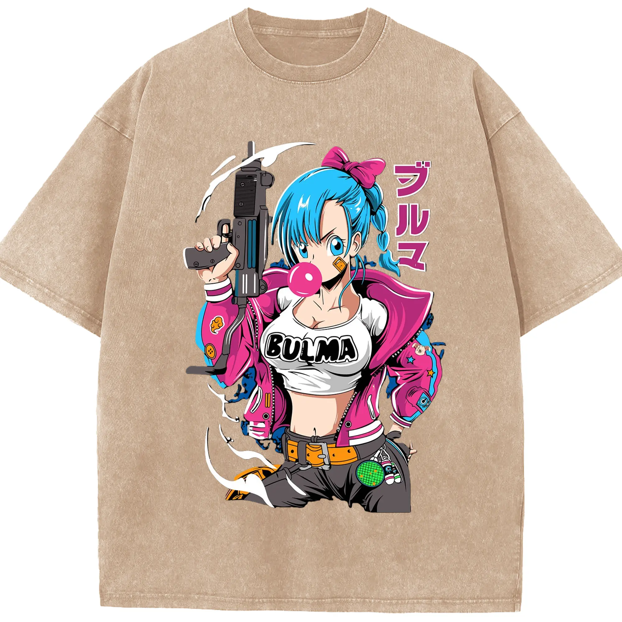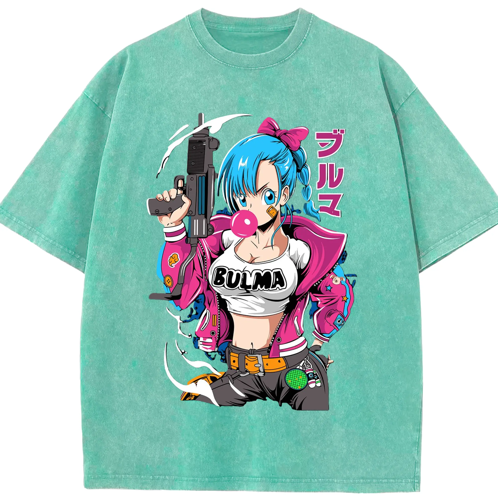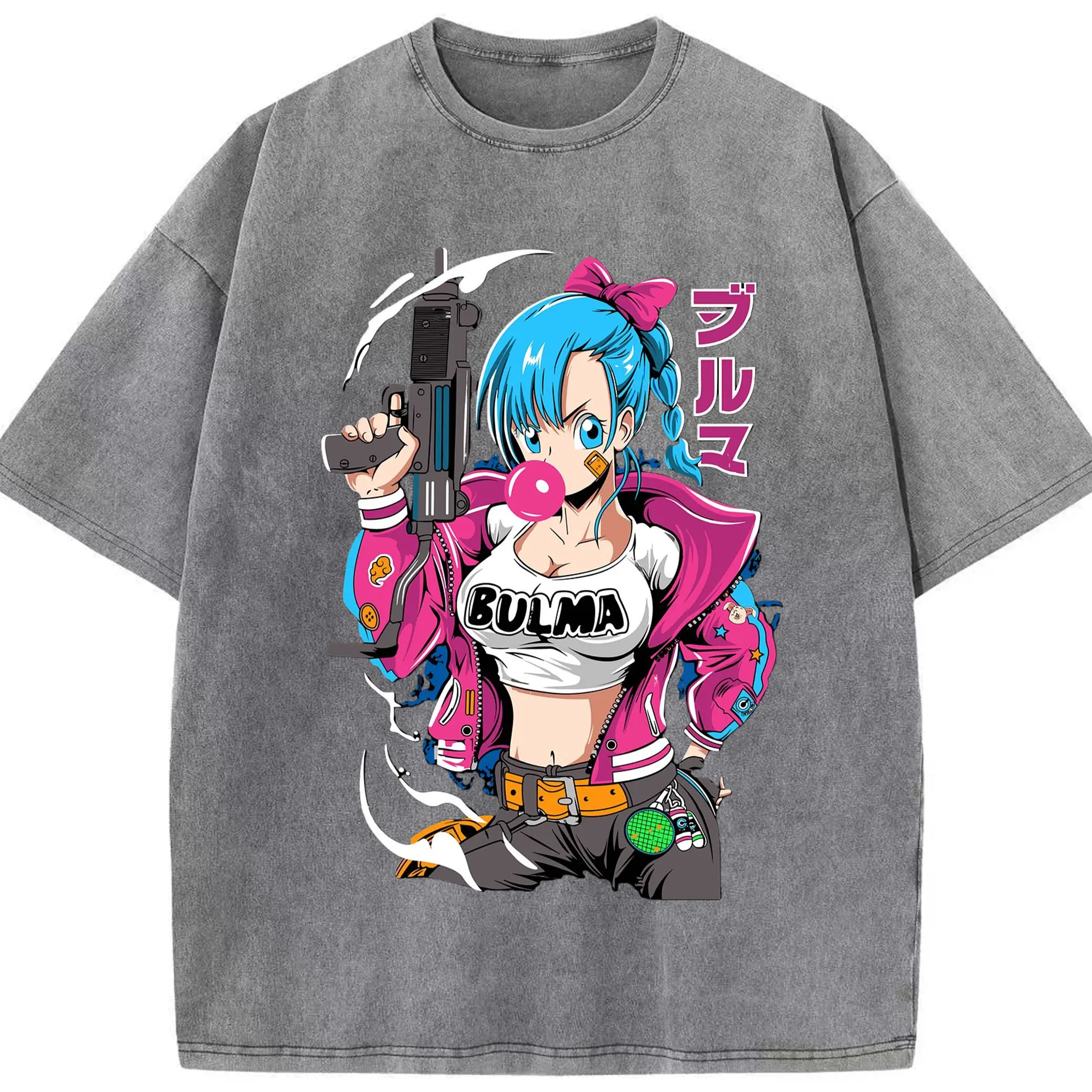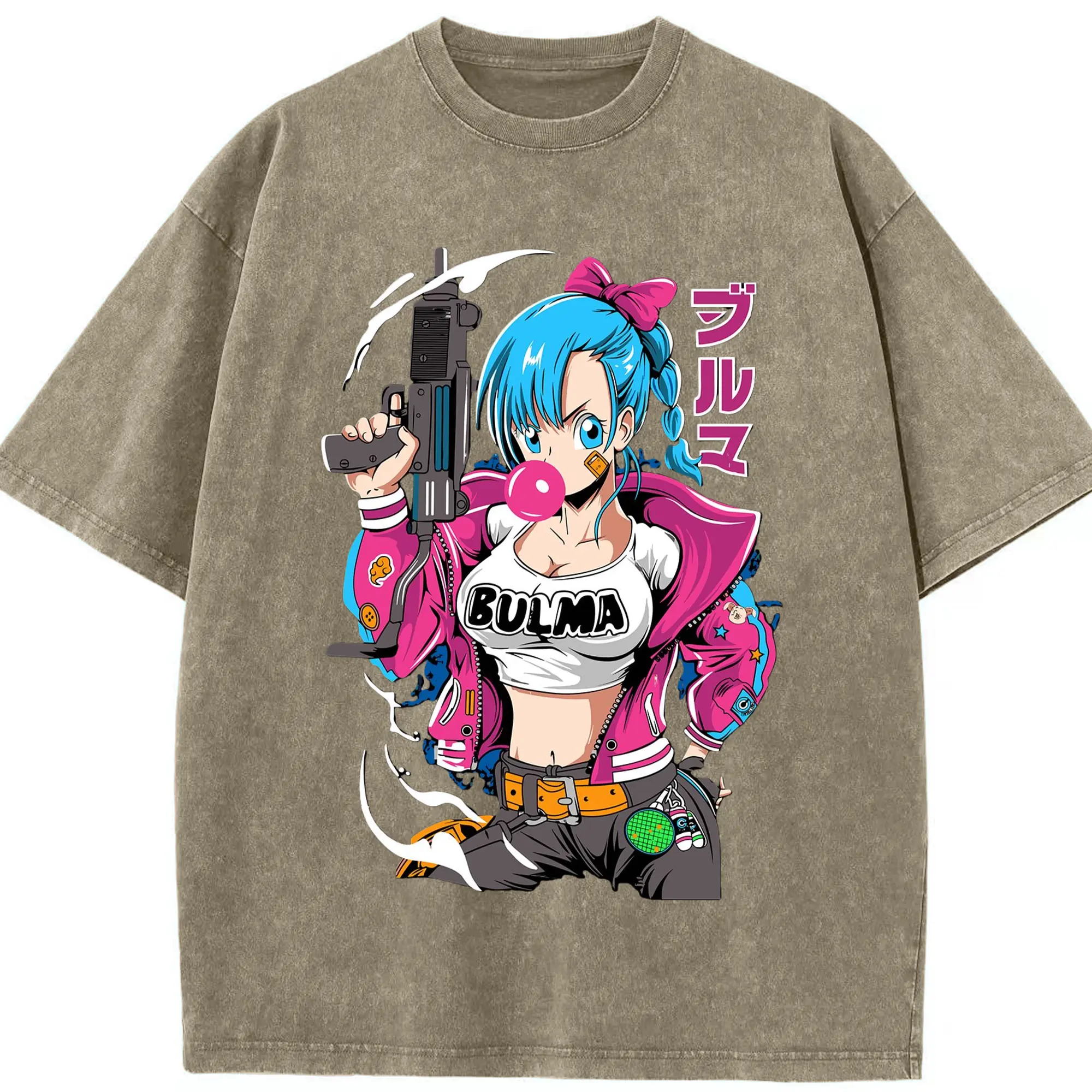Dragon ball bulma graphic tee - Washed Vintage Look 230g Cotton Oversized T-Shirt With Front Heat Transfer Print – Soft, Lightweight, Stylish Fit – Comfortable Casual Wear For Sports & Everyday Use