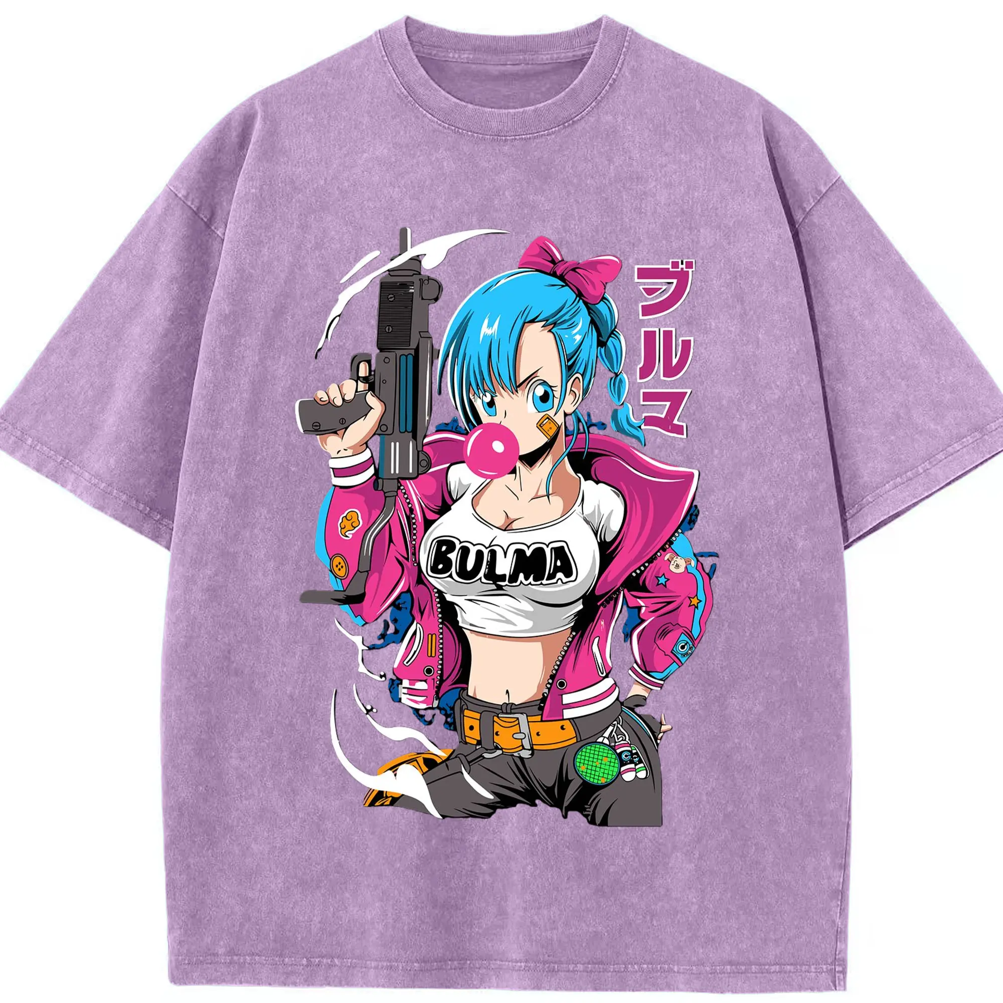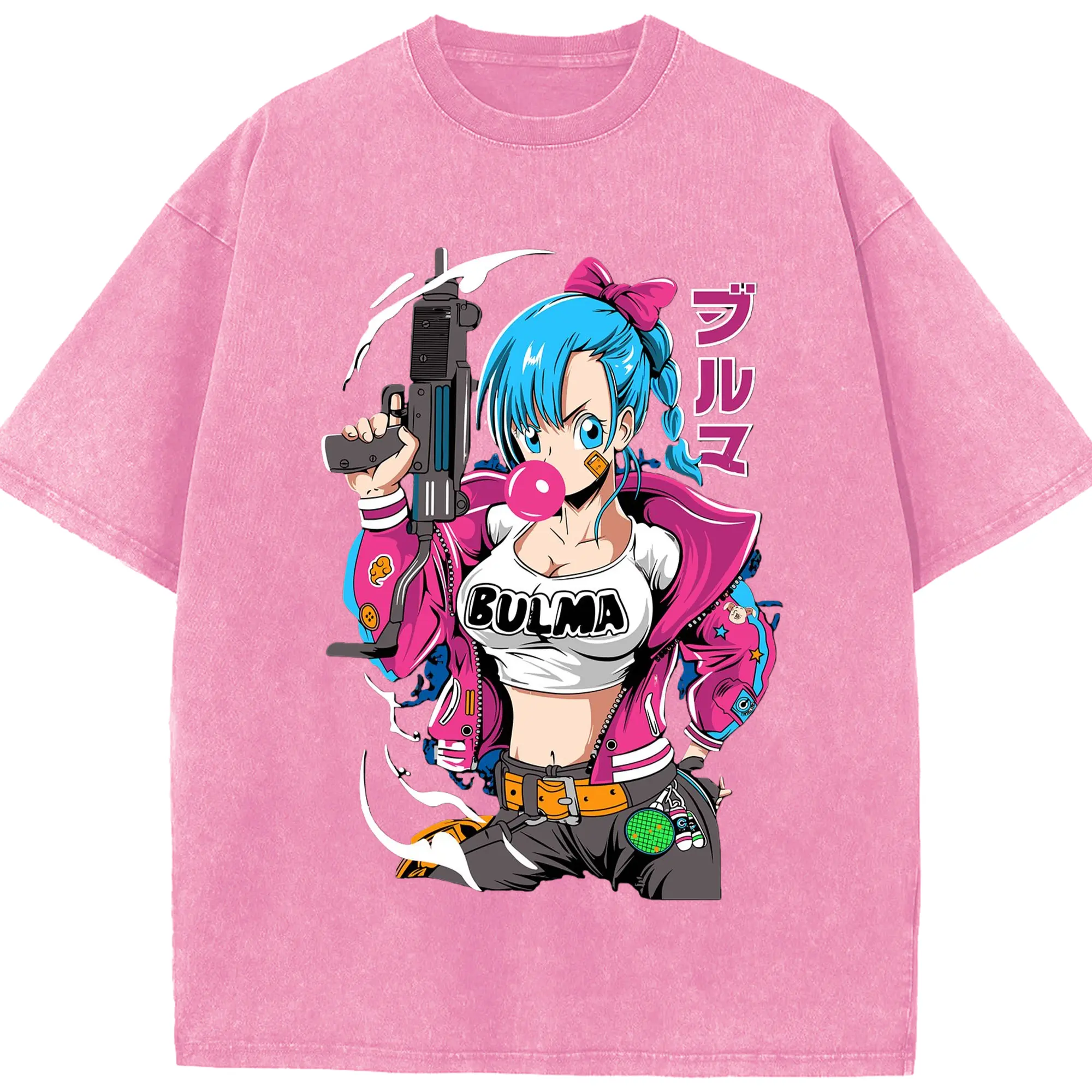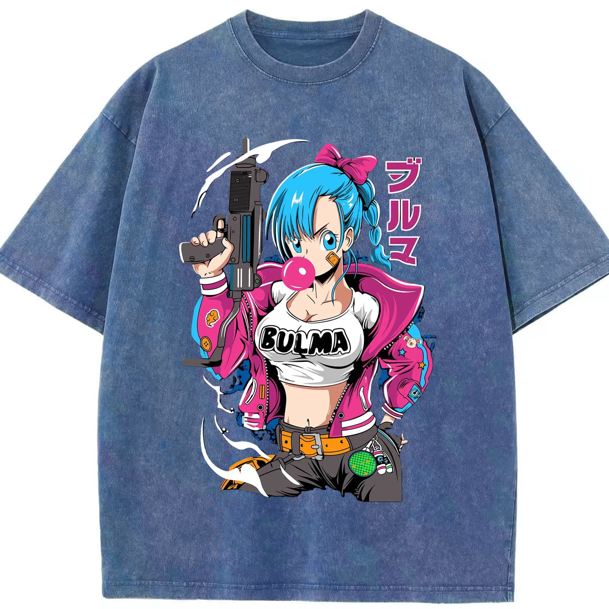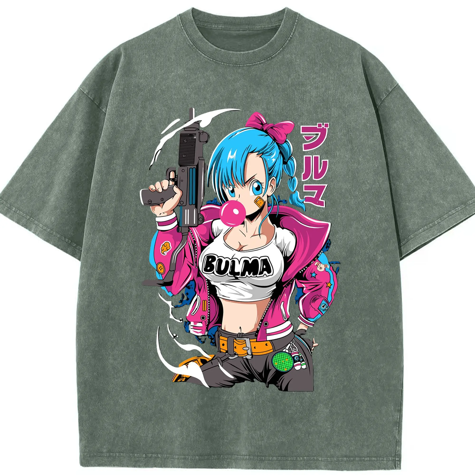 Dragon ball bulma graphic tee - Washed Vintage Look 230g Cotton Oversized T-Shirt With Front Heat Transfer Print – Soft, Lightweight, Stylish Fit – Comfortable Casual Wear For Sports & Everyday Use