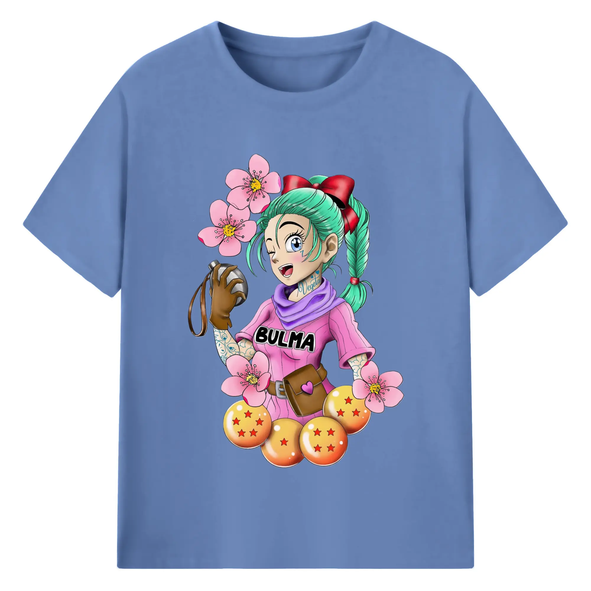Dragon ball bulma t-shirt - 180g Cotton T-Shirt With Front Heat Transfer Print – Soft, Lightweight, Fitted Design – Comfortable Casual Wear For Sports & Everyday Use