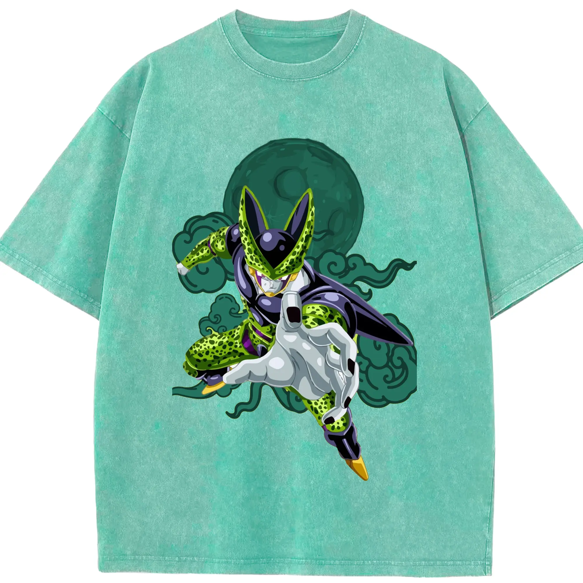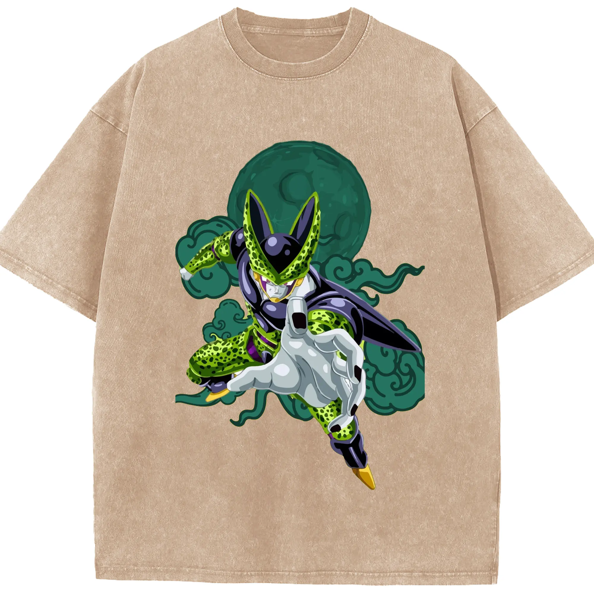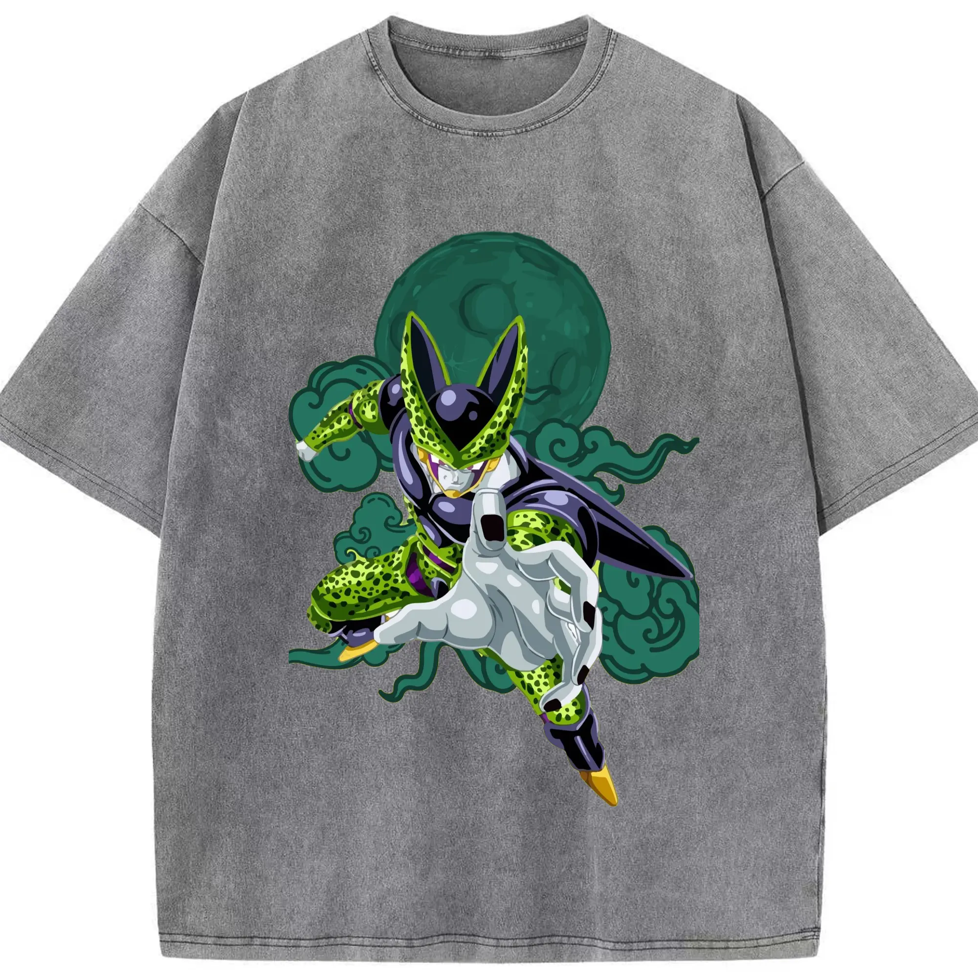 Dragon Ball Cell T Shirt - Washed Vintage Look 230g Cotton Oversized T-Shirt With Front Heat Transfer Print – Soft, Lightweight, Stylish Fit – Comfortable Casual Wear For Sports & Everyday Use