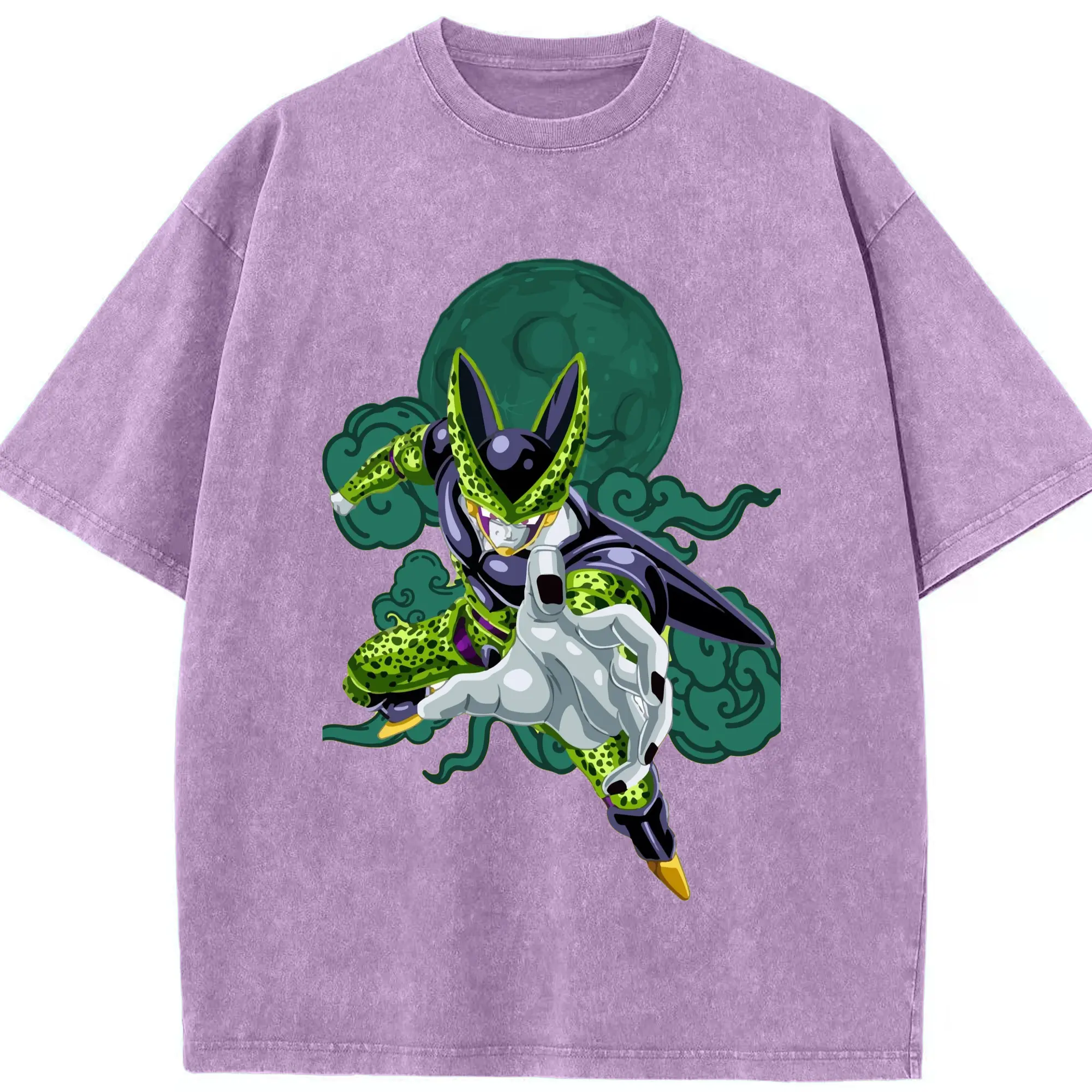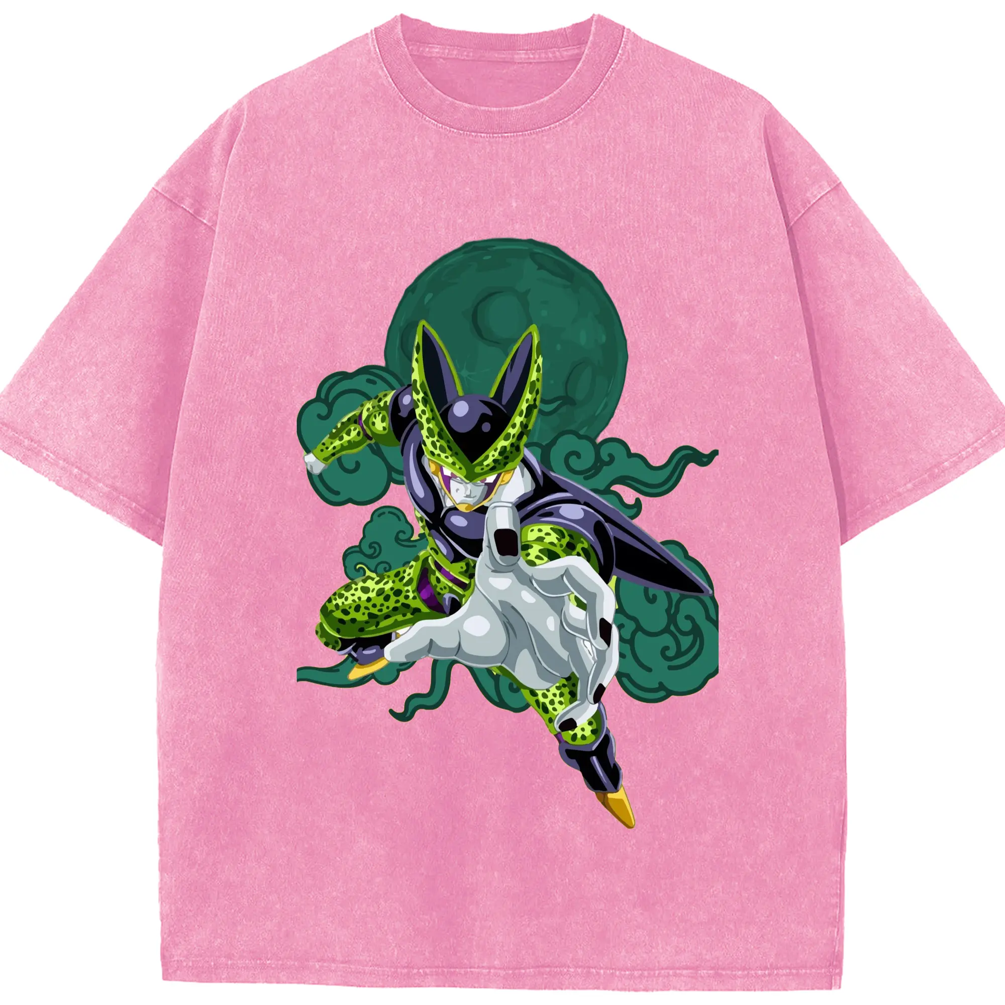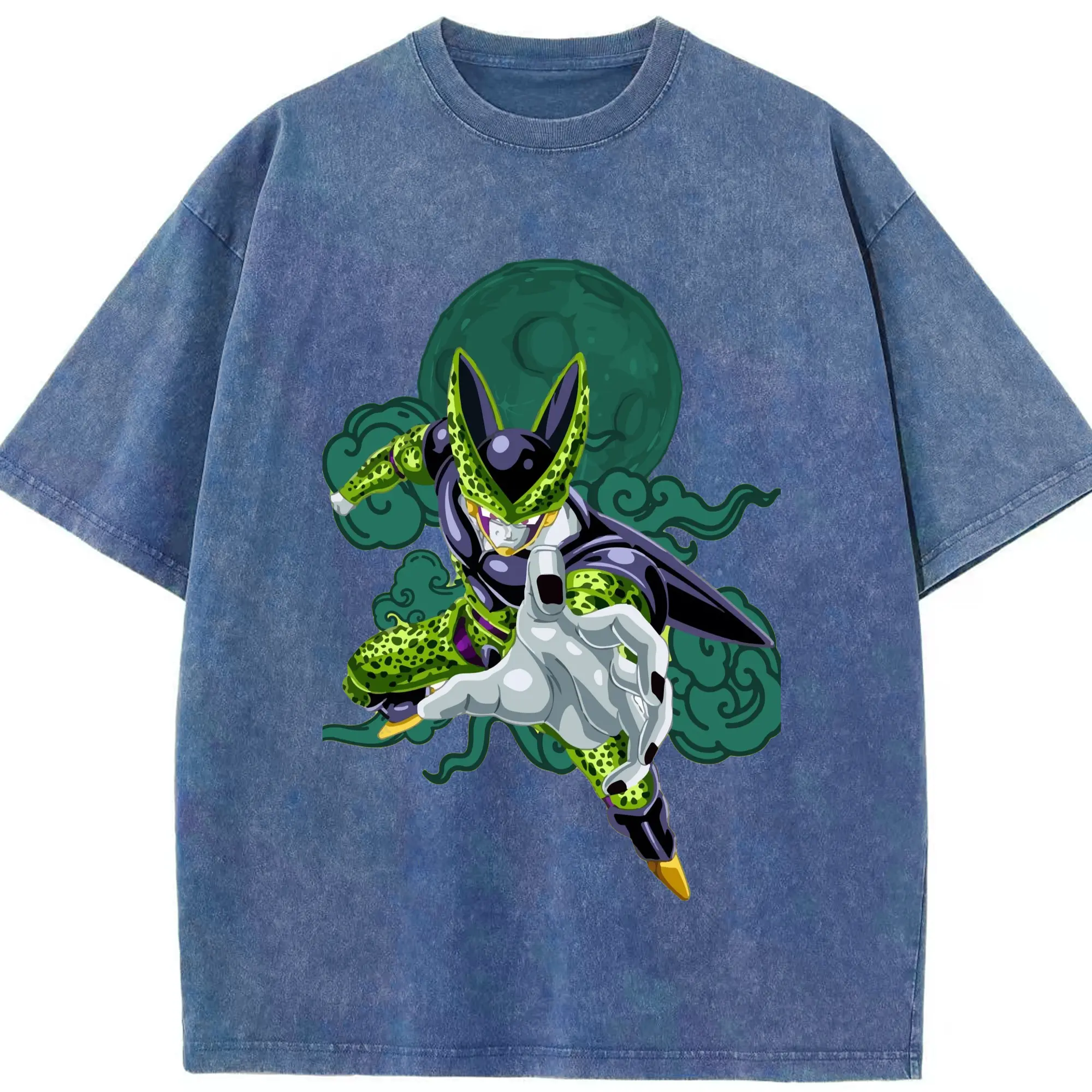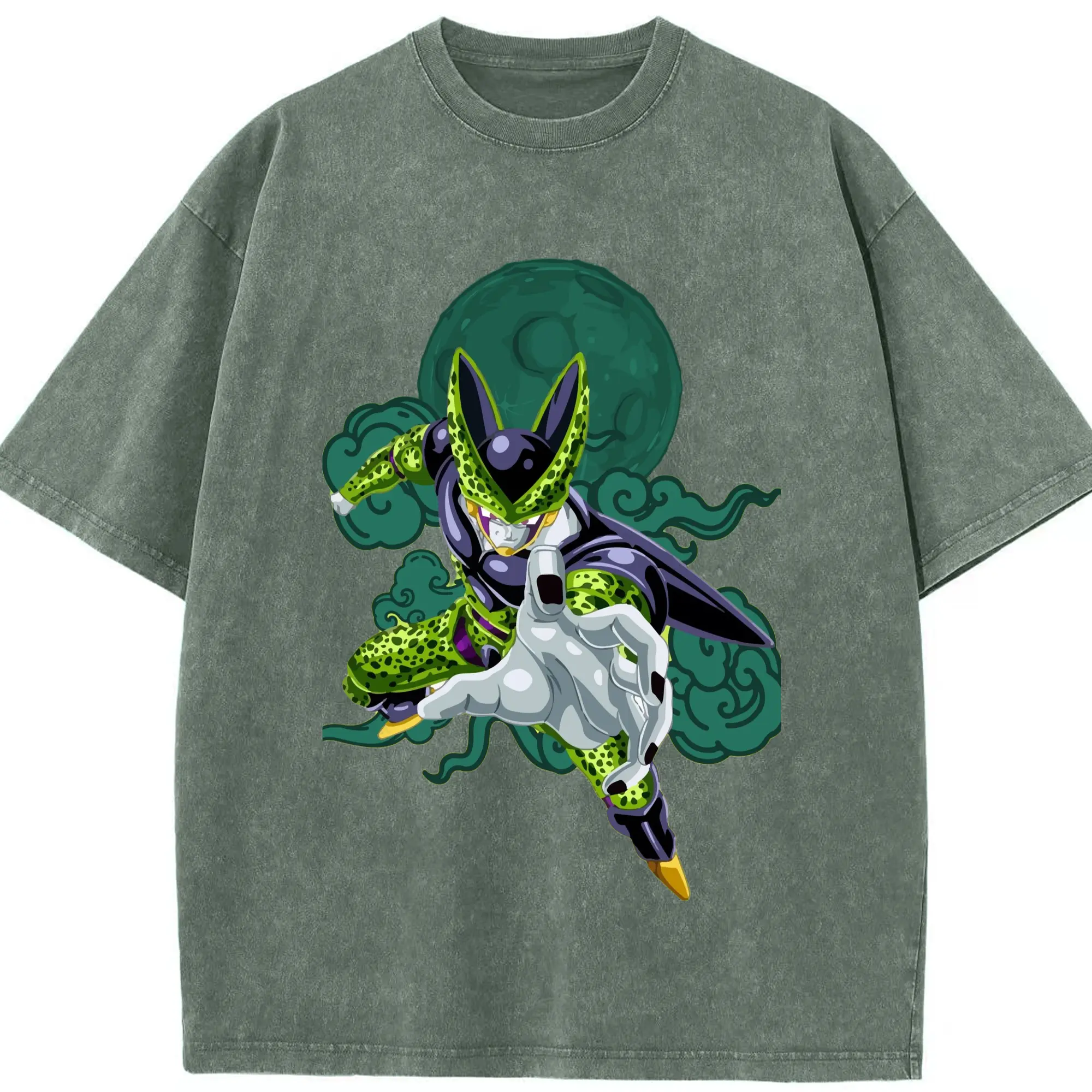 Dragon Ball Cell T Shirt - Washed Vintage Look 230g Cotton Oversized T-Shirt With Front Heat Transfer Print – Soft, Lightweight, Stylish Fit – Comfortable Casual Wear For Sports & Everyday Use