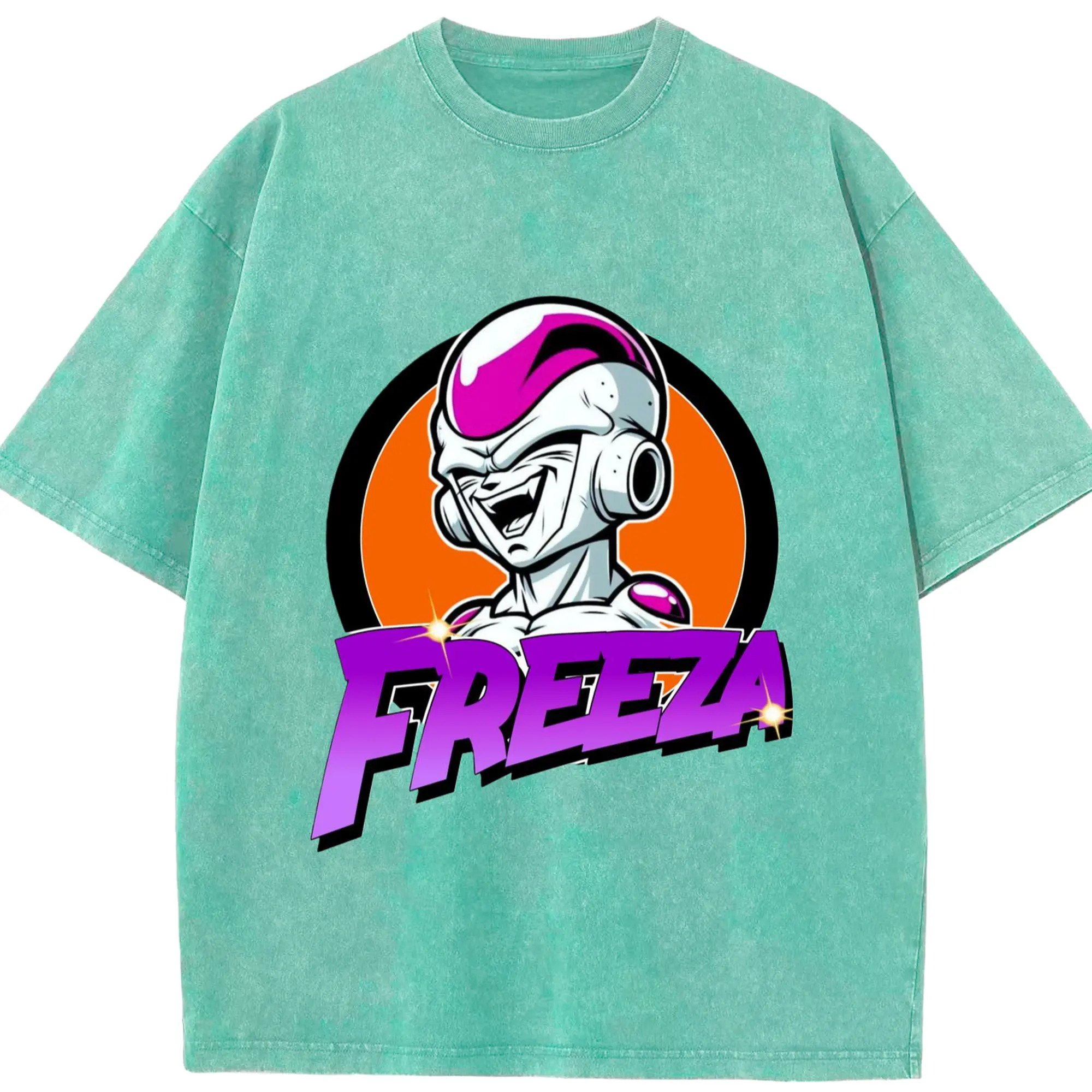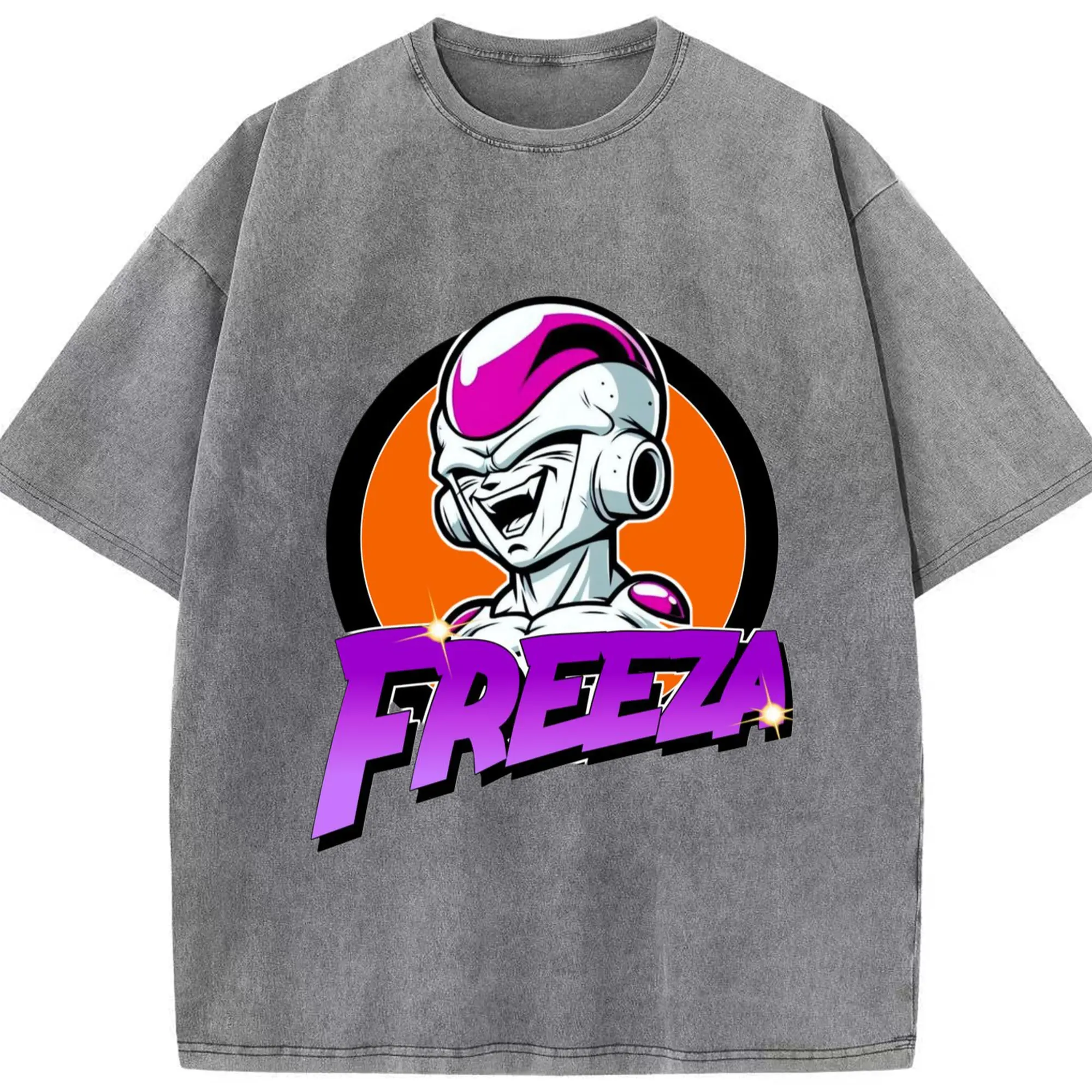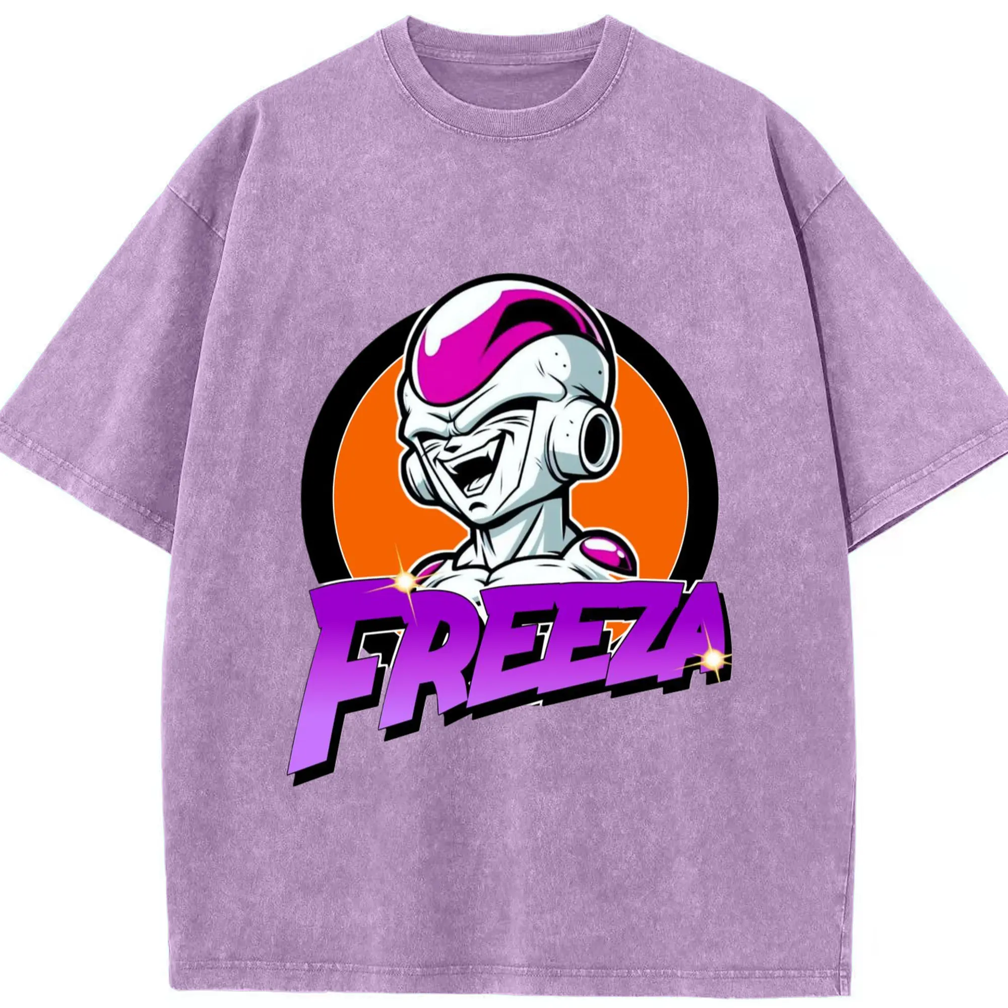 Dragon Ball Freeza face Tee - Washed Vintage Look 230g Cotton Oversized T-Shirt With Front Heat Transfer Print – Soft, Lightweight, Stylish Fit – Comfortable Casual Wear For Sports & Everyday Use