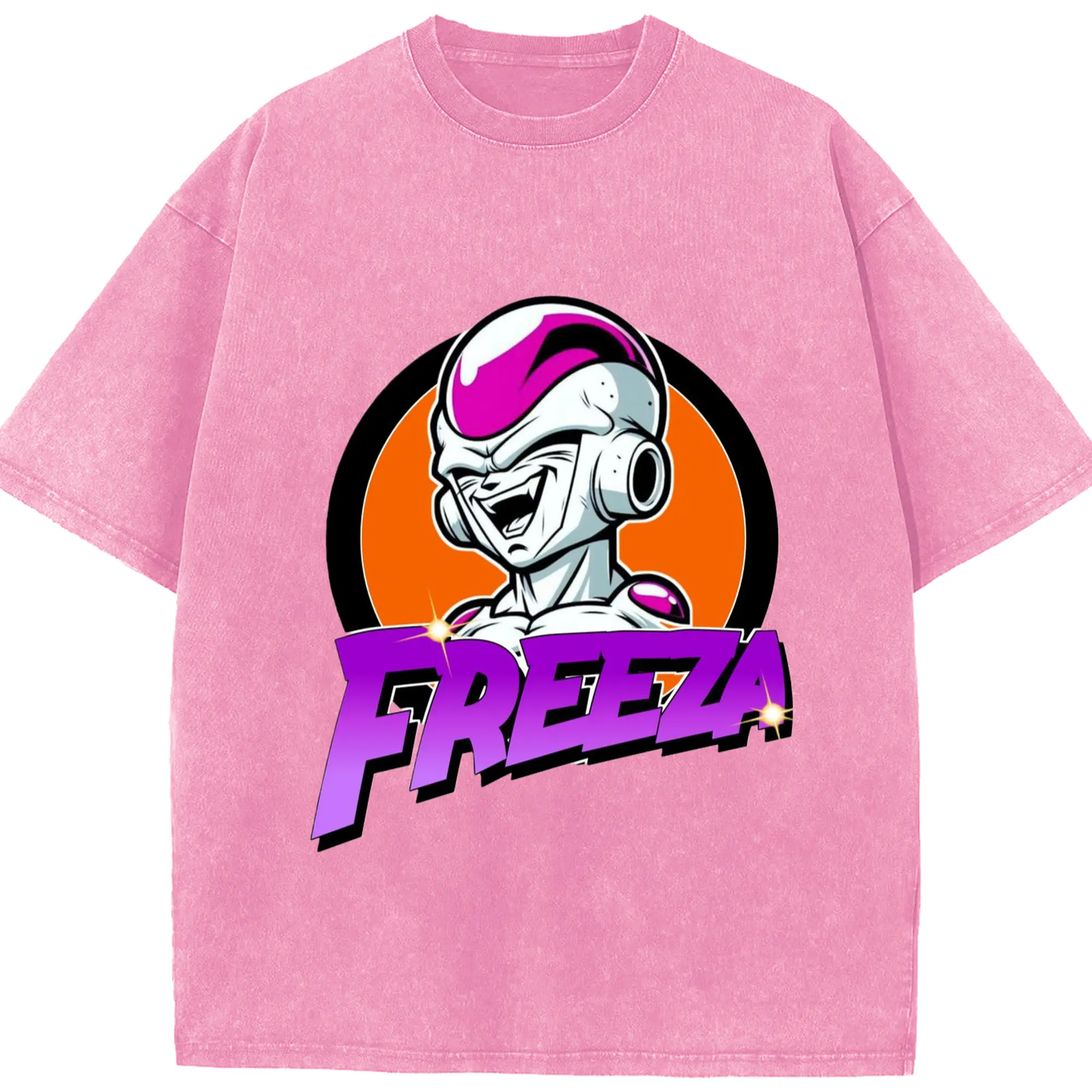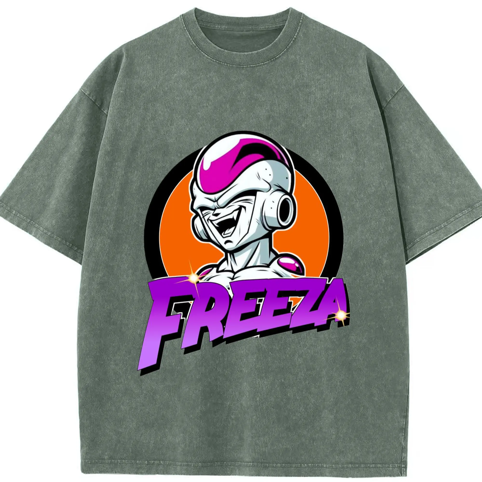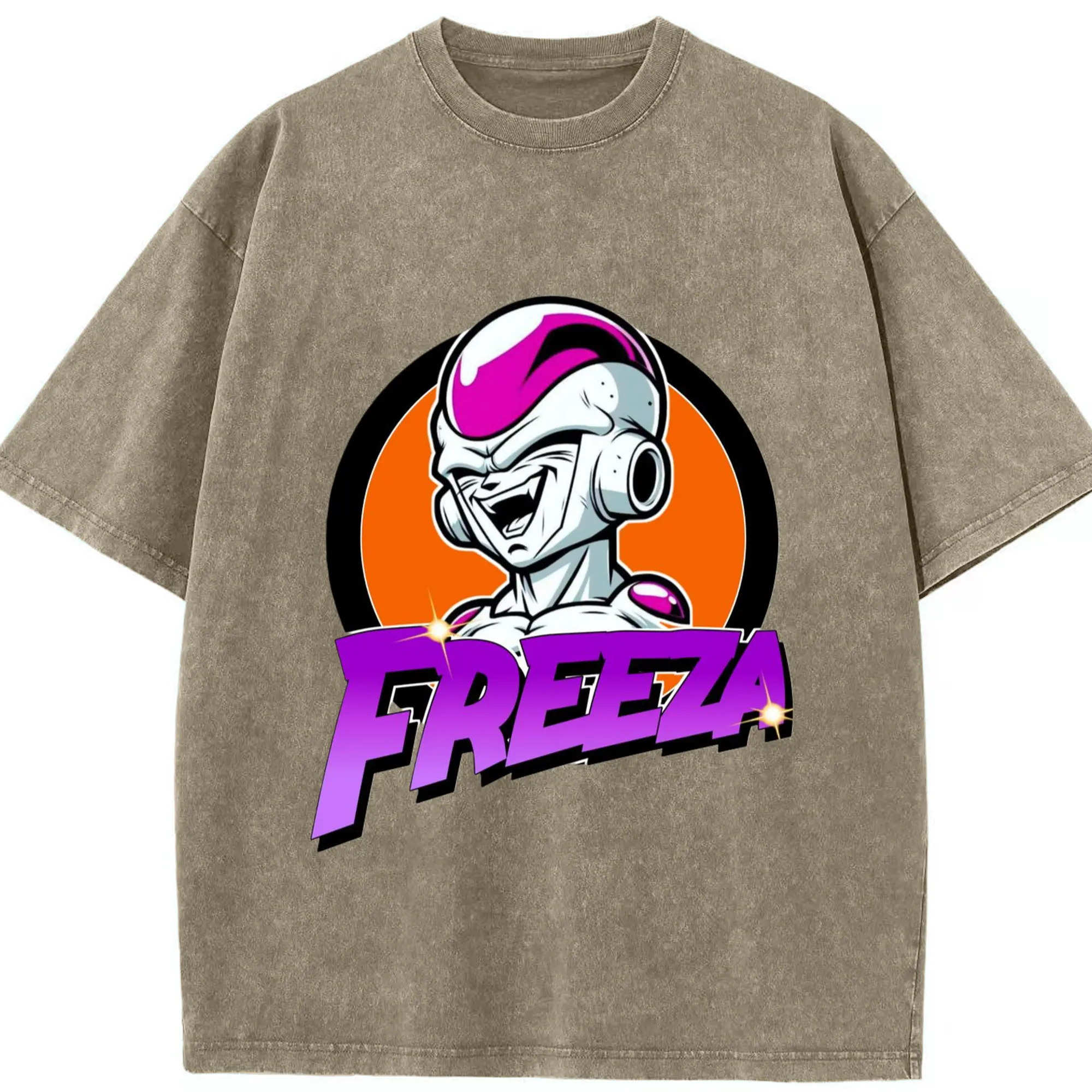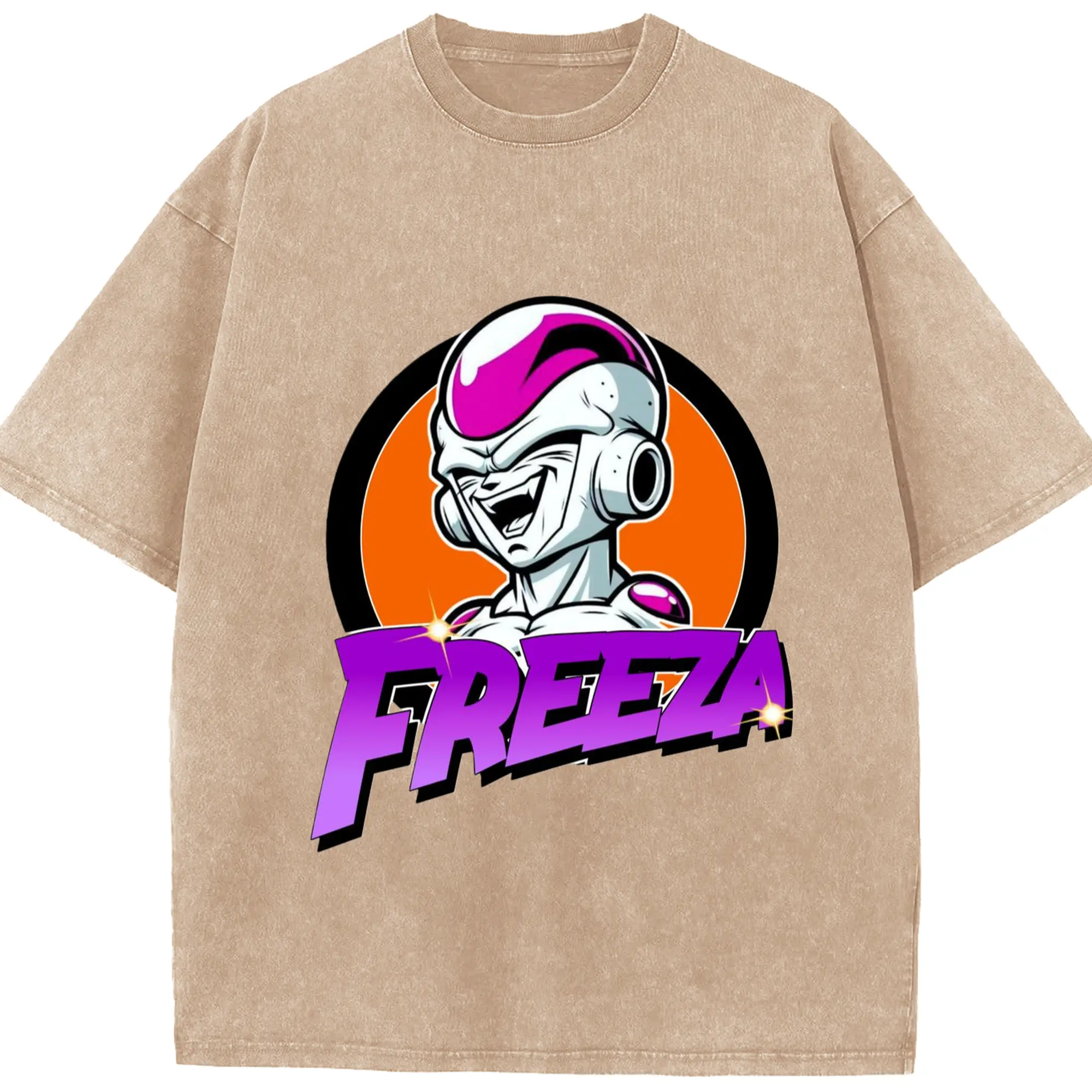 Dragon Ball Freeza face Tee - Washed Vintage Look 230g Cotton Oversized T-Shirt With Front Heat Transfer Print – Soft, Lightweight, Stylish Fit – Comfortable Casual Wear For Sports & Everyday Use