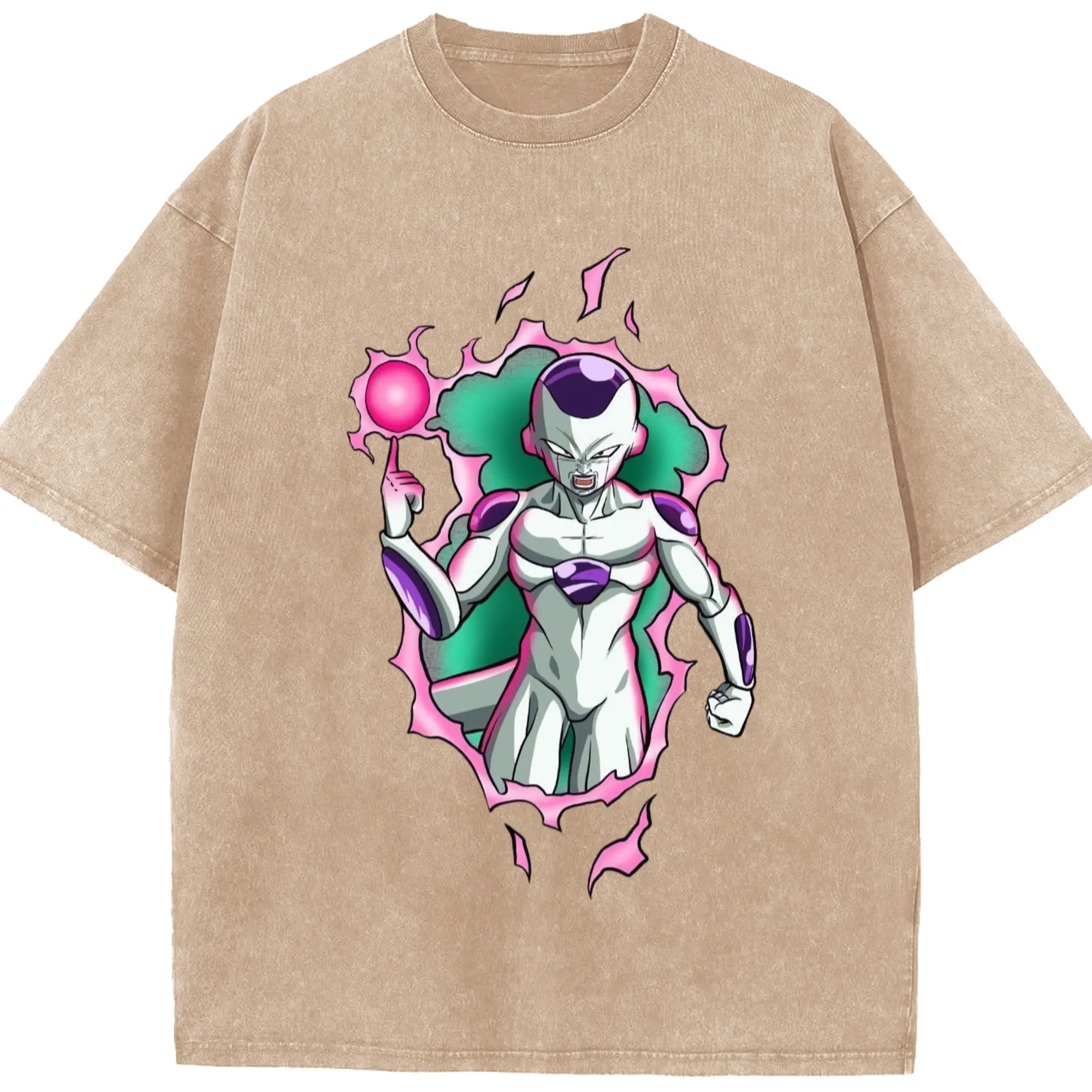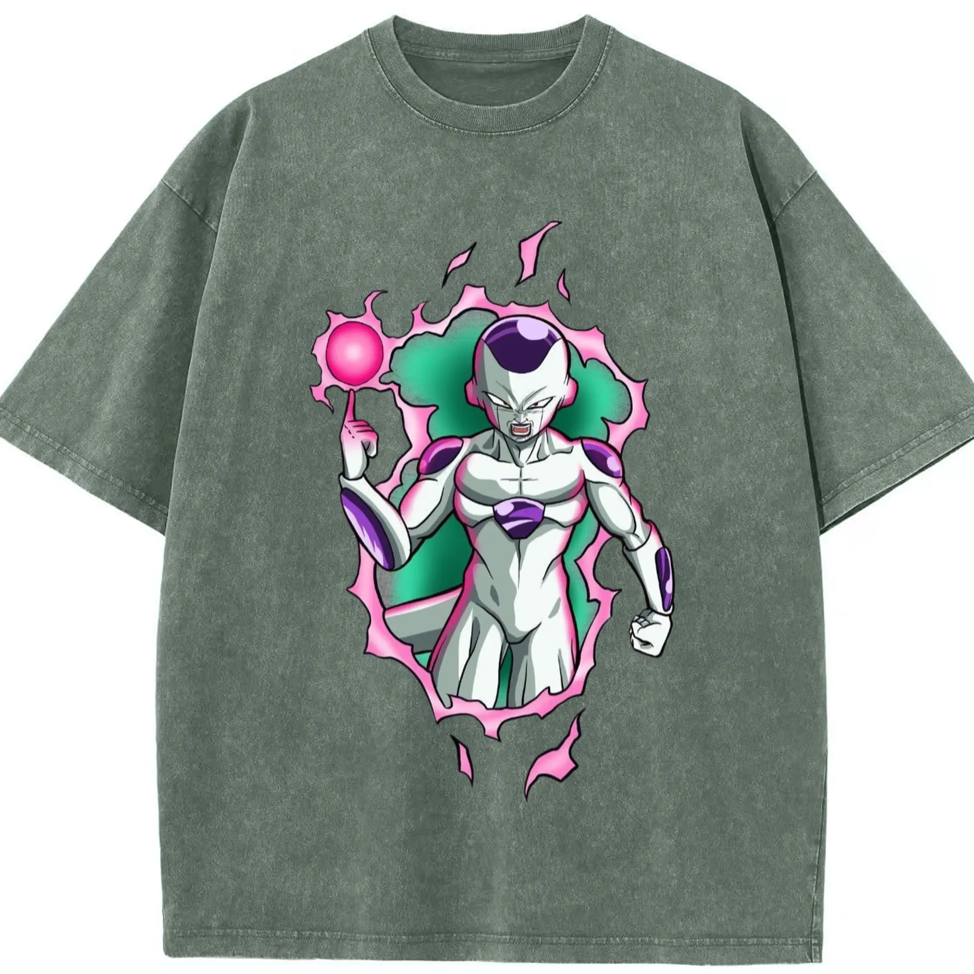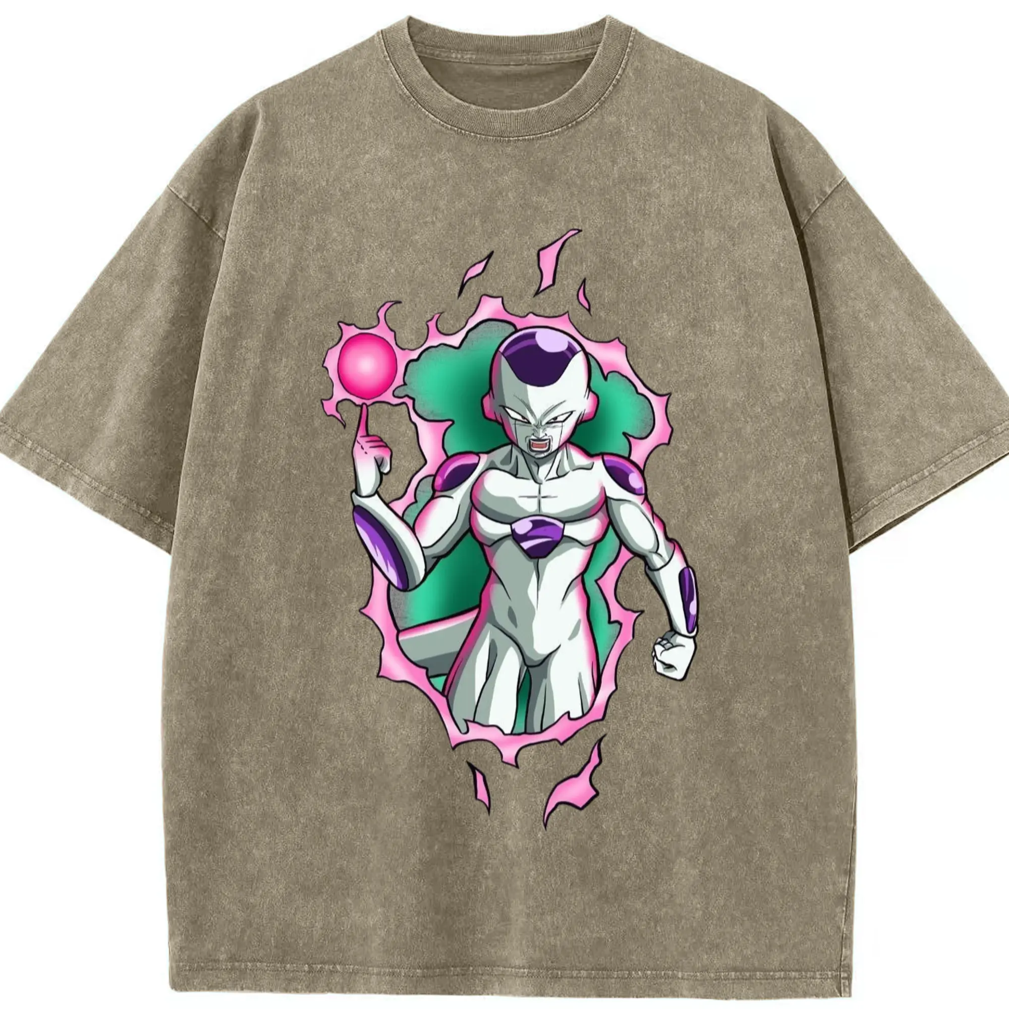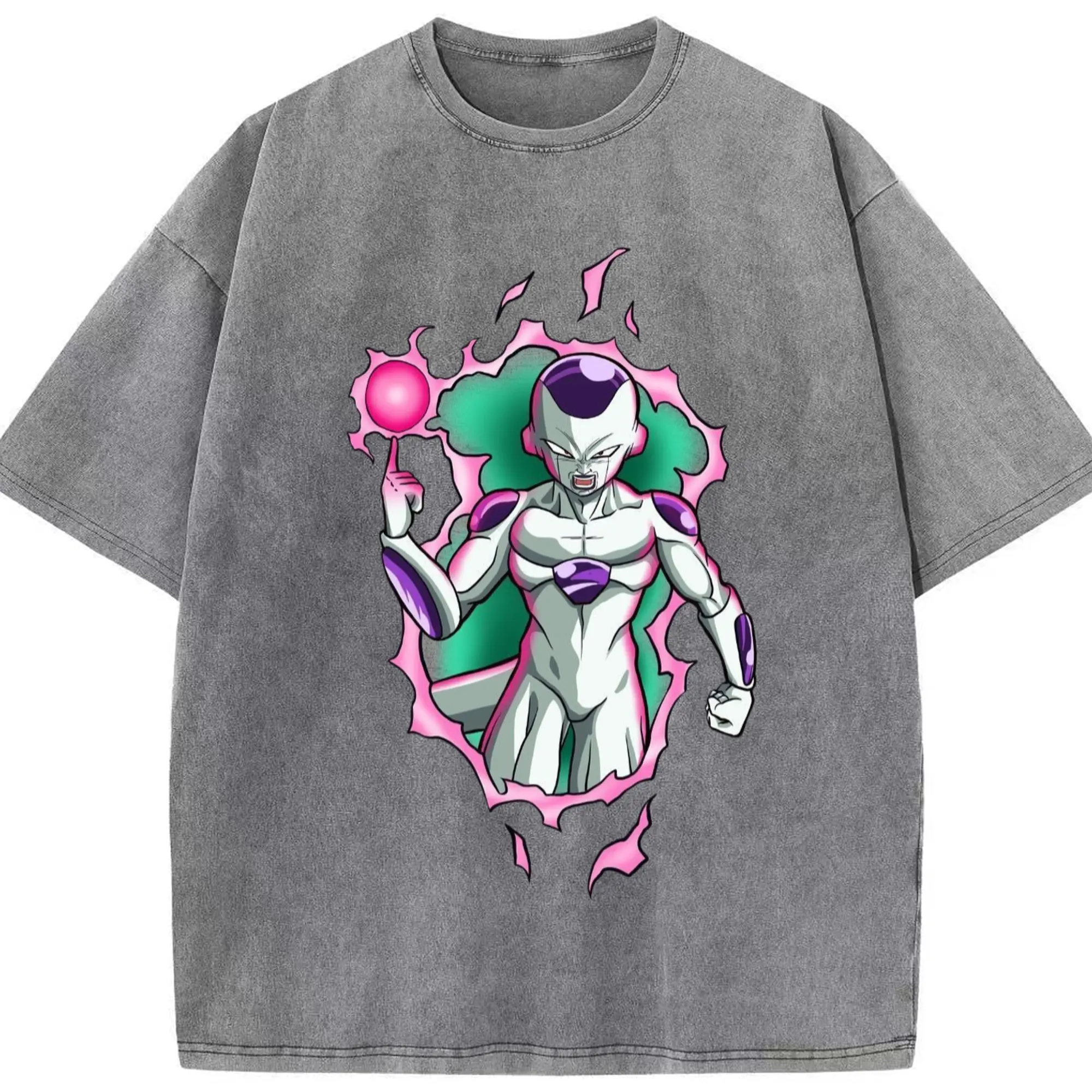 Dragon Ball Freeza t-shirt - Washed Vintage Look 230g Cotton Oversized T-Shirt With Front Heat Transfer Print – Soft, Lightweight, Stylish Fit – Comfortable Casual Wear For Sports & Everyday Use