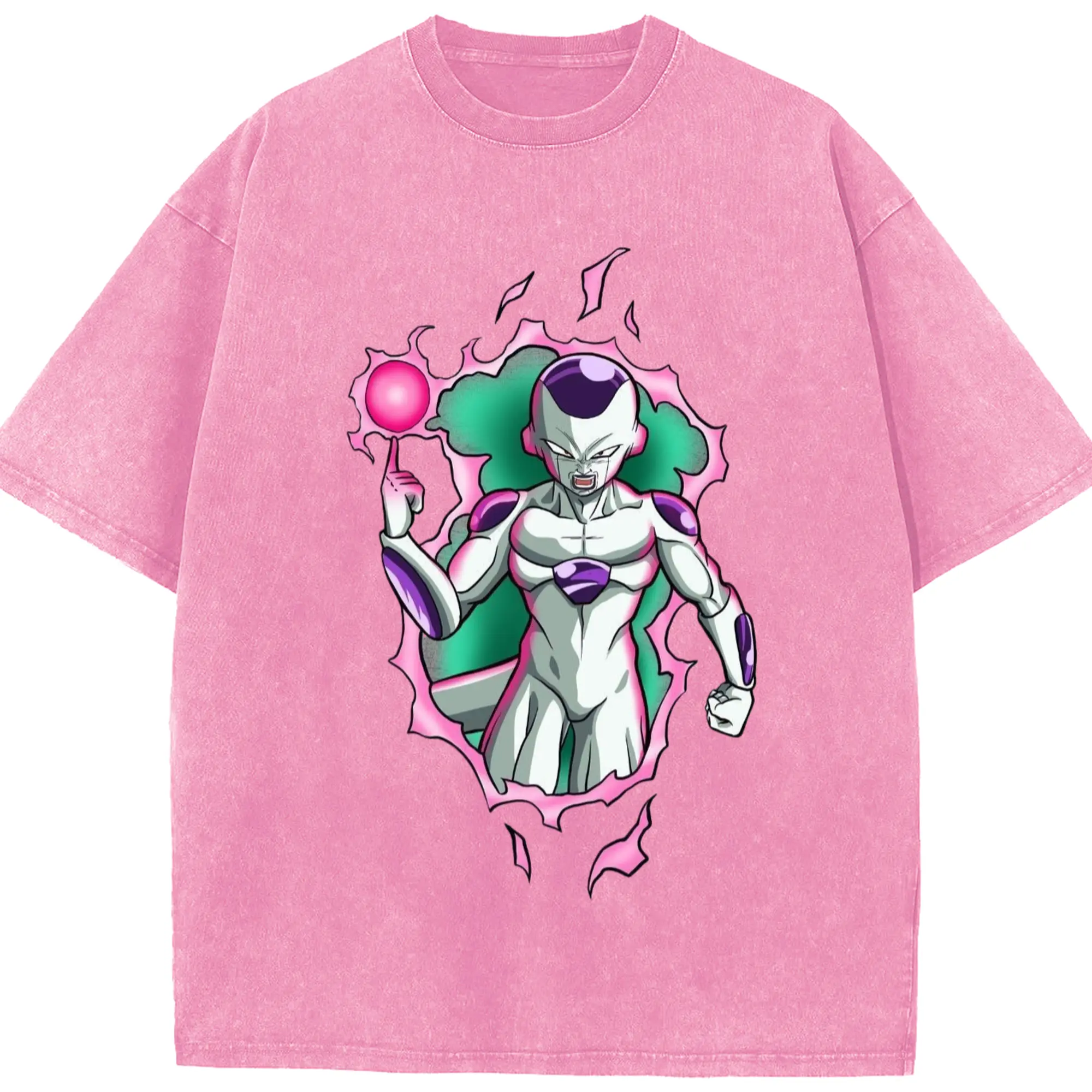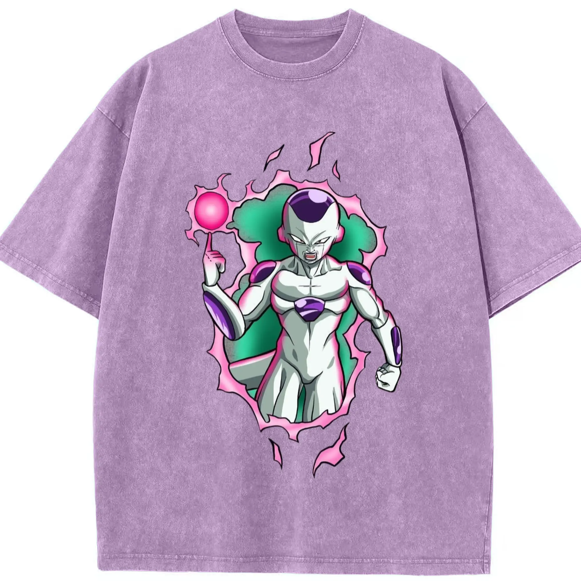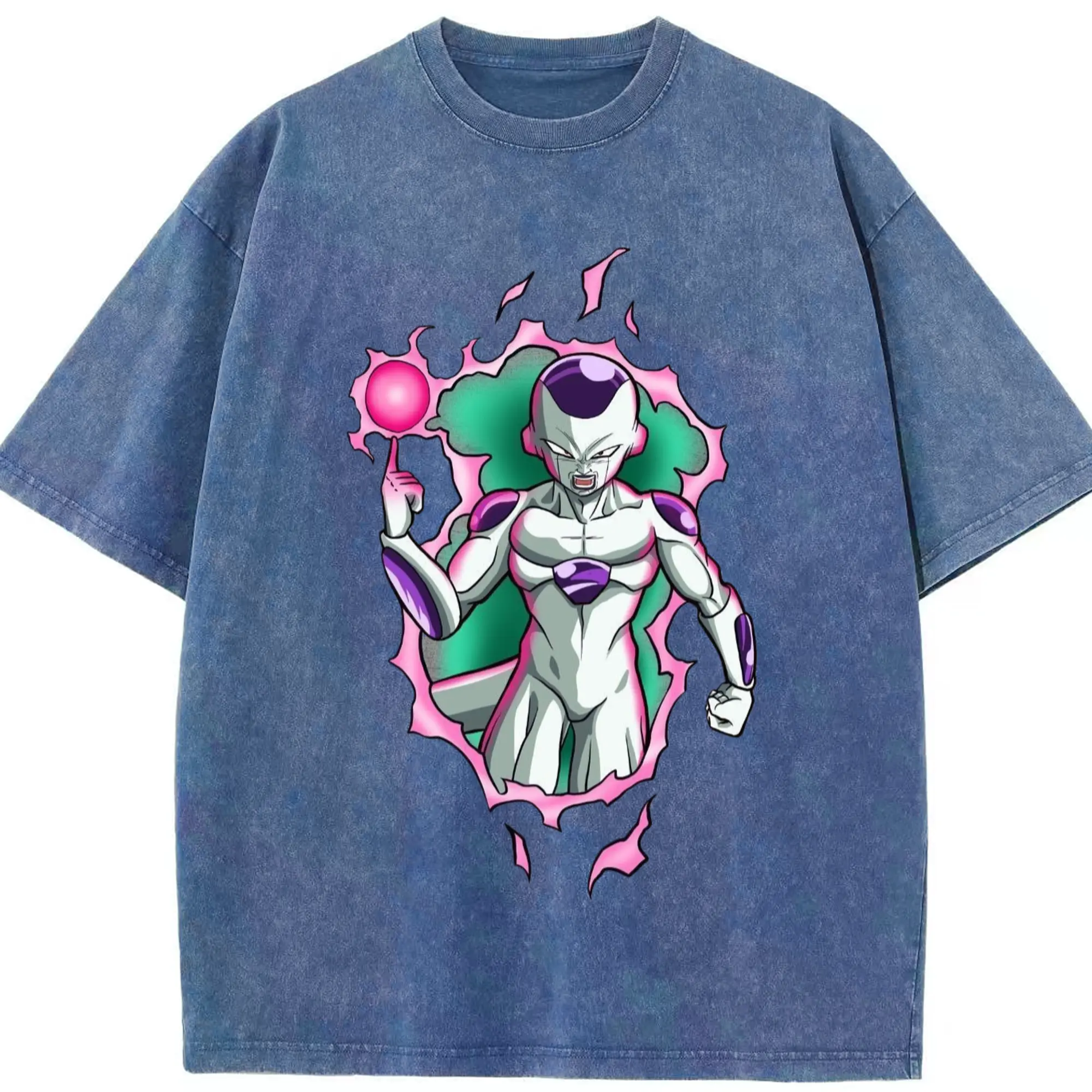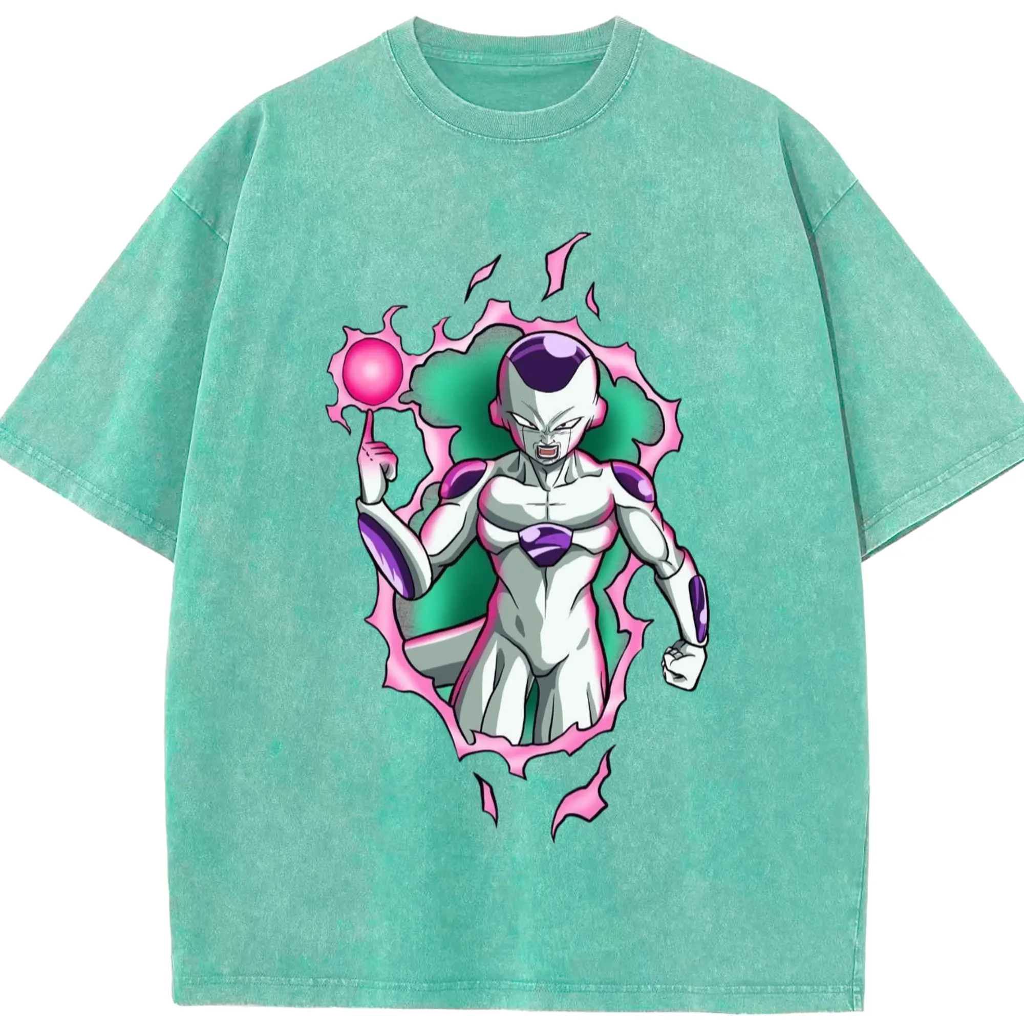 Dragon Ball Freeza t-shirt - Washed Vintage Look 230g Cotton Oversized T-Shirt With Front Heat Transfer Print – Soft, Lightweight, Stylish Fit – Comfortable Casual Wear For Sports & Everyday Use