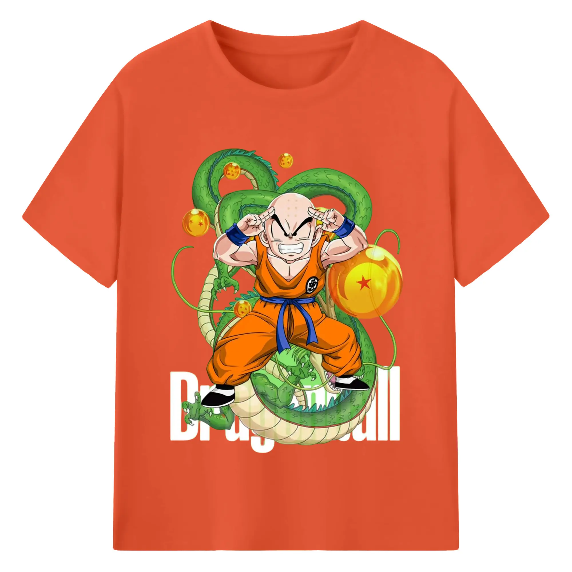Dragon ball krillin graphic shirt​ - 180g Cotton T-Shirt With Front Heat Transfer Print – Soft, Lightweight, Fitted Design – Comfortable Casual Wear For Sports & Everyday Use