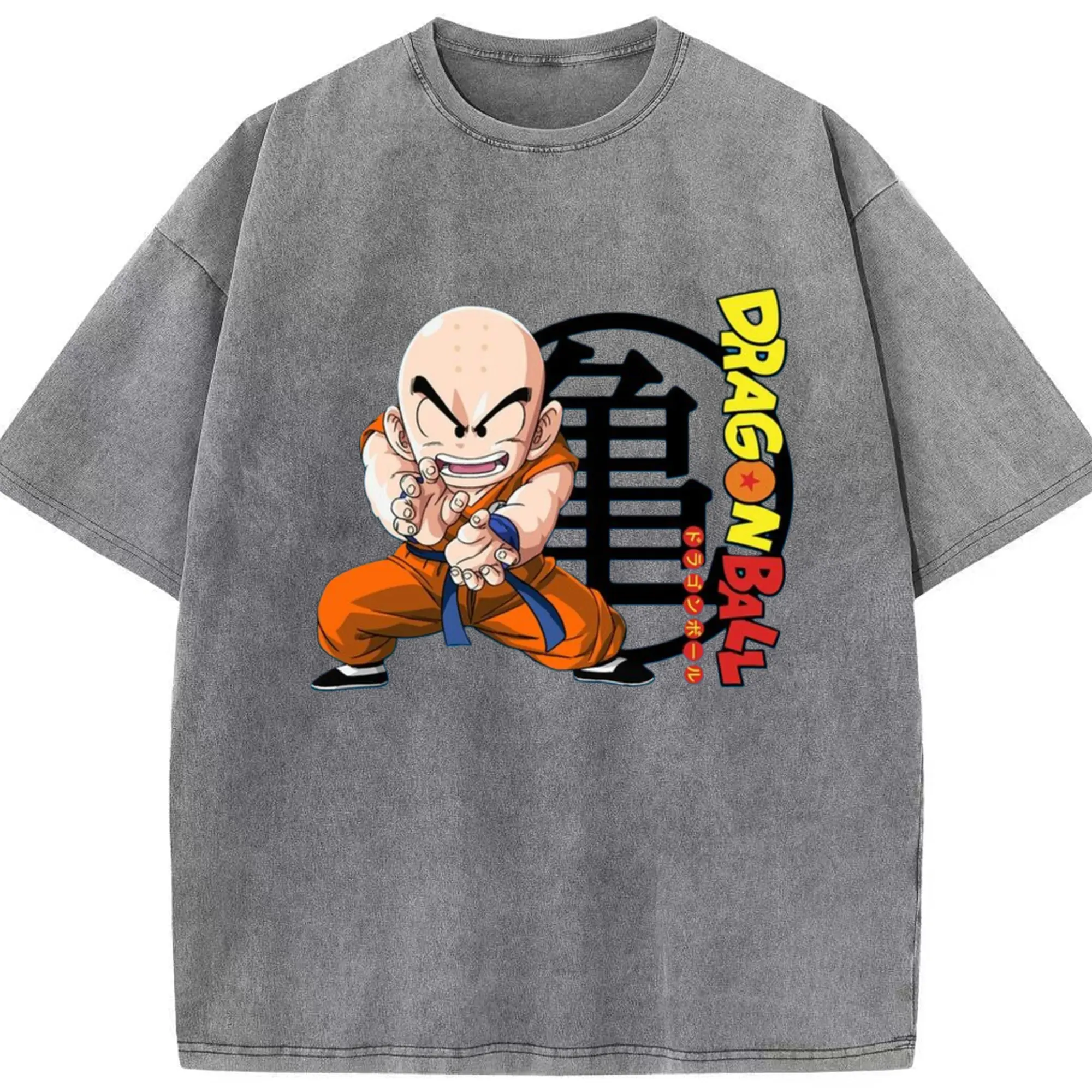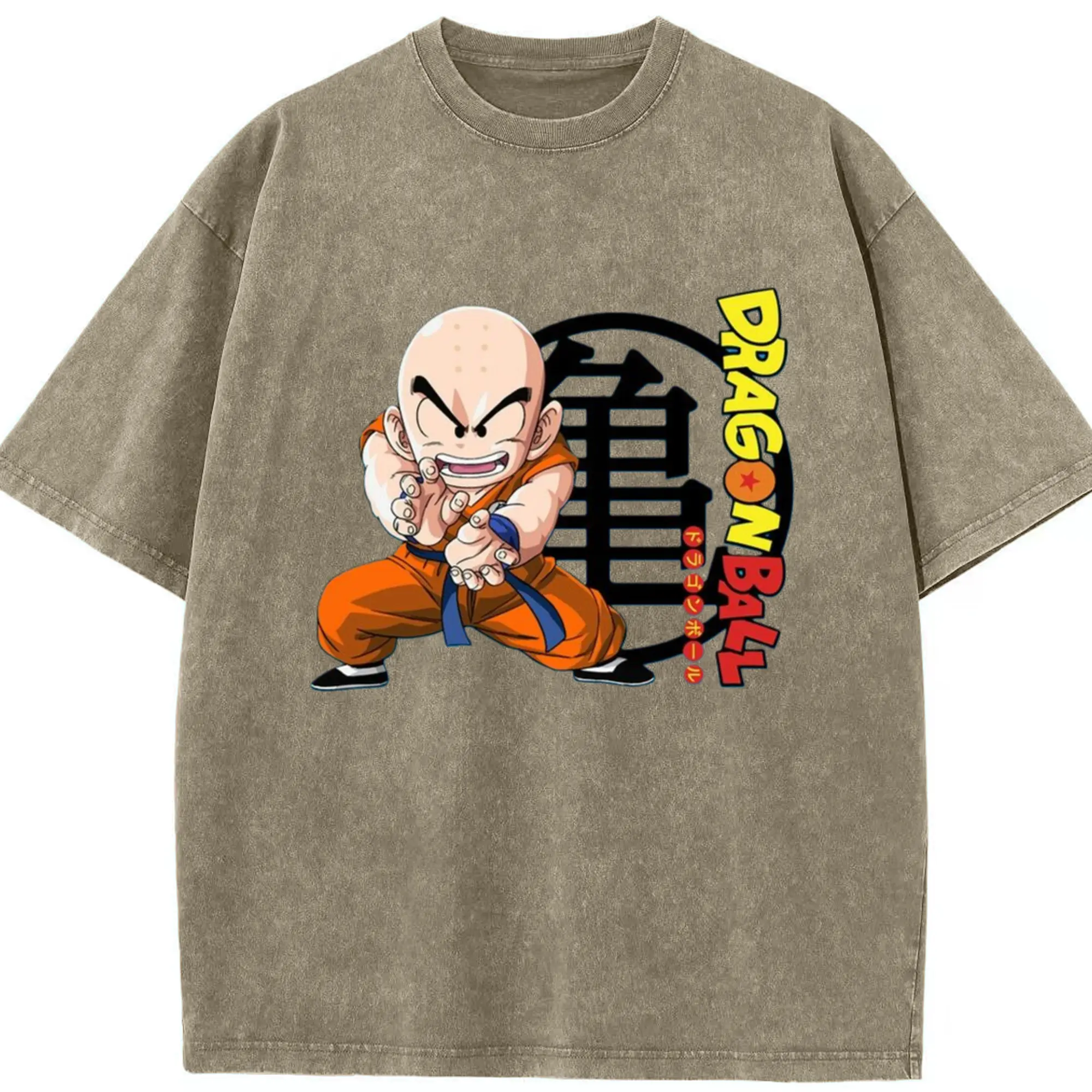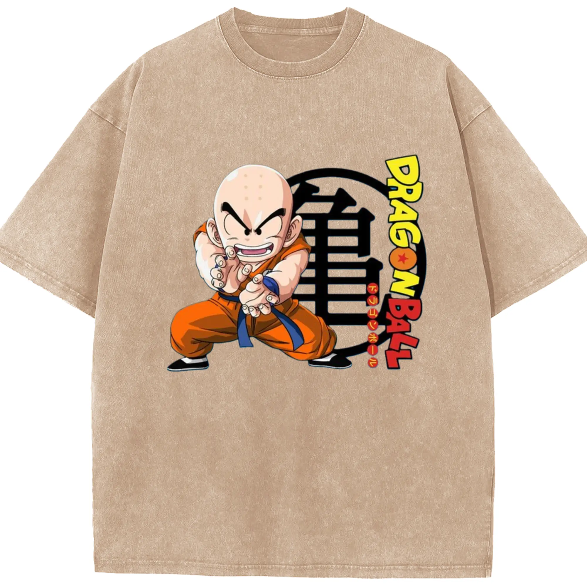 Dragon ball krillin tee - Washed Vintage Look 230g Cotton Oversized T-Shirt With Front Heat Transfer Print – Soft, Lightweight, Stylish Fit – Comfortable Casual Wear For Sports & Everyday Use