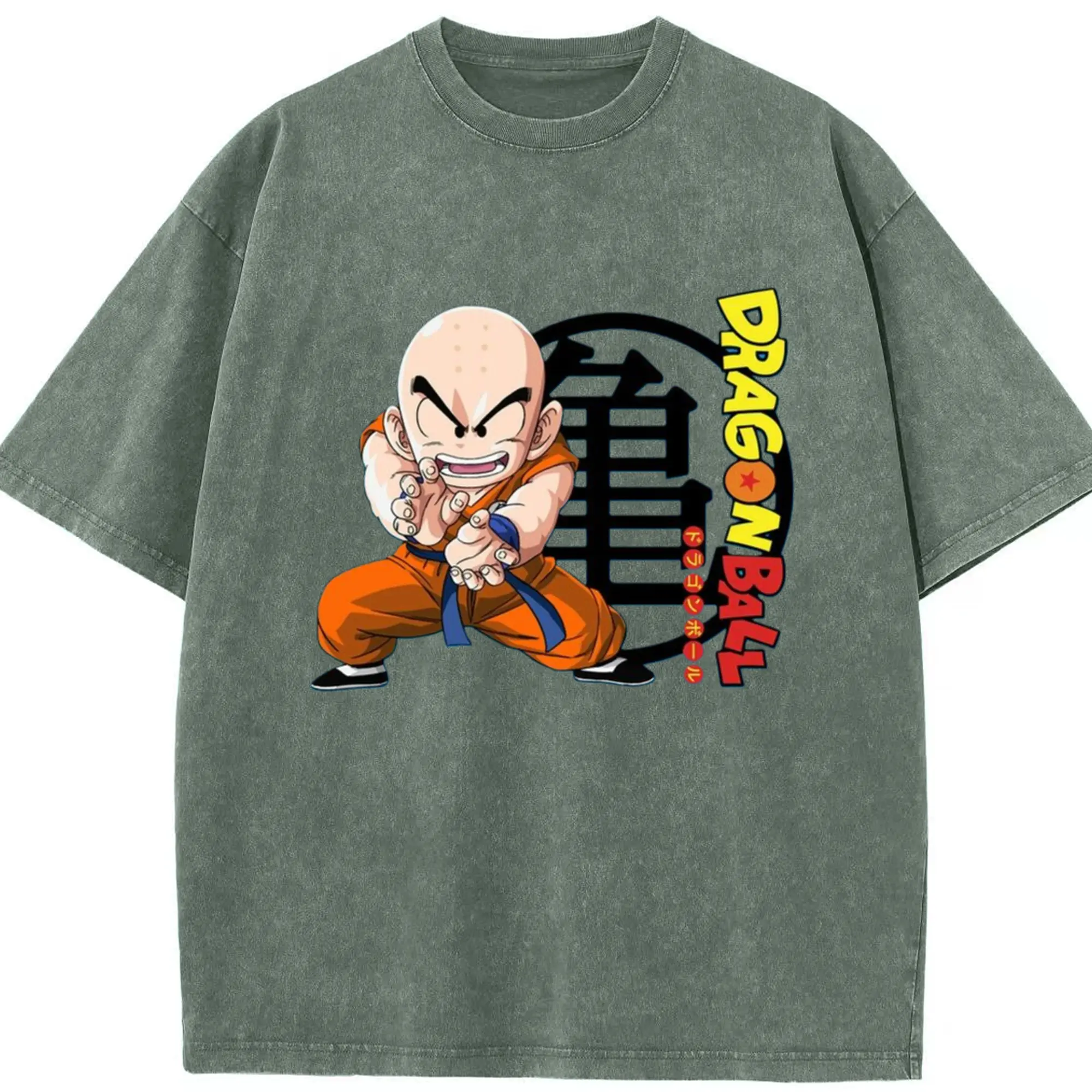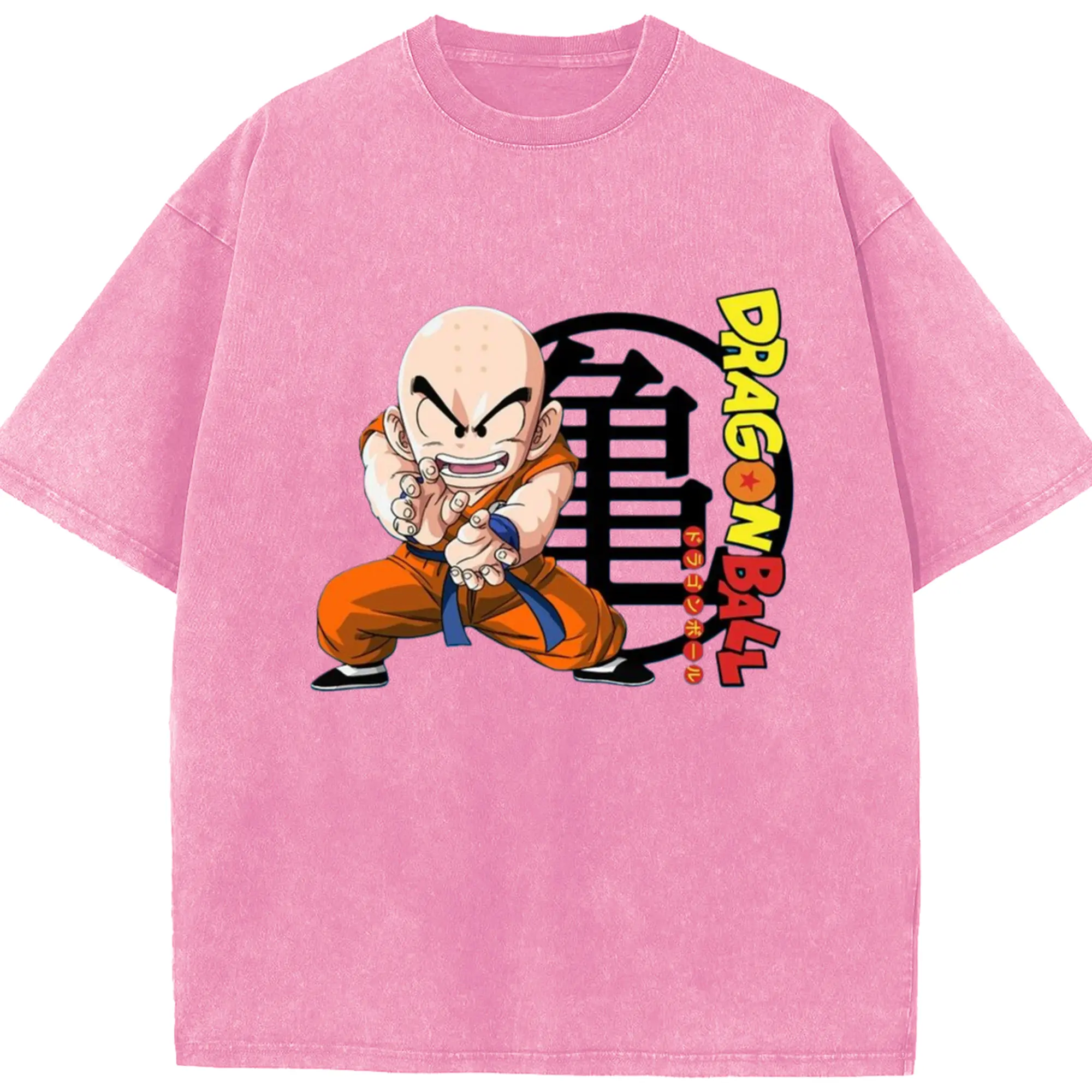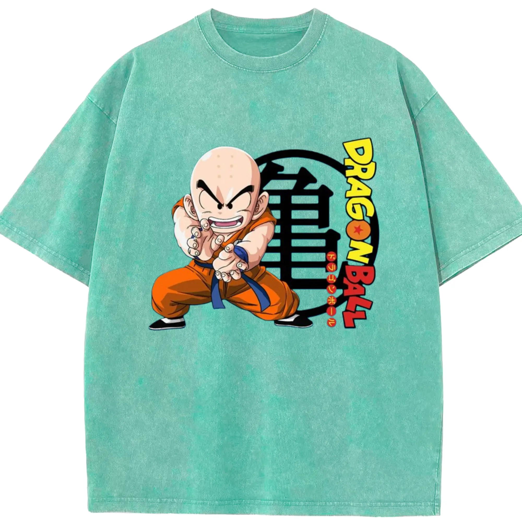 Dragon ball krillin tee - Washed Vintage Look 230g Cotton Oversized T-Shirt With Front Heat Transfer Print – Soft, Lightweight, Stylish Fit – Comfortable Casual Wear For Sports & Everyday Use