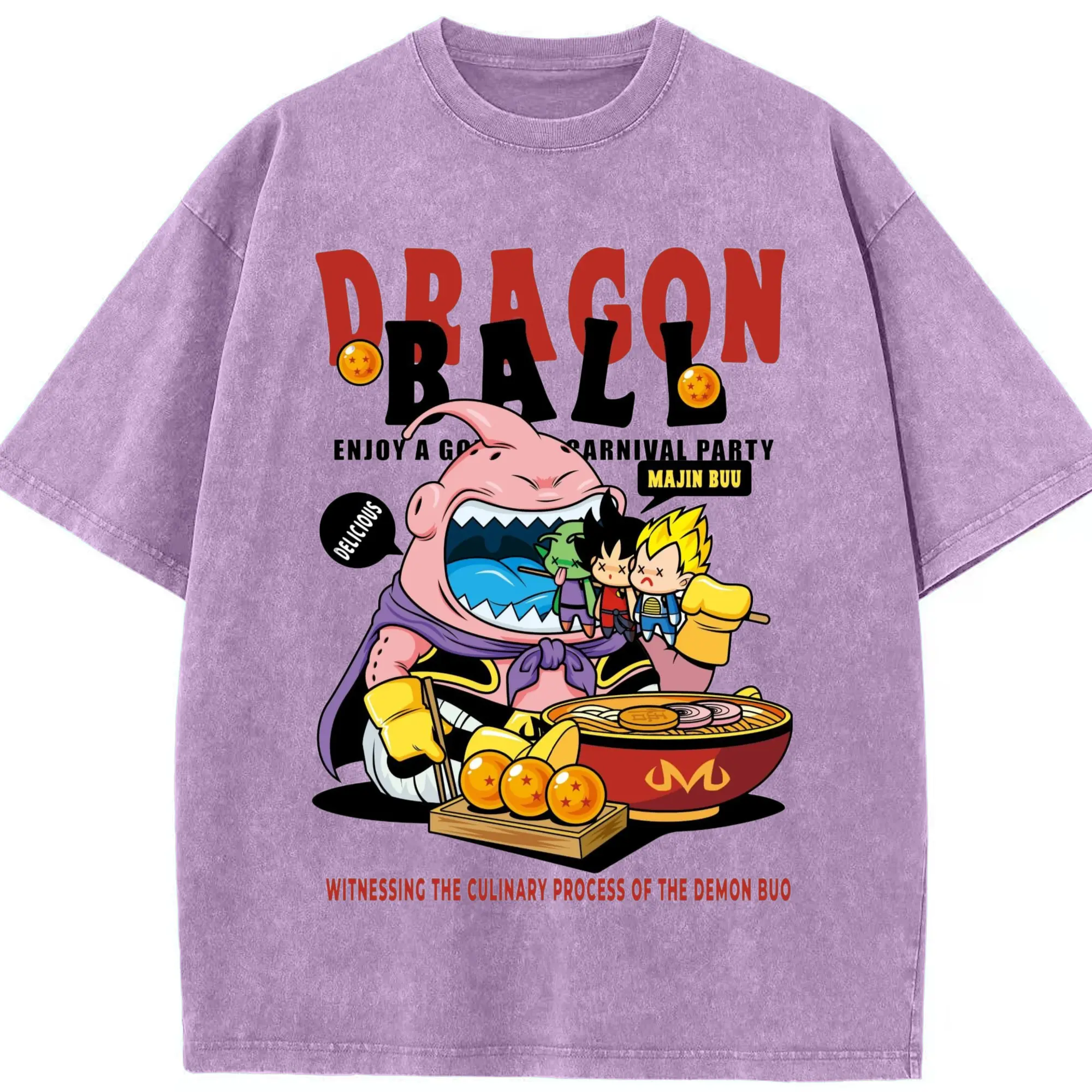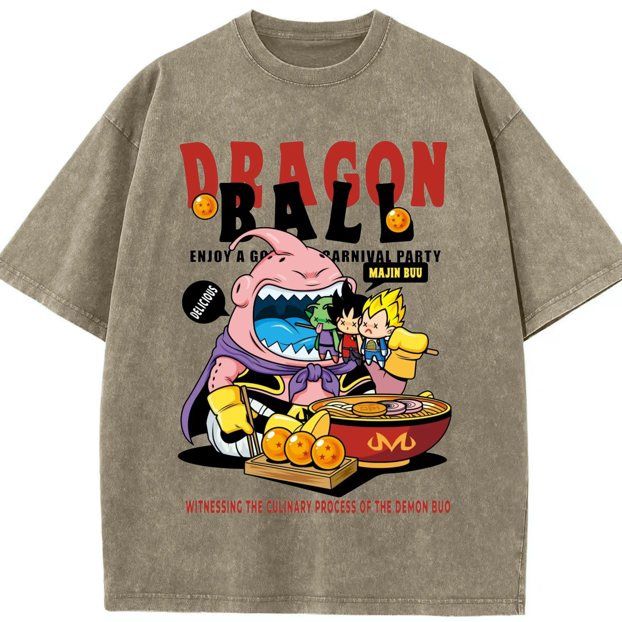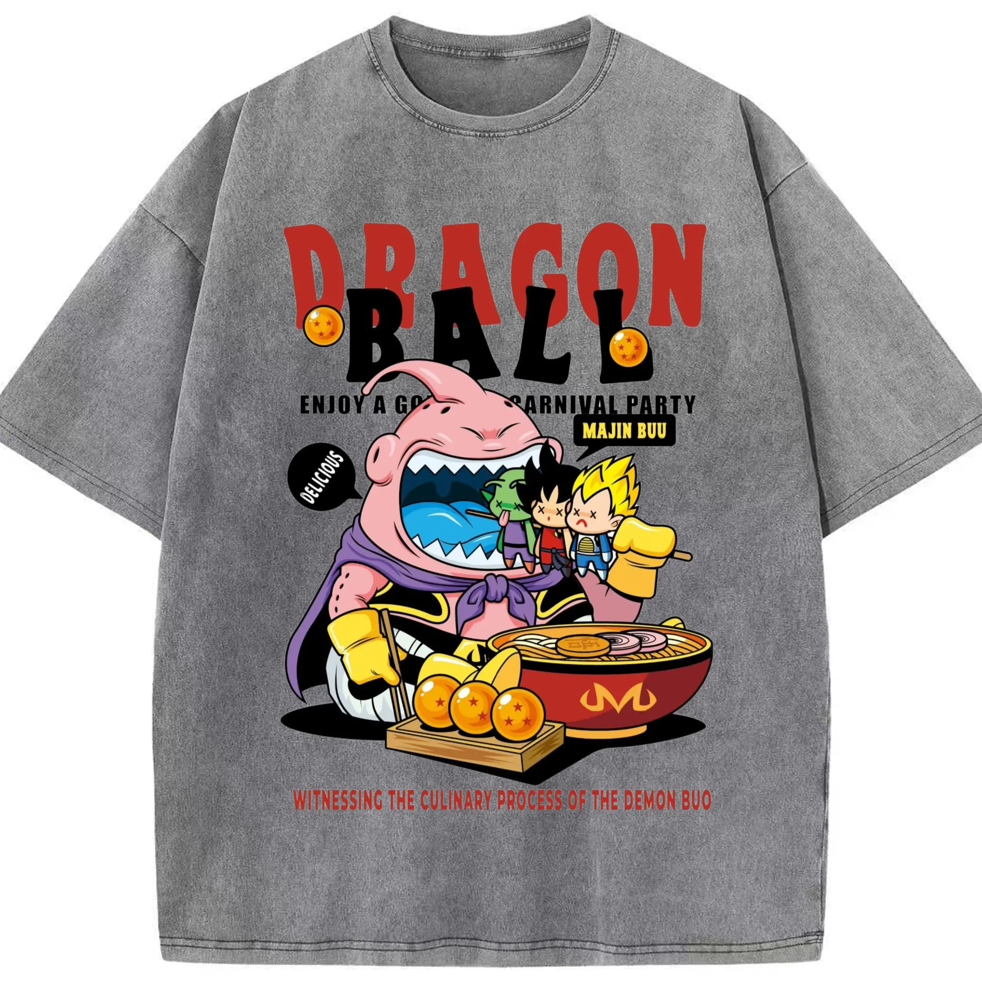 Dragon Ball Master Buu vintage T-Shirt - Washed Vintage Look 230g Cotton Oversized T-Shirt With Front Heat Transfer Print – Soft, Lightweight, Stylish Fit – Comfortable Casual Wear For Sports & Everyday Use