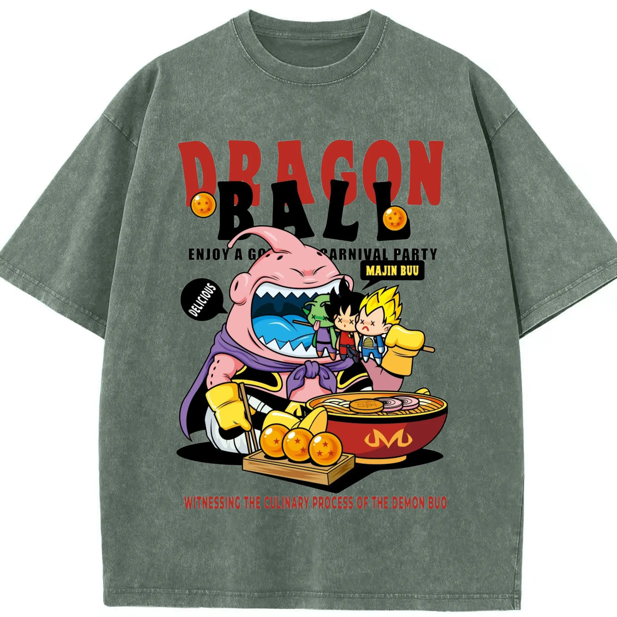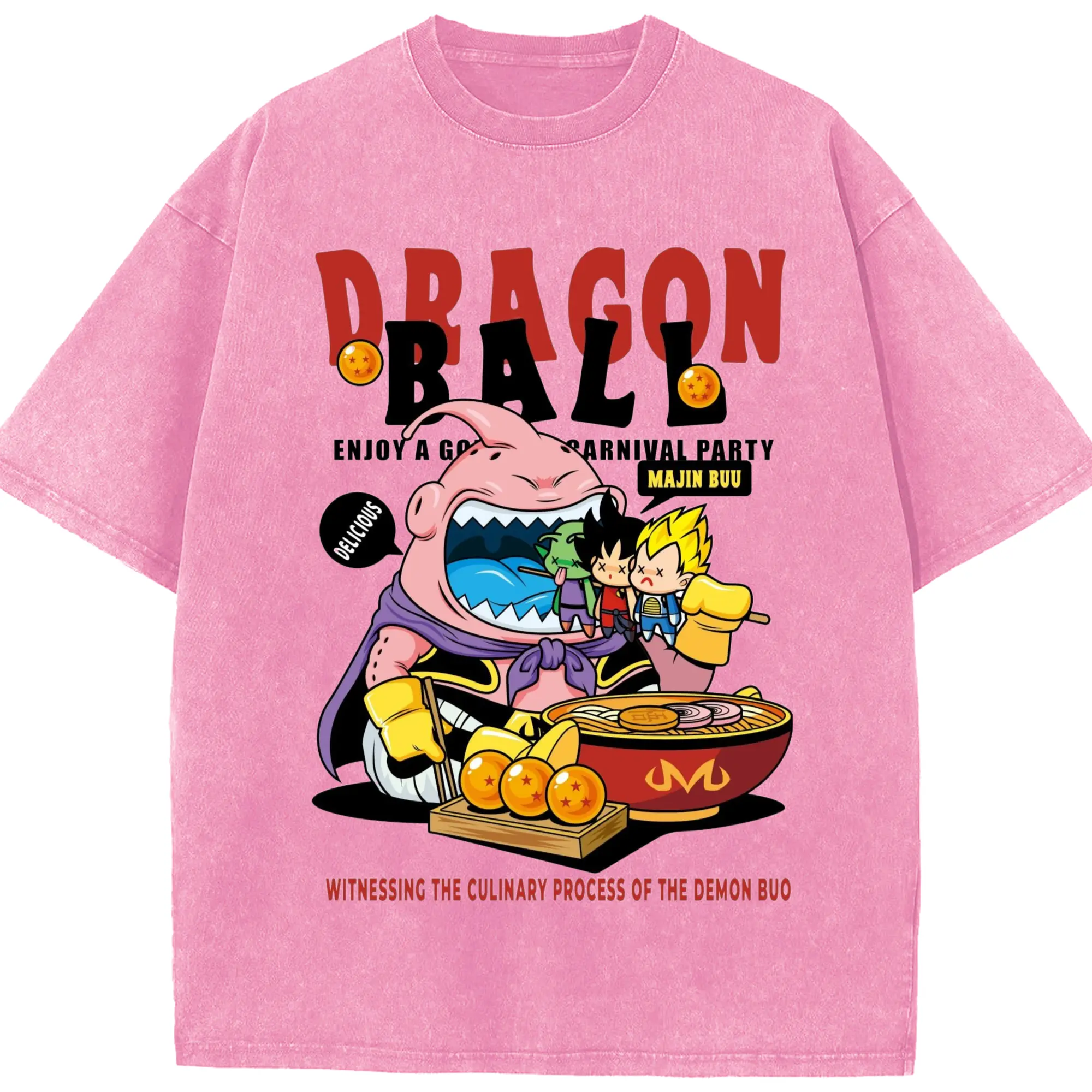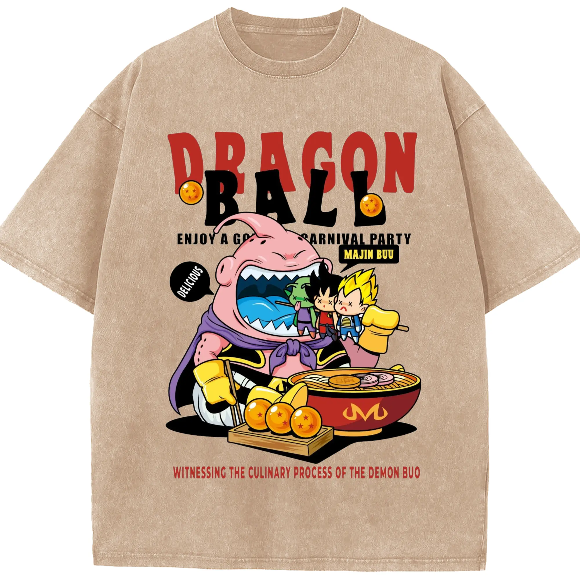 Dragon Ball Master Buu vintage T-Shirt - Washed Vintage Look 230g Cotton Oversized T-Shirt With Front Heat Transfer Print – Soft, Lightweight, Stylish Fit – Comfortable Casual Wear For Sports & Everyday Use