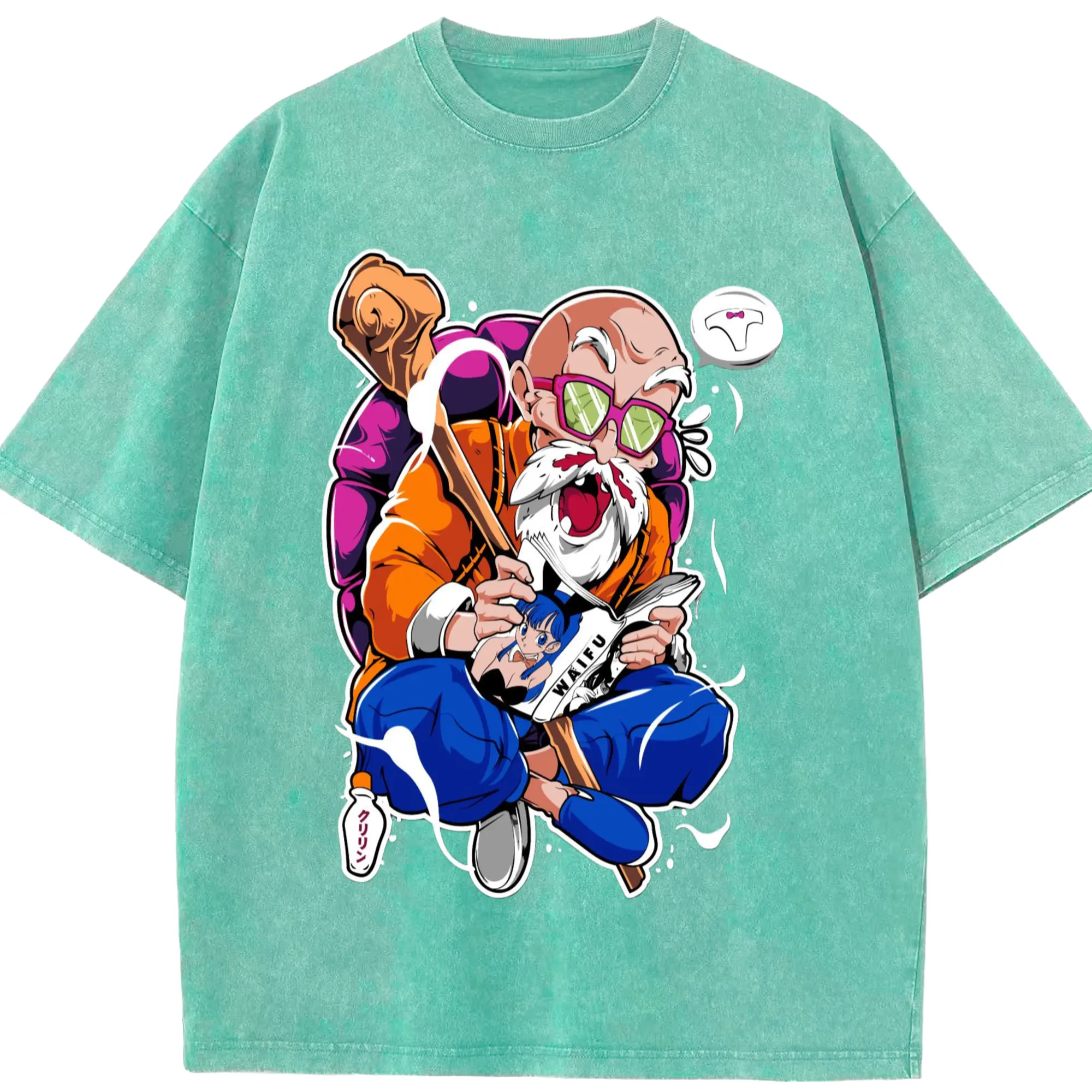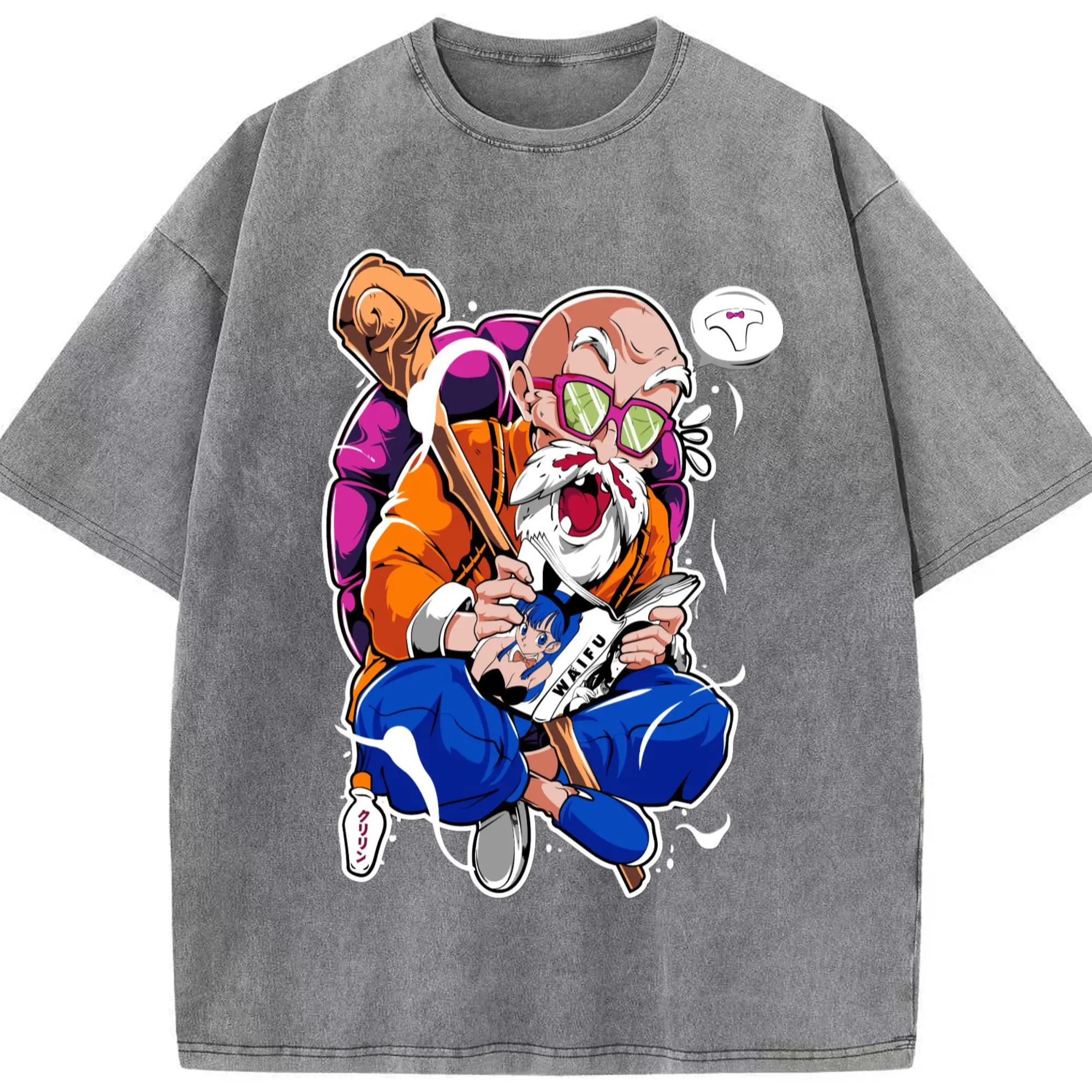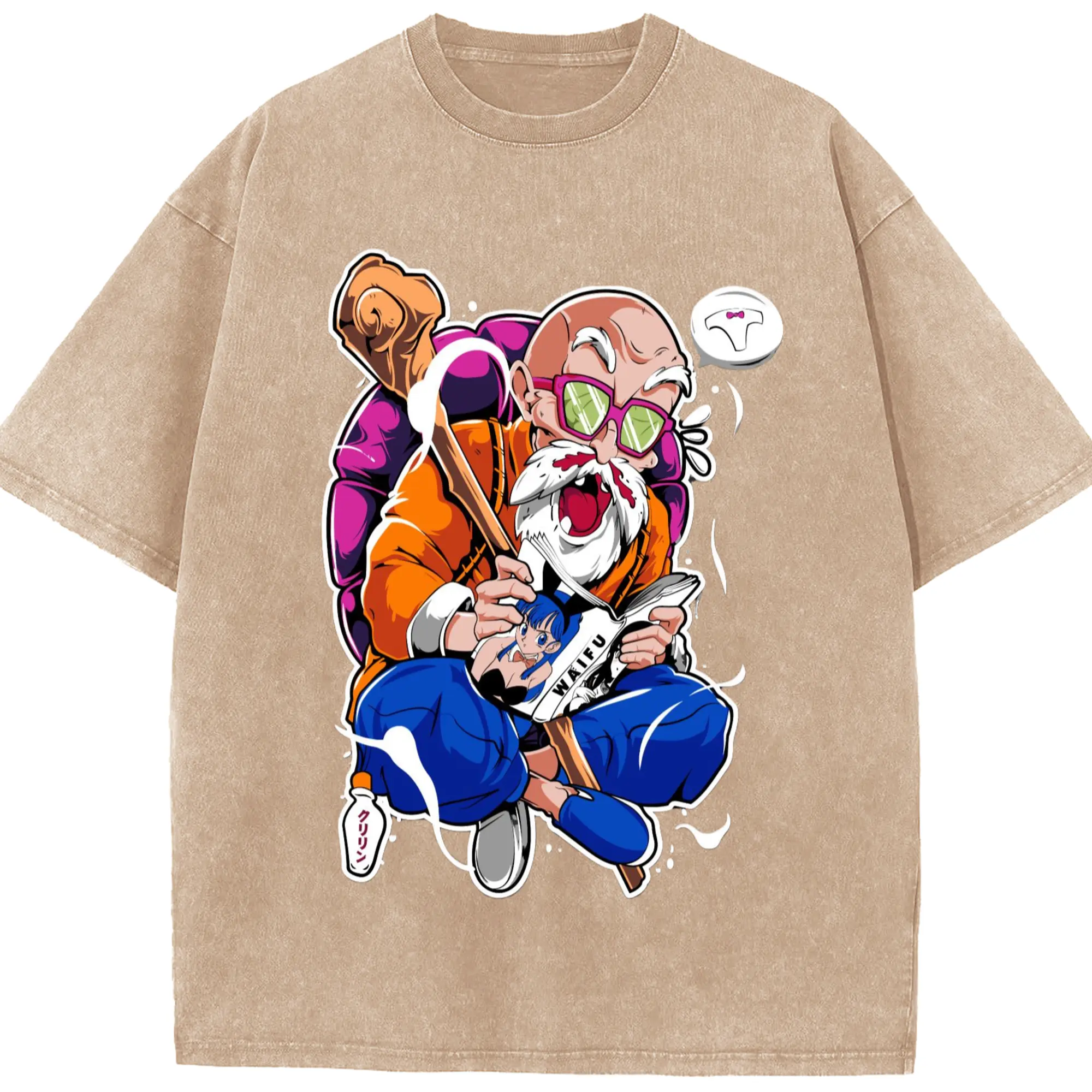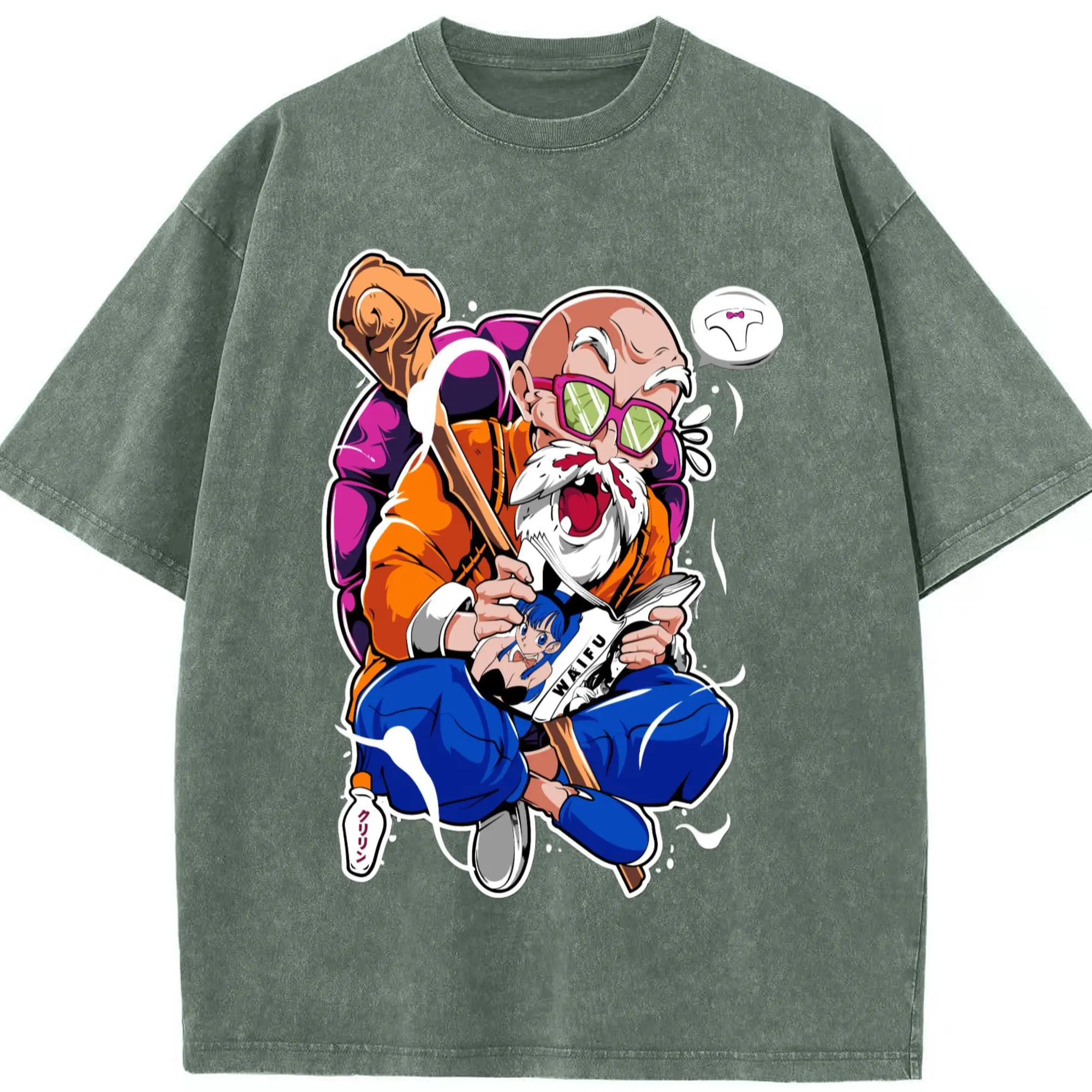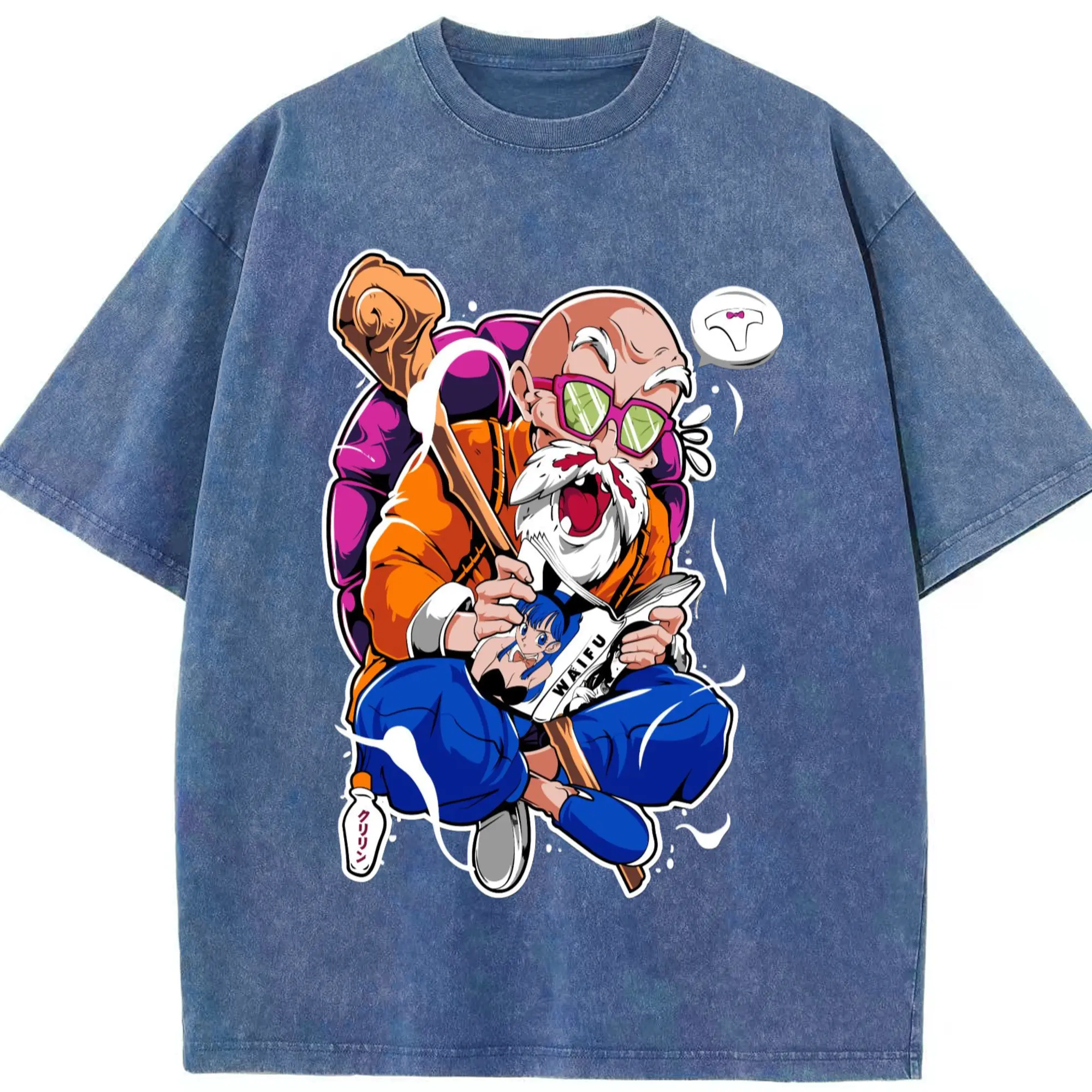 Dragon Ball Master Roshi T-Shirt - Washed Vintage Look 230g Cotton Oversized T-Shirt With Front Heat Transfer Print – Soft, Lightweight, Stylish Fit – Comfortable Casual Wear For Sports & Everyday Use