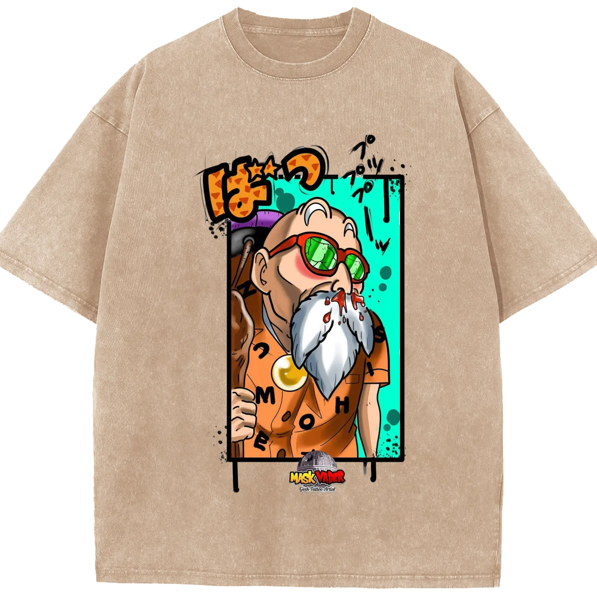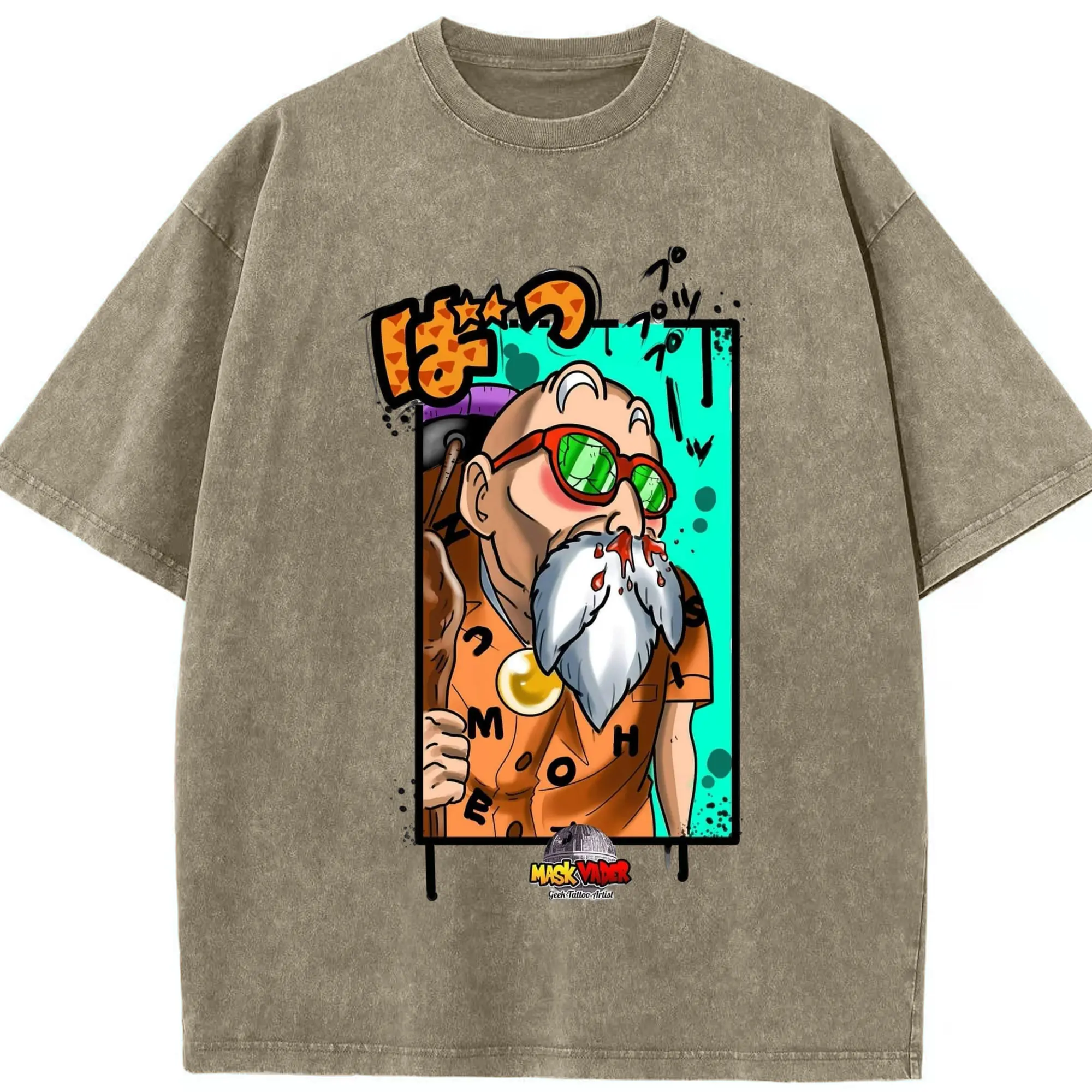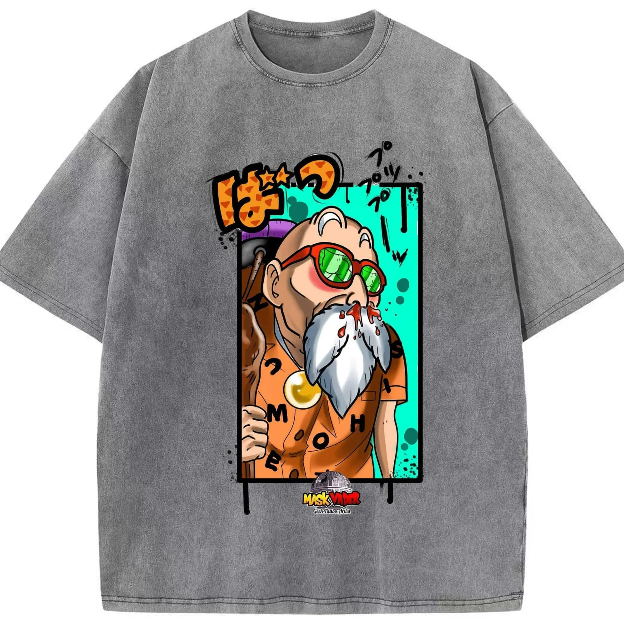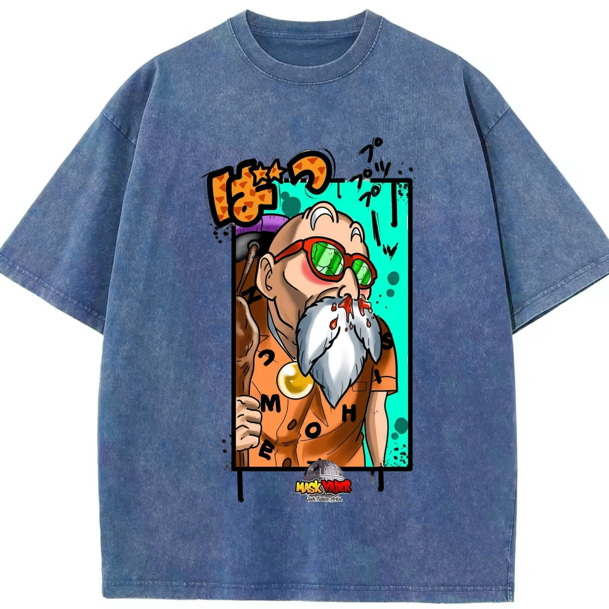 Dragon Ball Master Roshi Unisex T-shirt - Washed Vintage Look 230g Cotton Oversized T-Shirt With Front Heat Transfer Print – Soft, Lightweight, Stylish Fit – Comfortable Casual Wear For Sports & Everyday Use
