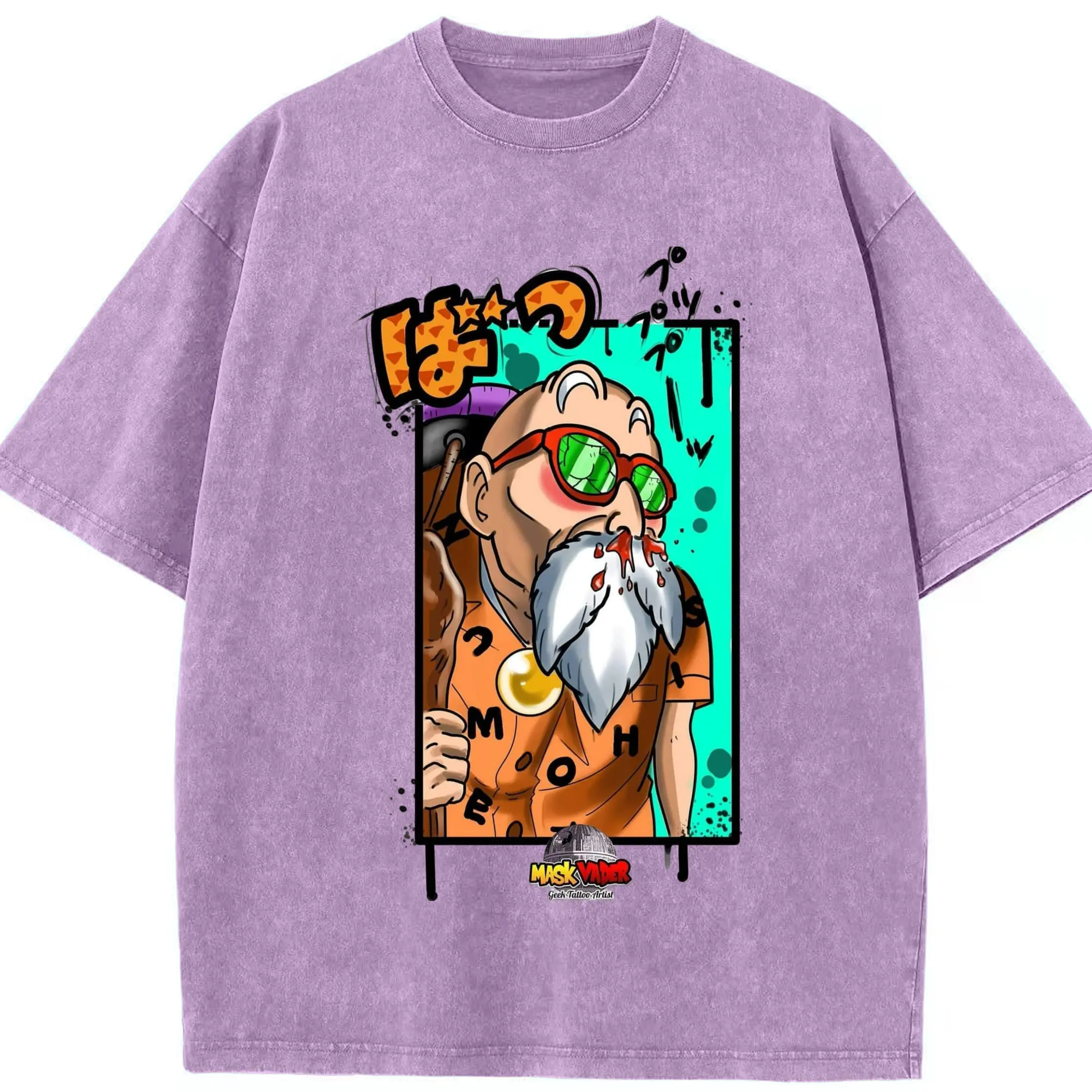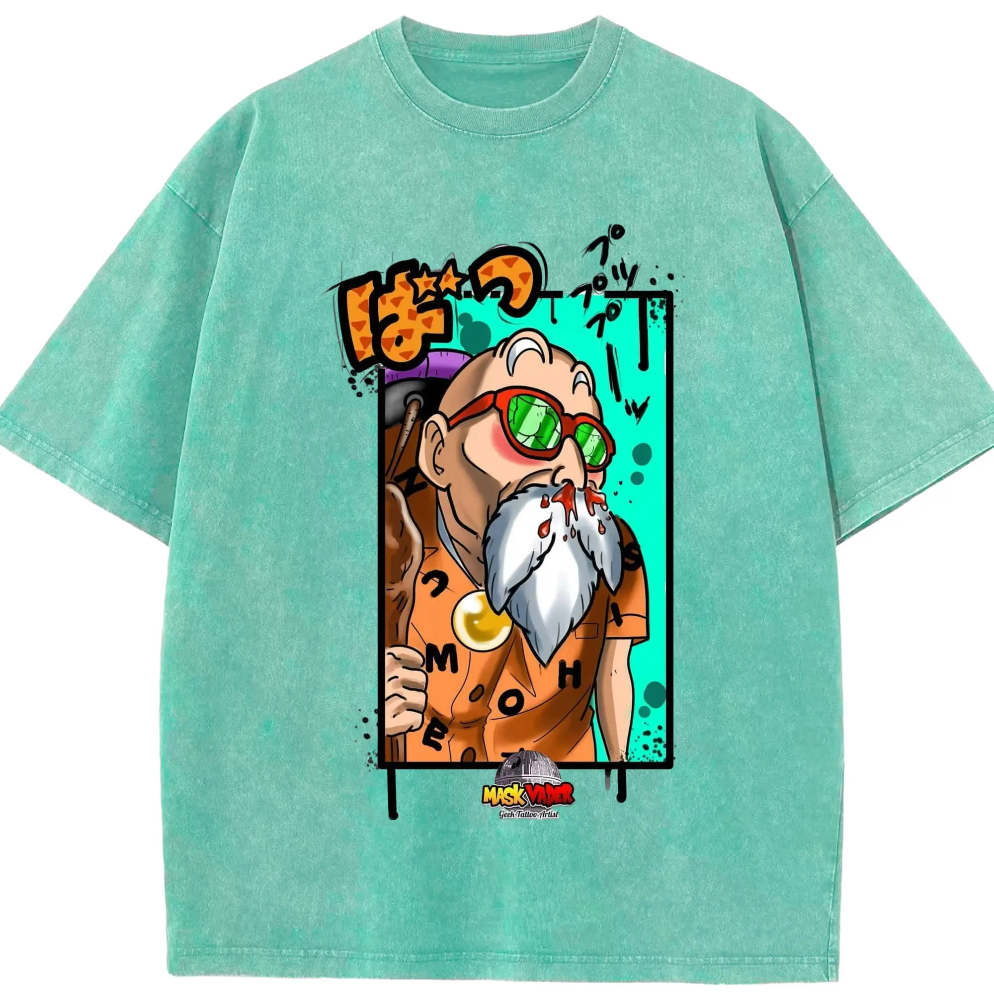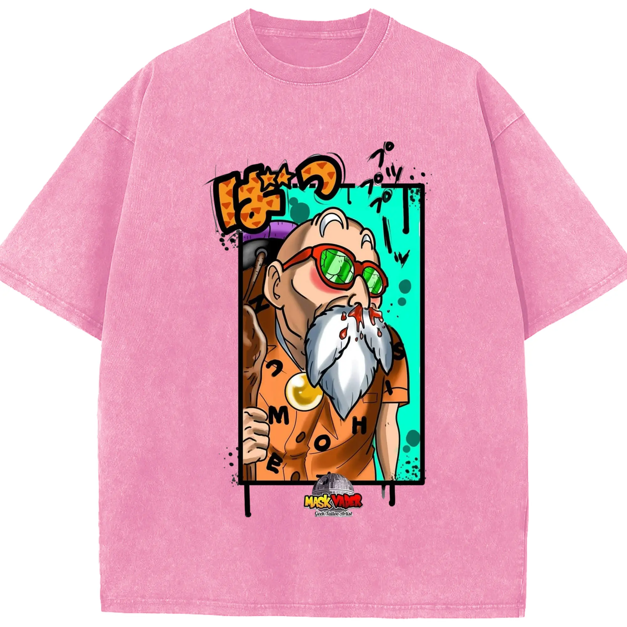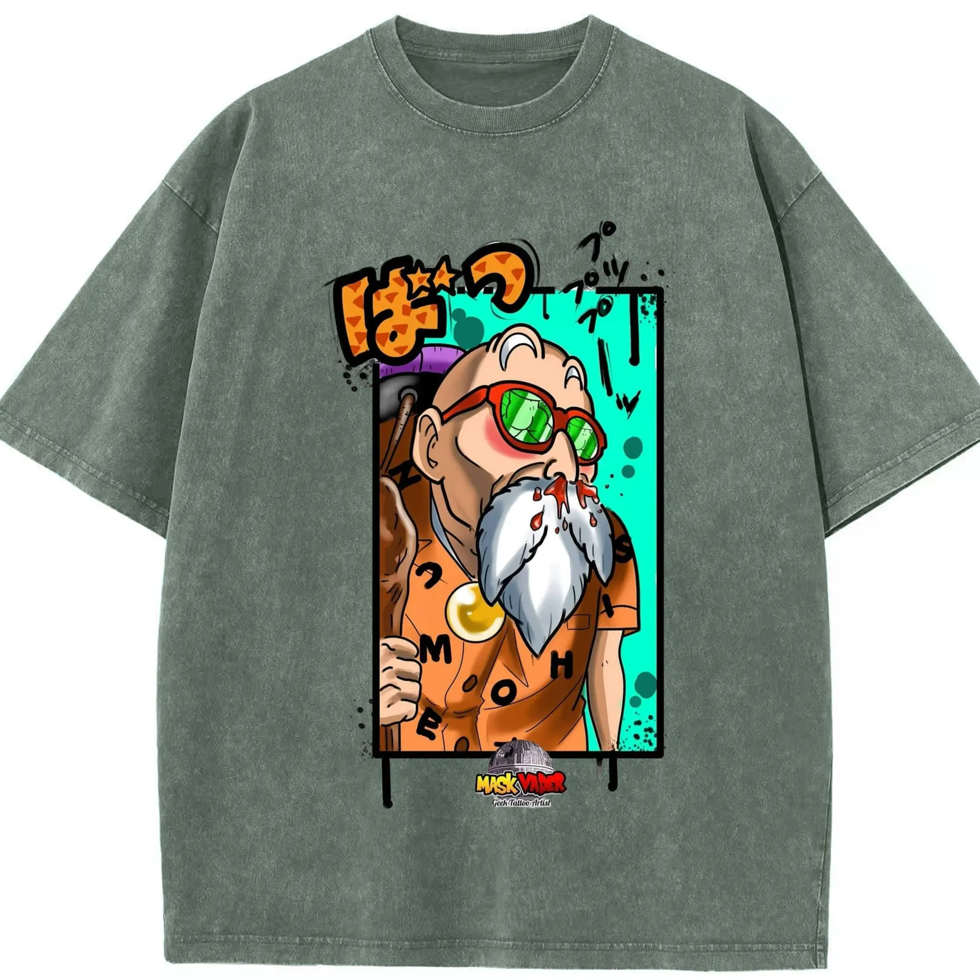Dragon Ball Master Roshi Unisex T-shirt - Washed Vintage Look 230g Cotton Oversized T-Shirt With Front Heat Transfer Print – Soft, Lightweight, Stylish Fit – Comfortable Casual Wear For Sports & Everyday Use