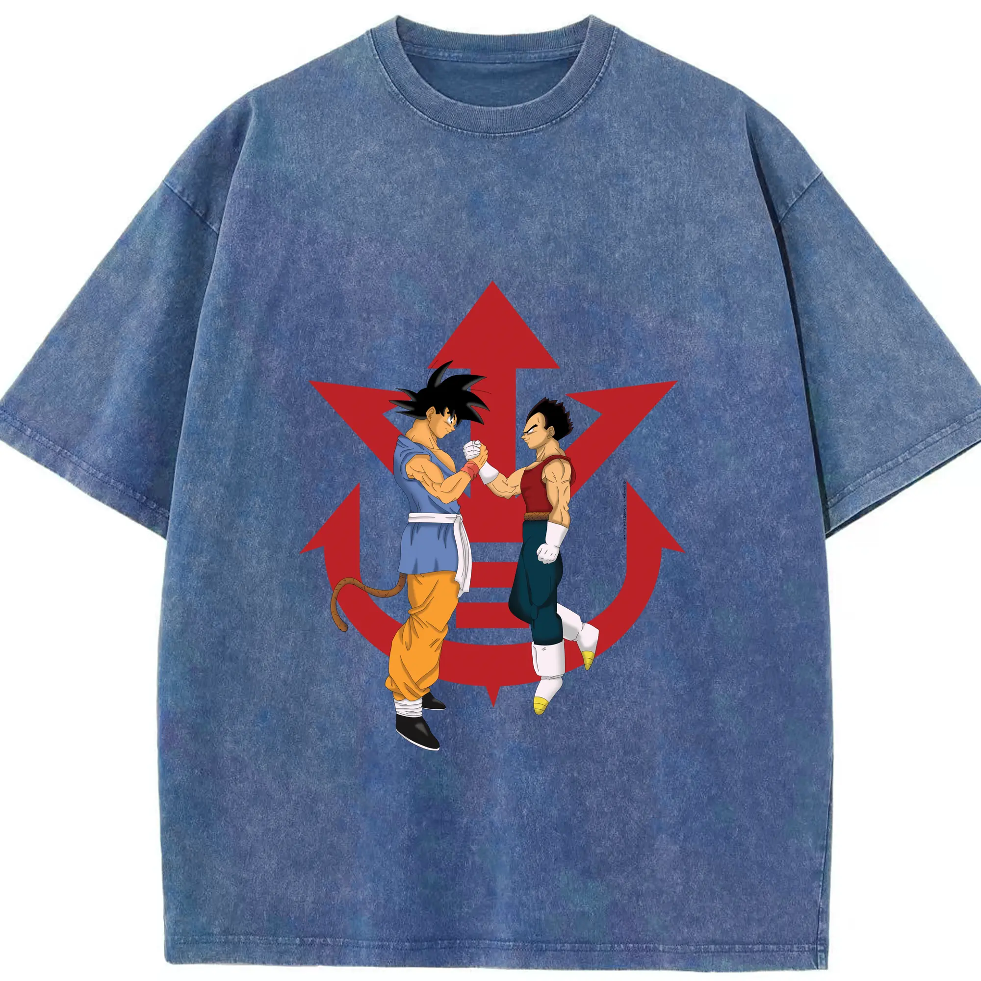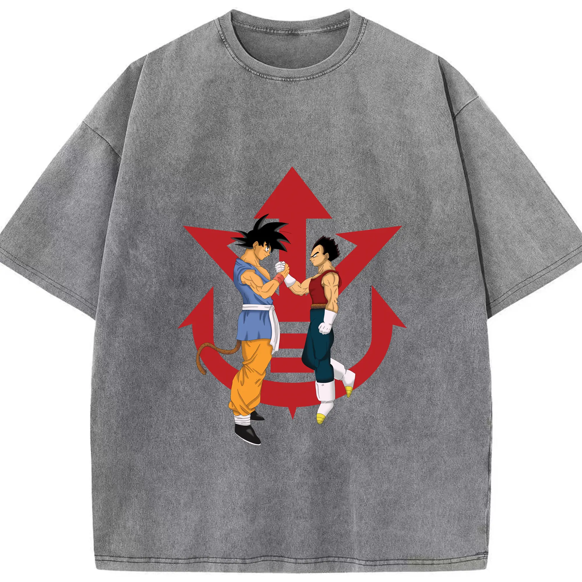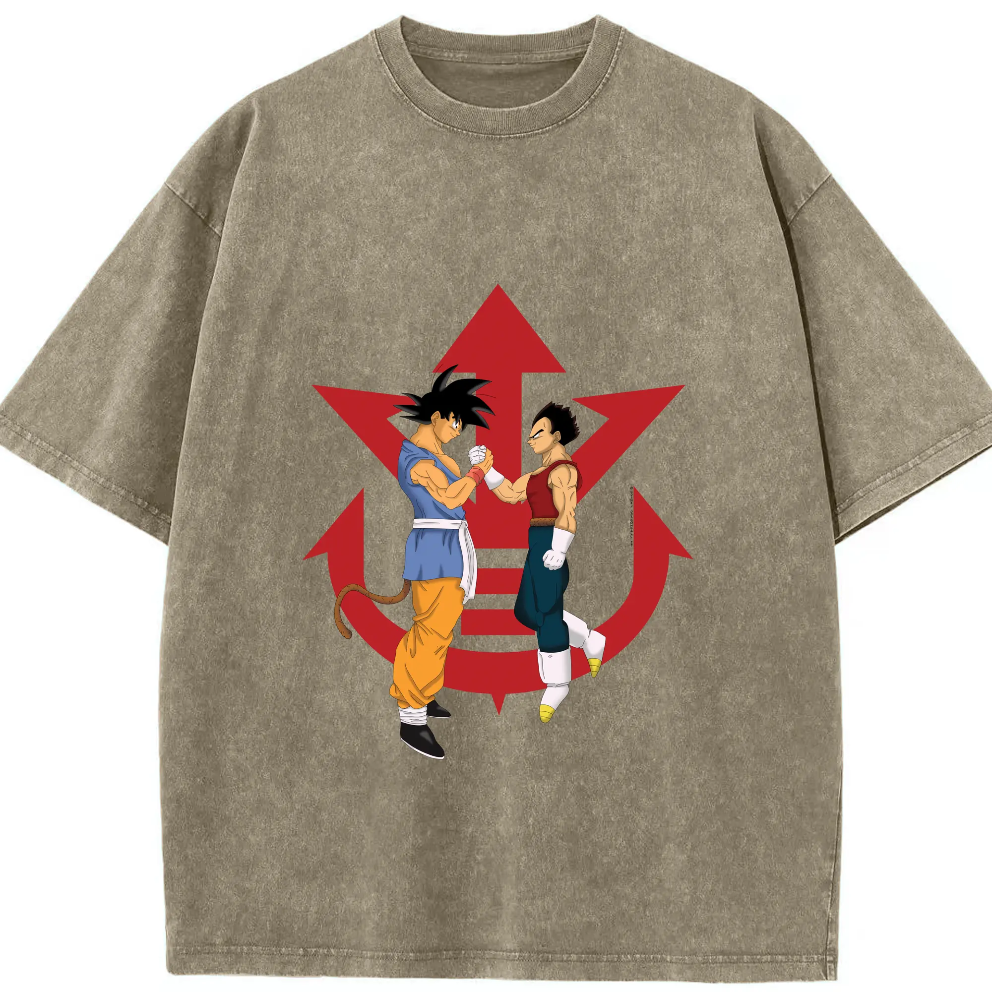 Dragon ball son goku and Vegeta t-shirt​ - Washed Vintage Look 230g Cotton Oversized T-Shirt With Front Heat Transfer Print – Soft, Lightweight, Stylish Fit – Comfortable Casual Wear For Sports & Everyday Use