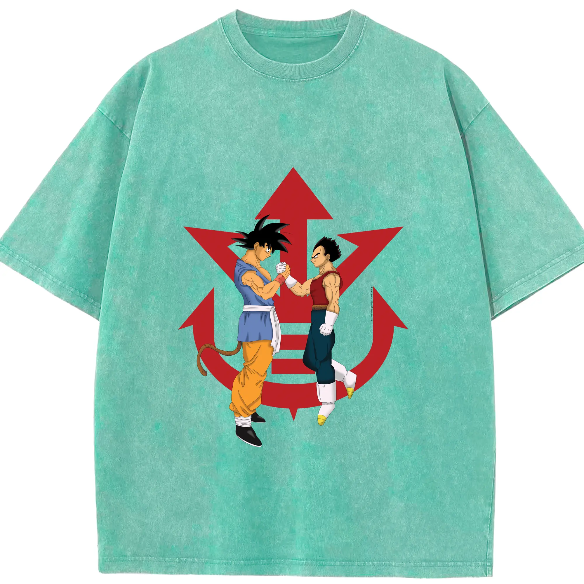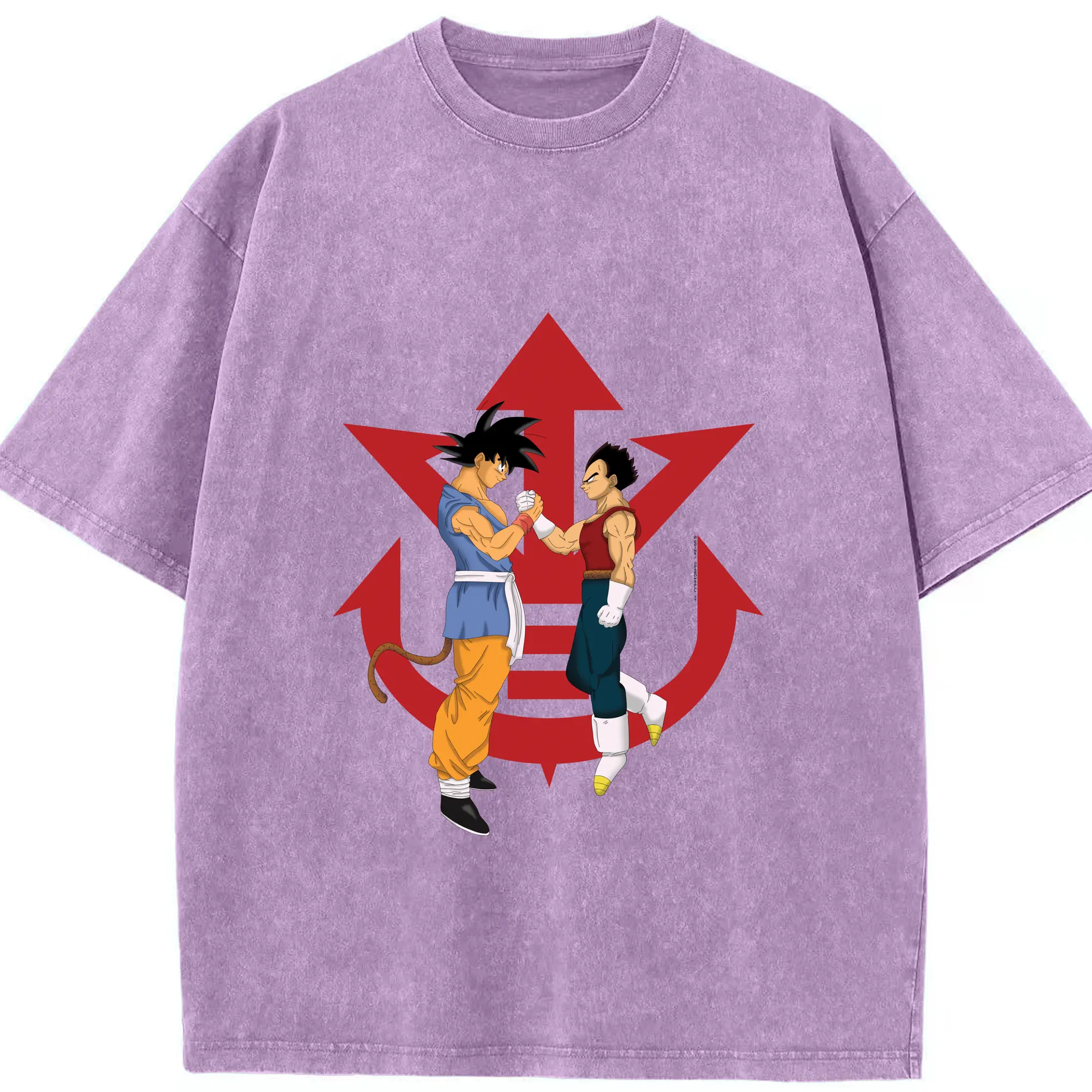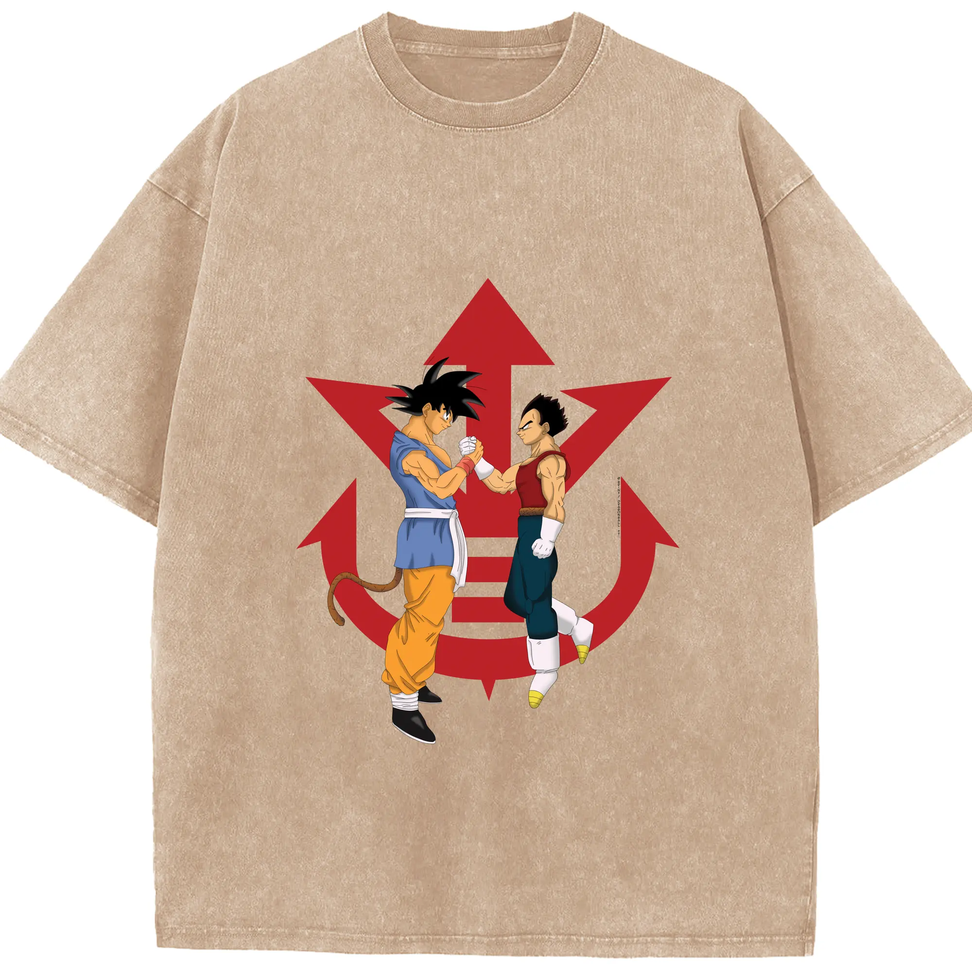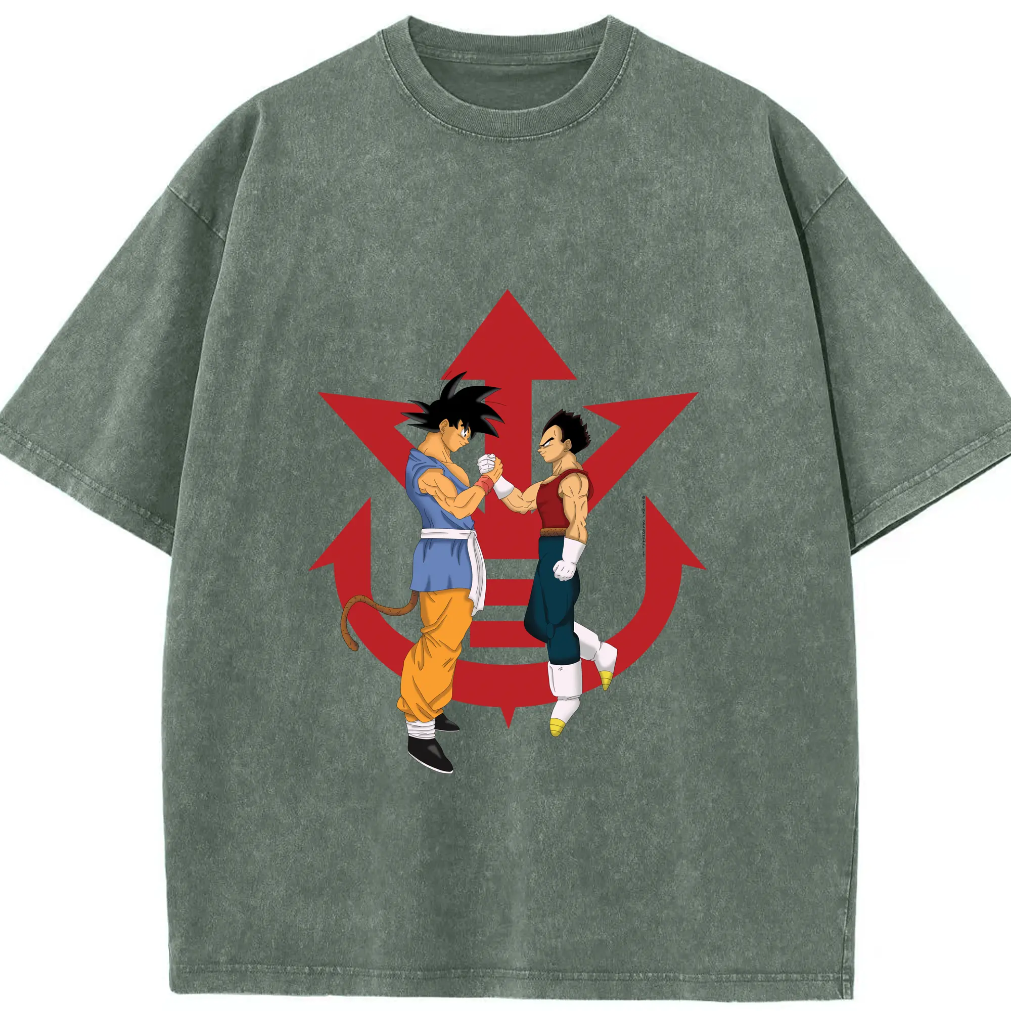 Dragon ball son goku and Vegeta t-shirt​ - Washed Vintage Look 230g Cotton Oversized T-Shirt With Front Heat Transfer Print – Soft, Lightweight, Stylish Fit – Comfortable Casual Wear For Sports & Everyday Use