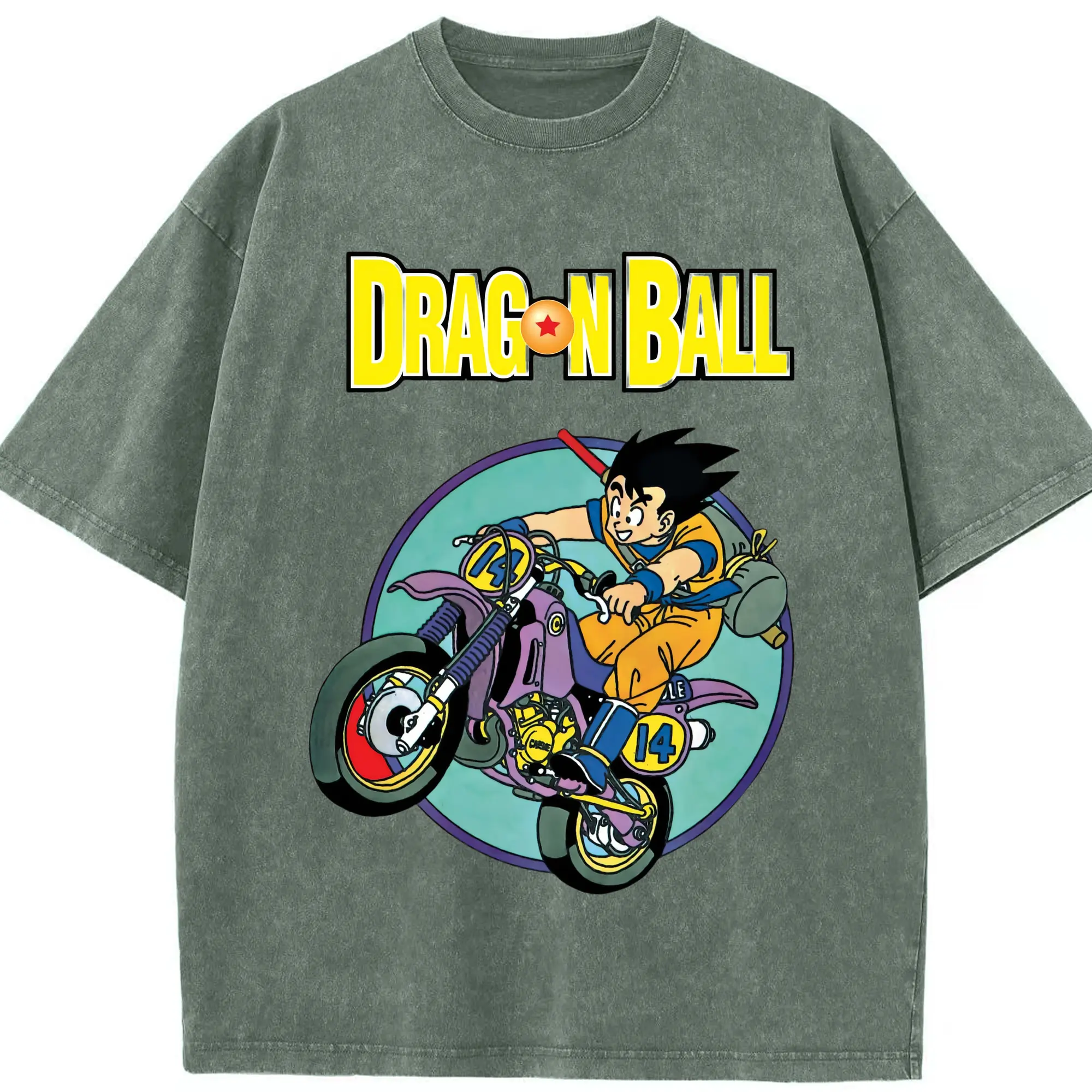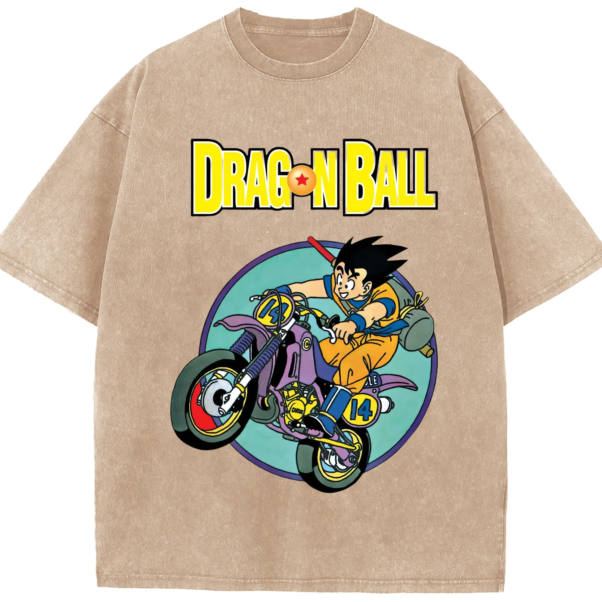 Dragon ball son goku retro tee - Washed Vintage Look 230g Cotton Oversized T-Shirt With Front Heat Transfer Print – Soft, Lightweight, Stylish Fit – Comfortable Casual Wear For Sports & Everyday Use