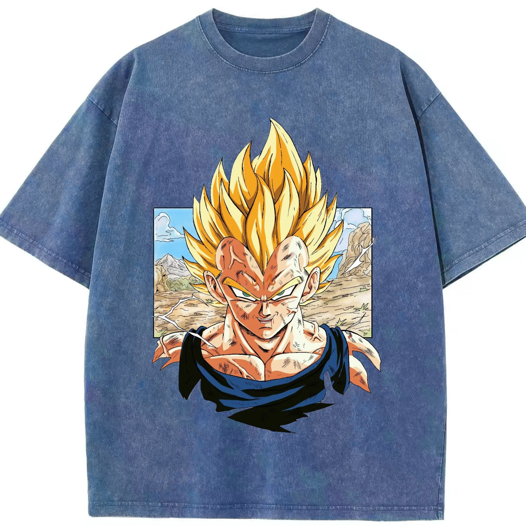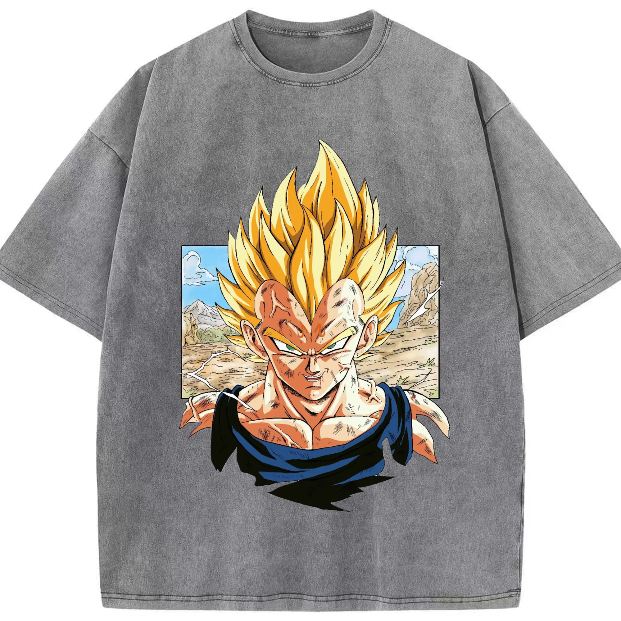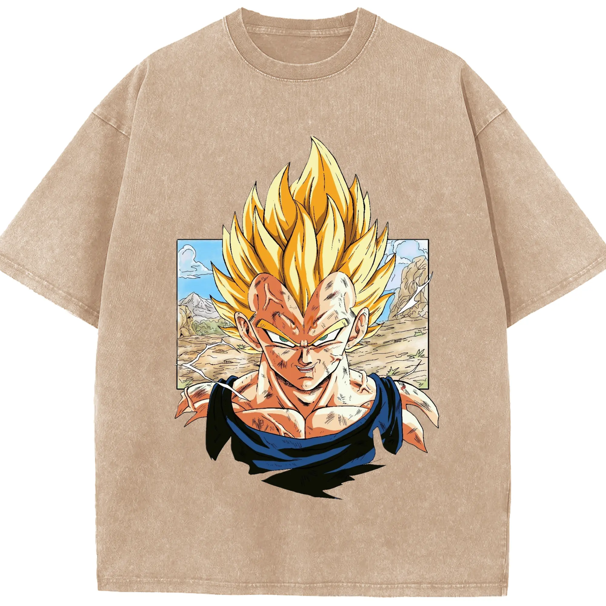 Dragon ball super vegeta shirt​ - Washed Vintage Look 230g Cotton Oversized T-Shirt With Front Heat Transfer Print – Soft, Lightweight, Stylish Fit – Comfortable Casual Wear For Sports & Everyday Use