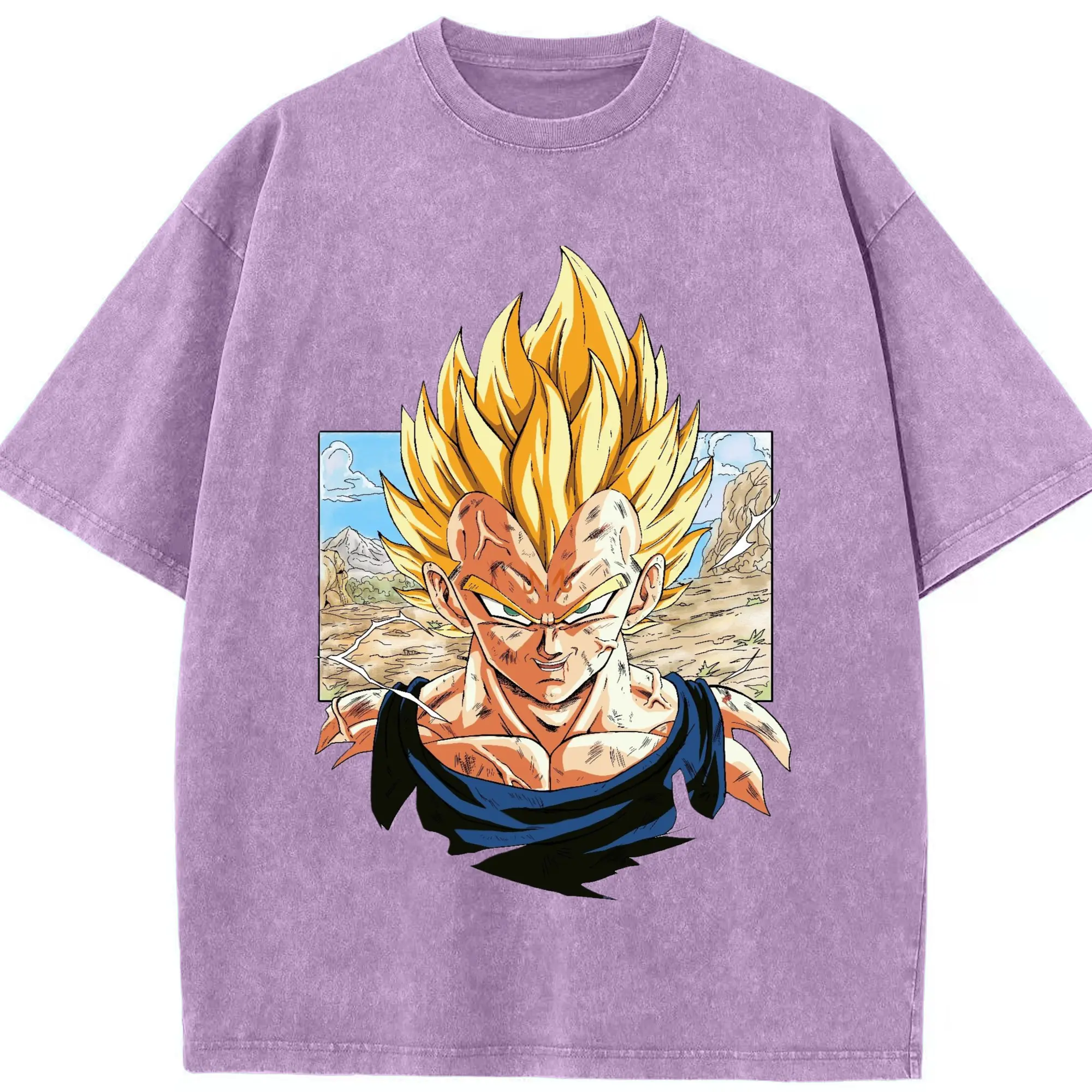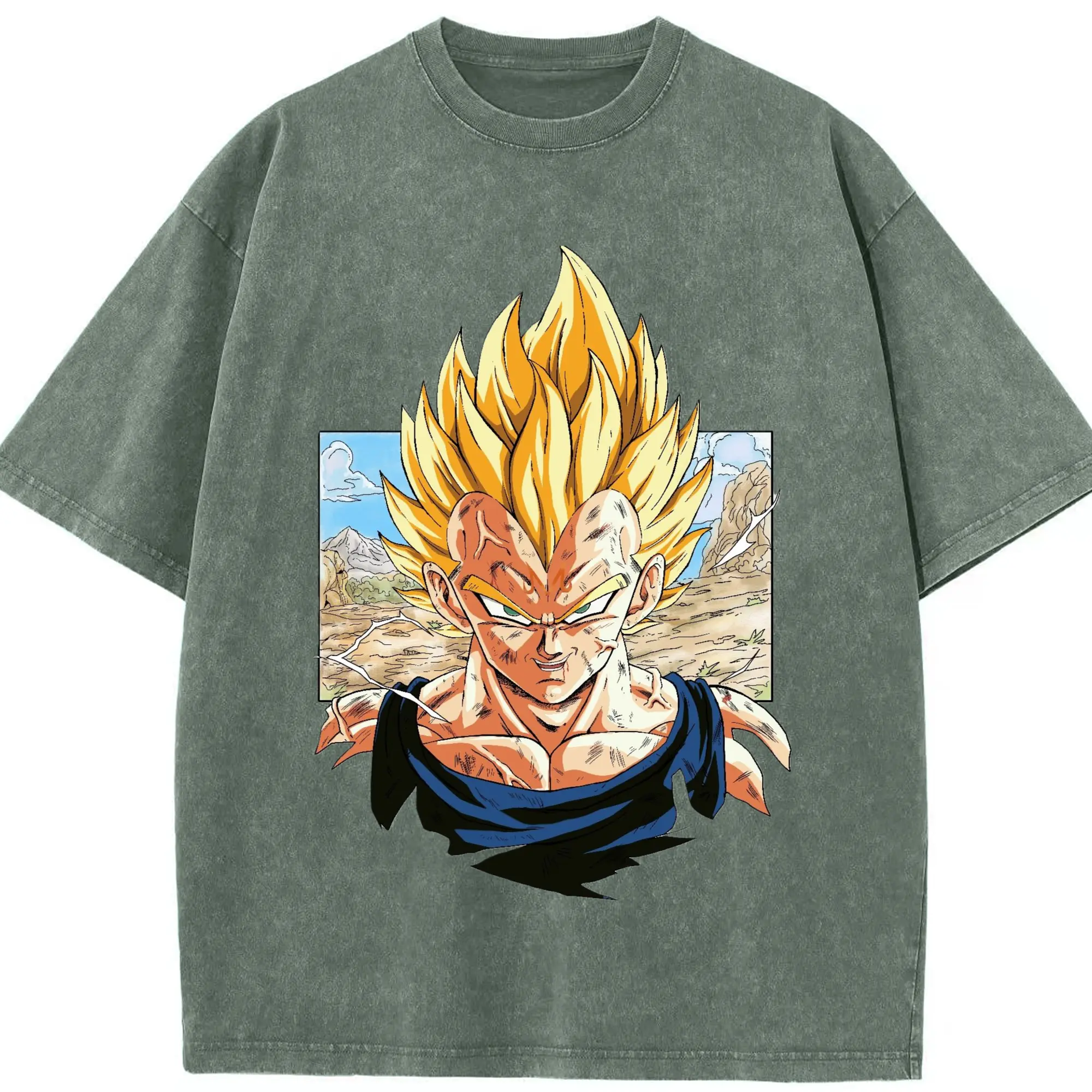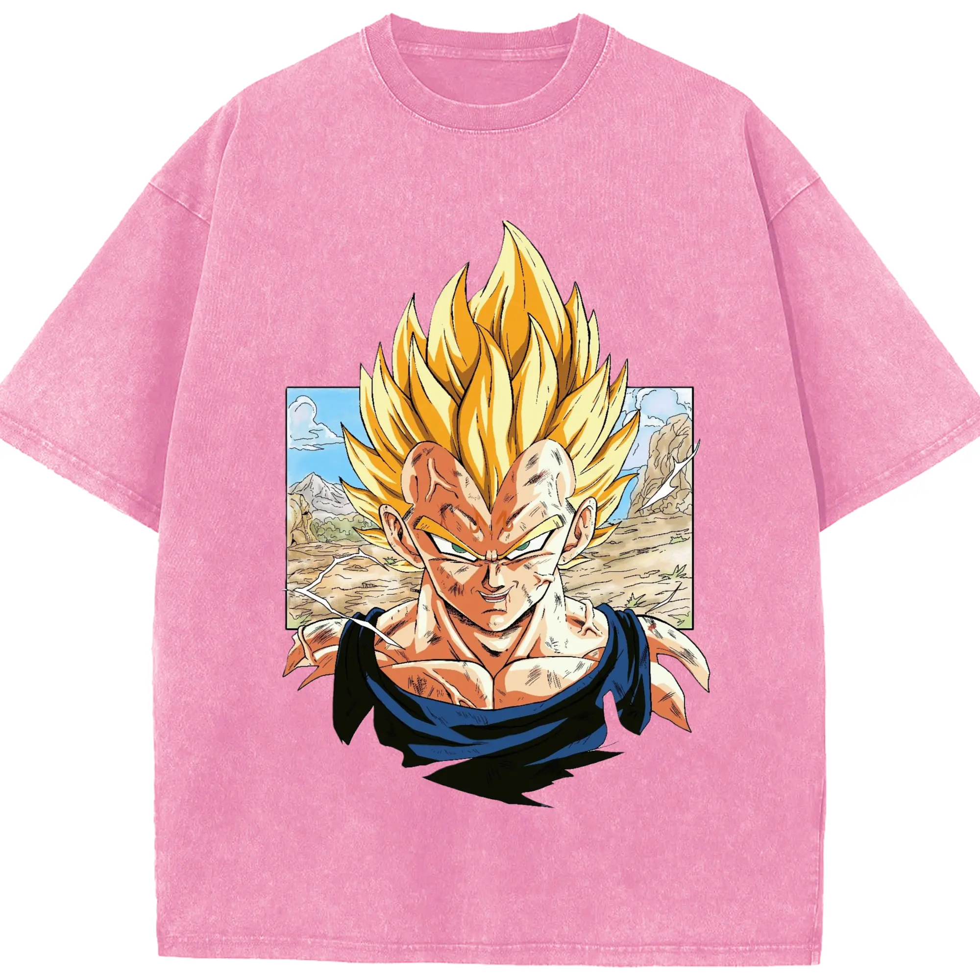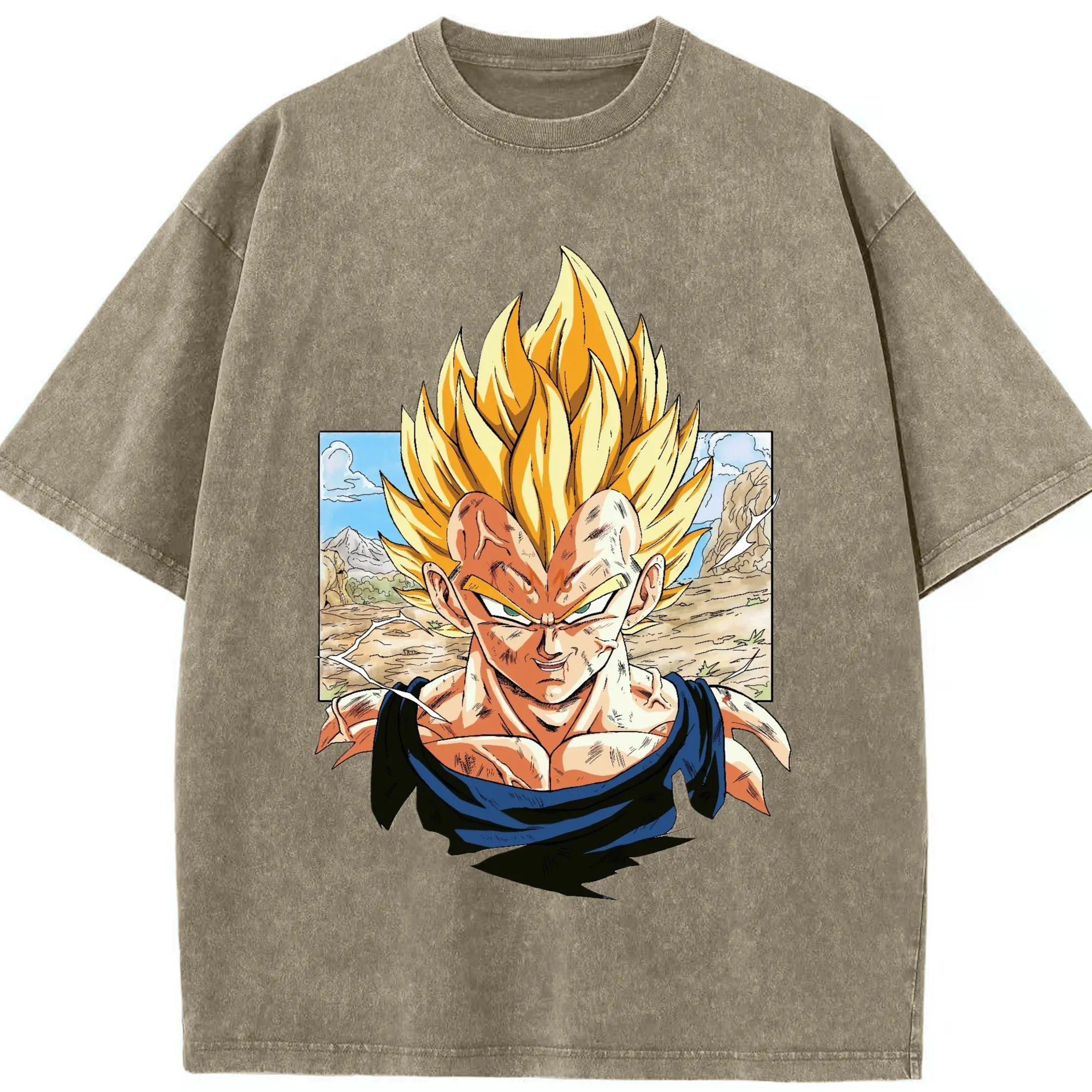 Dragon ball super vegeta shirt​ - Washed Vintage Look 230g Cotton Oversized T-Shirt With Front Heat Transfer Print – Soft, Lightweight, Stylish Fit – Comfortable Casual Wear For Sports & Everyday Use
