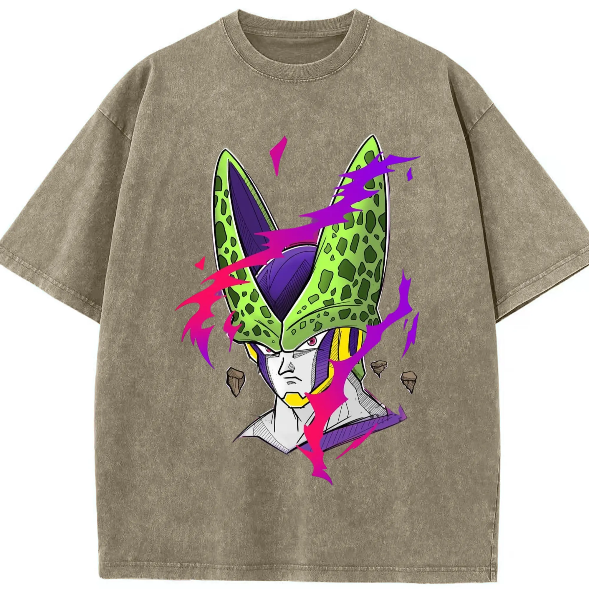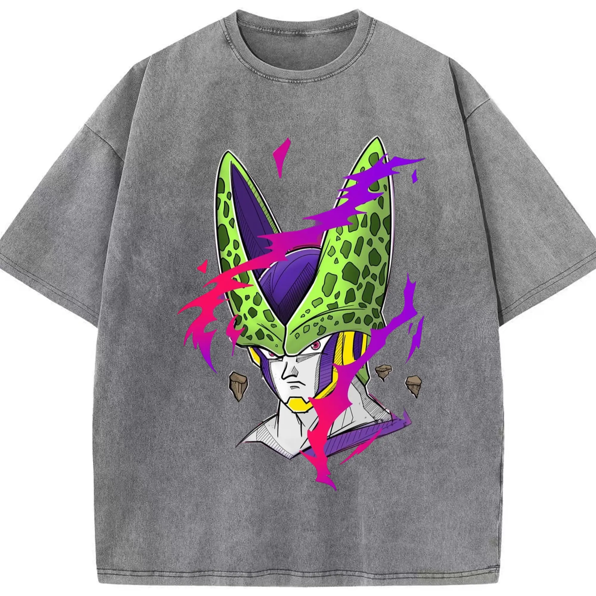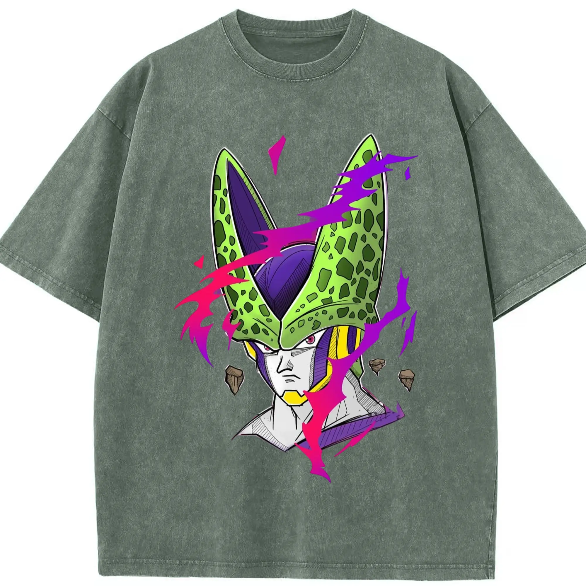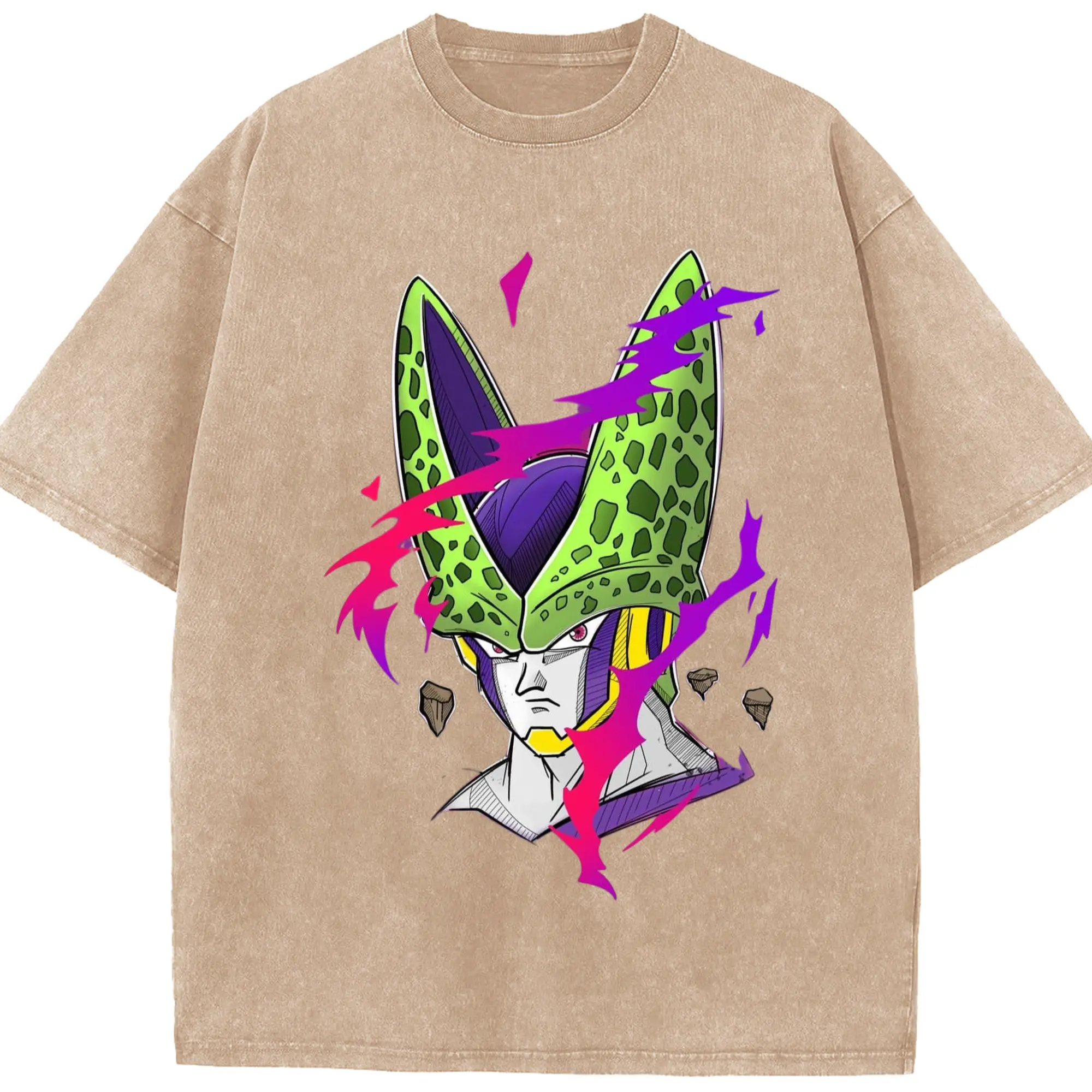 Dragon ball z cell graphic shirt​ - Washed Vintage Look 230g Cotton Oversized T-Shirt With Front Heat Transfer Print – Soft, Lightweight, Stylish Fit – Comfortable Casual Wear For Sports & Everyday Use
