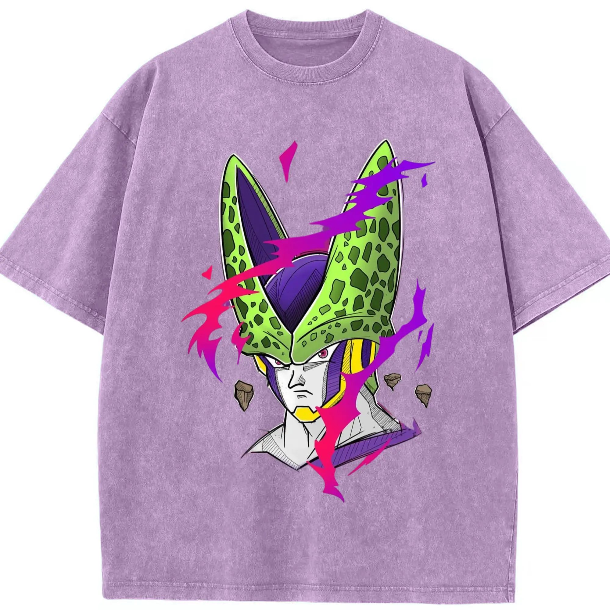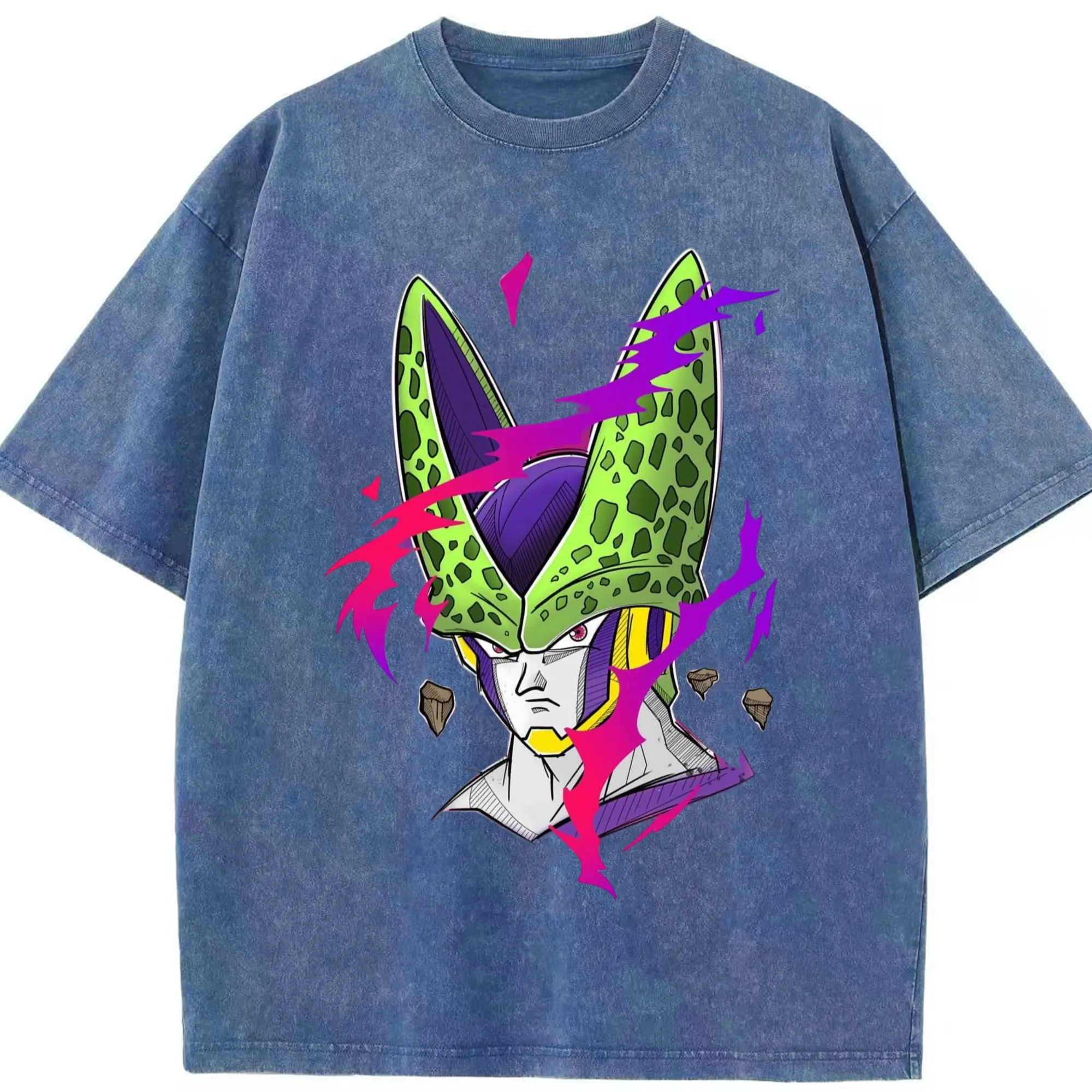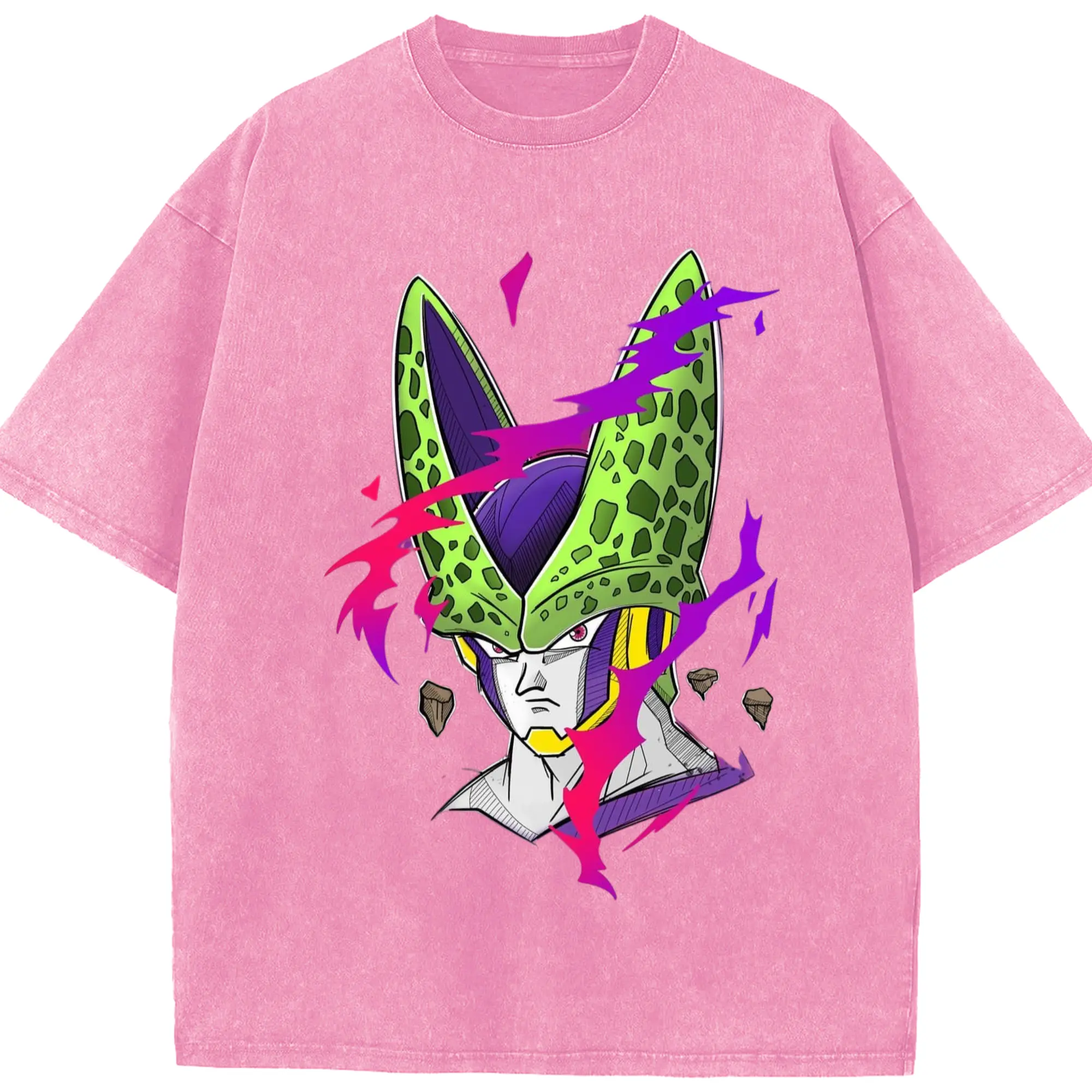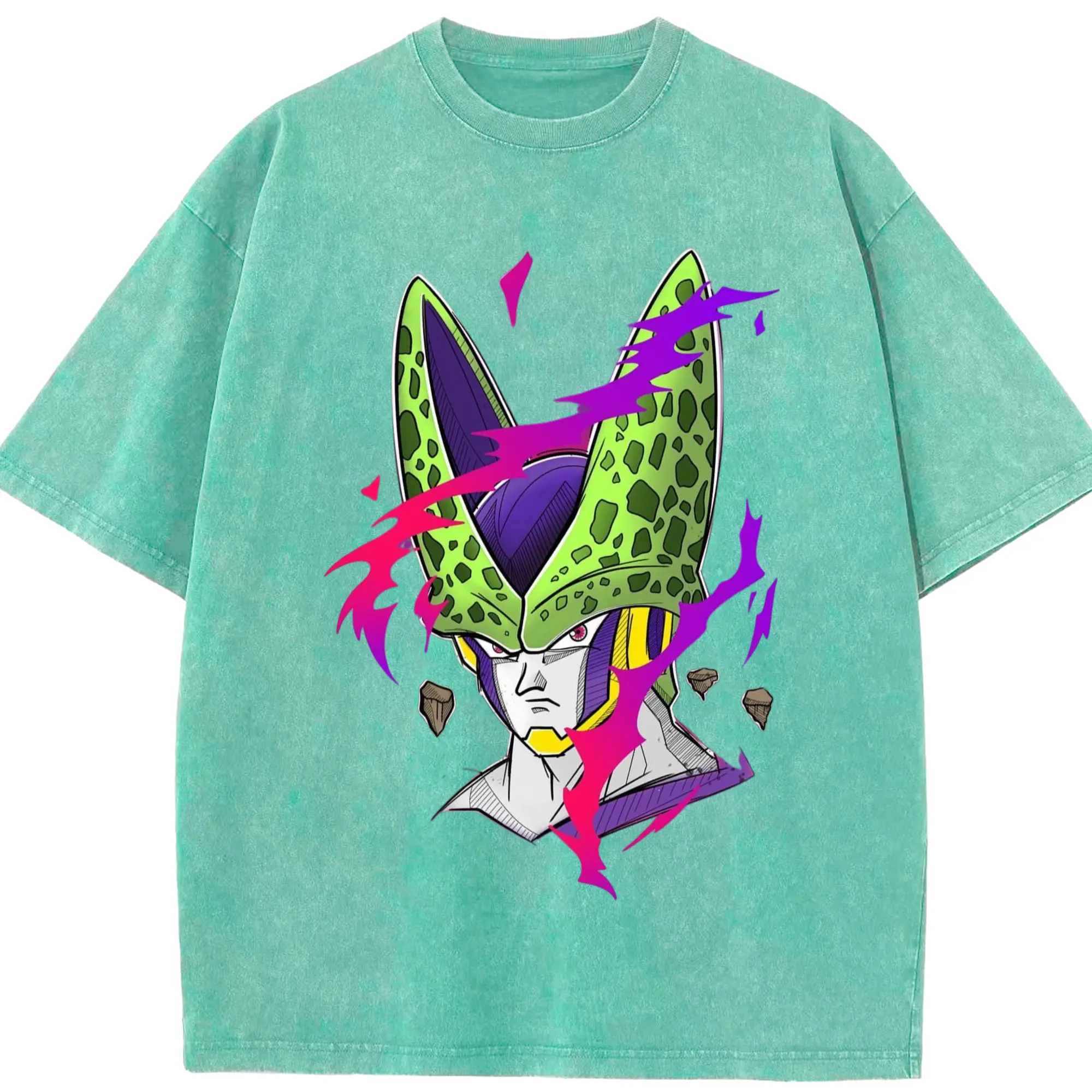 Dragon ball z cell graphic shirt​ - Washed Vintage Look 230g Cotton Oversized T-Shirt With Front Heat Transfer Print – Soft, Lightweight, Stylish Fit – Comfortable Casual Wear For Sports & Everyday Use