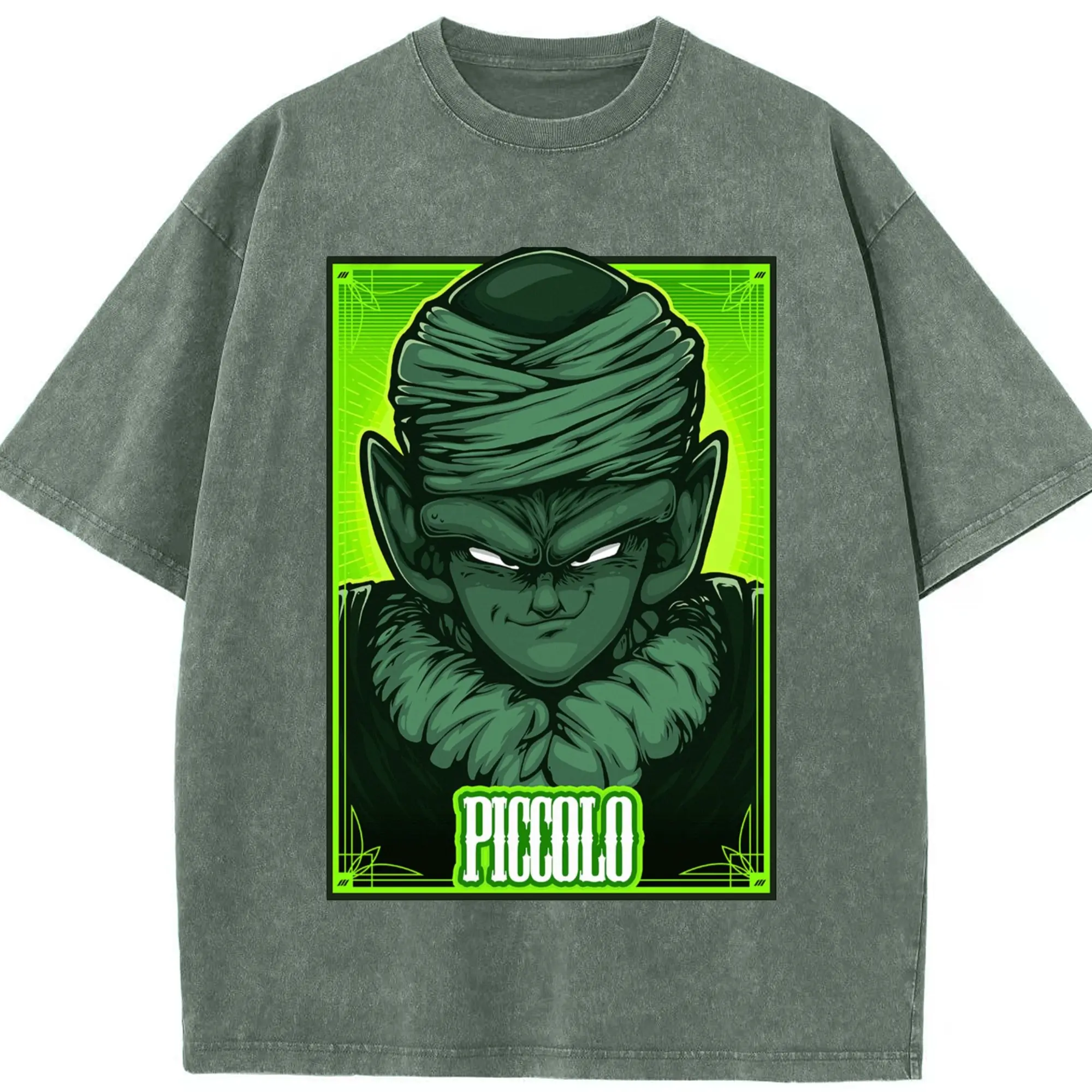 Dragon ball z piccolo t shirt - Washed Vintage Look 230g Cotton Oversized T-Shirt With Front Heat Transfer Print – Soft, Lightweight, Stylish Fit – Comfortable Casual Wear For Sports & Everyday Use