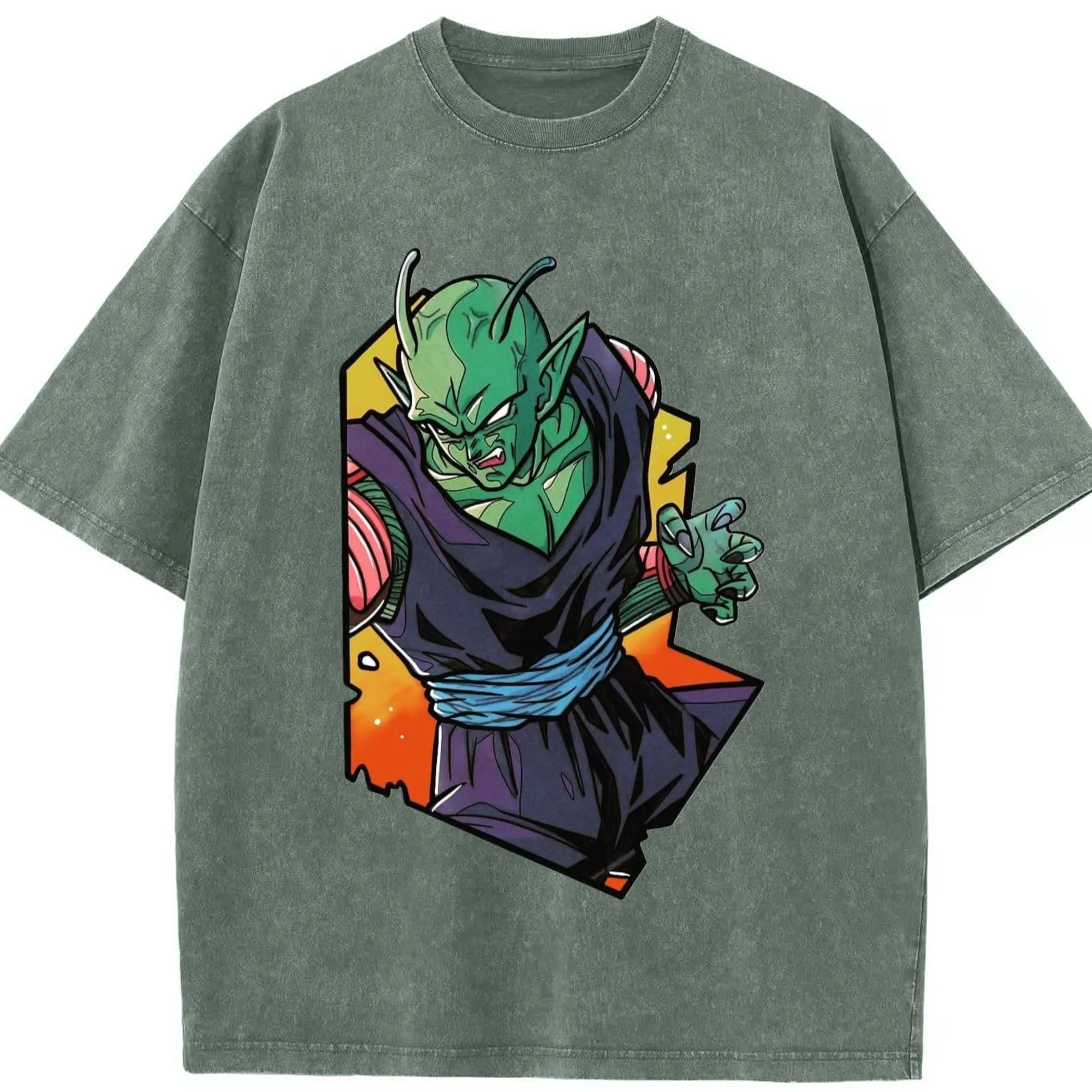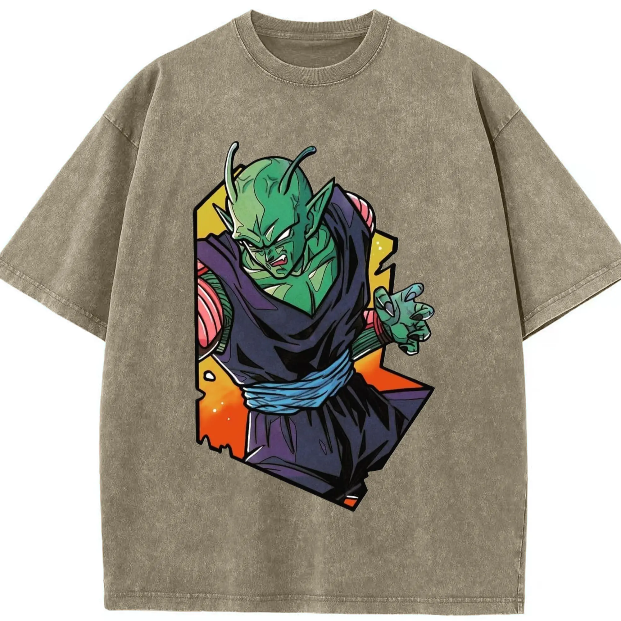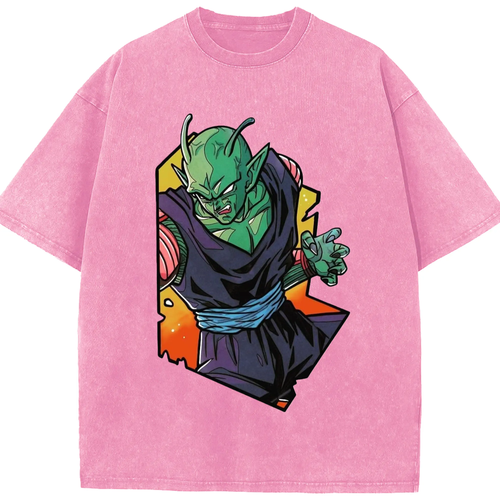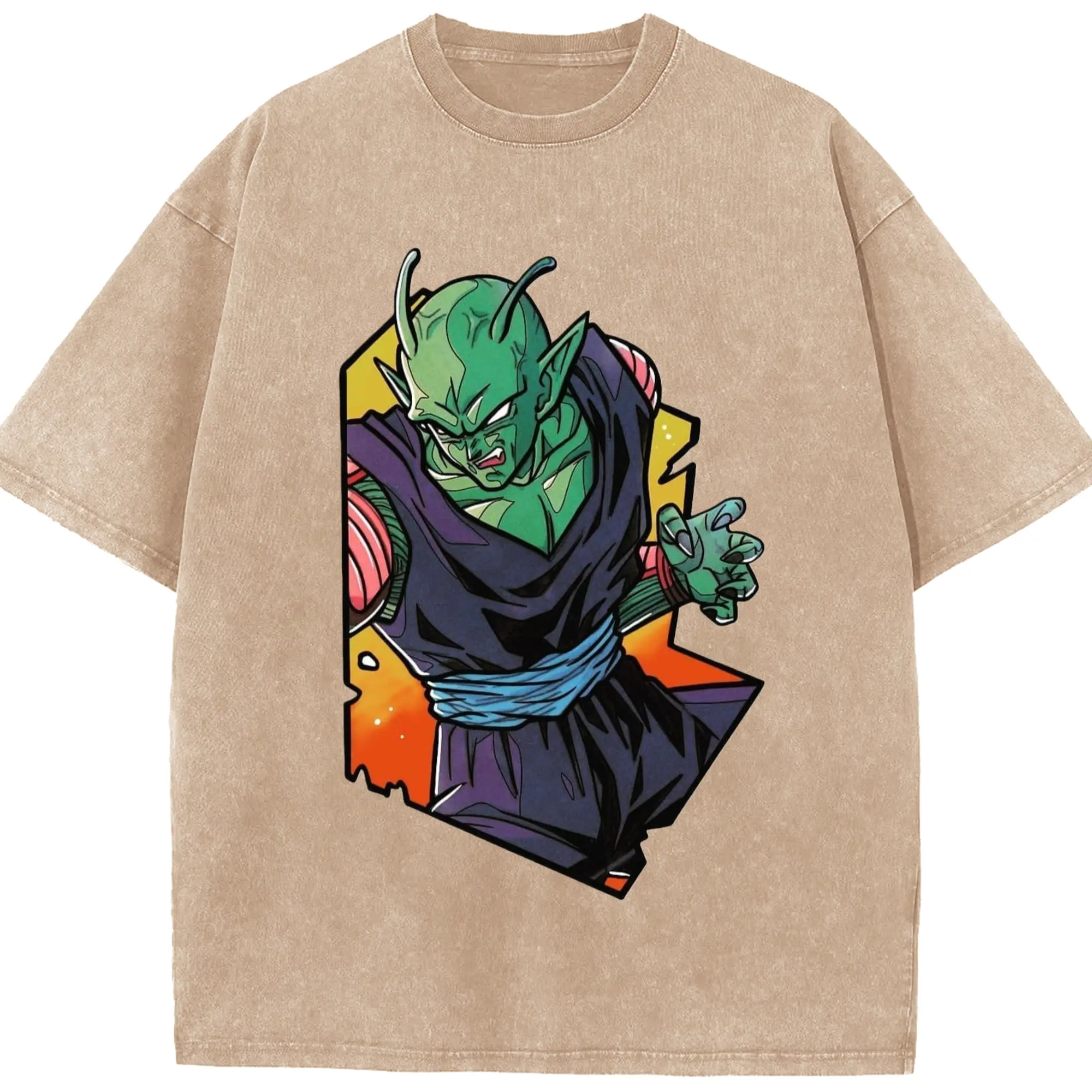 Dragon ball z piccolo tee - Washed Vintage Look 230g Cotton Oversized T-Shirt With Front Heat Transfer Print – Soft, Lightweight, Stylish Fit – Comfortable Casual Wear For Sports & Everyday Use