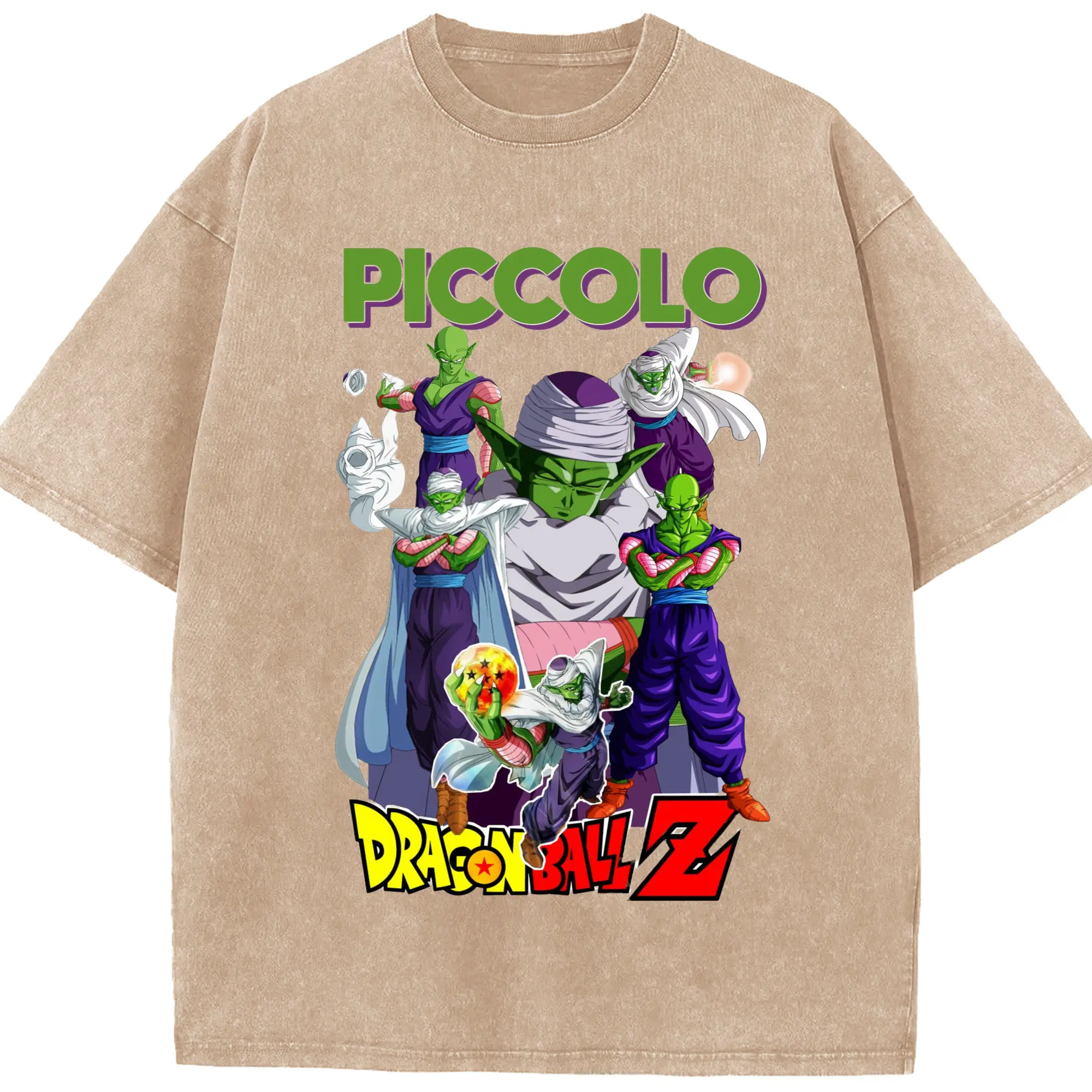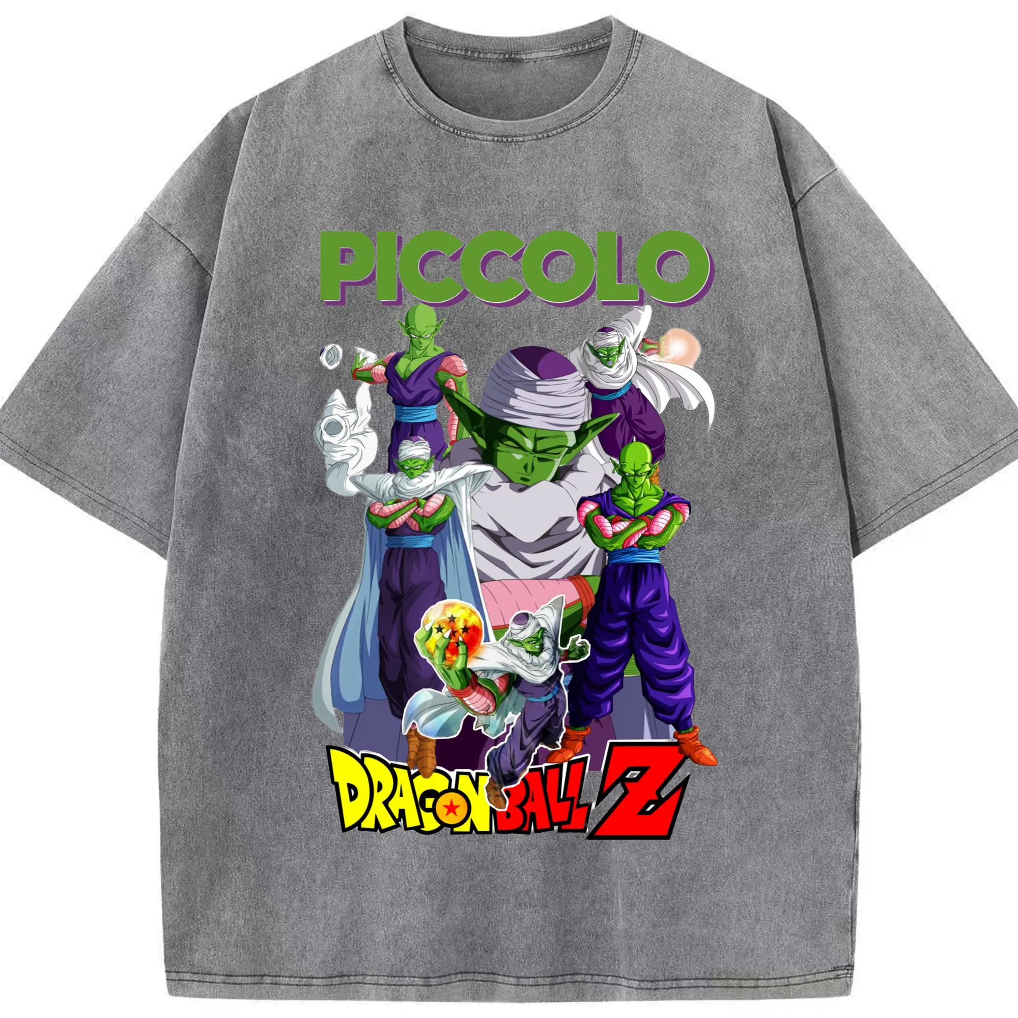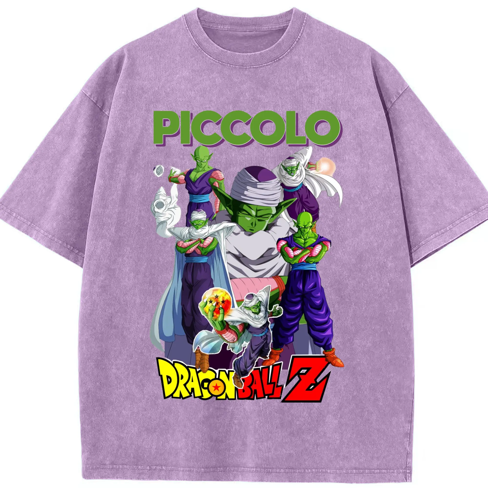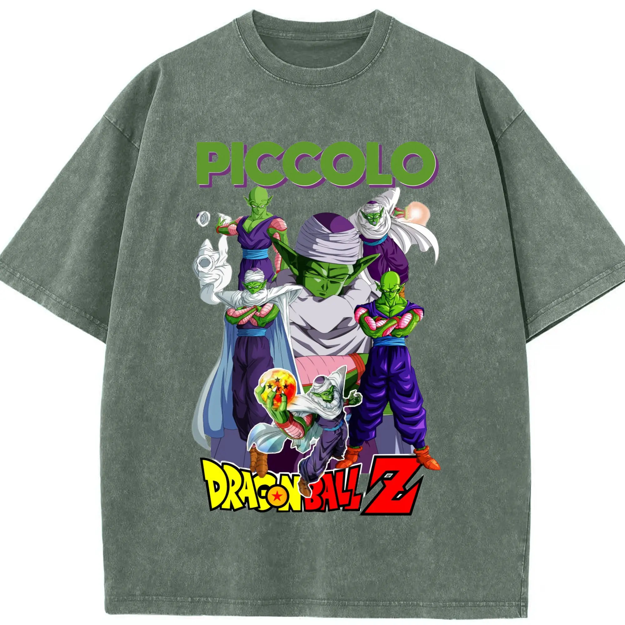 Dragon Ball Z Retro Piccolo T-Shirt - Washed Vintage Look 230g Cotton Oversized T-Shirt With Front Heat Transfer Print – Soft, Lightweight, Stylish Fit – Comfortable Casual Wear For Sports & Everyday Use