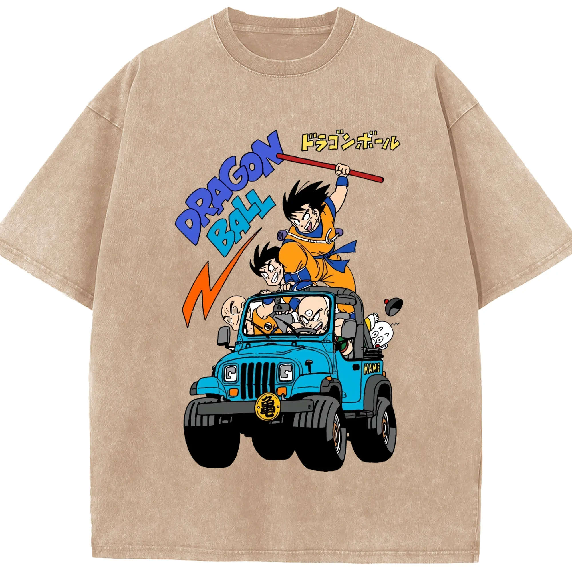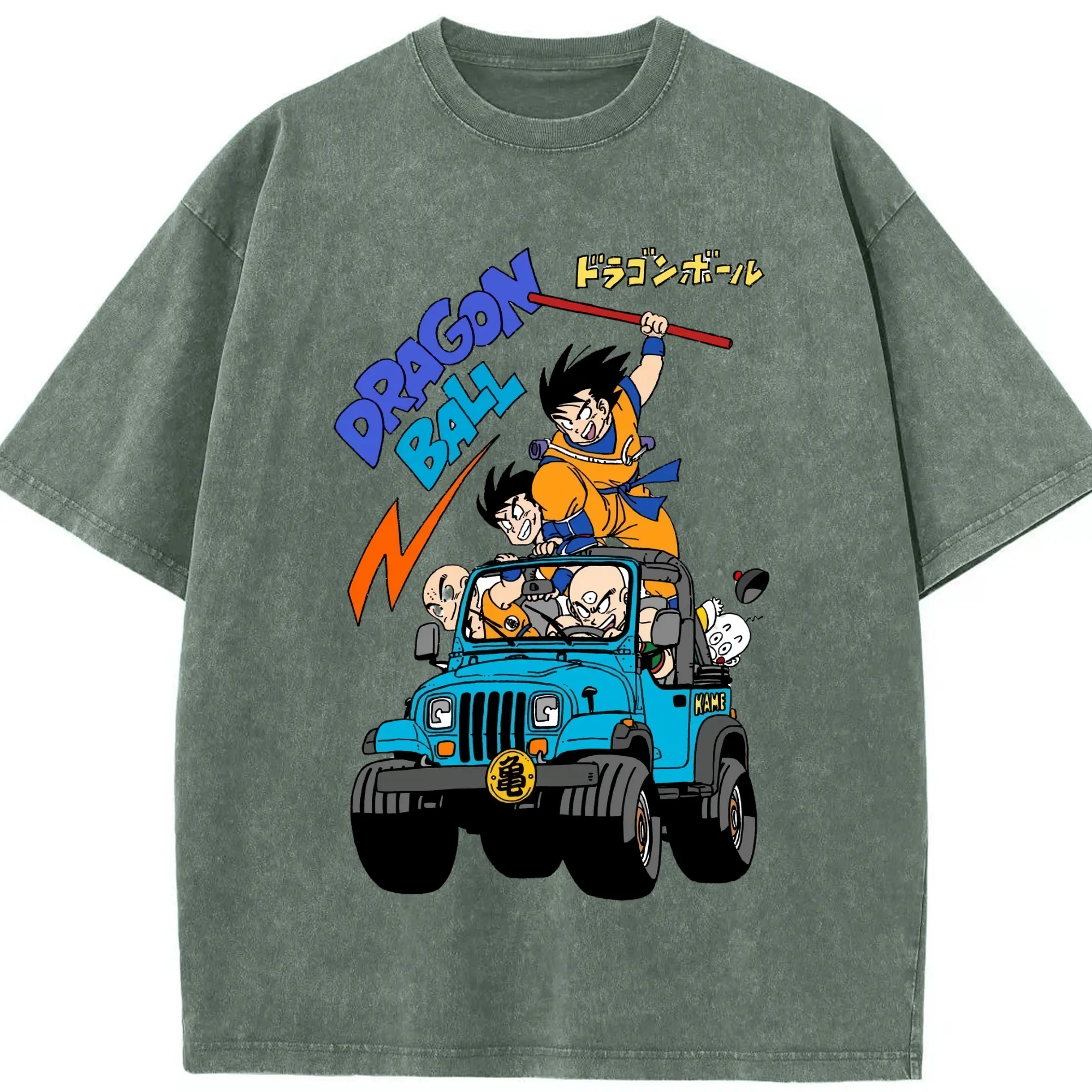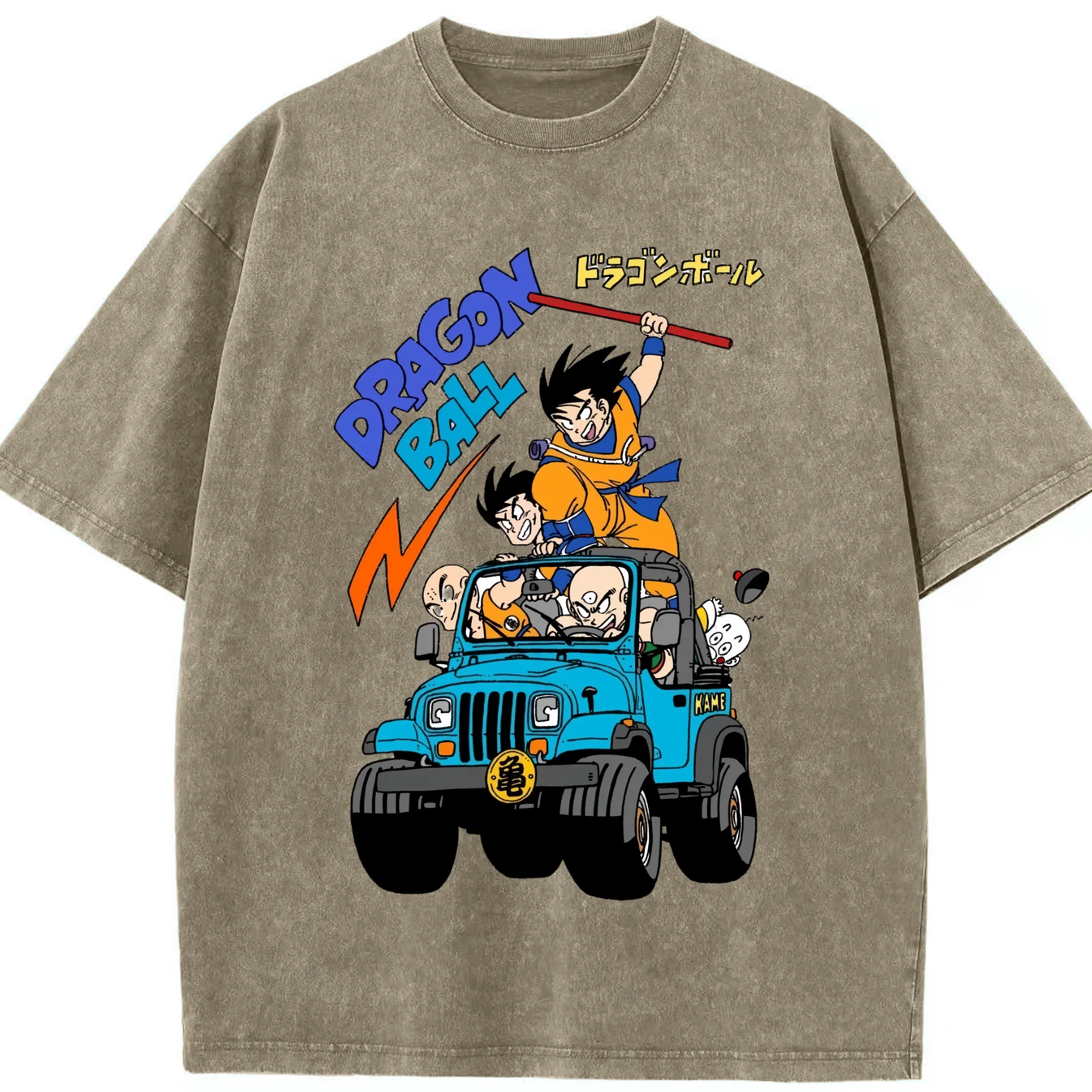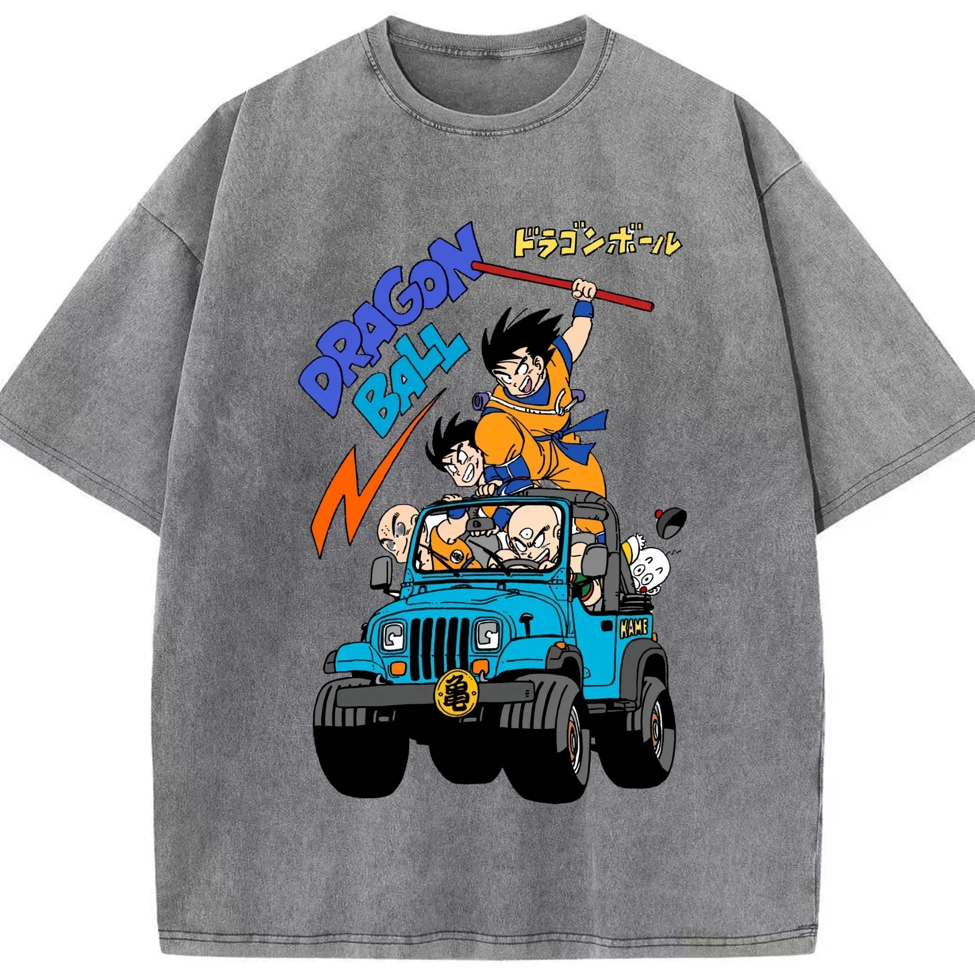 Dragon ball z Son Goku graphic shirt - Washed Vintage Look 230g Cotton Oversized T-Shirt With Front Heat Transfer Print – Soft, Lightweight, Stylish Fit – Comfortable Casual Wear For Sports & Everyday Use