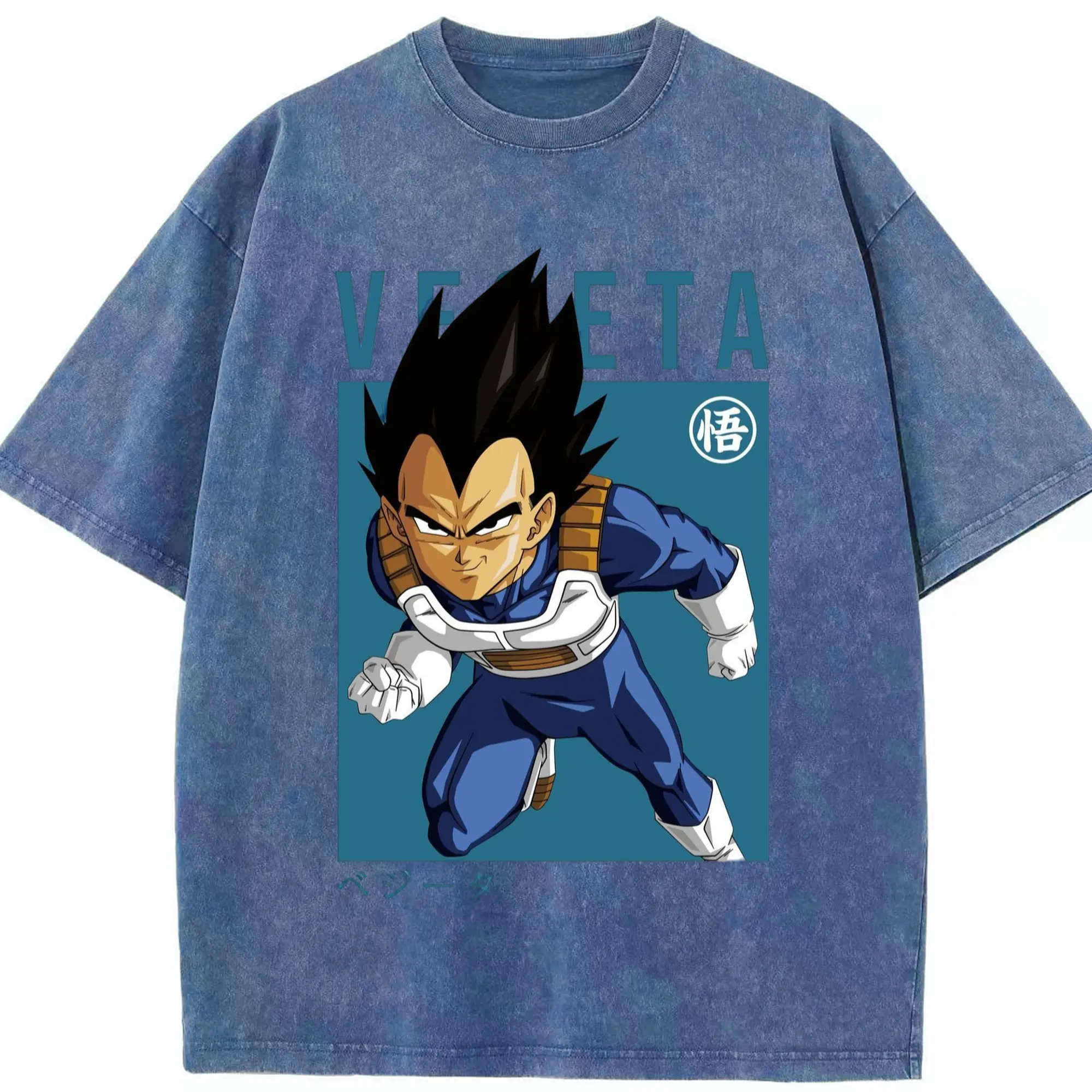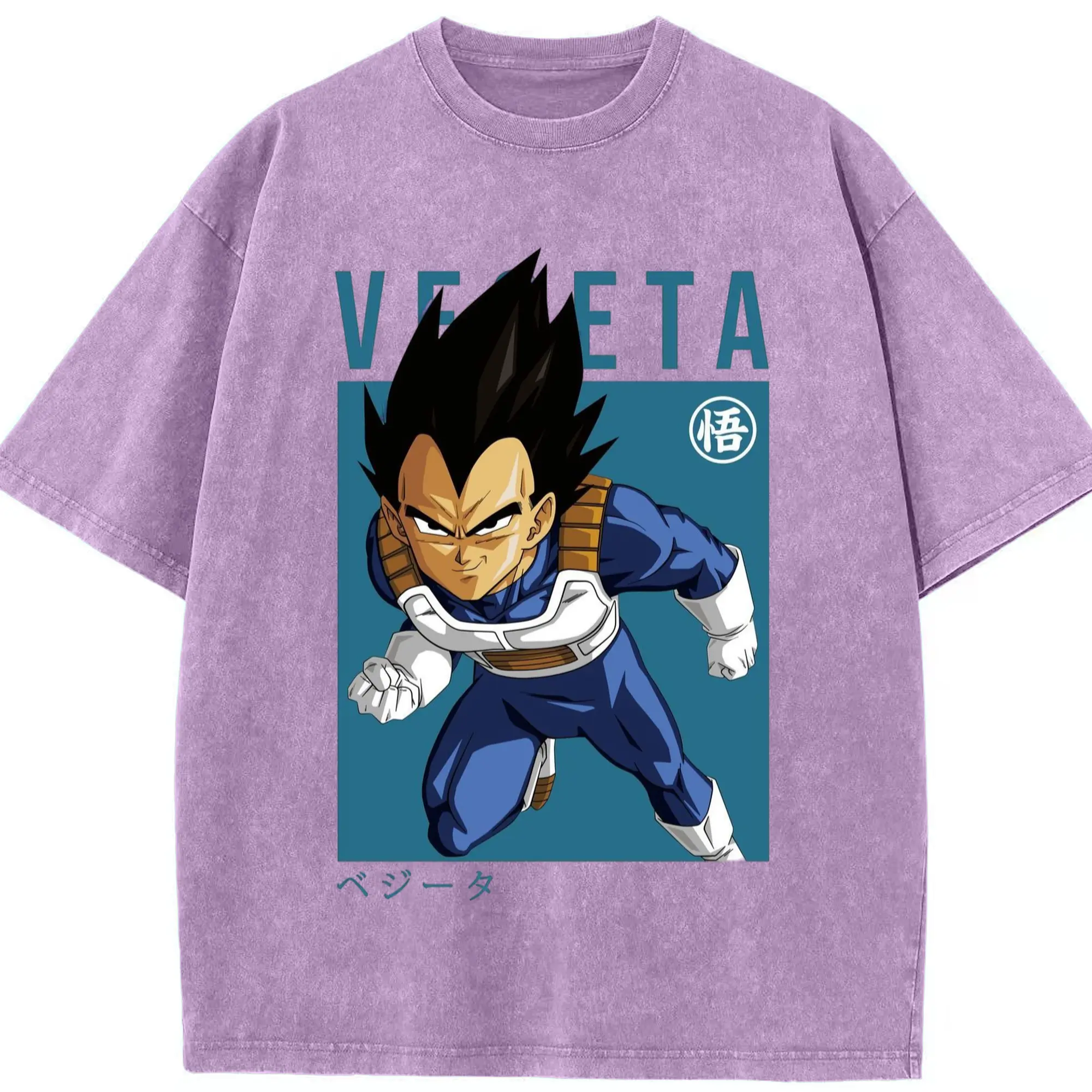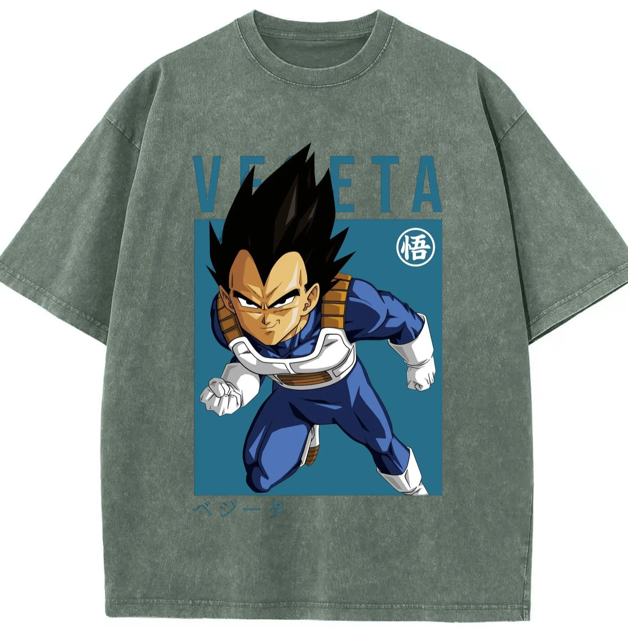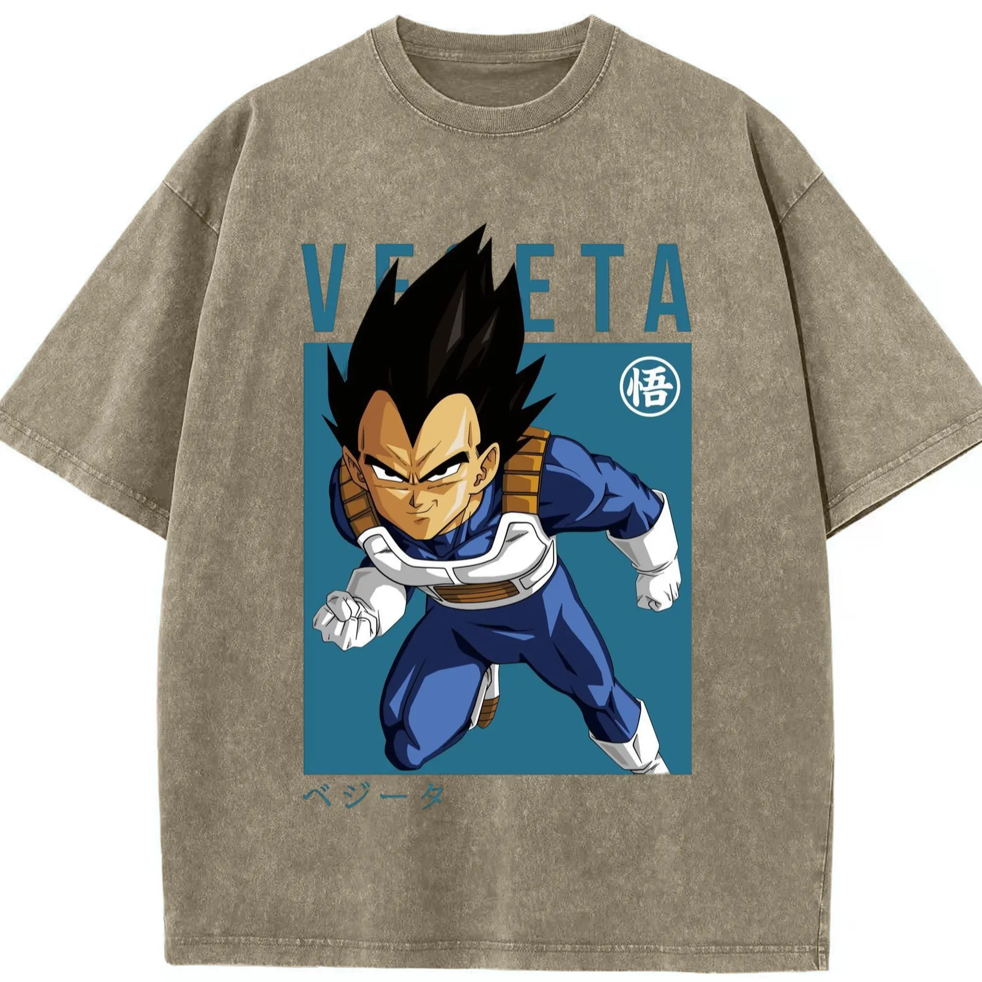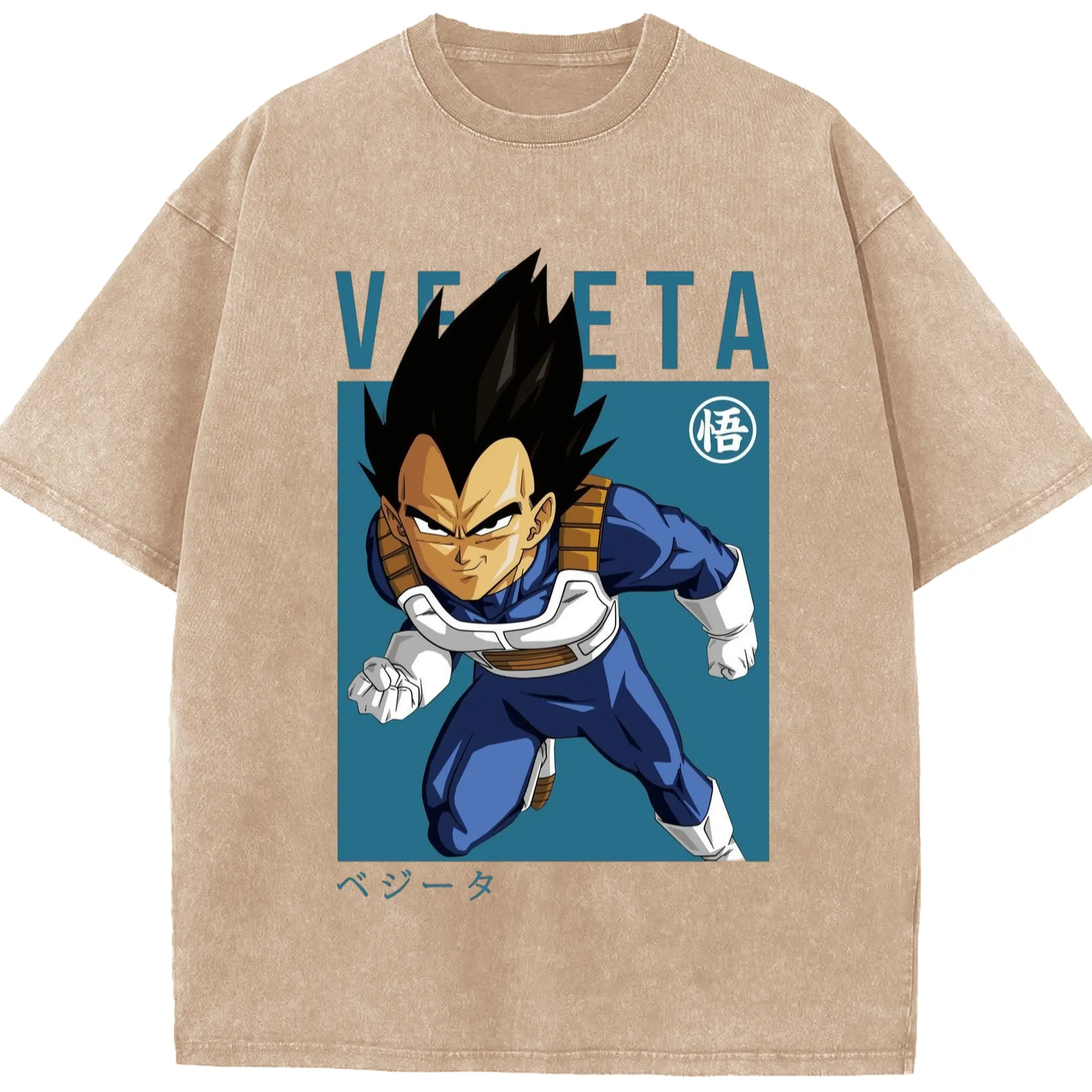 Dragon ball z vegeta t-shirt​ - Washed Vintage Look 230g Cotton Oversized T-Shirt With Front Heat Transfer Print – Soft, Lightweight, Stylish Fit – Comfortable Casual Wear For Sports & Everyday Use