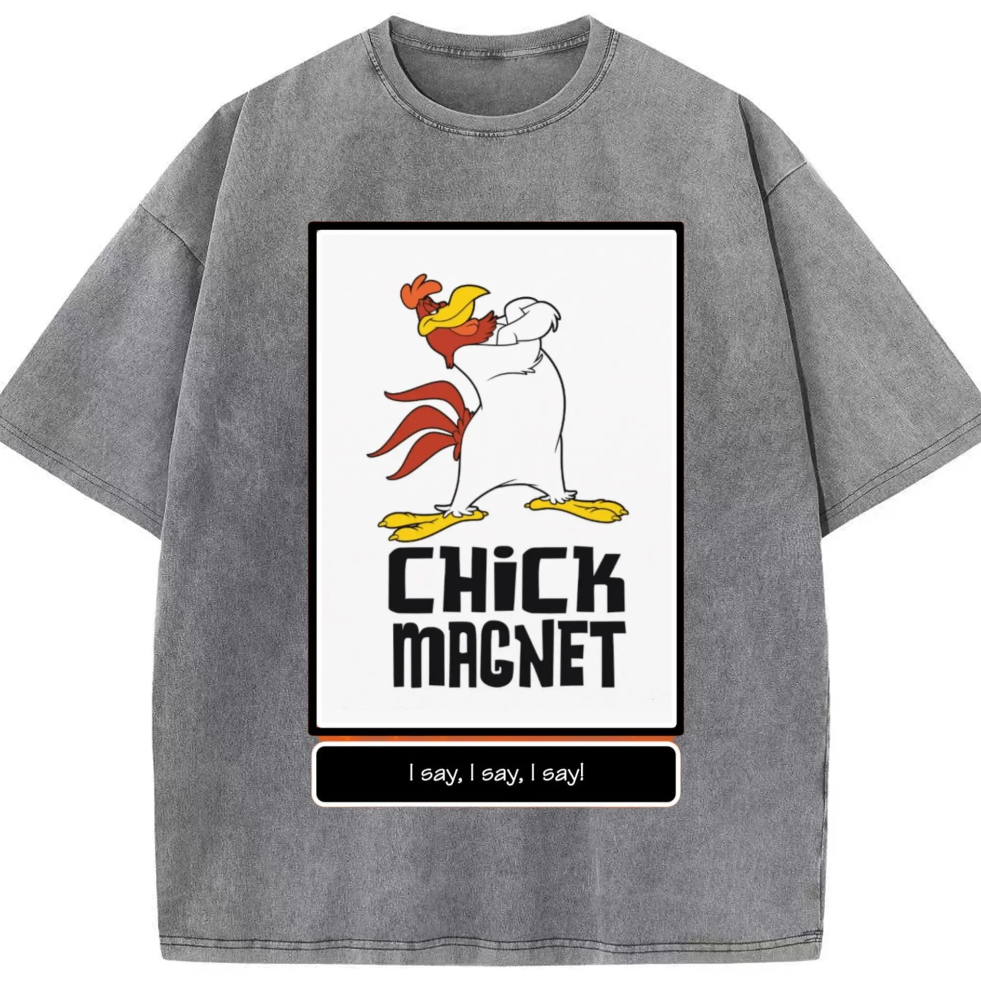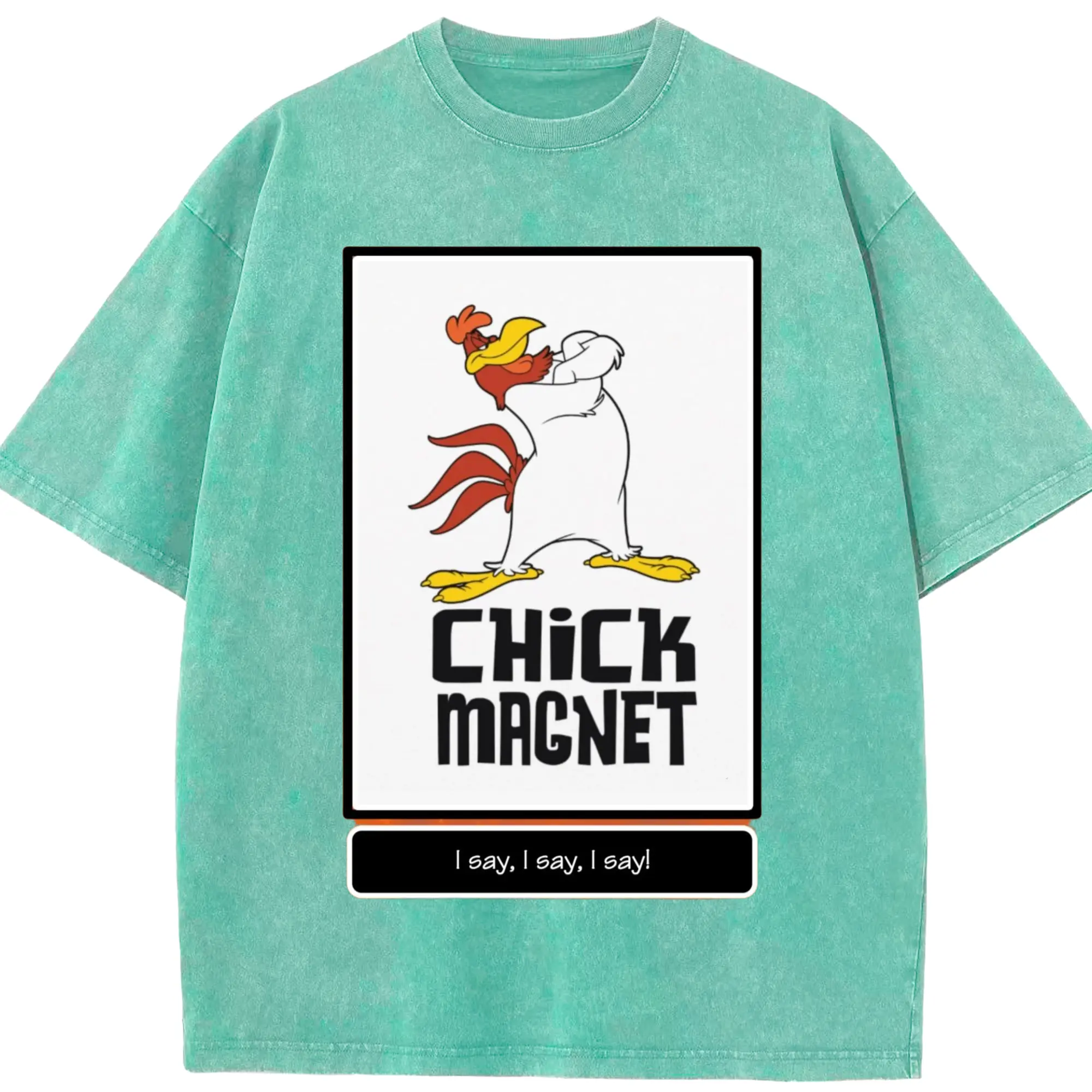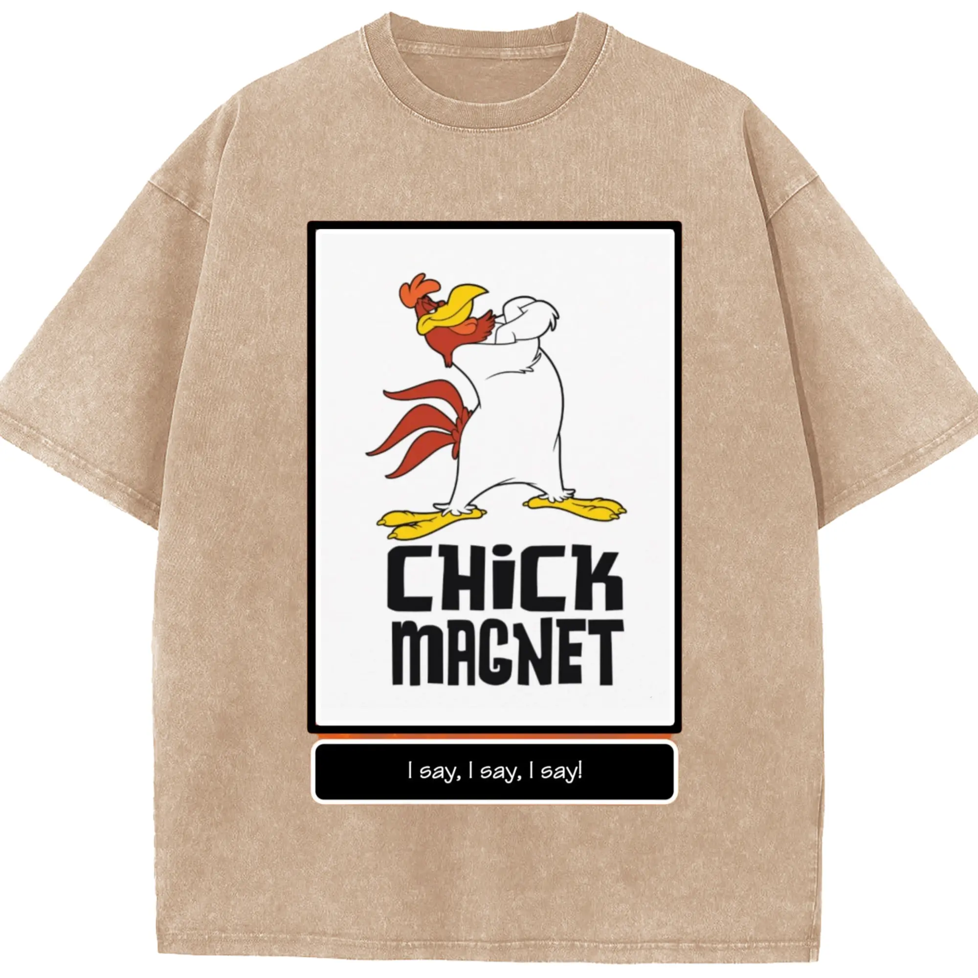 Foghorn leghorn graphic t shirt​ - Washed Vintage Look 230g Cotton Oversized T-Shirt With Front Heat Transfer Print – Soft, Lightweight, Stylish Fit – Comfortable Casual Wear For Sports & Everyday Use